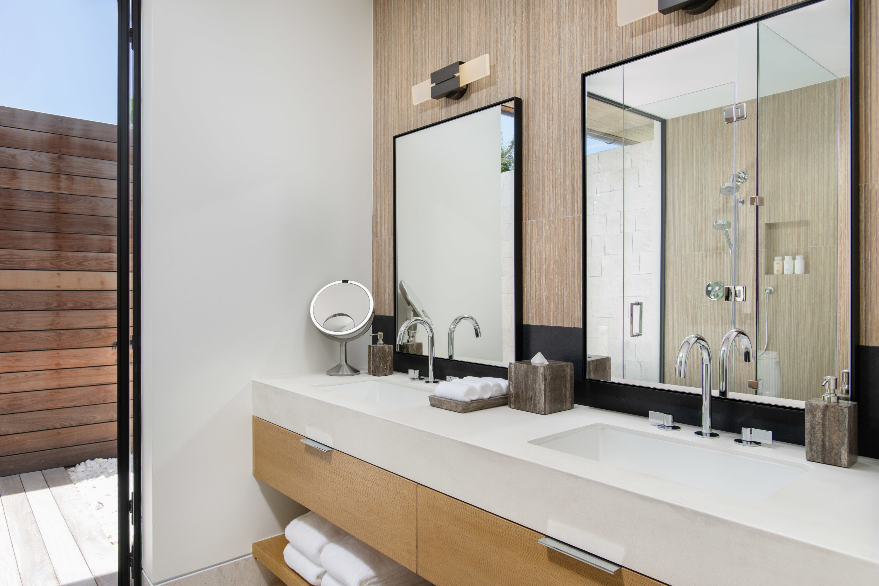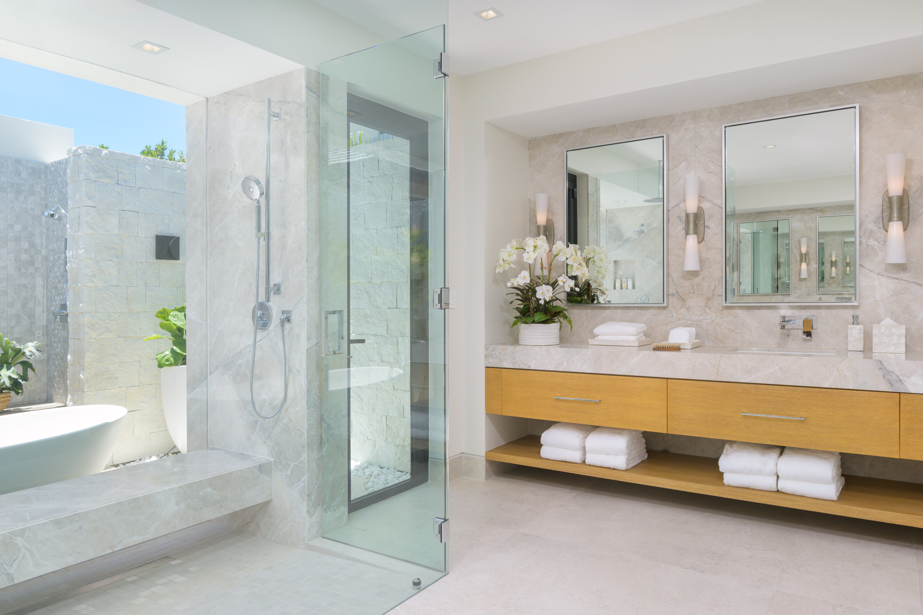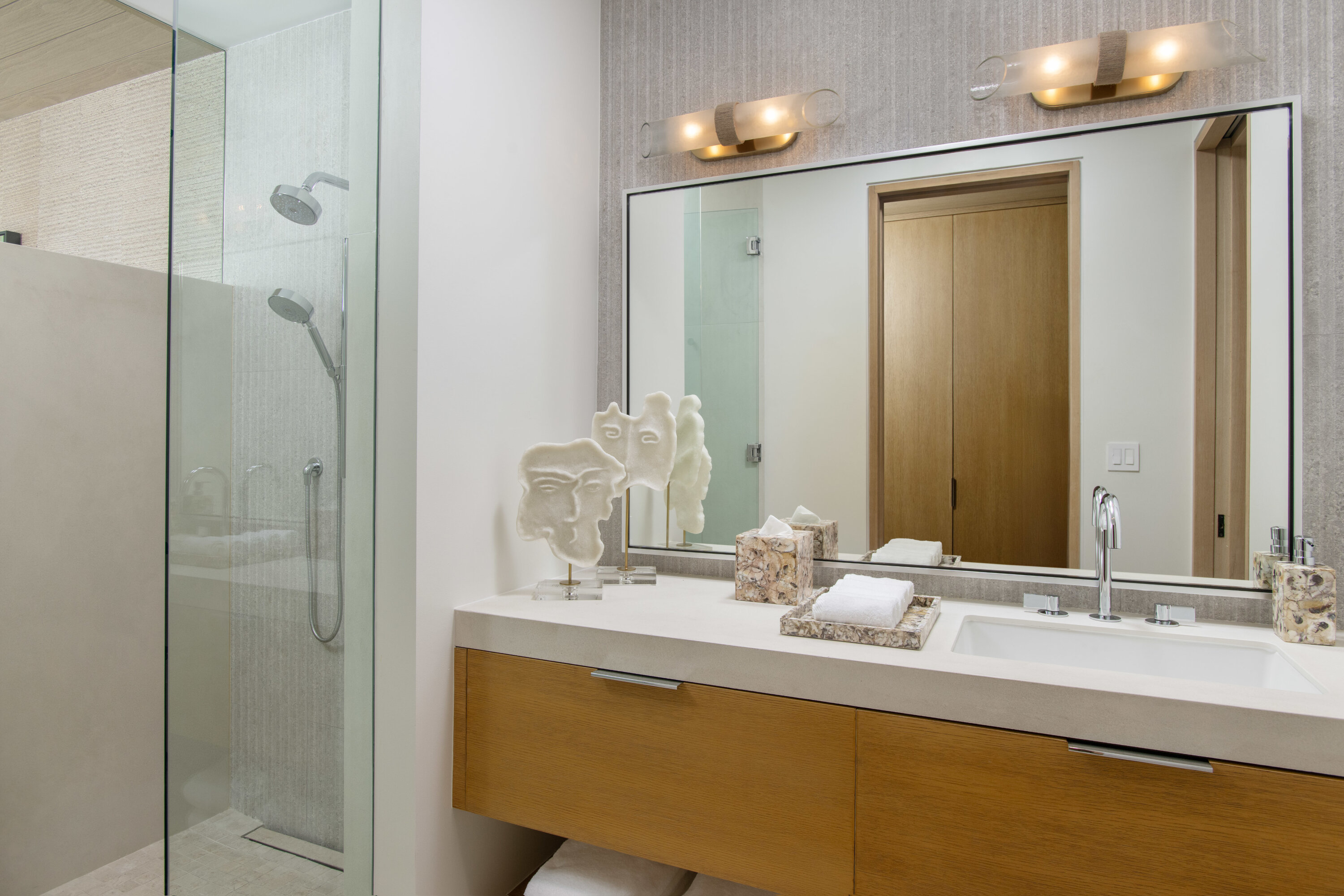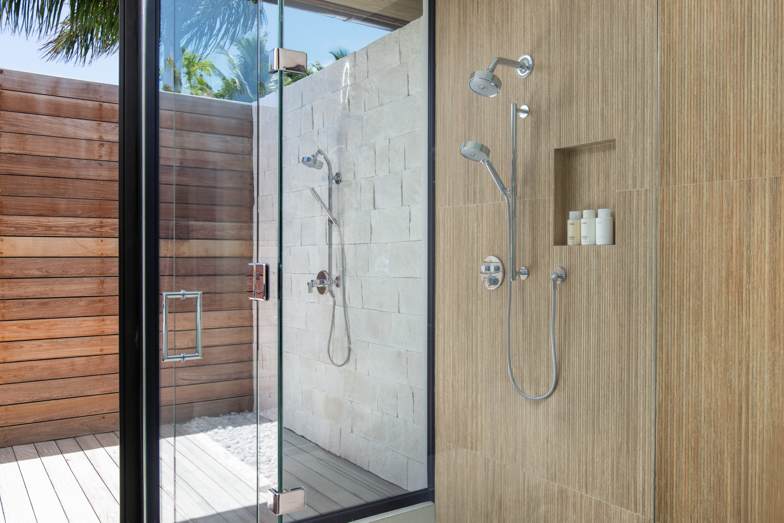 Each bedroom is a haven of serenity, complete with king beds, deep plush mattresses, motorized shades, and both indoor and open-air showers. Select suites also offer private terraces, outdoor soaking tubs, and built-in coffee stations for a leisurely start to the day.