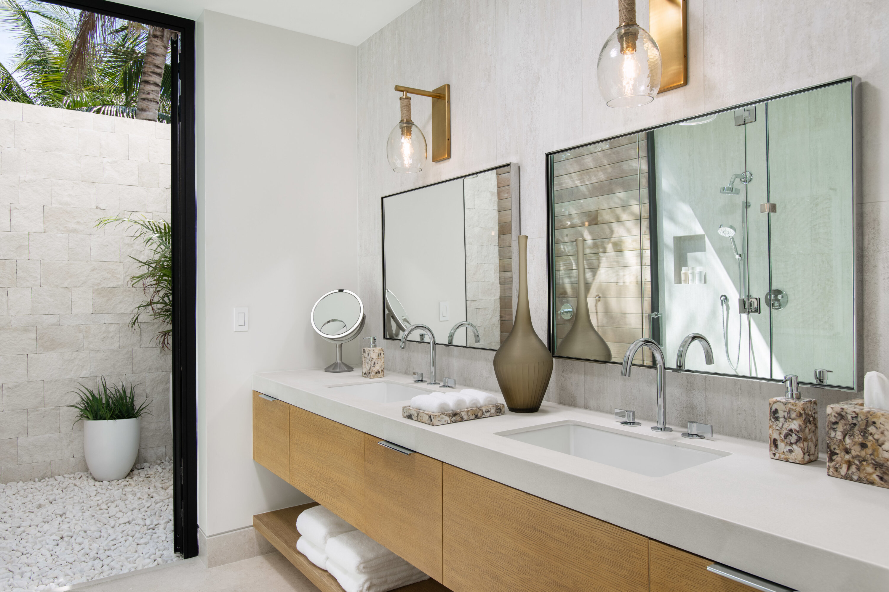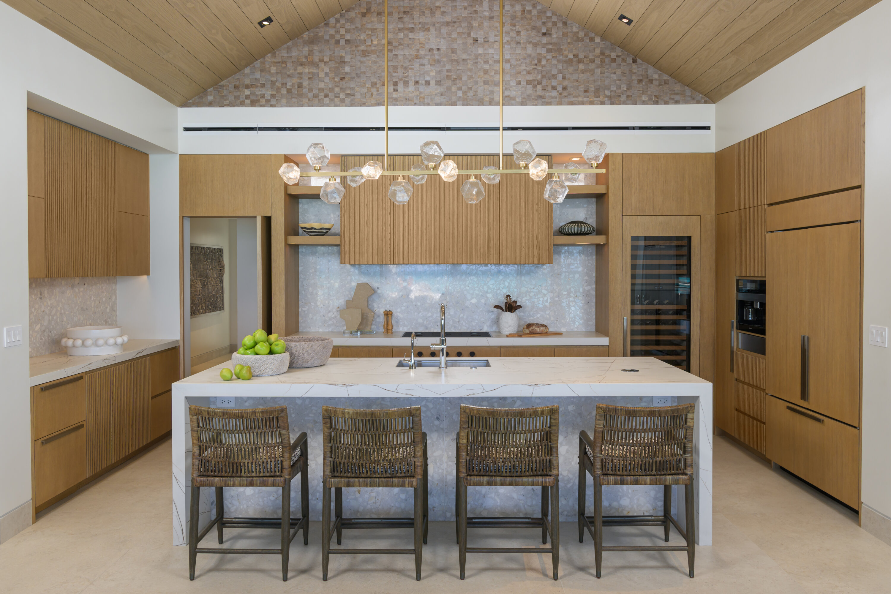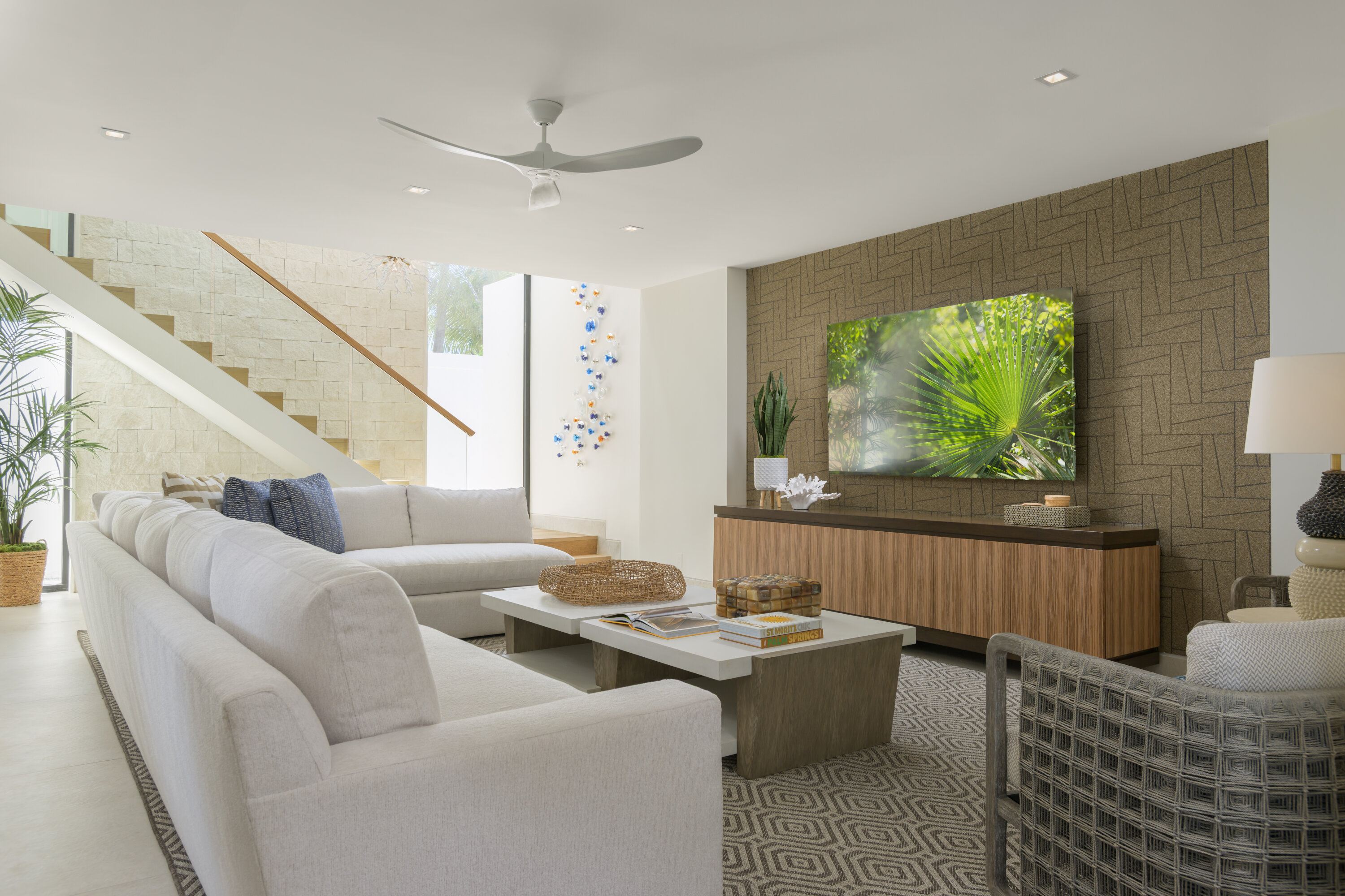 Inside, the interiors echo the villa’s coastal setting with lofty ceilings, soothing earth tones, and wide windows that flood the space with natural light. Thoughtful design details—from rich textures and curated artwork to high-end materials—create a calm and sophisticated ambiance throughout.