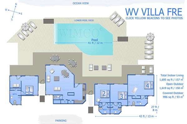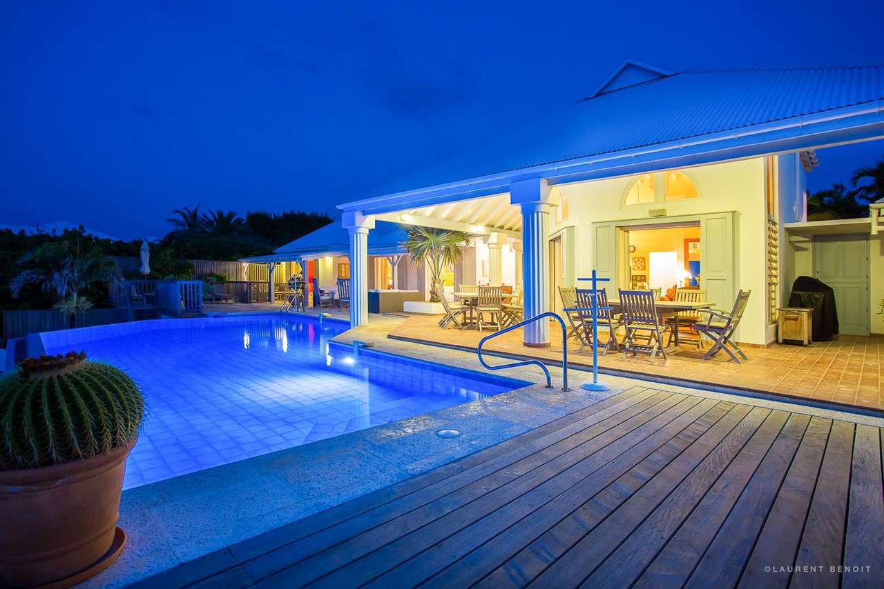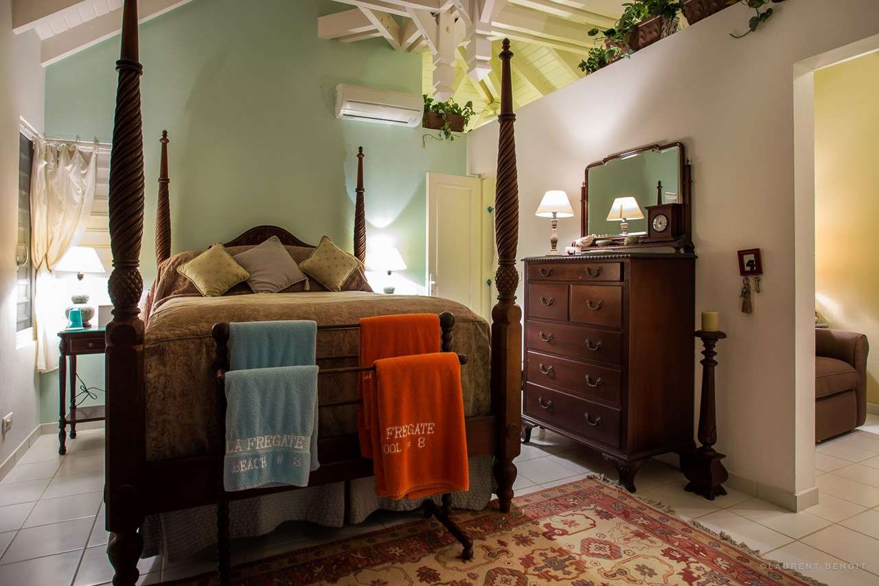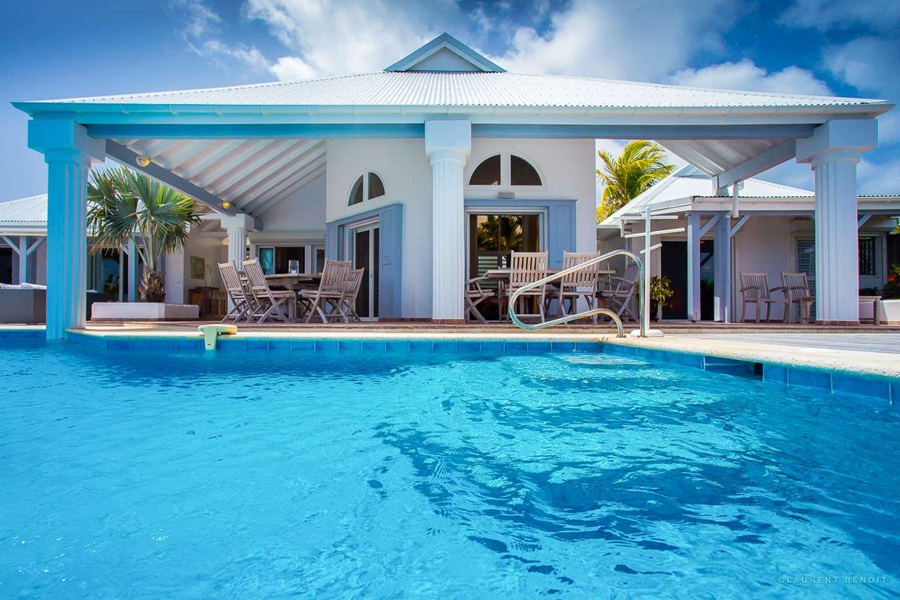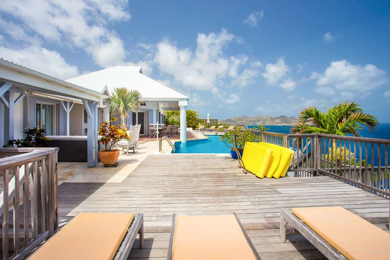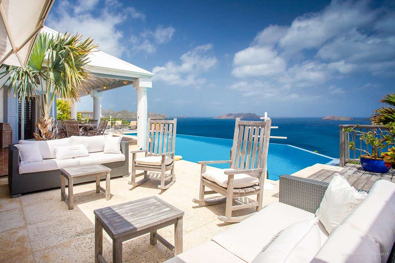Villa Fregate is a 4-bedroom villa located cliffside in Pointe Milou within minutes of several hotels, beaches and shopping. The villa has exquisite, uninterrupted ocean views, sunsets all year long and views of St Martin and Anguilla. The villa is fully air-conditioned and decorated in a comfortable, traditional manner with warm terracotta hues, cozy antique furnishings and open living spaces. The living room's high ceilings, windows and sliding glass doors help to illuminate this central room, while also connecting it to the expansive terrace outside. Likewise, the interconnecting kitchen, complete with every cooking gadget one could want, also connects to the terrace, allowing for ease of serving whether you are dining inside or al fresco. Two outdoor dining tables with space for a total of 12 guests plus a gas barbecue are just outside under the covered terrace. The bedrooms are arranged bungalow style on either side of the central living area, each with ocean views and direct access to the terrace. Three of the bedrooms are side by side, each with King beds (one of which can be converted to Twins). The fourth bedroom can be found on the other side of the villa, with a queen bed. All of the bedrooms have ensuite bathrooms, window screens, and safes, while only the master bedroom has a TV and DVD set up. An expansive terrace with loungers surrounds the heated infinity pool, which seems to cascade into the ocean. The expansive area around the pool has sitting areas in boththe sun and shade, plus plenty of room to entertain. VillaFregate comes with house cleaning services six days a week, except on holidays. During Thanksgiving and December holidays, the villa rents at the full occupancy rate regardless of how many bedrooms are used. The Thanksgiving rate is equal to the four bedroom winter rate. This villa is not suitable for young children.Please fill out the form to begin your inquiry and we will connect you with a seasoned villa rental specialist.