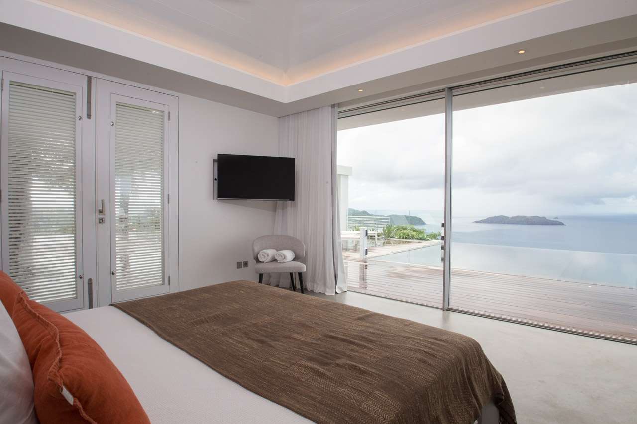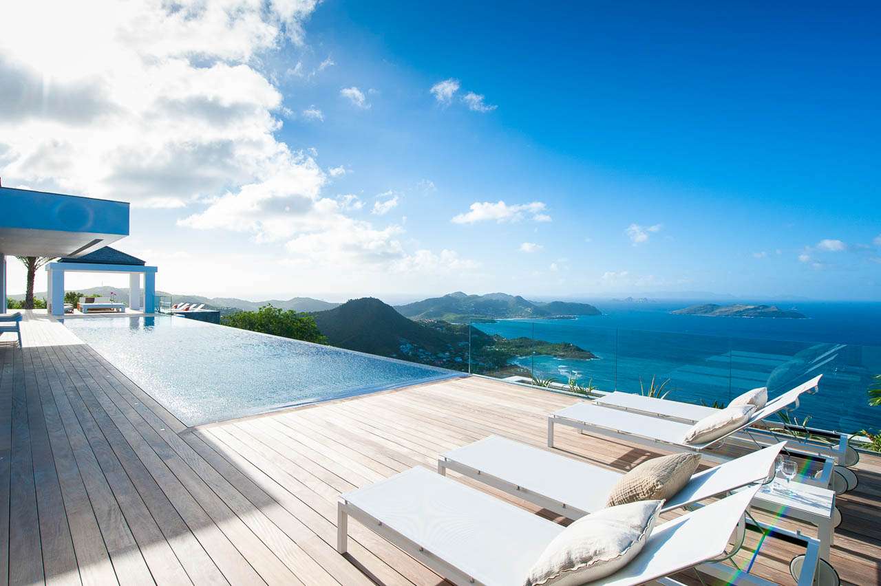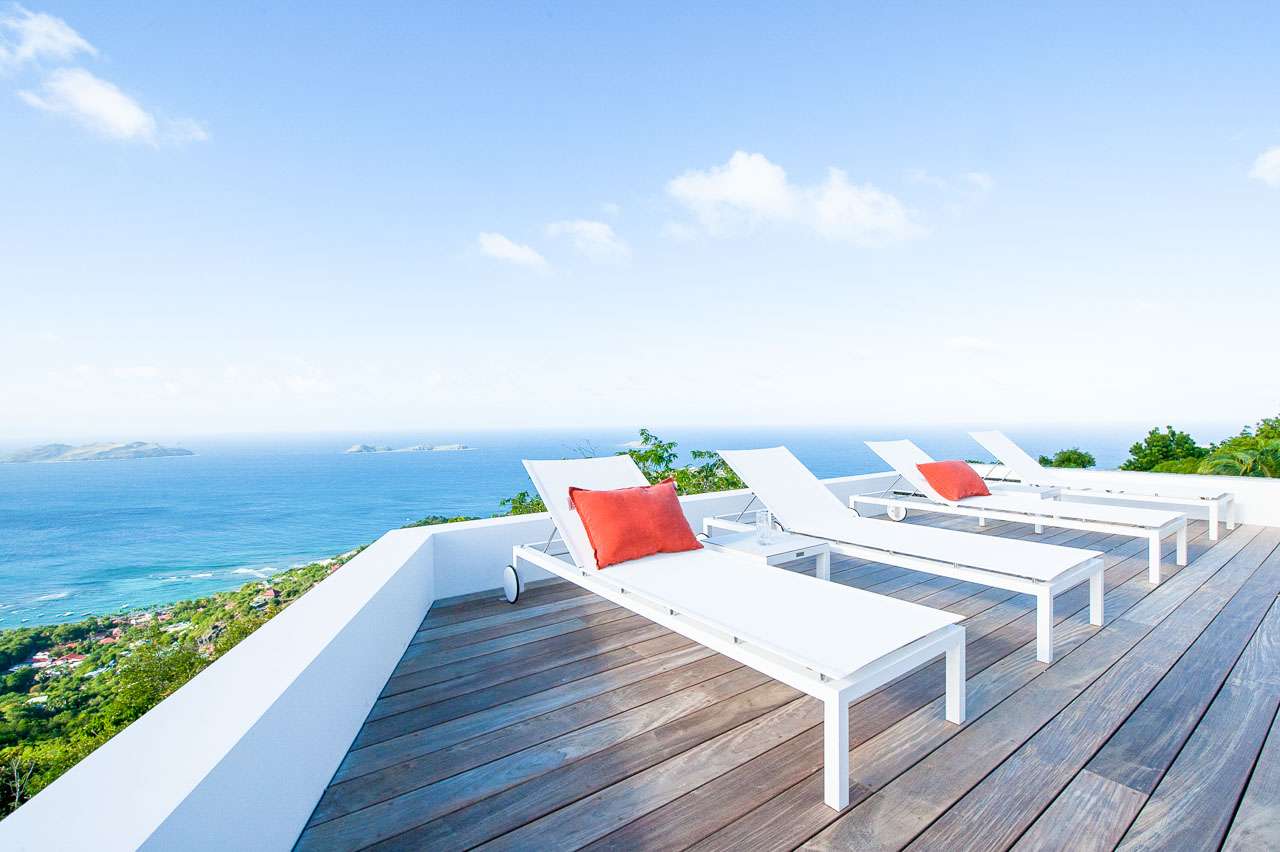 Welcome to Villa Ginger (villa code: WV GIN), an incredible 5-bedroom villa located in the hills of Petite Saline, St. Barts. Towering high above Lorient bay, this exquisite and private villa enjoys panoramic views and is within a short drive of several beaches. The interiors are clean, elegant, and stylish. Soothing white walls and creamy vaulted ceilings contrast with the graceful wooden furnishings, with thoughtful island-style décor on the walls. Newly-constructed, this is sophistication, luxury, and elegance all rolled into one vacation home. From everywhere, the unobstructed views are breathtaking. The panoramic vistas take in the islands of Île Toc Vers, Île Frégate, and Île Bonhomme, while in the distance is Saba, St. Martin, and Anguilla. At the heart of Villa Ginger is the airy and gorgeous great room. Here you’ll find the living room and kitchen, the entire space awash with tropical breezes and stunning views. In the center is the living room, where a large U-shaped sofa offers an inviting spot to unwind. Whether you’re delving into a good book or enjoying a conversation with family and friends, this is a graceful and stylish setting. A flat-screen TV to one side offers the option to enjoy a cozy night inside with your favorite movie. Located directly behind the living room sofa is Villa Ginger’s gourmet kitchen. Foodies will love experimenting with local ingredients and island flavors here. Our concierge can even organize grocery pre-stocking or delivery, catered meals, or arrange private chef service. Located between the pool and living room on the covered terrace is the large dining area, which accommodates 12 guests. It’s a magnificent setting for festive dinner parties, enjoying your food as the light fades over the ocean and distant islands. There are 5 bedrooms in total at Villa Ginger, all quiet and tranquil spots to relax – ideal for recharging each evening. Each room has a Euro king-sized bed, a TV with U.S. satellite channels, and an ensuite bathroom. The showers in each bathroom open to the outside, where each bedroom enjoys a private little garden. There are three bedrooms on the main level, located on either side of the living room. Descending downstairs reveals the final two bedrooms, both with a small sitting area on the terrace outside. Also on this level is a large fitness room and a second kitchen. The main deck at Villa Ginger is next to the house, taking full advantage of the ocean views. There’s boundless space to enjoy the good life in St. Barts. The expansive, 60-ft. pool will no doubt tempt you in for a dip each day, offering an easy way to cool off in the heat. Its infinity edge seemingly spills into the ocean below, while loungers on either side are ideal for sunbathing. Underneath a gazebo is a lounge area, a magnificent setting for a sunset cocktail hour. As the afternoon fades, the sky lights up in hues of pink, purple, red, and gold, casting its light across the rugged coast of St. Barts. In the distance, the islands of St. Martin and Anguilla twinkle to life. The lower level also has a deck, running the length of the two bedrooms. In the middle is a cove-like hot tub, a romantic spot for an evening soak. For days on the sand, the beaches at Lorient, Marigot, and Grand Cul-de-Sac are all 5-minutes away by car. Caretaker lives on-site with a separate private entrance and is located out of sight from the main property. During the December holidays the villa rents at full occupancy rates regardless of how many bedrooms are used.Please fill out the form to begin your inquiry and we will connect you with a seasoned villa rental specialist.