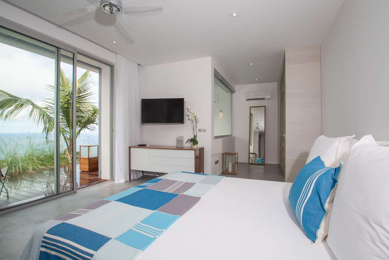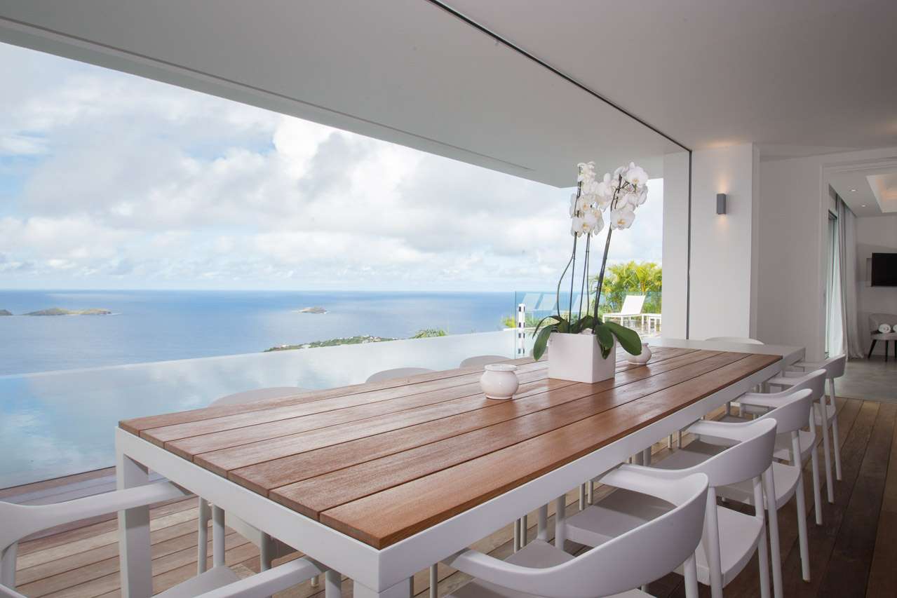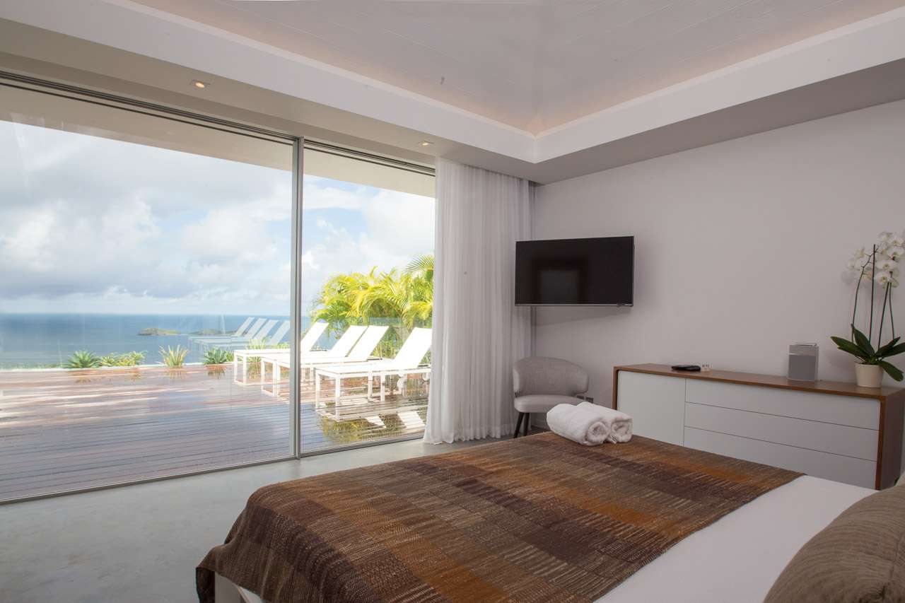 Welcome to Villa Ginger (villa code: WV GIN), an incredible 5-bedroom villa located in the hills of Petite Saline, St. Barts. Towering high above Lorient bay, this exquisite and private villa enjoys panoramic views and is within a short drive of several beaches. The interiors are clean, elegant, and stylish. Soothing white walls and creamy vaulted ceilings contrast with the graceful wooden furnishings, with thoughtful island-style décor on the walls. Newly-constructed, this is sophistication, luxury, and elegance all rolled into one vacation home. From everywhere, the unobstructed views are breathtaking. The panoramic vistas take in the islands of Île Toc Vers, Île Frégate, and Île Bonhomme, while in the distance is Saba, St. Martin, and Anguilla. At the heart of Villa Ginger is the airy and gorgeous great room. Here you’ll find the living room and kitchen, the entire space awash with tropical breezes and stunning views. In the center is the living room, where a large U-shaped sofa offers an inviting spot to unwind. Whether you’re delving into a good book or enjoying a conversation with family and friends, this is a graceful and stylish setting. A flat-screen TV to one side offers the option to enjoy a cozy night inside with your favorite movie. Located directly behind the living room sofa is Villa Ginger’s gourmet kitchen. Foodies will love experimenting with local ingredients and island flavors here. Our concierge can even organize grocery pre-stocking or delivery, catered meals, or arrange private chef service. Located between the pool and living room on the covered terrace is the large dining area, which accommodates 12 guests. It’s a magnificent setting for festive dinner parties, enjoying your food as the light fades over the ocean and distant islands. There are 5 bedrooms in total at Villa Ginger, all quiet and tranquil spots to relax – ideal for recharging each evening. Each room has a Euro king-sized bed, a TV with U.S. satellite channels, and an ensuite bathroom. The showers in each bathroom open to the outside, where each bedroom enjoys a private little garden. There are three bedrooms on the main level, located on either side of the living room. Descending downstairs reveals the final two bedrooms, both with a small sitting area on the terrace outside. Also on this level is a large fitness room and a second kitchen. The main deck at Villa Ginger is next to the house, taking full advantage of the ocean views. There’s boundless space to enjoy the good life in St. Barts. The expansive, 60-ft. pool will no doubt tempt you in for a dip each day, offering an easy way to cool off in the heat. Its infinity edge seemingly spills into the ocean below, while loungers on either side are ideal for sunbathing. Underneath a gazebo is a lounge area, a magnificent setting for a sunset cocktail hour. As the afternoon fades, the sky lights up in hues of pink, purple, red, and gold, casting its light across the rugged coast of St. Barts. In the distance, the islands of St. Martin and Anguilla twinkle to life. The lower level also has a deck, running the length of the two bedrooms. In the middle is a cove-like hot tub, a romantic spot for an evening soak. For days on the sand, the beaches at Lorient, Marigot, and Grand Cul-de-Sac are all 5-minutes away by car. Caretaker lives on-site with a separate private entrance and is located out of sight from the main property. During the December holidays the villa rents at full occupancy rates regardless of how many bedrooms are used.Please fill out the form to begin your inquiry and we will connect you with a seasoned villa rental specialist.