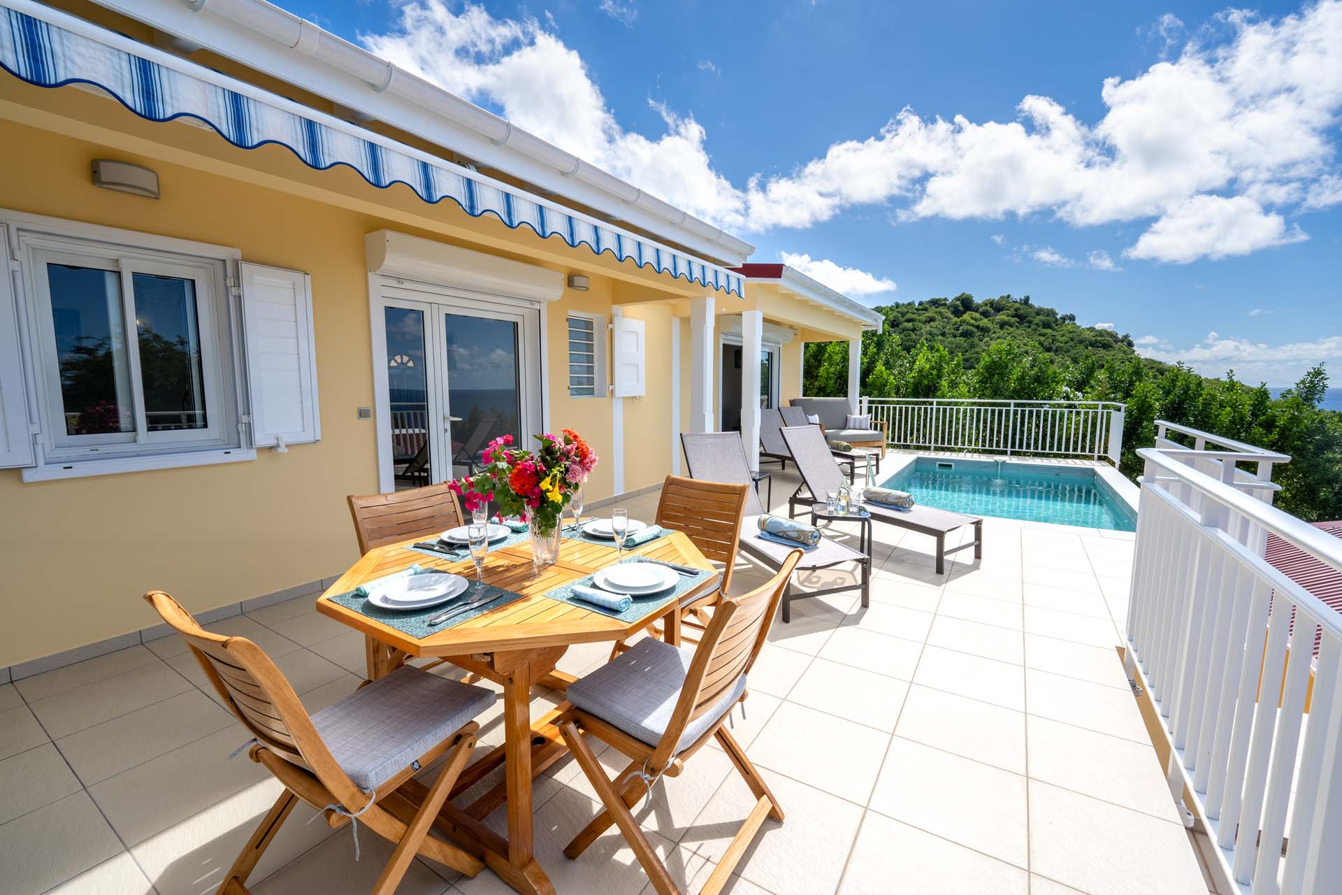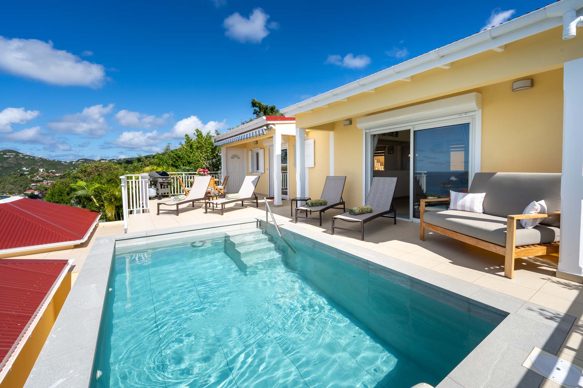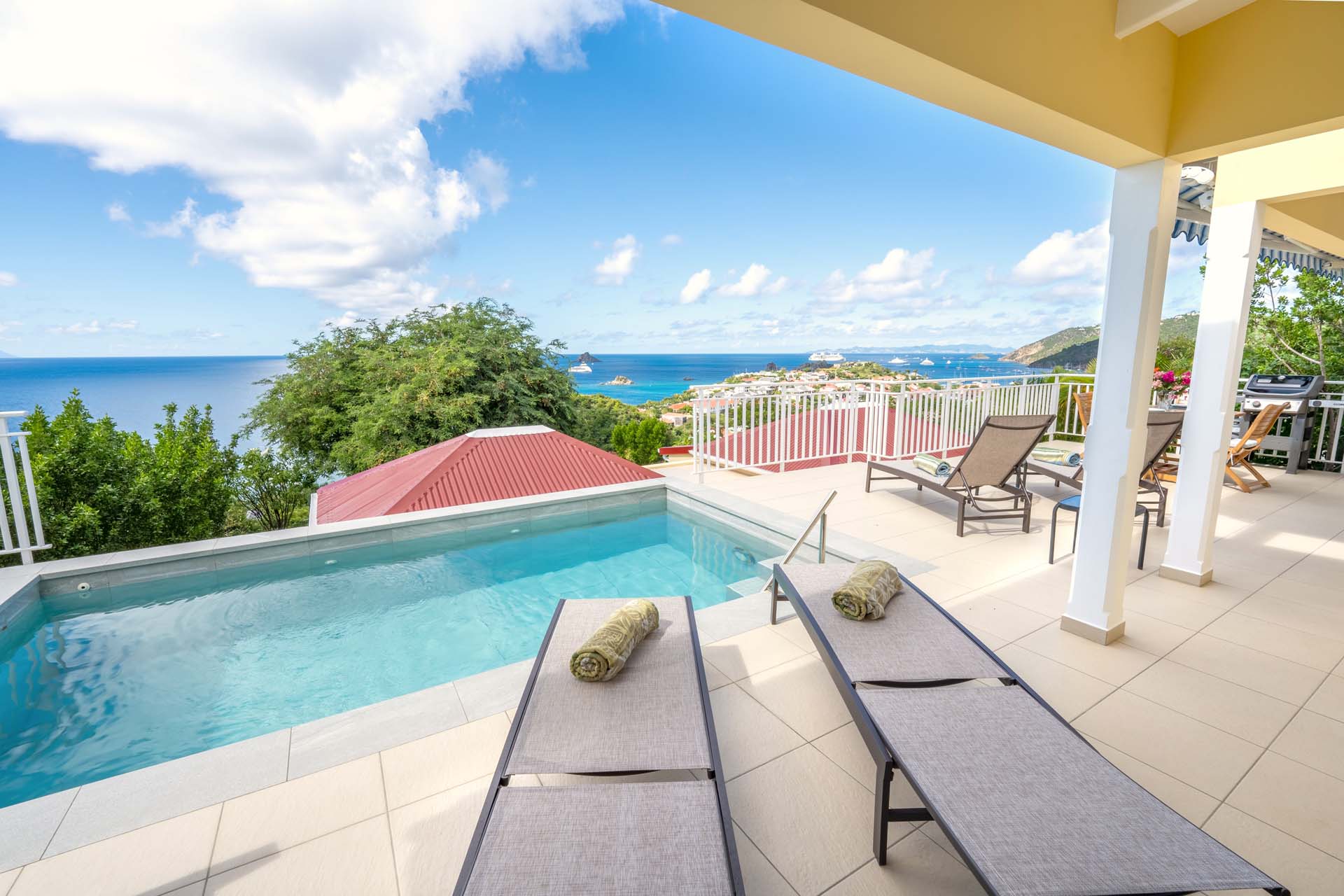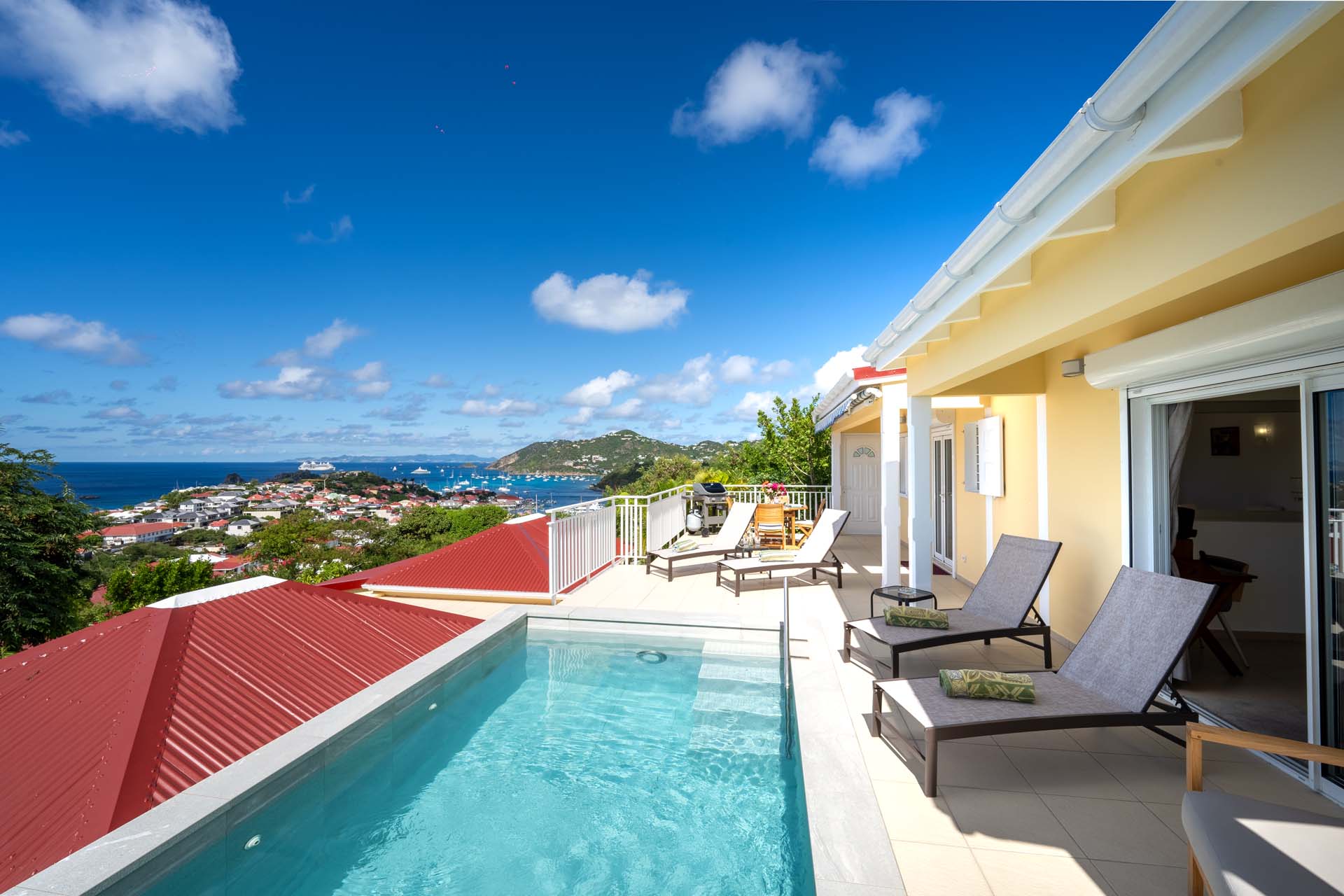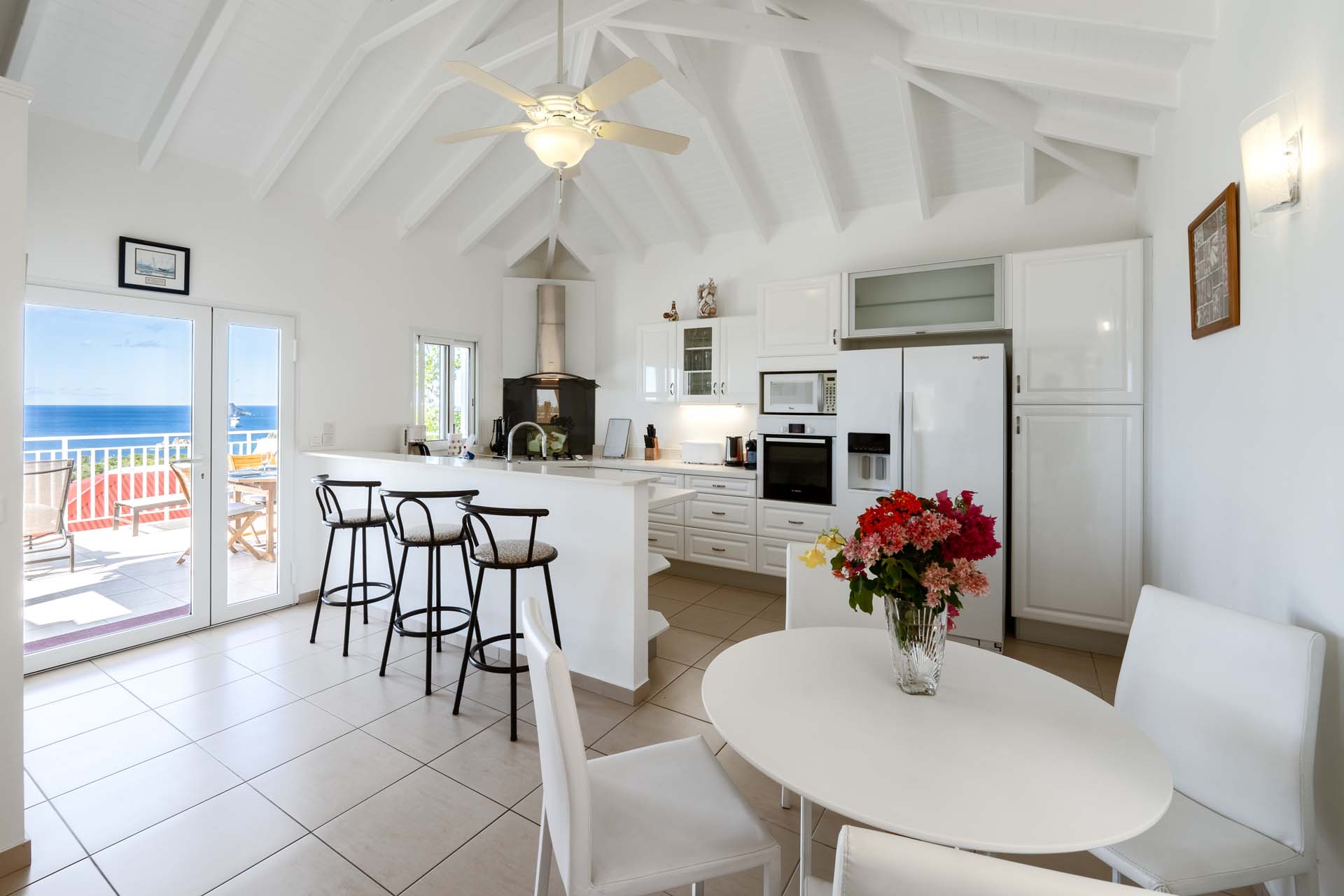 Villa Gros Islets (villa code: WV GIS) is set in the heart of the island’s lively ambiance, this stunning property epitomizes luxury living. If your idea of paradise includes a breathtaking vacation home with mesmerizing sunset views just minutes from the beach, then Villa Gros Ilets is your perfect retreat. Nestled amid the lush landscapes of St. Barts’ scenic Lurin district, this elegant villa is conveniently close to Shell Beach and the charming harbor town of Gustavia. Designed across two levels, the villa offers a seamless blend of comfort and sophistication. The upper level features the air-conditioned main living area, where a stylish living room flows into a sleek, modern white kitchen. A convenient breakfast bar makes for the perfect spot to enjoy a quick snack or evening cocktails. The living space extends onto an outdoor terrace, revealing panoramic views of the shimmering Caribbean waters. On the lower level, two equally spacious bedroom suites provide ultimate relaxation, each furnished with king-size beds, private bathrooms, air conditioning, and intimate terraces ideal for unwinding. The villa’s expansive deck invites you to soak up the sun, take a refreshing swim in the pool, or enjoy a leisurely lunch under the covered portico while gazing at the stunning turquoise sea. As night falls, head to Gustavia for boutique shopping and an exquisite dining experience at one of its many gourmet restaurants. During the December holidays, the villa rents at the full occupancy rate regardless of how many bedrooms are used.Please fill out the form to begin your inquiry and we will connect you with a seasoned villa rental specialist.