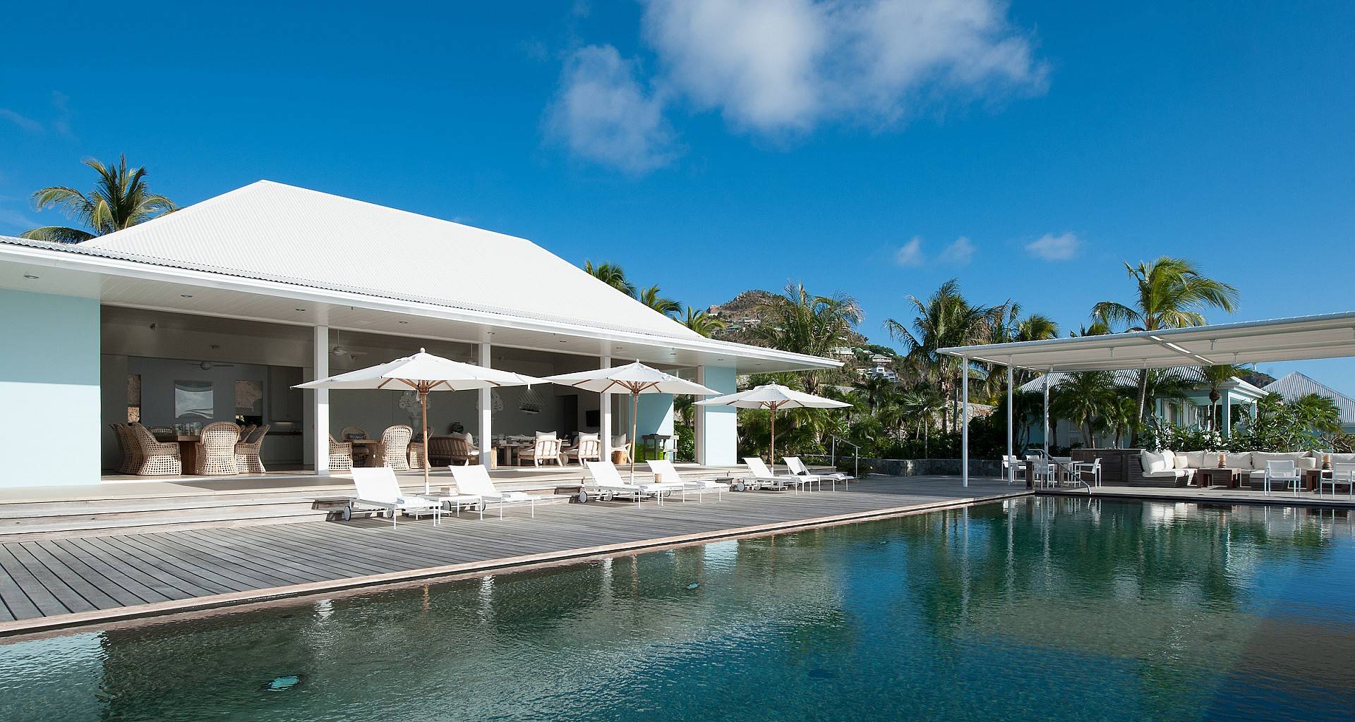 Welcome to the incredible Villa Hill House (villa code: WV BOW), a stunning 4-bedroom villa located in Camaruche, St. Barts. Set amidst beautiful tropical gardens and with breathtaking ocean vistas, this home is a masterpiece of design, style, and St. Barts’ elegance The sweeping interiors of Villa Hill House are luxurious, bright, and airy. A minimalist style is punctured with exquisite artwork and high-end furnishings, offering every comfort for your island getaway. At every turn, terrific views over the Caribbean and St. Barts coastline capture your gaze, enhancing the elegant and flowing open-plan design of the home. Set within minutes of several beaches and shopping, this villa also enjoys impeccable privacy. The surrounding gardens feature palm and coconut trees, lush ferns, and wild orchids. On a clear day, the views stretch all the way to Anguilla and St. Martin. Lorient Beach is a 5-minute drive, and Gustavia is 15 minutes by car. The spacious, open living areas inside Villa Hill House offer a taste of the luxurious and laid-back lifestyle of the island. There’s fantastic artwork to admire, plenty of seating for relaxing, and ample space for entertaining guests. The main living area enjoys soaring ceilings above, and wall-to-wall sliding doors that open to the pool terrace. The blend of indoors with the outside immerses you in the stunning views, best enjoyed from the several soft sofas and armchairs scattered around a large table stacked with interesting books to read. The professional kitchen at Villa Hill House features a pared-back design, keeping the room warm and welcoming. It can also be closed off completely from the living room for catered dinner parties, leaving you to show off the rest of the villa to your guests. The long dining table features wicker chairs and can seat up to 10 guests, ideal for an evening dinner at the end of a long day exploring the island. A second table next to it is ideal for fresh coffee and eggs in the morning, with seating for up to 6. For those who prefer alfresco dining, a second table sits on the covered terrace outside, letting you pair your meal with views over the shimmering Caribbean at twilight. The 4 bedrooms at Villa Hill House are separate from the main house, located inside private bungalows. To the right, facing the gorgeous views and pool is the large master suite. This room enjoys a four-poster king-sized bed, a large dressing room, and a private terrace area with spectacular views of the ocean over the top of tropical palms. The space also has a writing desk for those who are inspired by the location and an ensuite with a Phillippe Starck bathtub. Stepping across the deck and down a path behind the main house leads you through a flower garden, at the end of which are two more bungalows. One bungalow has a king suite, while the other has a pair of bedrooms each with two twin beds, ideal for children. Unfolding out from the interior living spaces, the outdoor terrace of Villa Hill House offers guests an incredible spot to soak up the Caribbean vibes. The infinity pool stretches almost the width of the terrace, coaxing you in for refreshing swims during the day. Loungers for sunbathing line the water. To one side, a sunken gazebo has seating for up to 20 people, the ideal spot for a sunset cocktail soiree. There’s nowhere better to watch the fading afternoon send streaks of orange, pink, and gold across the sea and sky. During the Thanksgiving and December holidays, the villa rents at full occupancy rates regardless of how many bedrooms are used.Please fill out the form to begin your inquiry and we will connect you with a seasoned villa rental specialist.