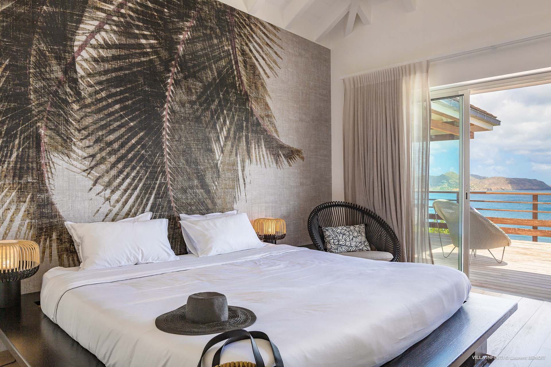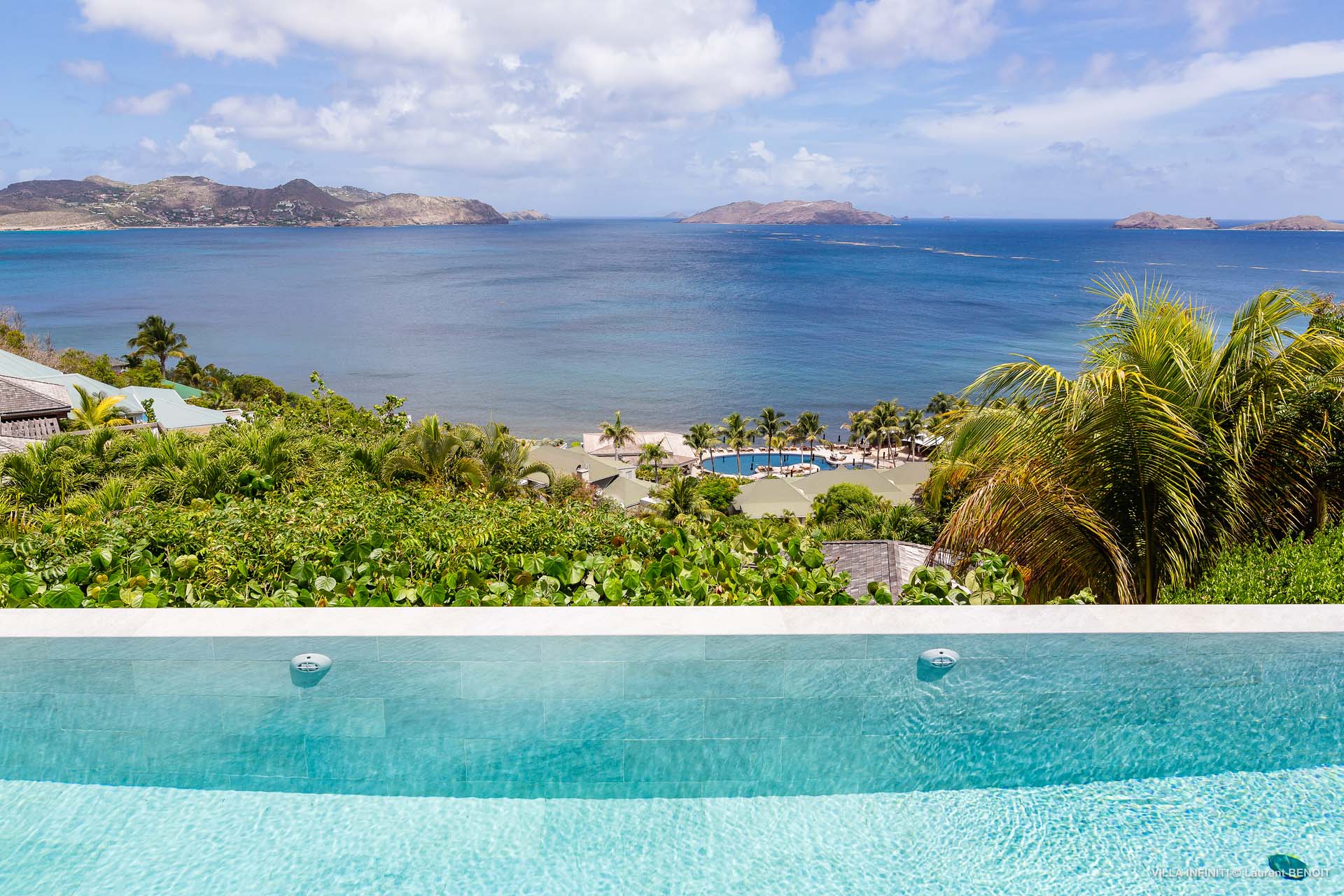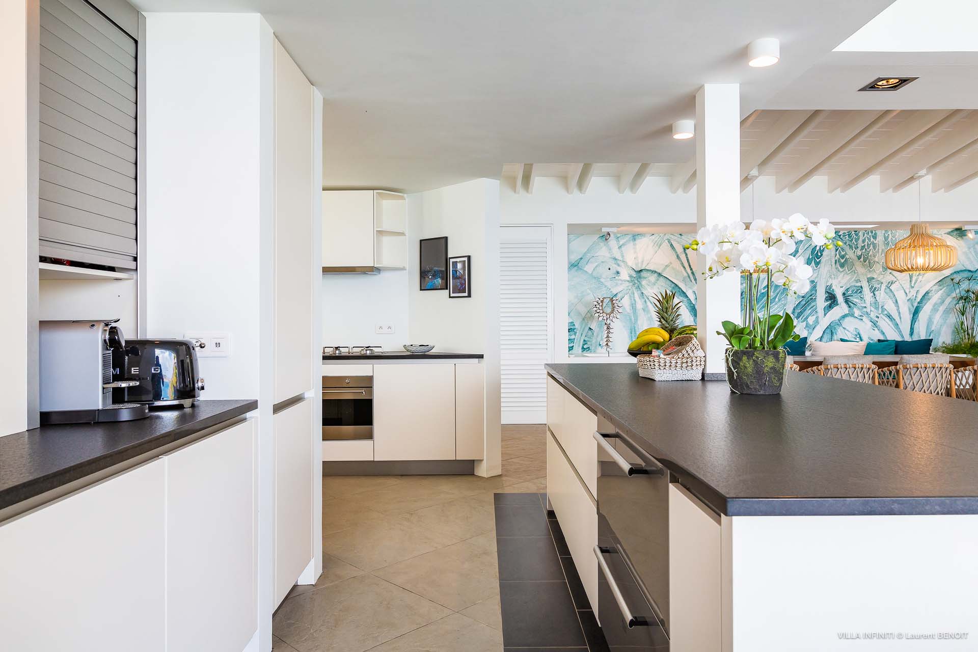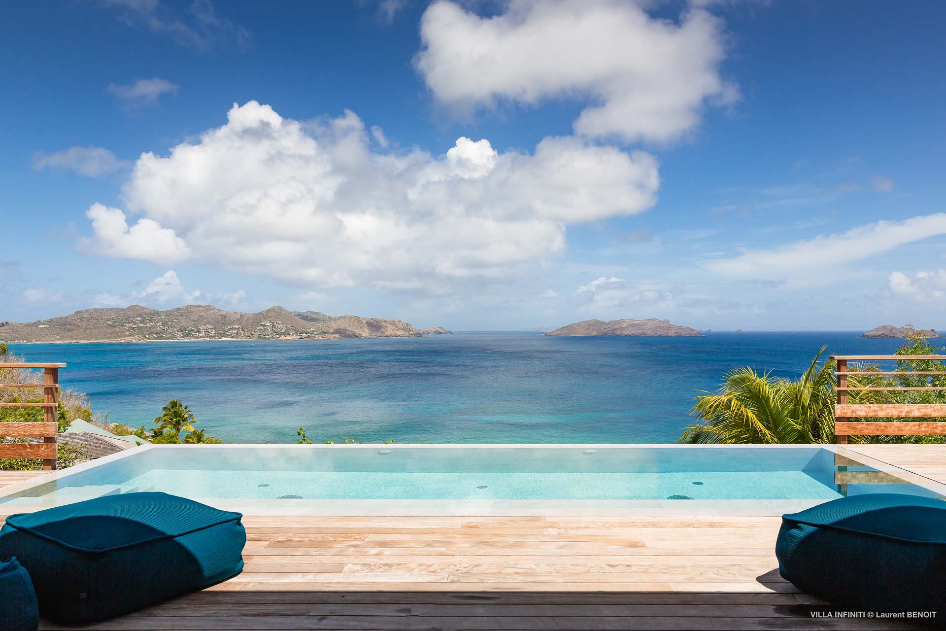 Embrace the good life at Villa Infinity (villa code: WV INF), an idyllic 3-bedroom villa in the popular area of Pointe Milou, St. Barts. This is a lively Caribbean villa with expansive views, a delightful and modern home imbued with the warmth and elegance of the island. Villa Infinity was recently-renovated to contemporary standards, and the results are wonderful. The design takes a fun approach to the island style, with the all-white walls contrasted by loud feature wallpapers, beautiful wicker dining chairs and light fixtures, and pops of color in the artwork that adorns the wall. Villa Infinity sits about halfway up the hillside above Hotel Christopher, and fully benefits from the famous views the hotel is known for. The immersive ocean views are only broken up by the offshore islands, and the sunset views are incredible. The nearest beach is a 5-minute drive, while the boutique shops and restaurants in St. Jean are 10 minutes by car. The well-designed main room inside Villa Infinity features an inviting open-concept floor plan. Gorgeous island light washes through the space, bathing the furnishings in touches of gold in a heady mix of Caribbean color. The living area is furnished with comfortable couches and chairs, set in such a way to be able to fully take in the view. It’s an idyllic place to kick back and relax, slipping into the slow pace of life in St. Barts. Next to the living area is Villa Infinity’s modern kitchen, complete with a breakfast island. With all the modern conveniences for cooking, this space makes it tempting to stay in and prepare your meals at home. Our concierge could even organize a grocery delivery, or for a special occasion, a private chef. The kitchen is within easy serving distance of the cozy indoor dining table, with seating for eight guests. With the azure blues of the feature wall right behind, it’s an atmospheric spot for a gourmet island meal. There are 3 bedrooms inside Villa Infinity, contemporary and quiet spaces for relaxing and recharging each evening. There are two bedrooms on the main floor, located on either side of the living room, one of which is the master suite. This room is slightly bigger than the others, with a king-sized bed and a spacious ensuite with a shower that can be opened to the outside. The other bedroom on the main level has a king-sized bed. The third bedroom is on the lower level, also with a king-sized bed. Each bedroom features an ensuite bathroom, with an open layout and no door dividing the two spaces. Outside, Villa Infinity gets its name from the stunning infinity pool at the edge of the terrace, breaking up the horizon. Cool and refreshing, you could easily spend a day lounging in the water and gazing out at the shimmering blue hues of the Caribbean below. There are plenty of loungers for sunbathing, and a large gazebo in the far corner is a gorgeous setting for alfresco meals. As the afternoon fades, there’s nothing quite like kicking back in one of the plush daybeds, drinking in hand, and admiring the golden sunset unfolding across the sea and sky. During the December holiday the villa rents at the full occupancy rate regardless of how many bedrooms are used.Please fill out the form to begin your inquiry and we will connect you with a seasoned villa rental specialist.