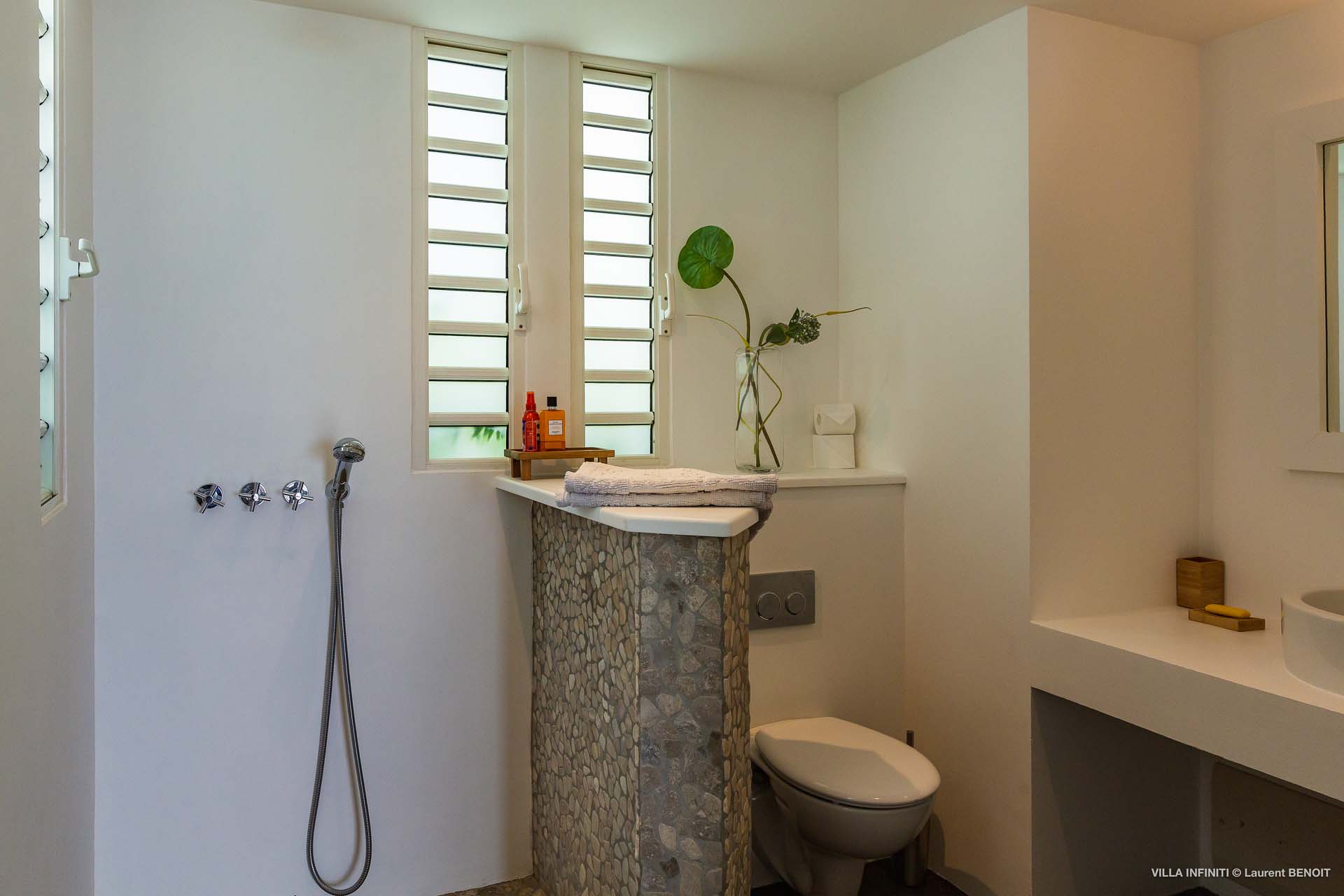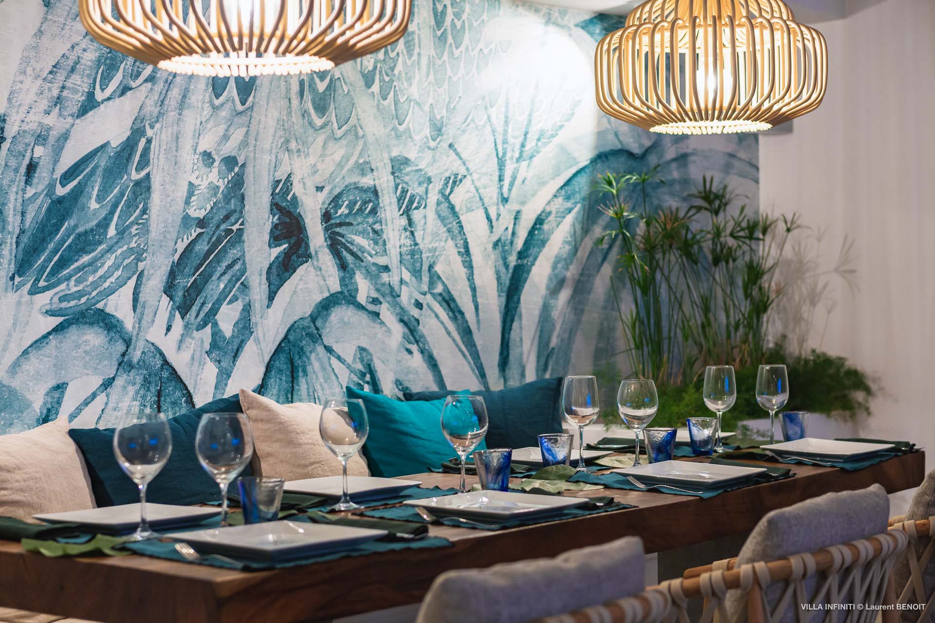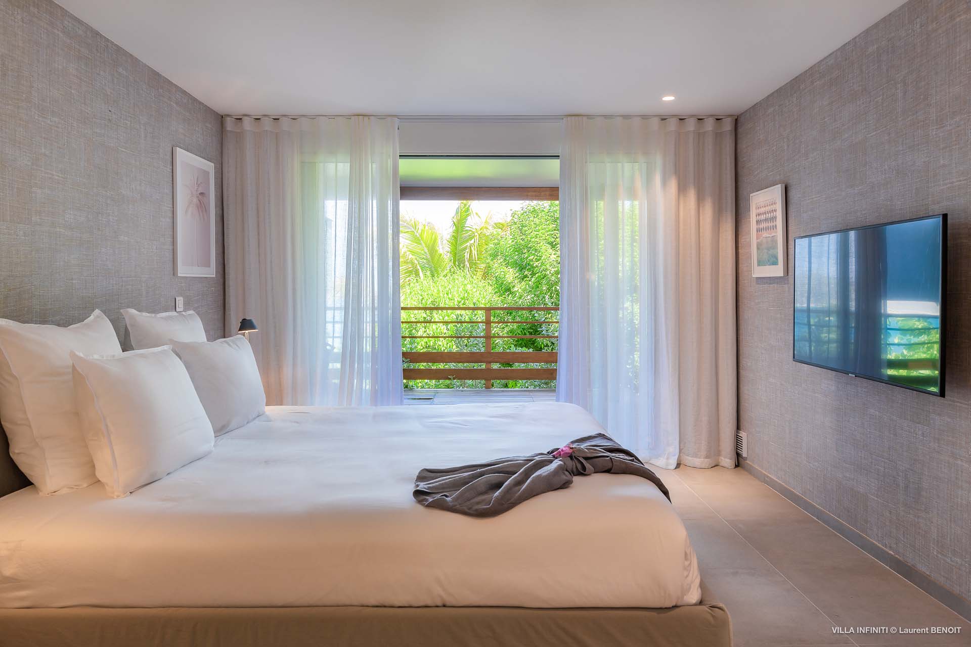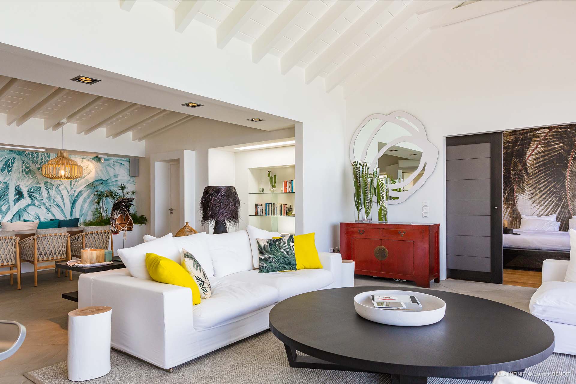 Embrace the good life at Villa Infinity (villa code: WV INF), an idyllic 3-bedroom villa in the popular area of Pointe Milou, St. Barts. This is a lively Caribbean villa with expansive views, a delightful and modern home imbued with the warmth and elegance of the island. Villa Infinity was recently-renovated to contemporary standards, and the results are wonderful. The design takes a fun approach to the island style, with the all-white walls contrasted by loud feature wallpapers, beautiful wicker dining chairs and light fixtures, and pops of color in the artwork that adorns the wall. Villa Infinity sits about halfway up the hillside above Hotel Christopher, and fully benefits from the famous views the hotel is known for. The immersive ocean views are only broken up by the offshore islands, and the sunset views are incredible. The nearest beach is a 5-minute drive, while the boutique shops and restaurants in St. Jean are 10 minutes by car. The well-designed main room inside Villa Infinity features an inviting open-concept floor plan. Gorgeous island light washes through the space, bathing the furnishings in touches of gold in a heady mix of Caribbean color. The living area is furnished with comfortable couches and chairs, set in such a way to be able to fully take in the view. It’s an idyllic place to kick back and relax, slipping into the slow pace of life in St. Barts. Next to the living area is Villa Infinity’s modern kitchen, complete with a breakfast island. With all the modern conveniences for cooking, this space makes it tempting to stay in and prepare your meals at home. Our concierge could even organize a grocery delivery, or for a special occasion, a private chef. The kitchen is within easy serving distance of the cozy indoor dining table, with seating for eight guests. With the azure blues of the feature wall right behind, it’s an atmospheric spot for a gourmet island meal. There are 3 bedrooms inside Villa Infinity, contemporary and quiet spaces for relaxing and recharging each evening. There are two bedrooms on the main floor, located on either side of the living room, one of which is the master suite. This room is slightly bigger than the others, with a king-sized bed and a spacious ensuite with a shower that can be opened to the outside. The other bedroom on the main level has a king-sized bed. The third bedroom is on the lower level, also with a king-sized bed. Each bedroom features an ensuite bathroom, with an open layout and no door dividing the two spaces. Outside, Villa Infinity gets its name from the stunning infinity pool at the edge of the terrace, breaking up the horizon. Cool and refreshing, you could easily spend a day lounging in the water and gazing out at the shimmering blue hues of the Caribbean below. There are plenty of loungers for sunbathing, and a large gazebo in the far corner is a gorgeous setting for alfresco meals. As the afternoon fades, there’s nothing quite like kicking back in one of the plush daybeds, drinking in hand, and admiring the golden sunset unfolding across the sea and sky. During the December holiday the villa rents at the full occupancy rate regardless of how many bedrooms are used.Please fill out the form to begin your inquiry and we will connect you with a seasoned villa rental specialist.