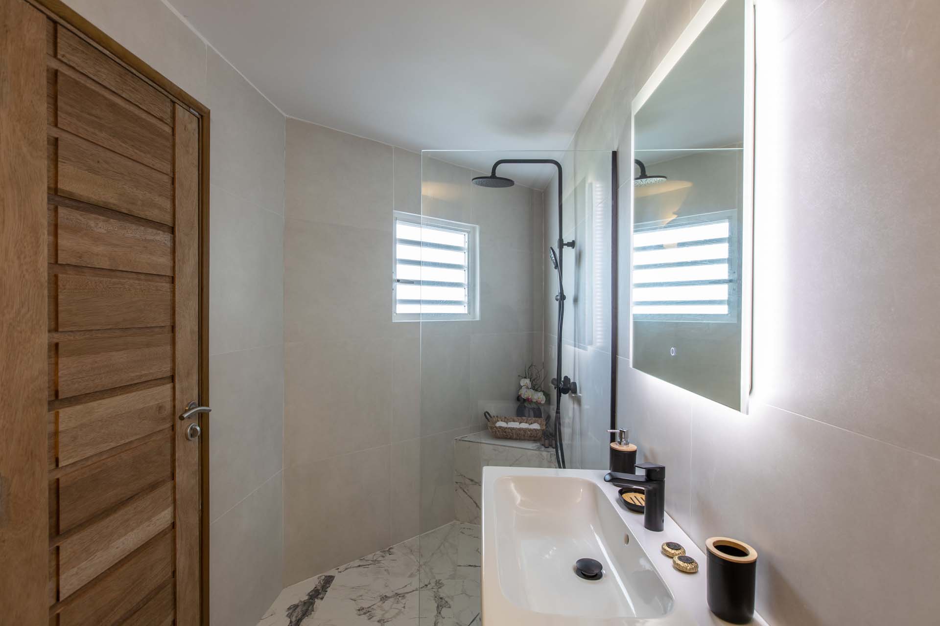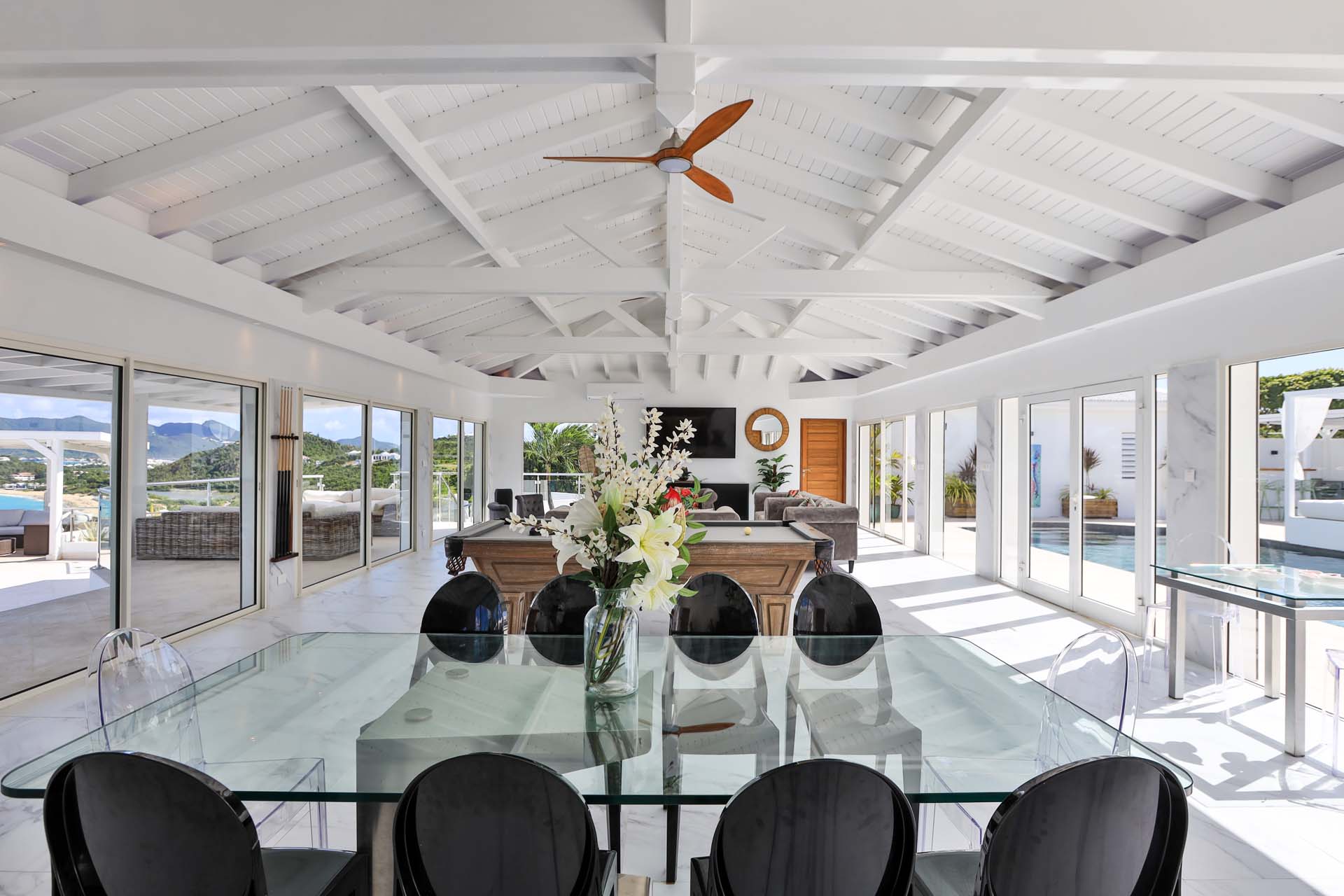 Nestled within the sought-after, secluded Terres Basses residential community, the villa's location is optimal, just a short 10-minute drive from shops, restaurants, and bars on both the Dutch and French sides.