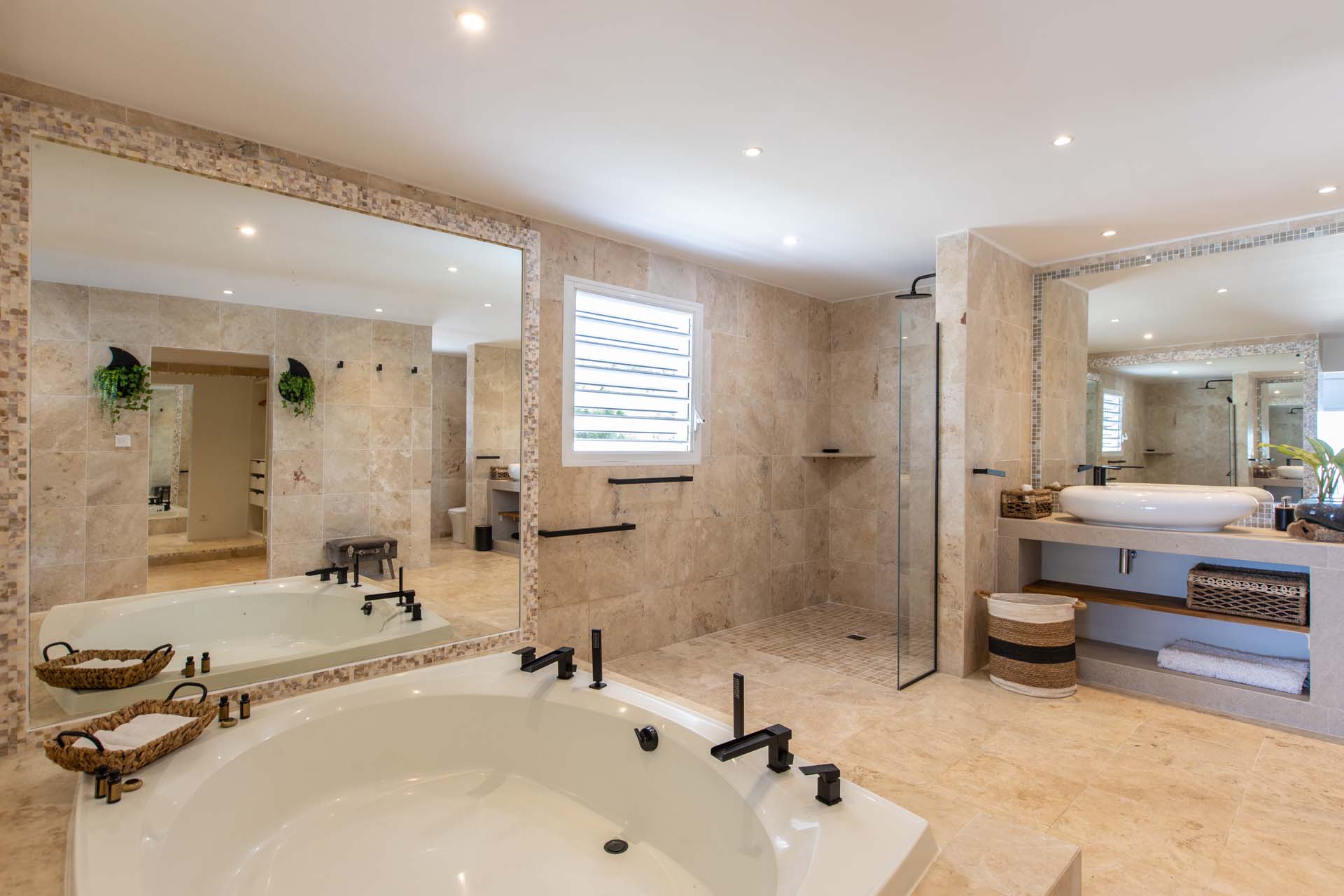 Renovated in 2022, the property has been meticulously redecorated with sophisticated flair and cutting-edge equipment. The spacious bedrooms, each accompanied by an ensuite bathroom, offers comfortable accommodations. On the primary level, three bedrooms grant access to the main pool and the expansive terrace.