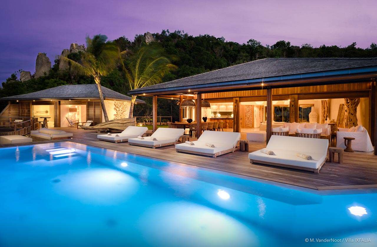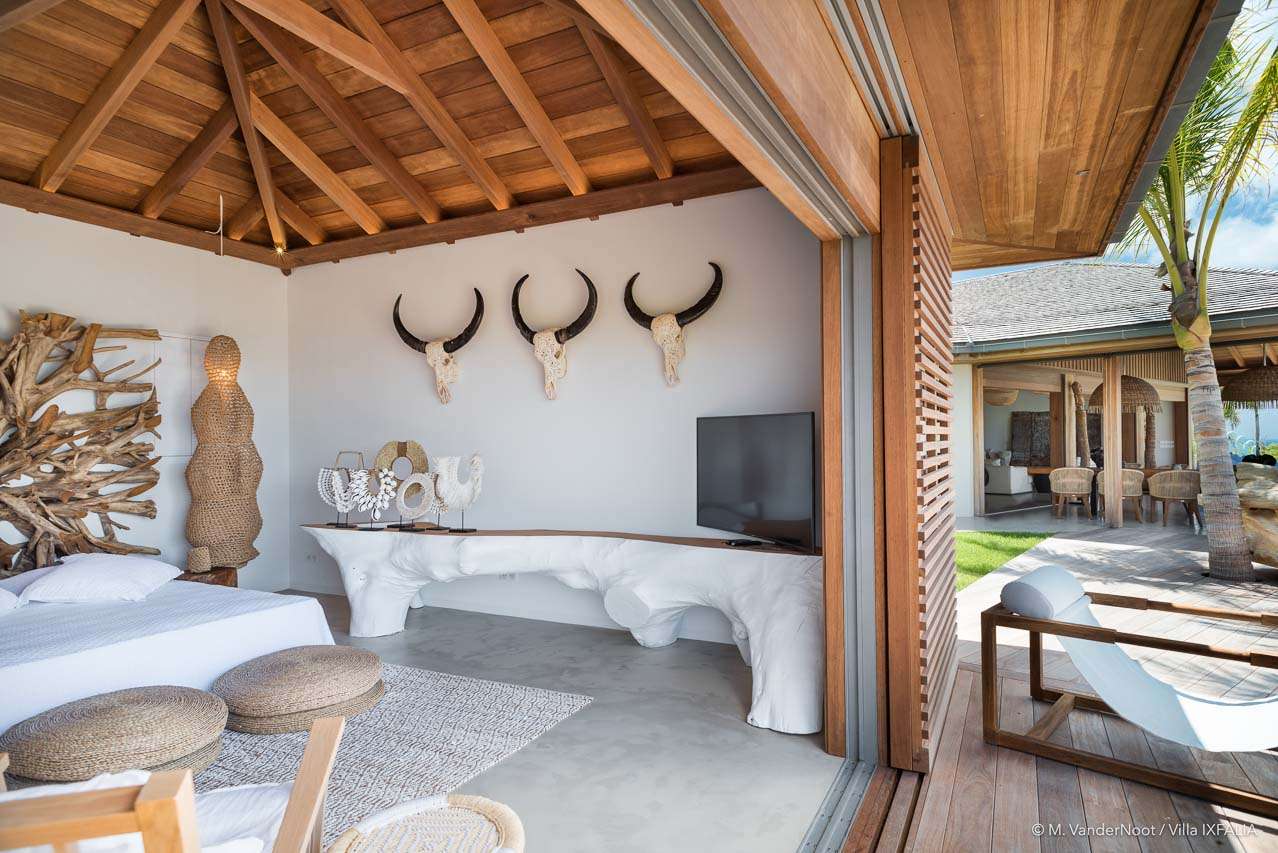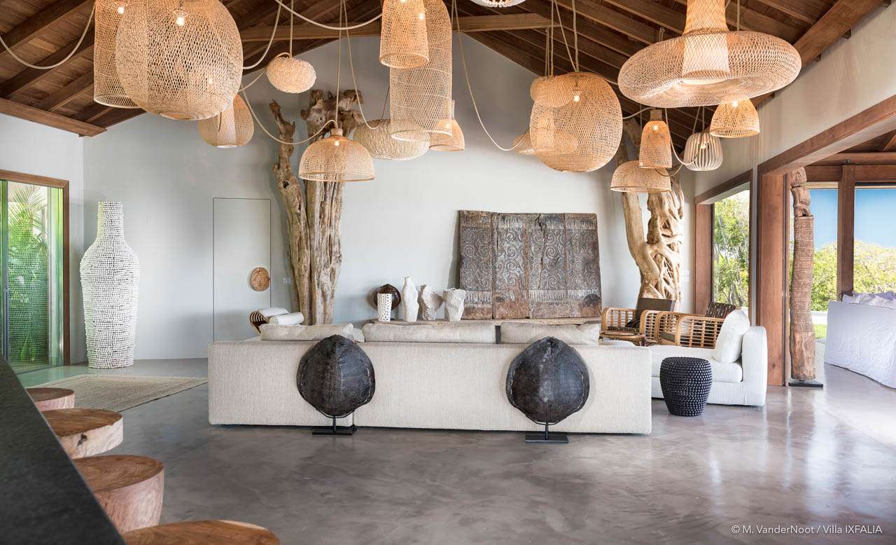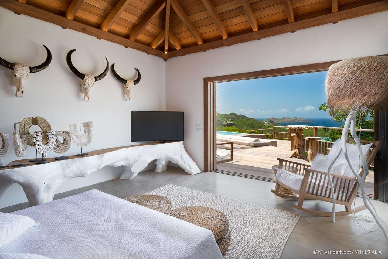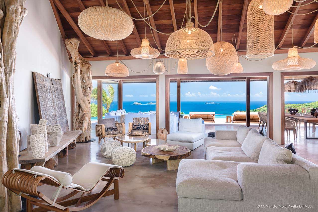 Embrace the St. Barts’ lifestyle at Villa Ixfalia (villa code: WV IXF), an enticing 4-bedroom villa in St. Jean. Evoking a sense of discovery and adventure, this stunning island home is grounded in an exotic, tribal atmosphere, providing the ideal escape for a St. Barts getaway. The interiors of Villa Ixfalia feature an eclectic décor, with a strong African aesthetic. Expect driftwood headboards, natural wooden furnishings, and captivating bird nest light fixtures hanging from above. All the while, the views of the Caribbean below will capture your gaze, taking in the offshore islands of Île Toc Vers, Île Frégate, and Île Bonhomme. Located a few minutes from the beach, shops, and restaurants, Villa Ixfalia also enjoys easy access to the best of St. Barts. The capital Gustavia is a 10-minute drive. As part of WIMCO’s Special Reserve Collection of villas, Ixfalia also comes with a full staff and impeccable service. The layout of Villa Ixfalia comprises the main house and a bedroom bungalow, accessed from the outdoor terrace. Inside the main house is the large great room, with a large indoor living room and modern kitchen. Above, a canopy of captivating bird nest light fixtures makes you feel as if you’re in a rustic and luxurious African lodge. This great room enjoys a fantastic décor, littered with souvenirs carted back from travels across the world. Rattan textures and wooden accents keep things relaxing and cool, letting you unwind on the plush sofas in style. Whether you’re enjoying a good book, some conversation, or a drink while gazing out at the Caribbean, this space is incredible. A modern kitchen sits next to the living room, the domain of the included private chef. Well-versed in both international favorites and local recipes, you’ll eat well during your stay at Villa Ixfalia. The dining table sits on the covered terrace, a natural and large wooden table with stylish rattan chairs. With immersive views like these, it’s the ideal place to gather with family and friends over a meal and some drinks each evening, discussing the day's events and admiring as twilight casts the soft blue glow across the landscape. The bedrooms inside Villa Ixfalia, continuing with the relaxing natural décor. The Zen vibe inside each of the bedrooms promises a wonderful and laid-back stay, letting you recharge in style and slip into the island pace of life. The master bedroom occupies a separate bungalow, featuring a decadent queen-sized bed, ensuite with indoor and outdoor shower, and a private outdoor terrace. Three other bedrooms are inside the main house, all with queen-sized beds. There are two with ocean views and one on the other side of the house with views over the lush garden. All three are also ensuite, with two featuring outdoor showers like the master bedroom. The outdoor areas at Villa Ixfalia are ideal for both lounging around during the day and entertaining guests. Next to the main living space inside, a large covered terrace features a second living area, with even more luxuriously soft sofas. It’s the ideal spot to kick back with a drink, taking in the shimmering Caribbean Sea below. An angled and heated infinity pool stretches out alongside the main house, an idyllic spot for a dip to cool off. There are loungers for sunbathing, reading, and afternoon naps, and several more seating areas in both sun and shade. The airy and beautiful spaces outside are ideal for spending time with your loved ones. Located below the property is a sundeck and a separate bungalow, which houses a fitness room. During the Thanksgiving and December holidays, the villa rents at full occupancy rates regardless of how many bedrooms are used. * Note - A four-wheel drive is highly recommendedPlease fill out the form to begin your inquiry and we will connect you with a seasoned villa rental specialist.