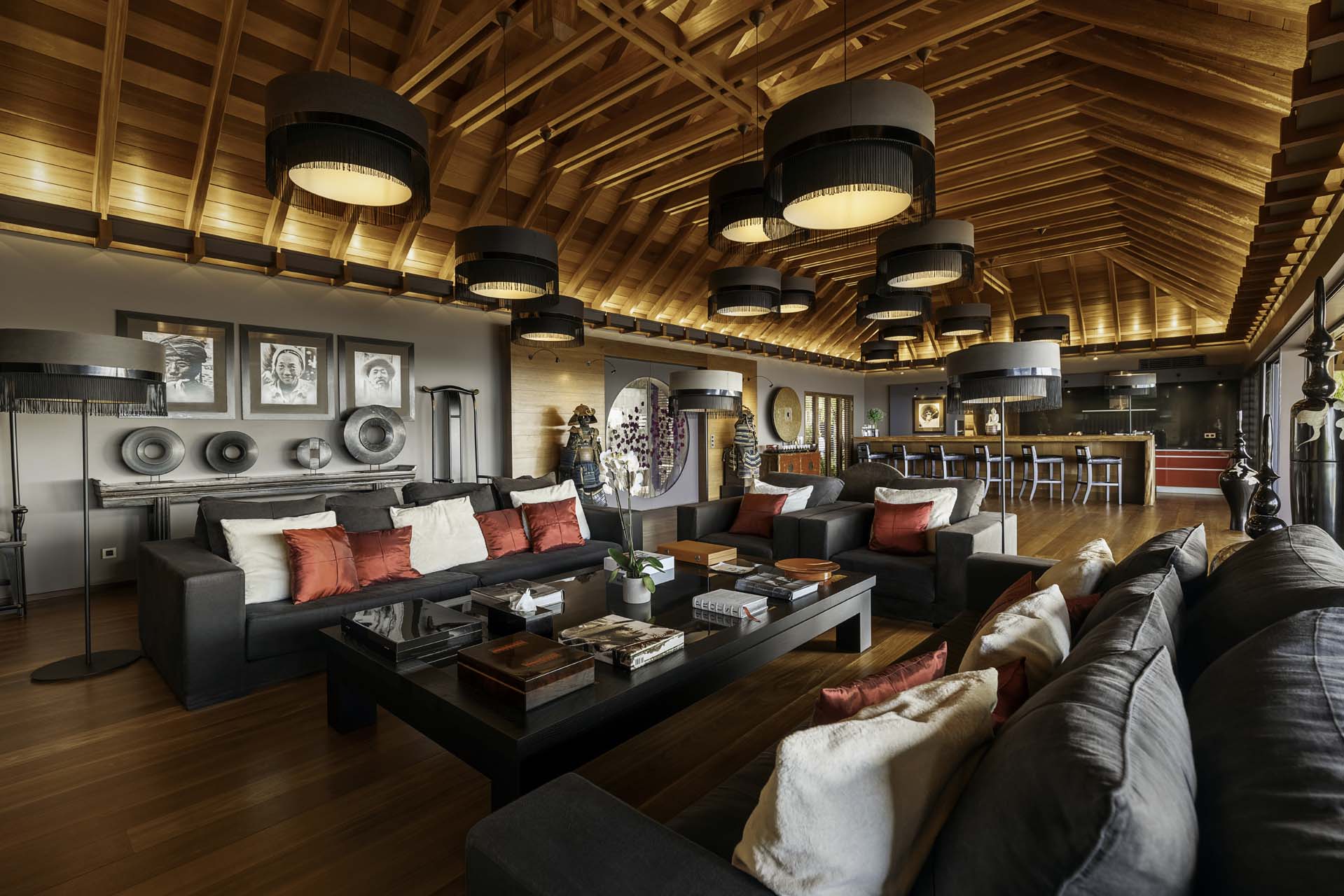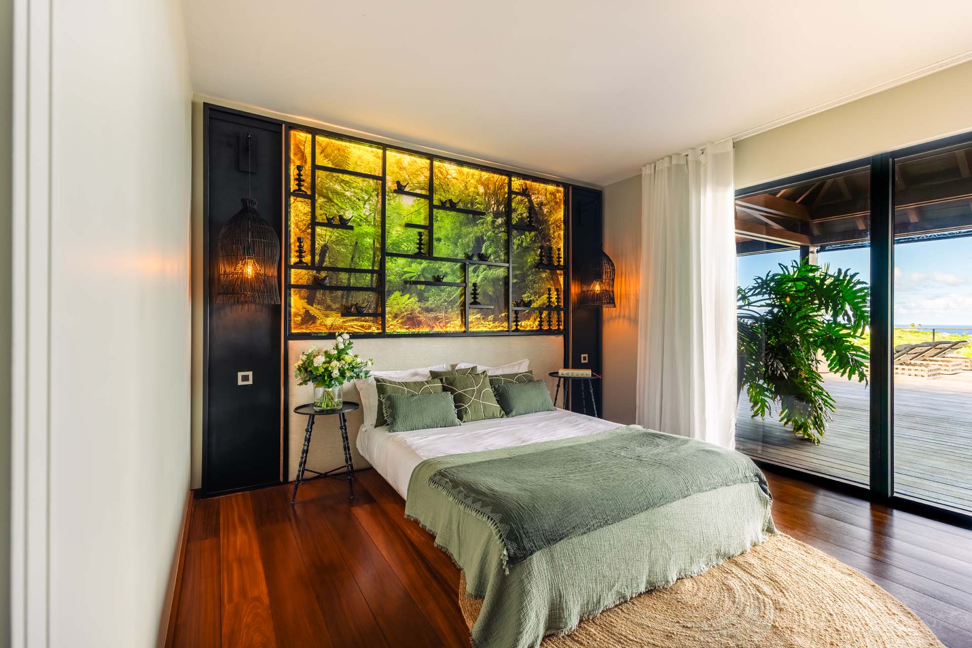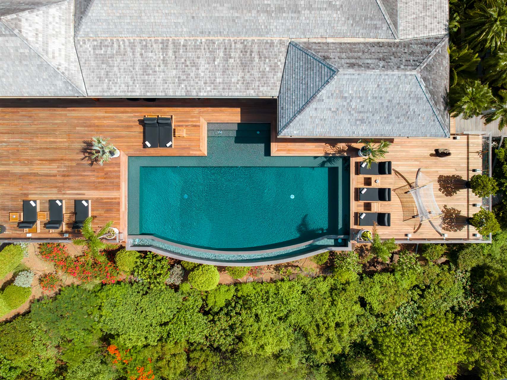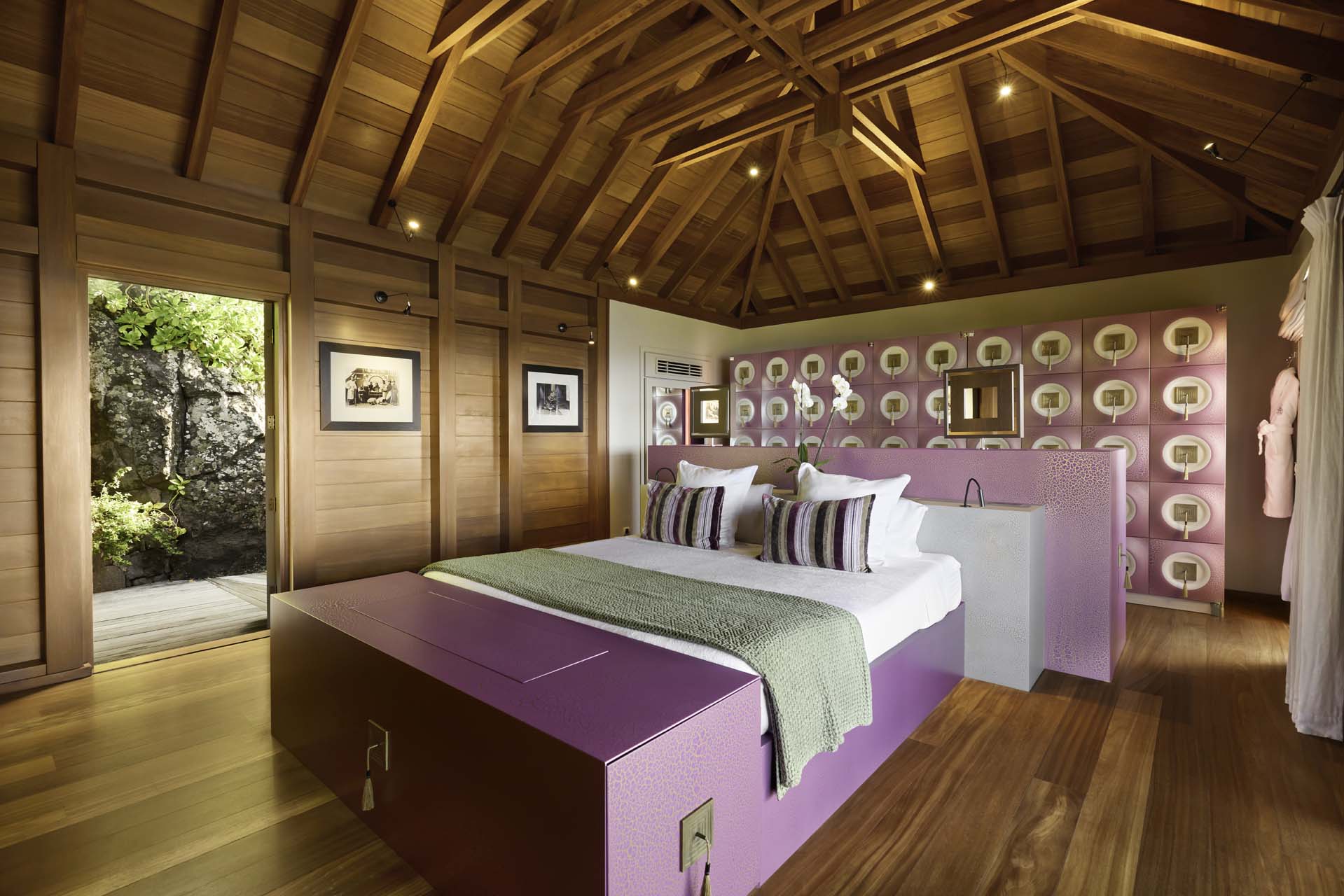 Indulgent, luxurious, and exclusive, Villa Jade (villa code: WV JLH) is one of the most incredible villas in St. Barts. A stay at this 8-bedroom island home in Marigot will make you the envy of all your friends – and everyone else vacationing in St. Barts as well. Stepping inside Villa Jade, you’ll immediately appreciate the owners’ eye for a striking design. The interiors are a tribute to Asia, its discreet traits of modernity and timelessness, coaxing you to relax. The entire home is a utopia; serene and effortlessly cool, successfully blending the East with the West. Set on the hillside of Marigot, Villa Jade evokes a sense of island whimsy with its ocean views. Your gaze will be drawn across the sparkling Marigot Bay, with Turtle Island sitting offshore. The beach is a 5-minute drive down the hill, with shops and restaurants around 10 minutes away. Upon entering the villa the Asian influence becomes apparent: a small wooden bridge straddles a pond of water lilies and reeds where koi carp peacefully swim. This is bordered on one side by a wall of pebbles over which water cascades, creating a bubbling, Zen-like atmosphere. Two 17th-century samurai soldiers guard the huge living area, where 14 black, fringed Moi lamps hang at varying heights to fabulous effect. There’s a pair of luxurious sofas to kick back on and take it all in, admiring the Asian décor, natural woods, and magnificent views. Everything from the television cabinet to the kitchen stools was custom-made for the villa. Foodies will fall in love with the chef-level kitchen at Villa Jade. The dining table sits on the covered terrace outside, overlooking the pool and the Caribbean Sea beyond. The 8 bedrooms at Villa Jade are equally as impressive as the rest of the villa – you’ll remember this property long after you’ve returned home. The master bedroom is spectacular. Above a carpet of black pebbles, an enormous bed made from open slats of wenge wood is the centerpiece of the room. The Hermes orange headboard was meticulously created by the famous Alexandre Mareuil in Bordeaux. Three more bedrooms are set inside private cottages, each decorated with a specific theme of Asian culture. The soft beds promise a wonderful night’s sleep. There are two more bedrooms designed for kids, with bright pink walls. The eighth room is ideal for staff or a live-in nanny. The icing on the cake is the enchanting views from Villa Jade’s outdoor terrace. Taking in Marigot Bay and the offshore Turtle Island, your gaze will constantly be drawn to the horizon, spying out luxury yachts as they cruise by. There’s plenty of plush seating in sun and shade; day beds, lounge areas, and sunbathing beds all offer comfortable spots to kick back and take it all in. The striking pool is also tempting, its black, mirror-like tiles create superb lighting effects both day and night. During the Thanksgiving and December holidays, the villa rents at full occupancy rates regardless of how many bedrooms are used.Please fill out the form to begin your inquiry and we will connect you with a seasoned villa rental specialist.
