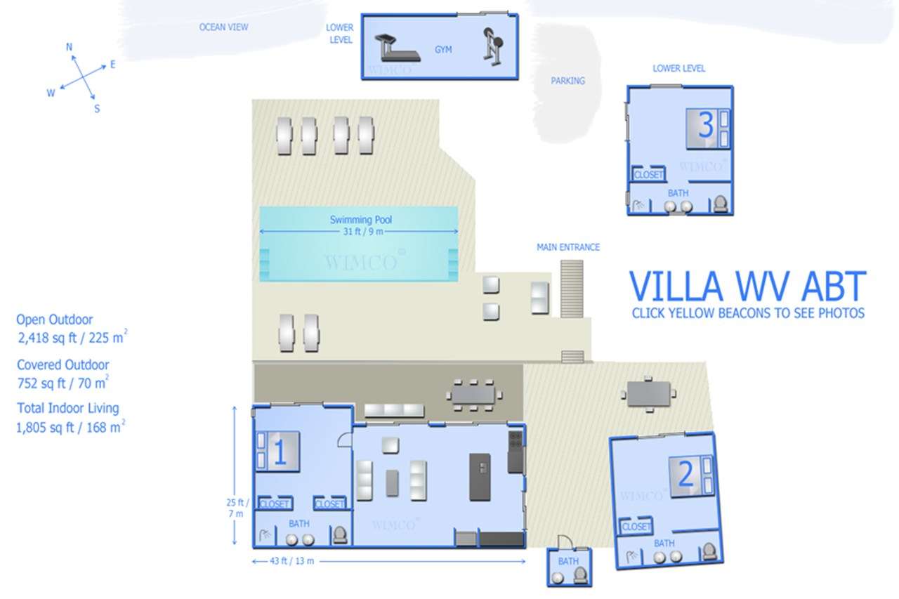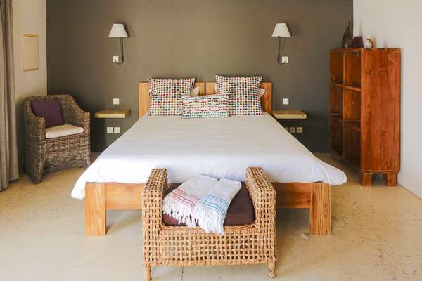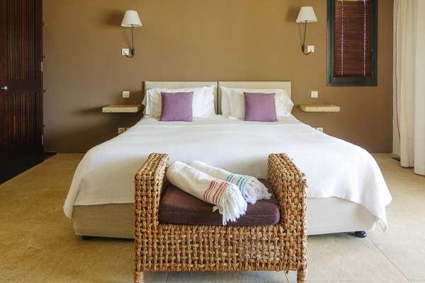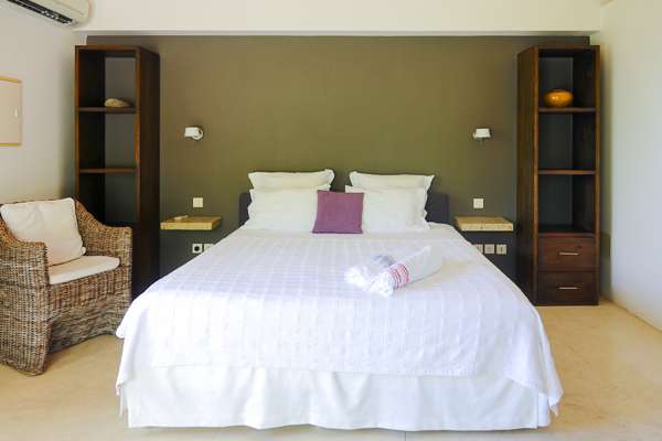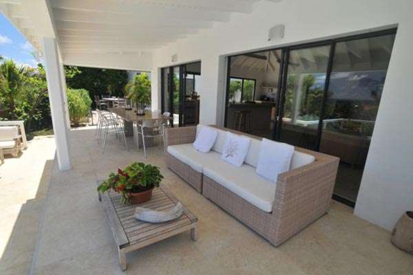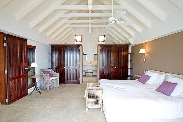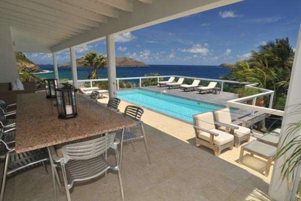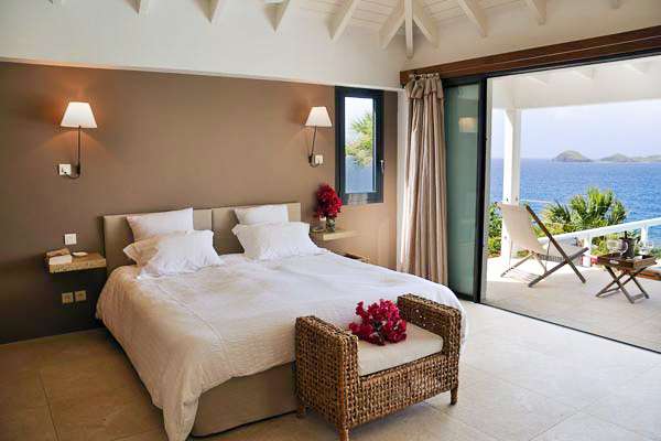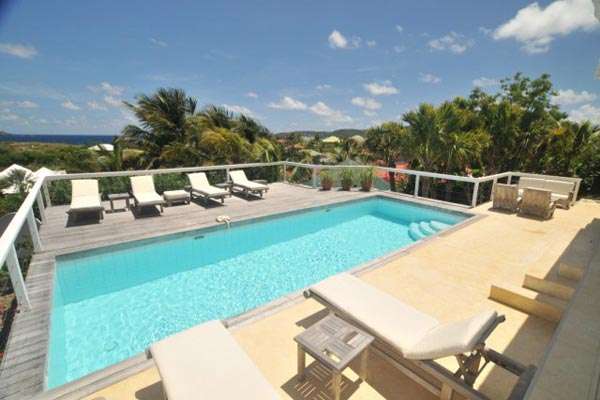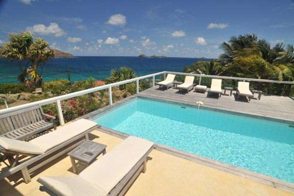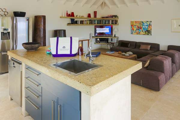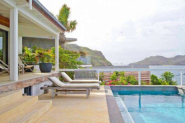 Welcome to Villa Jali (villa code: WV ABT), a gorgeous 3-bedroom villa with ocean views in Anse des Lezards, St. Barts. This property offers all-day sun and constant breezes. Inside, polished concrete floors complement the matte color scheme, giving the villa an airy and minimalist feel. Rustic, island décor adds an earthy touch, fitting in with the rugged coast and ocean views out front. The beach at Anse des Cayes is a short walk away, while the beach, restaurants, and shops in St-Jean are just over 5 minutes away by car. The main house at Villa Jali is home to an open-concept living room and kitchen. Vaulted ceilings make the area spacious and light, with natural light streaming in through the doors that open to the outdoor terrace and island breeze. The living room features a large, sectional sofa, offering plenty of room to spread out and relax. Artworks on the wall add dashes of color, enhancing the vibrant island atmosphere. A large flat-screen TV in the entertainment center lets you enjoy movie nights inside. Next to the living room is Villa Jali’s spacious kitchen, equipped with high-end appliances that make cooking a breeze. Our concierge can even organize grocery pre-stocking or delivery, catered meals, or arrange private chef service for a special occasion. Bar stools at the kitchen island are a nice spot for more casual meals or a quick coffee. A grand covered terrace outside is home to a dining table with seating for 8 guests, letting you enjoy more formal meals by the pool. There are 3 bedrooms at Villa Jali, each spread out across the property to ensure the utmost peace, quiet, and privacy. The master bedroom is next to the living area, opening directly to the covered terrace and pool area. Dark wooden closets contrast with the white linens, creating a peaceful atmosphere. The other two bedrooms are in two separate pavilions. One is next to the main house, with a small dining table for four guests out the front. The other is on the lower level near Jali Villa’s entrance. The covered terrace furnished with a dining table and lounge is a great spot to relax in the gorgeous Caribbean weather. Why not settle on the sofa with a good book and a cool drink? Steps lead down to the pool, a refreshing spot to cool off during your stay. Sunbathers will want to stake out a spot on one of the loungers lining the water at the edge of the deck. Above, palm trees rustling in the wind will lull you into a state of relaxation. From the outdoor terrace, guests are treated to stunning views over the Caribbean. Sunsets here are incredible, casting a golden light across the offshore islands Île Toc Vers, Île Frégate, and Île Bonhomme. For days at the beach, Anse de Cayes is a short walk away. Beautiful and rugged, the swell here makes it a popular spot for surfers. For more relaxed swimming, sunbathing, and snorkeling, the beaches at Flamands and St-Jean are both under 5 minutes away by car. At night, the restaurants of Gustavia are less than 10 minutes away by car. During the Thanksgiving holiday, the villa rents at the 3-bedroom rate only.Please fill out the form to begin your inquiry and we will connect you with a seasoned villa rental specialist.