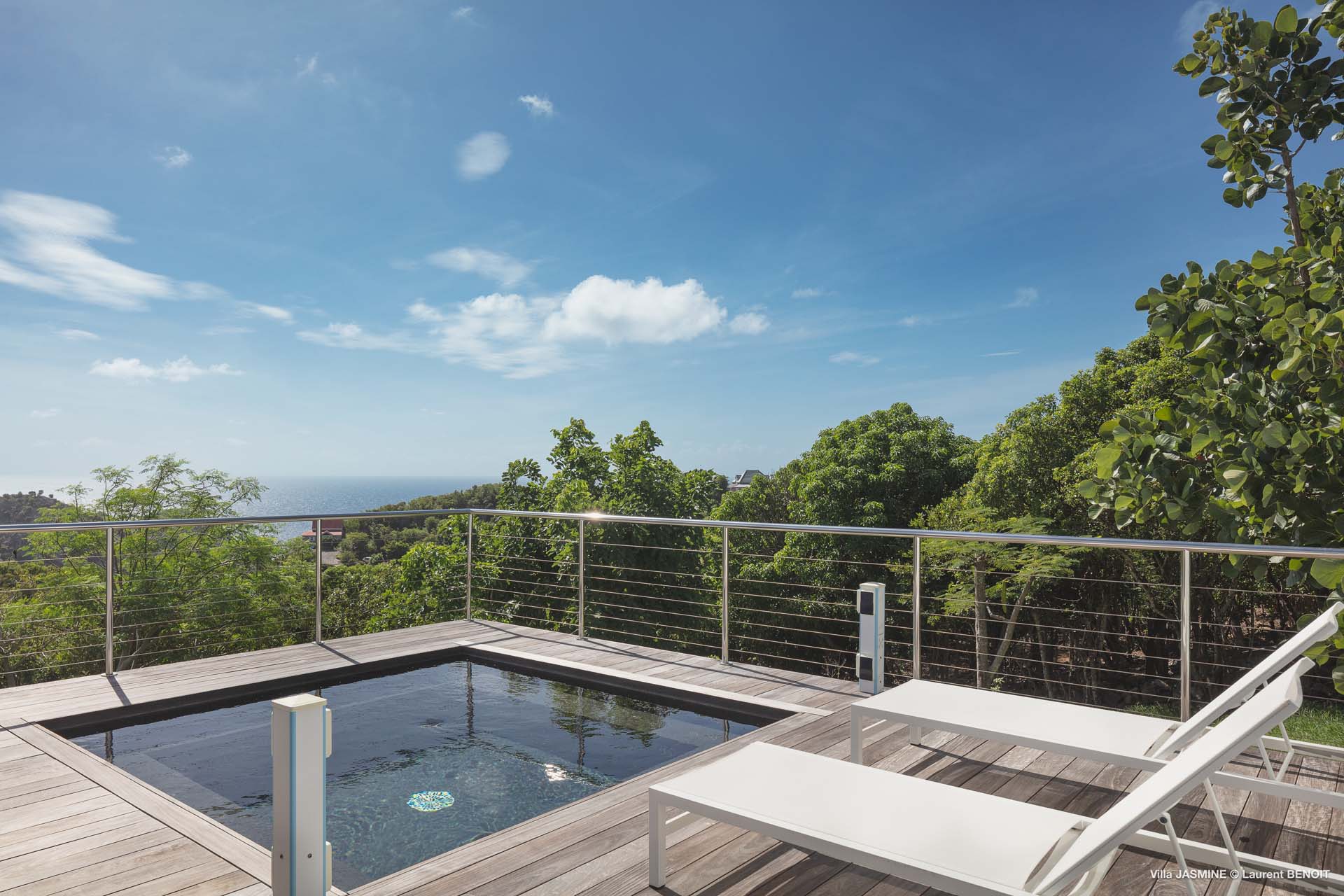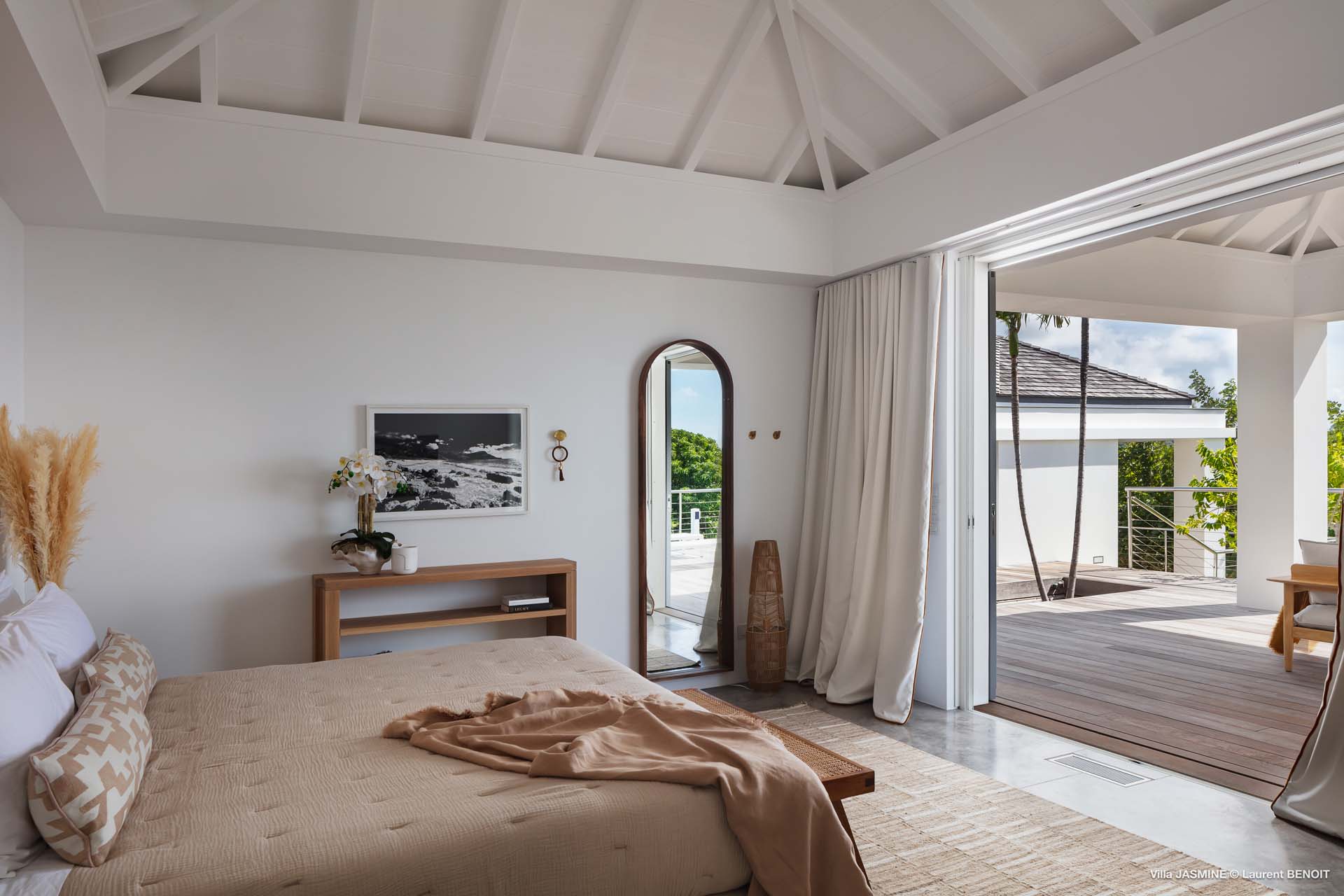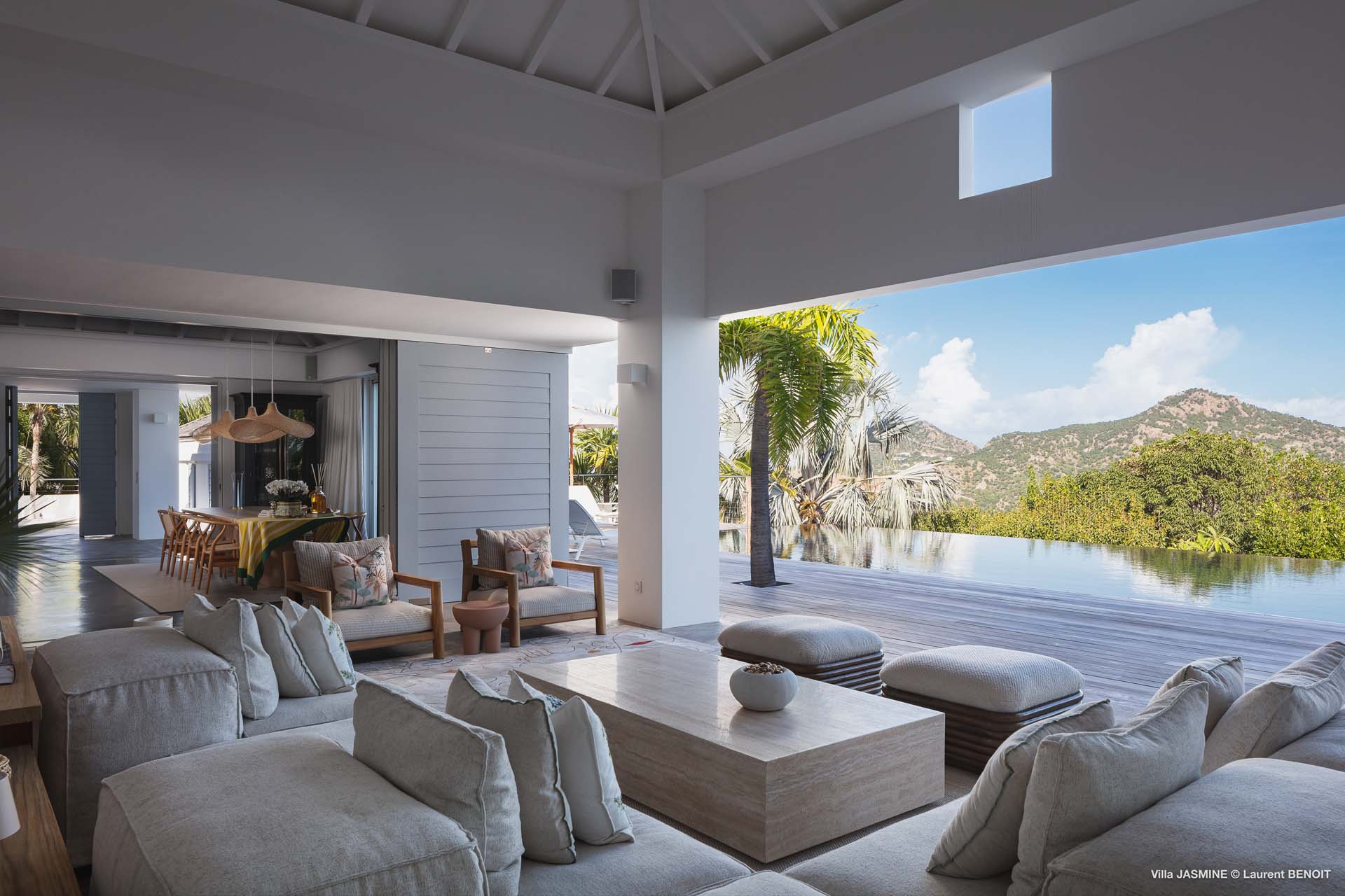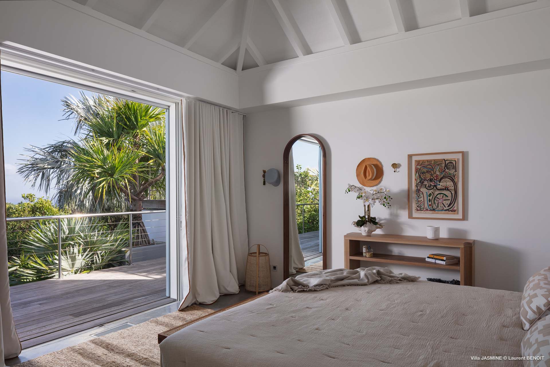 Villa Jasmine, (villa code: WV JAS) is located high above Gouverneur beach, in a private, secure residence. Villa Jasmine is a true jewel of luxury and elegance, offering an unparalleled stay experience. Recently-renovated, it now boasts a warm, cozy, comfortable and refined decor and atmosphere. Every detail has been carefully thought out to make your family's stay as smooth as possible, in an environment that evokes the comfort of your own home. With four bedrooms, each with its own ensuite bathroom, Villa Jasmine guarantees privacy and comfort for everyone. What's more, a brand new, comfortable, air-conditioned play area has been created for the enjoyment of young and old alike. The exceptional, fully-equipped kitchen is a gourmet paradise, with a wall of food and a variety of dishes to satisfy every need, from everyday to special occasions. The villa's outdoor area offers an idyllic setting for relaxing, with a barbecue and pizza oven. The lush tropical garden is an ideal retreat for meditation or simply rejuvenation. The 180-degree views from Villa Jasmine are simply breathtaking, combining sea views, lush vegetation, and rocky outcrops to create an unparalleled visual experience. During the December holidays, the villa rents at full occupancy rates regardless of how many bedrooms are used.Please fill out the form to begin your inquiry and we will connect you with a seasoned villa rental specialist.