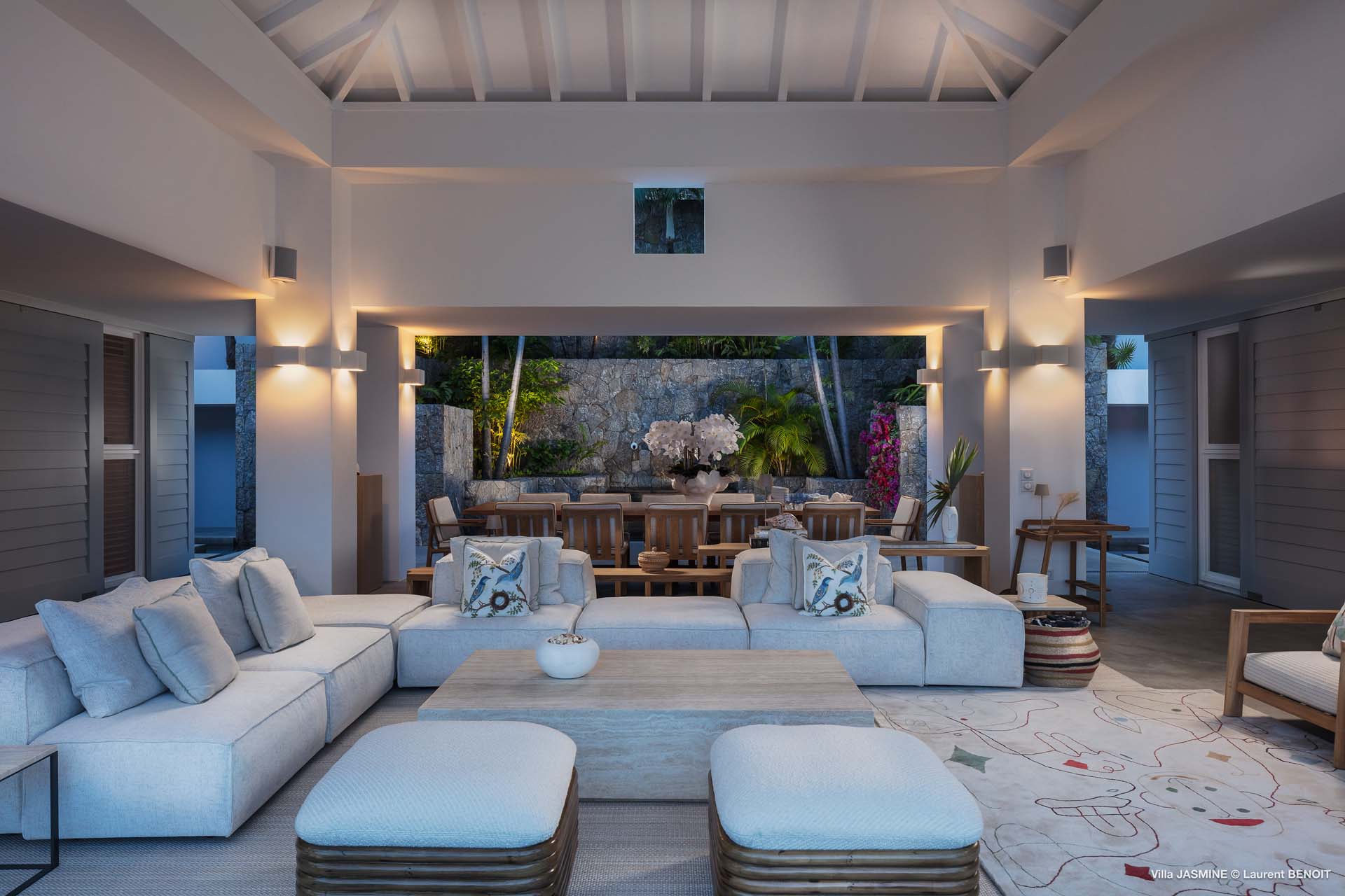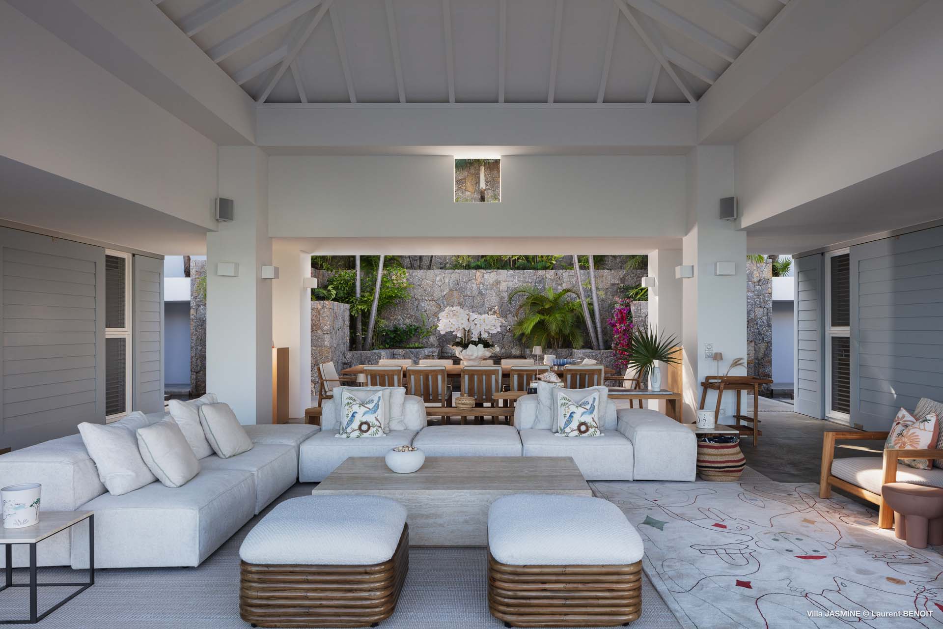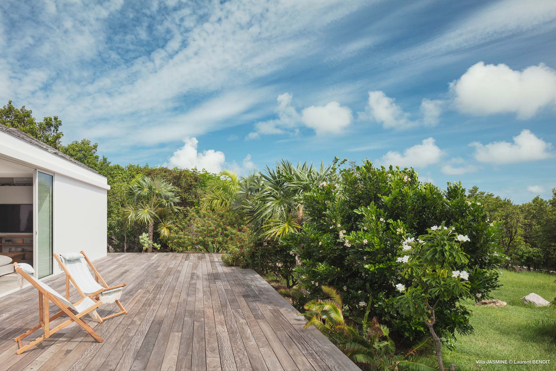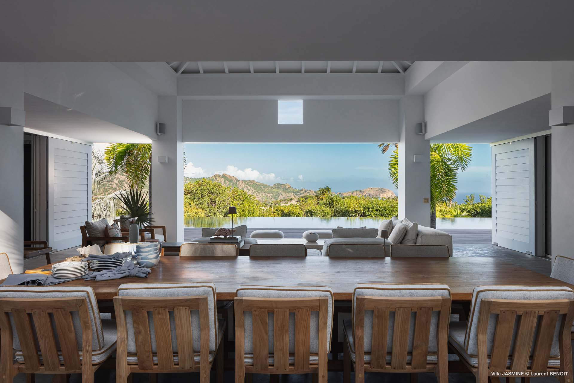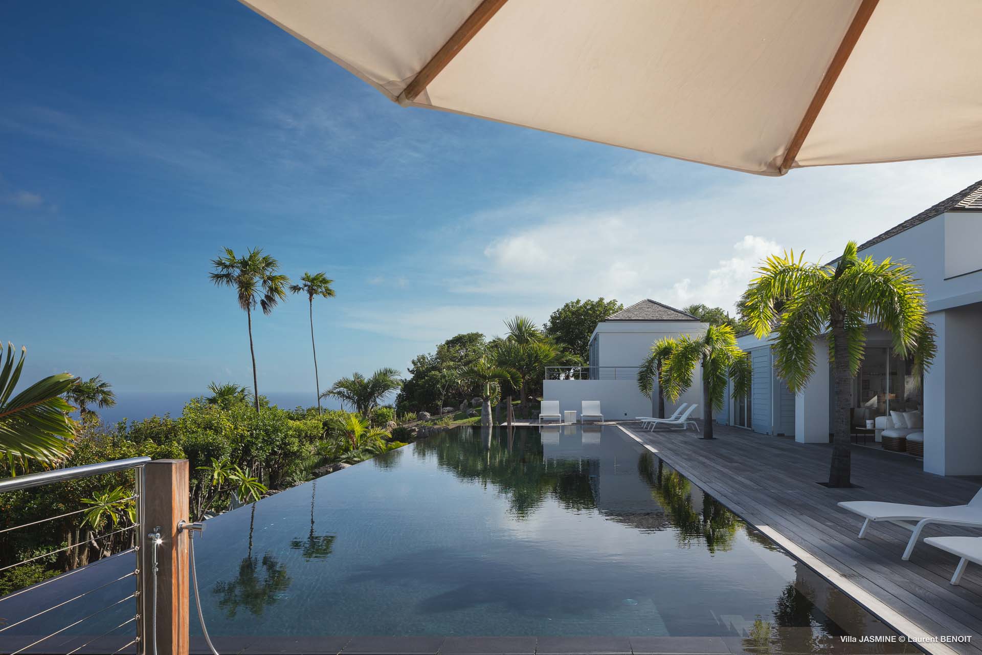 Villa Jasmine, (villa code: WV JAS) is located high above Gouverneur beach, in a private, secure residence. Villa Jasmine is a true jewel of luxury and elegance, offering an unparalleled stay experience. Recently-renovated, it now boasts a warm, cozy, comfortable and refined decor and atmosphere. Every detail has been carefully thought out to make your family's stay as smooth as possible, in an environment that evokes the comfort of your own home. With four bedrooms, each with its own ensuite bathroom, Villa Jasmine guarantees privacy and comfort for everyone. What's more, a brand new, comfortable, air-conditioned play area has been created for the enjoyment of young and old alike. The exceptional, fully-equipped kitchen is a gourmet paradise, with a wall of food and a variety of dishes to satisfy every need, from everyday to special occasions. The villa's outdoor area offers an idyllic setting for relaxing, with a barbecue and pizza oven. The lush tropical garden is an ideal retreat for meditation or simply rejuvenation. The 180-degree views from Villa Jasmine are simply breathtaking, combining sea views, lush vegetation, and rocky outcrops to create an unparalleled visual experience. During the December holidays, the villa rents at full occupancy rates regardless of how many bedrooms are used.Please fill out the form to begin your inquiry and we will connect you with a seasoned villa rental specialist.