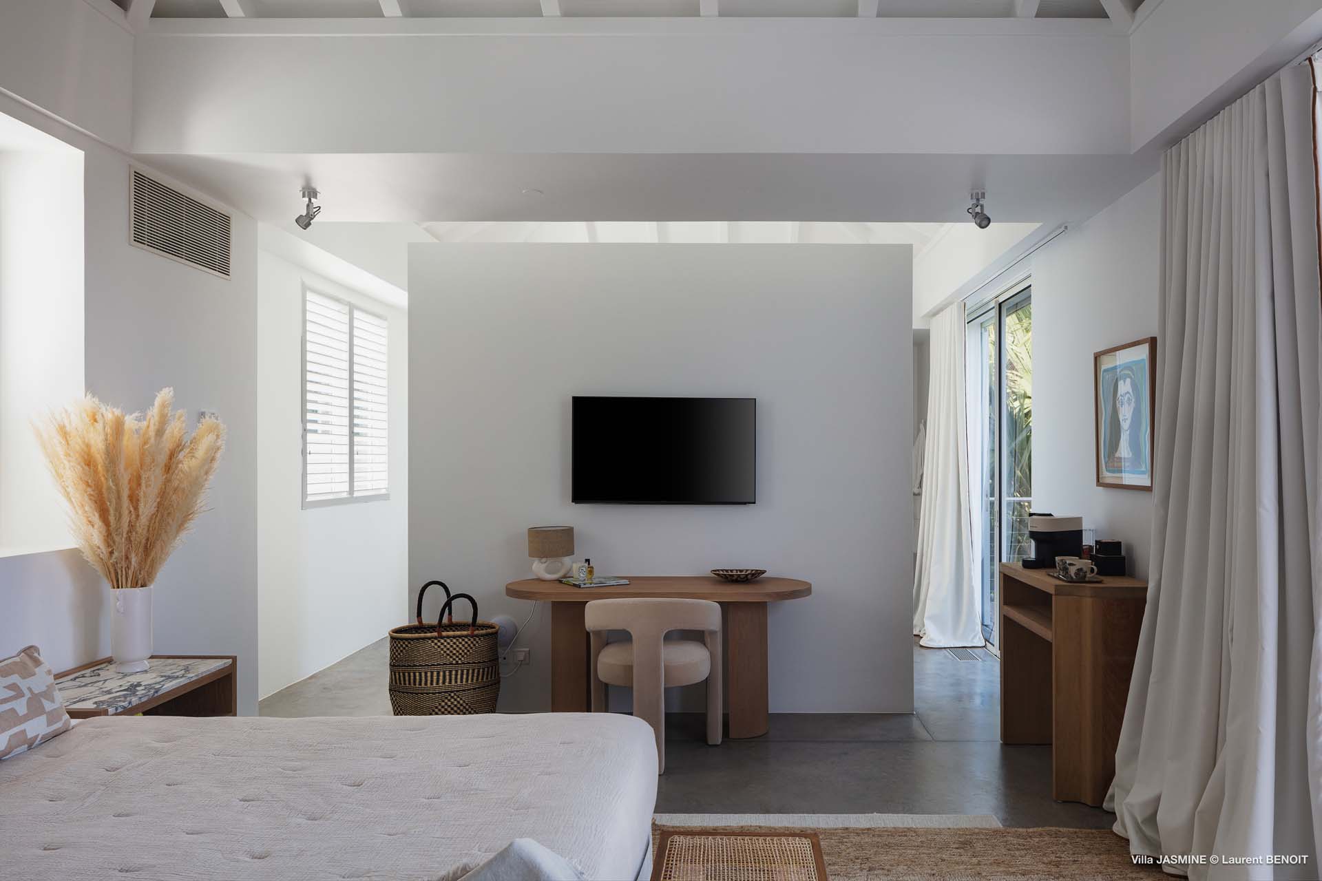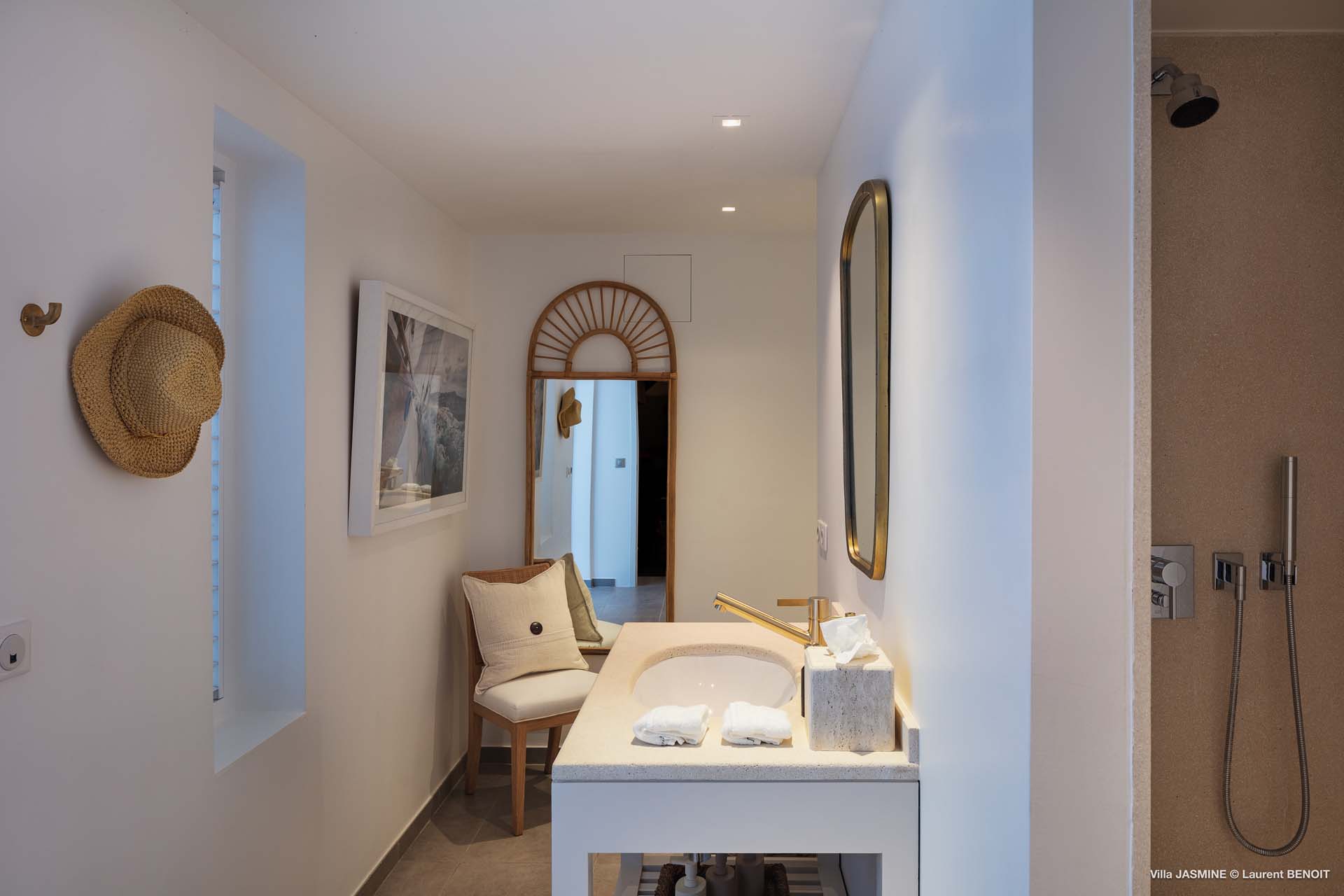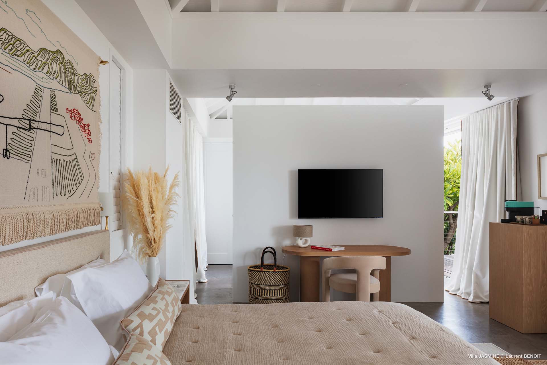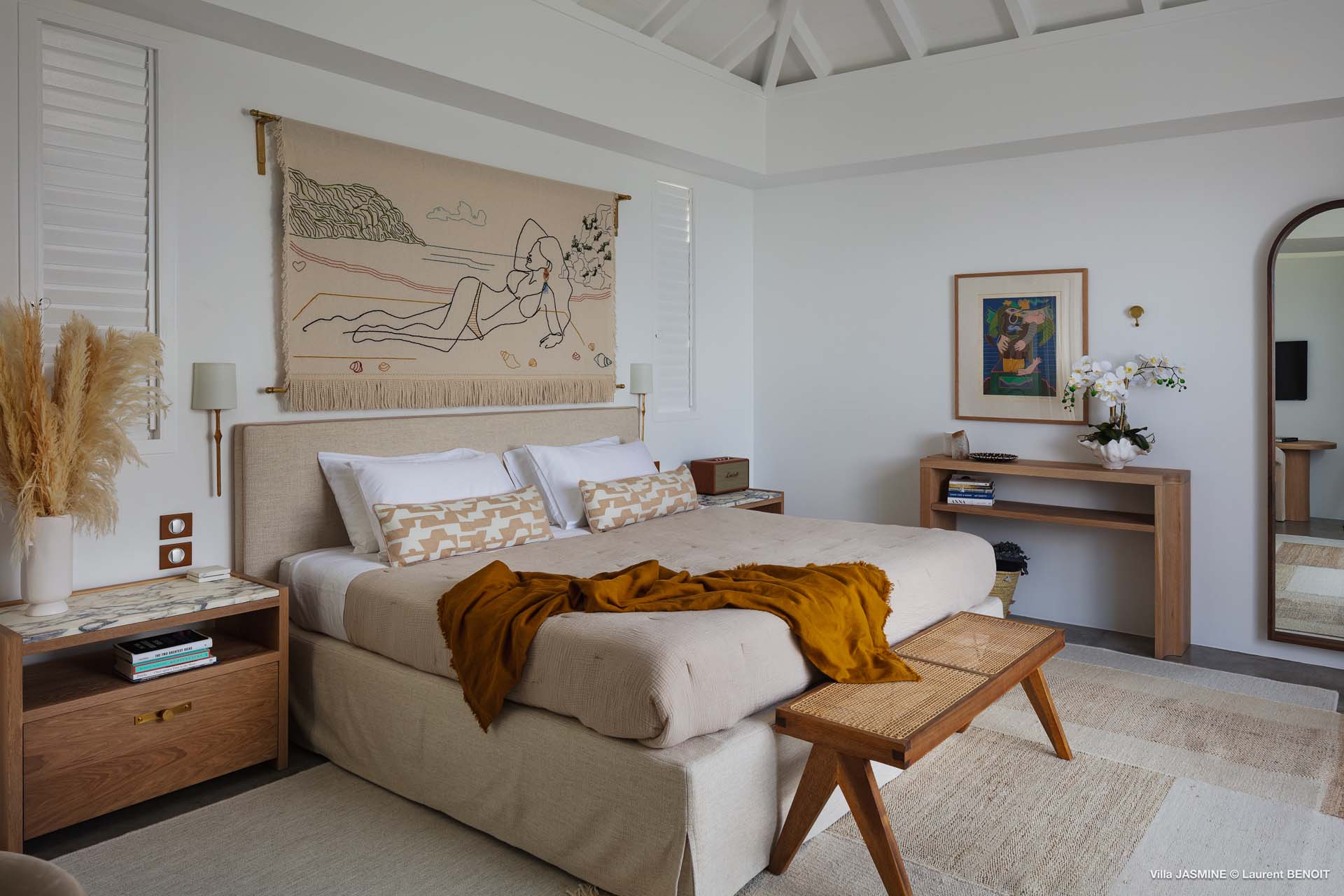 Villa Jasmine, (villa code: WV JAS) is located high above Gouverneur beach, in a private, secure residence. Villa Jasmine is a true jewel of luxury and elegance, offering an unparalleled stay experience. Recently-renovated, it now boasts a warm, cozy, comfortable and refined decor and atmosphere. Every detail has been carefully thought out to make your family's stay as smooth as possible, in an environment that evokes the comfort of your own home. With four bedrooms, each with its own ensuite bathroom, Villa Jasmine guarantees privacy and comfort for everyone. What's more, a brand new, comfortable, air-conditioned play area has been created for the enjoyment of young and old alike. The exceptional, fully-equipped kitchen is a gourmet paradise, with a wall of food and a variety of dishes to satisfy every need, from everyday to special occasions. The villa's outdoor area offers an idyllic setting for relaxing, with a barbecue and pizza oven. The lush tropical garden is an ideal retreat for meditation or simply rejuvenation. The 180-degree views from Villa Jasmine are simply breathtaking, combining sea views, lush vegetation, and rocky outcrops to create an unparalleled visual experience. During the December holidays, the villa rents at full occupancy rates regardless of how many bedrooms are used.Please fill out the form to begin your inquiry and we will connect you with a seasoned villa rental specialist.