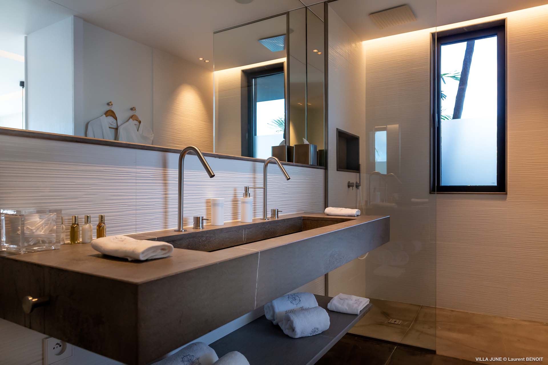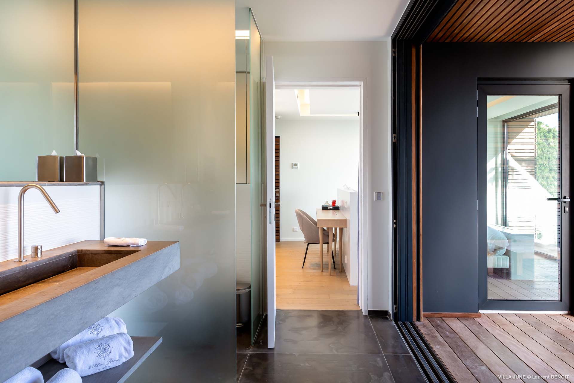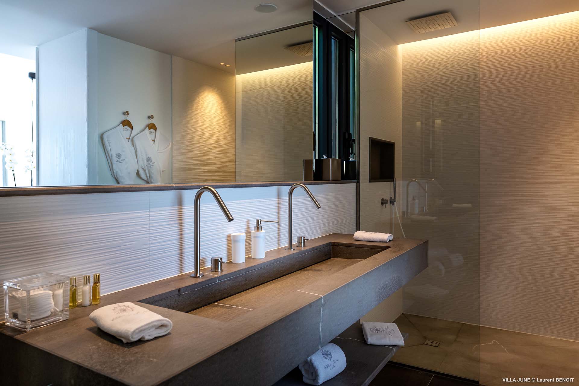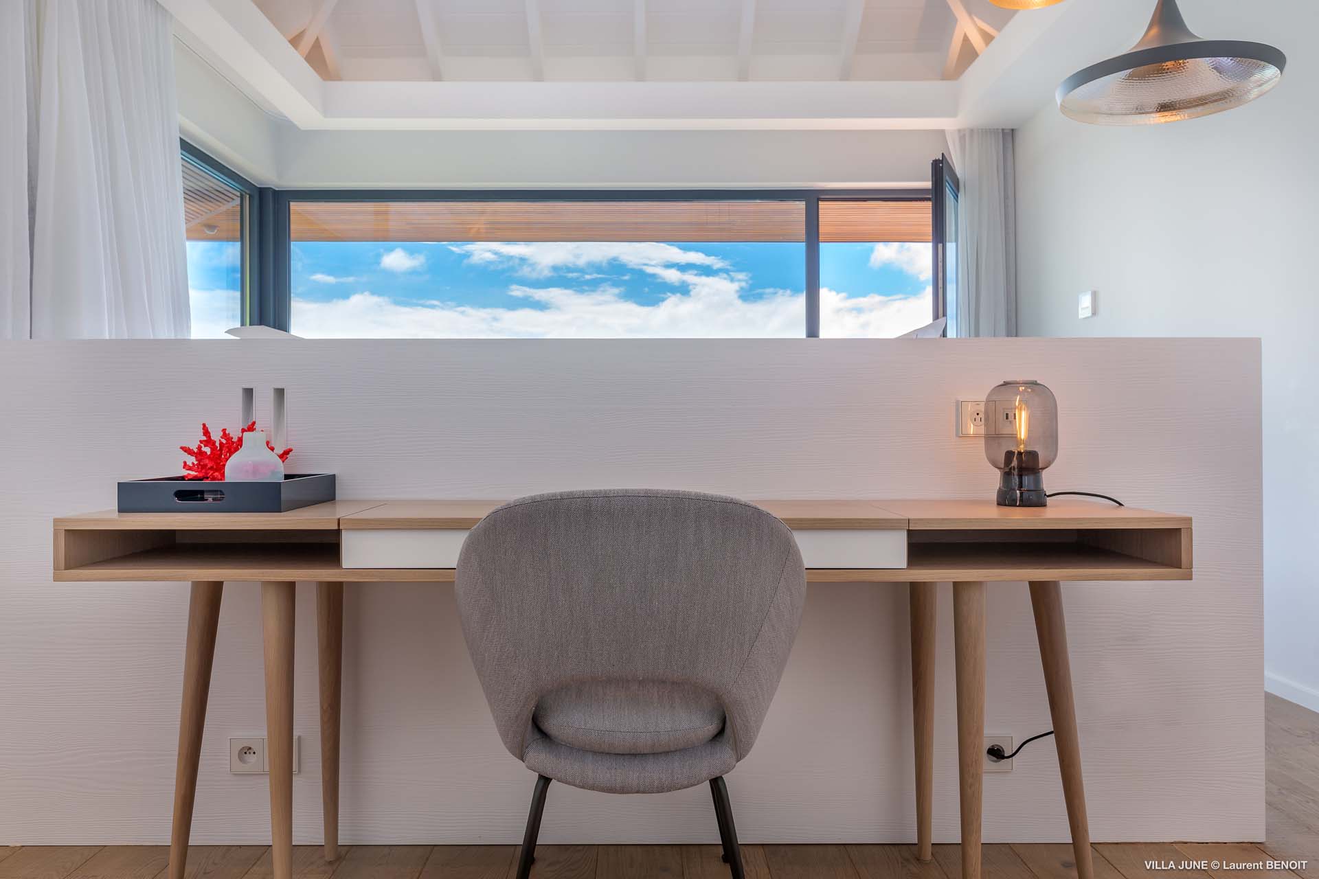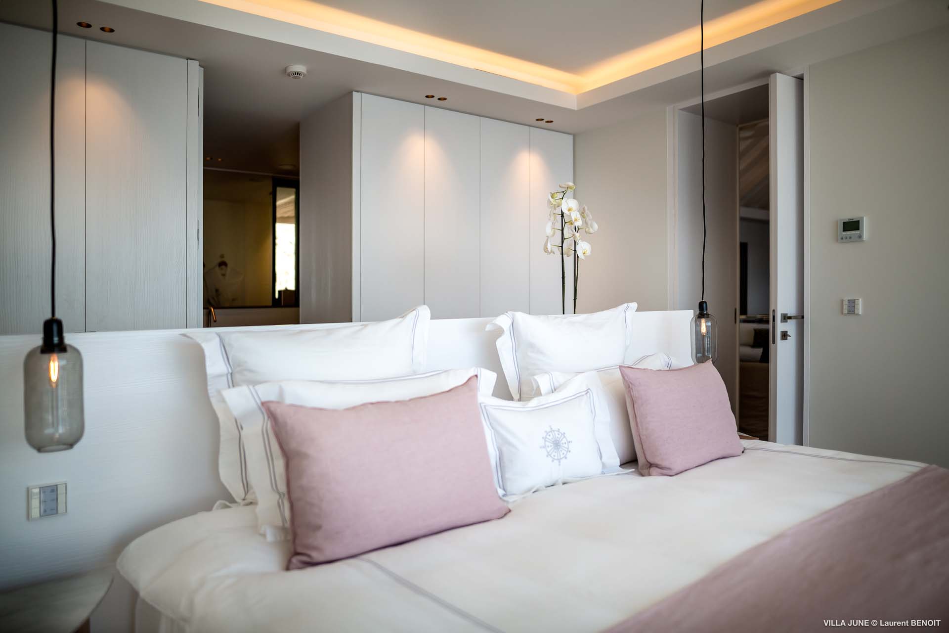 Embrace the good life at Villa June (villa code: WV JUN), a stunning 6-bedroom villa overlooking the harbor of Gustavia, St. Barts. Like a wide-angle camera lens, guests of this island home will enjoy fabulous views over the Caribbean Sea, watching as the luxury yachts sail to and from St. Barts’ elegant capital. Sleek, elegant, and sophisticated, Villa June is a graceful property that will capture your imagination as soon as you step foot inside. There are plenty of natural island woods, creating a contemporary and calm atmosphere, while the eclectic décor inside will please those with an eye for design and style. Located in the hills of Corossol, a new hotspot for the island’s most luxurious properties, Villa June enjoys a coveted location. There are excellent views across Gustavia harbor, while the beaches, shops, and restaurants of Gustavia and St. Jean are also within close driving distance. Villa June sprawls over three levels, with a flowing open plan characterized by a clean and modern design. There’s ample space to spread out and come together as a group, whether it’s in the luxurious home theater, the fitness room, or the beautiful great room at the property’s heart. A grand staircase and elevator connect the three levels. It’s here where you’ll find the large kitchen and living room. In the latter, beautifully soft sofas invite you to sink in and relax, diving into a good book or watching a film on the wall-mounted TV in front of a stunning shelf display. Sliding doors open wide to the outdoor terrace, framing the azure hues of the water and luxury yachts at anchor. Next to the living room is Villa June’s high-end kitchen. The large island has seating for 10 guests, making it the ideal spot to relax with a drink while you watch your private chef whip up a gourmet meal. You could choose to eat at the island or set up at the dining table on the covered terrace as an alternative. With the cool island breeze and outstanding views, this is the ideal setting for entertaining, opening a few bottles of wine, and toasting your island vacation over some fantastic local food. There’s a total of 6 bedrooms in Villa June, spread across the three levels to ensure privacy between guests. There are three on the main level. Next to the living room is the first, which connects to bedroom number two, an ideal choice for parents with young children. Of course, both rooms can be fully separated as well. The third bedroom on this level sits at the far end of the terrace, offering more privacy. Descending to the lower level brings you to the other three bedrooms, spread around the media and fitness rooms. The main focal point of the outdoor space is the heated, 70-foot-long infinity pool. Stretching the length of the terrace, the edge blends into the ocean beyond, creating the impression of a continuous waterscape with varied shades of blue. Slipping in for a refreshing dip here is impossible to resist. The pool is lined with plush loungers, ideal for sunbathing. You could also throw up the umbrellas for some shade, letting you drop off for a nap in the cool breezes. Back toward the house, the covered terrace is another beautiful spot to lounge around. There’s an outdoor sofa for cocktail hour and of course a beautiful dining table for alfresco meals. There’s additional seating and shade on the middle-level terrace that connects the bedrooms. During the December holidays, Thanksgiving, and Bucket, the villa rents at the full occupancy rate regardless of how many bedrooms are used and is an excellent villa for large groups traveling together with families with children.Please fill out the form to begin your inquiry and we will connect you with a seasoned villa rental specialist.
