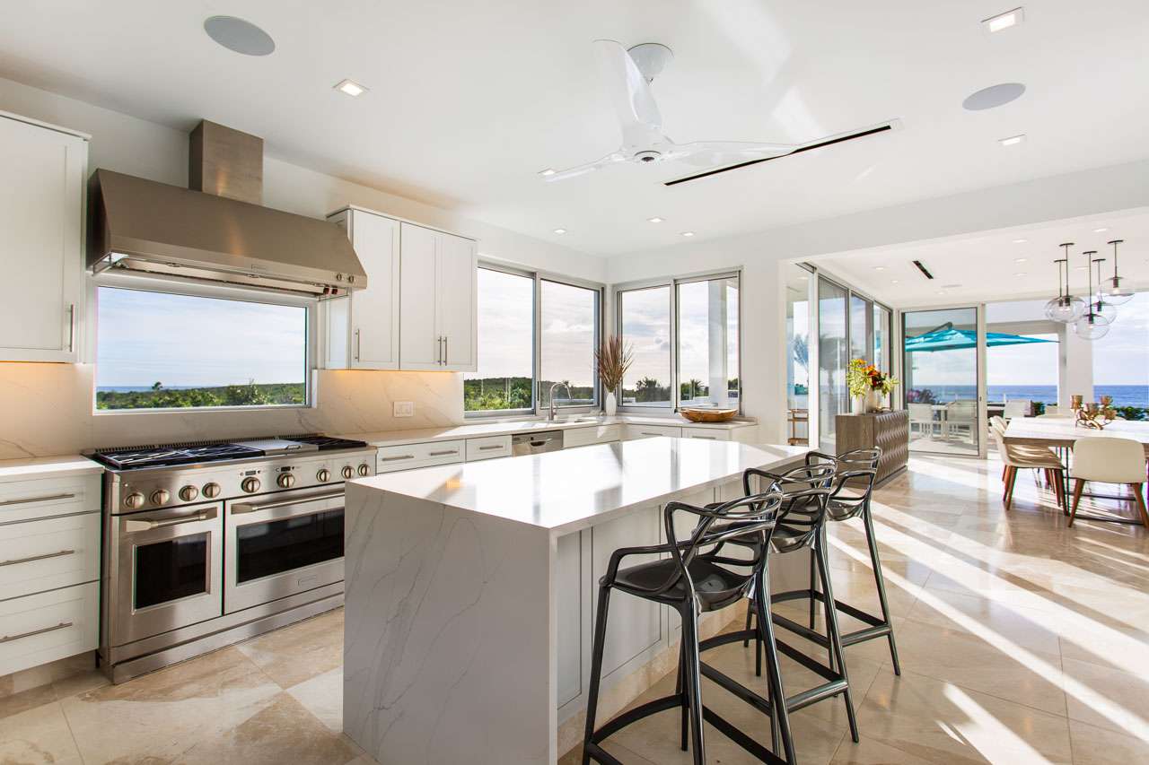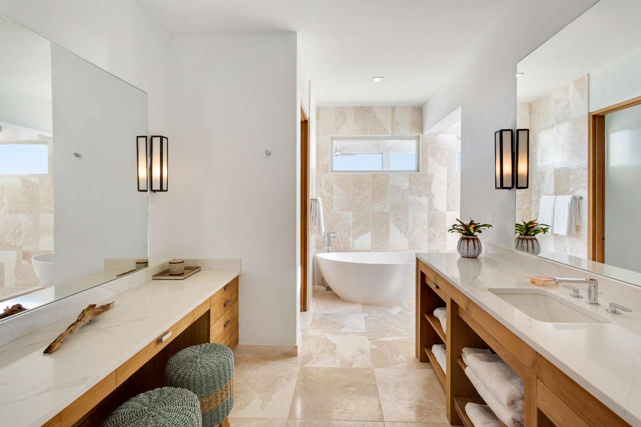 Each of the villa’s bedrooms is a private retreat, complete with ensuite bathrooms, plush linens, and contemporary comforts. Whether gathered with family or traveling with a group of friends, guests will find space and privacy throughout the home, with accommodations for up to 12 guests.