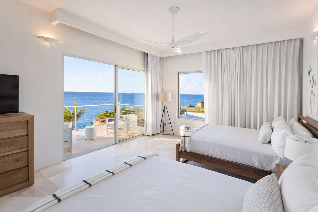 Situated on Anguilla’s west end, Villa Kandara boasts spectacular views of nearby St. Martin, while its interiors have been purposefully crafted to highlight the villa’s panoramic surroundings. The villa includes beautifully appointed ensuite bathrooms, luxurious materials, and sophisticated design throughout, all contributing to a peaceful and elegant ambiance.