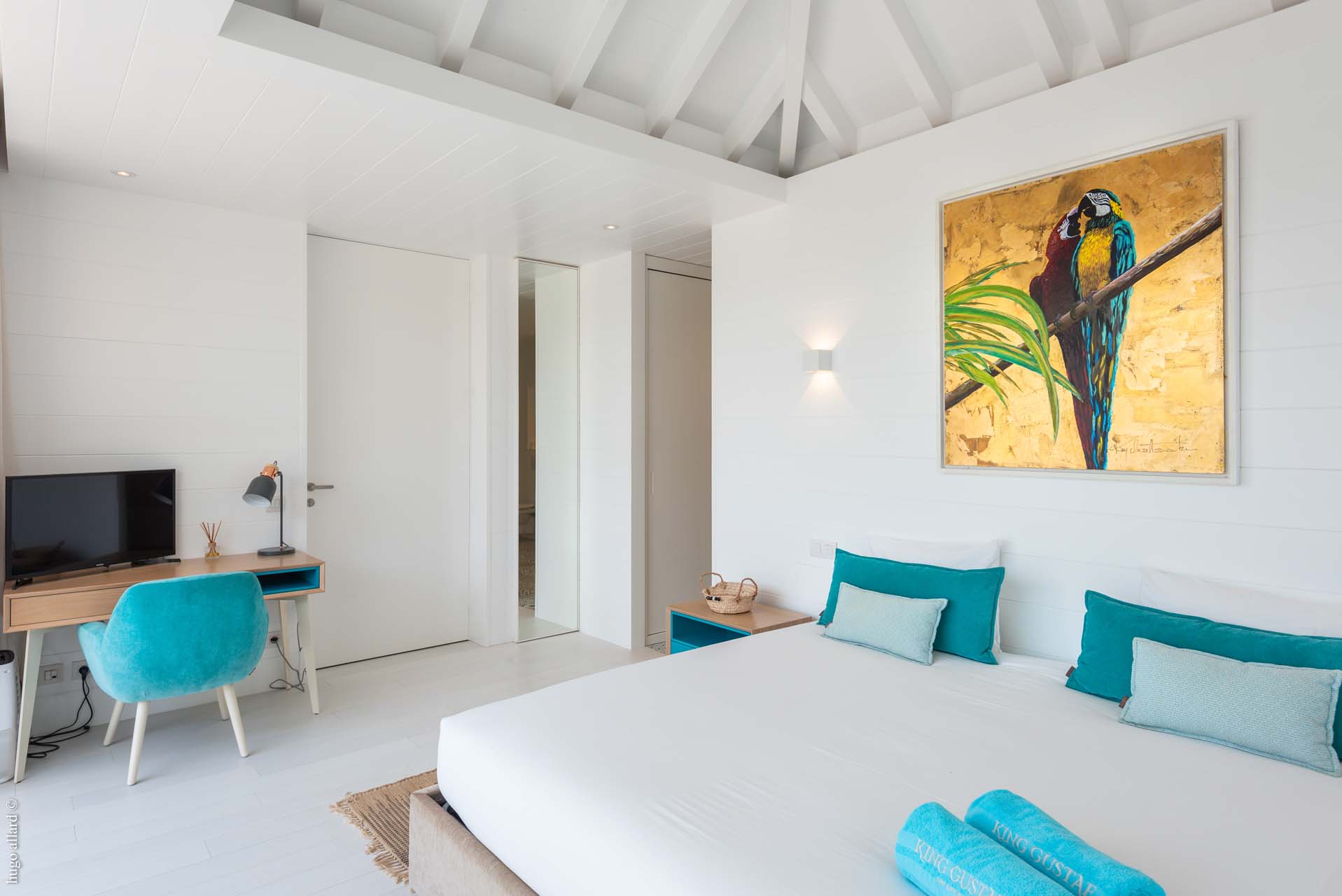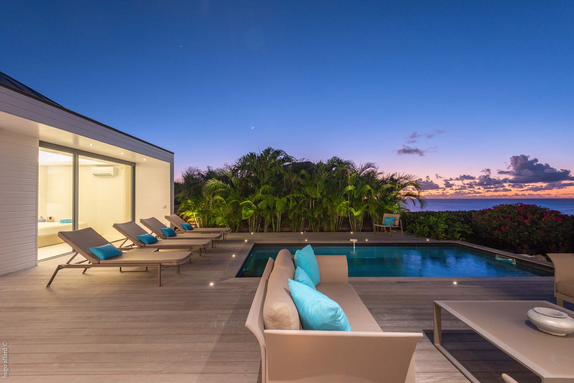 Welcome to Villa King Gustav (villa code: WV KNG), a modern 2-bedroom villa in Gustavia, St. Barts. Offering wonderful sunset views, this island home is within a short drive of both Gustavia and St. Jean, offering shops, restaurants, and idyllic Caribbean beaches. Villa King Gustav is made for relaxing, with a range of calming neutral tones, elegant and high-end furnishings, and a tasteful collection of art adorning the walls. Vaulted ceilings and large doors and windows let in the dappled island light, mixing with the all-white interiors and pale woods to create an airy, tropical atmosphere. Situated on the hill in between Gustavia and St. Jean, Villa King Gustav offers the proximity of shops, restaurants, beaches, and great views of the bay at the entrance to Gustavia. On a clear day, even St. Maarten can be seen on the horizon, and come sunset, the golden glow across the sea makes for a wonderful backdrop to enjoy a quiet drink. Villa King Gustav features a simple layout, embracing a clean and open design that encourages you to shrug off the rushes of modern life. The décor is simple yet beautiful, with superb attention to detail in everything from the lighting to the colorful accents of sea blue. In classic Caribbean fashion, the main living area is open-plan, combining the sitting room, dining table, and kitchen in one space. In the sitting area, soft and contemporary sofas invite you to kick back and unwind, perhaps gazing out at the yachts on the water or enjoying a cool drink with a movie. At the opposite end of Villa King Gustav’s living room is the high-end kitchen. Modern, chic, and minimalist, this space features all the latest appliances and a laid-back style that makes cooking here a real pleasure. And for a night off, why not let our concierge organize a private chef for an evening? Villa King Gustav is laid out in an L-shape around the pool; on one side is the great room, and on the other side are the 2 bedrooms. The rooms are separated by the outdoor dining area. The master suite is to the left of the entrance, fully benefiting from the wonderful views. This room has a plush king-sized bed. The guest bedroom features a queen-sized bed. Both rooms also come with plenty of closet space and a luxurious ensuite bathroom with a shower. Outside, Villa King Gustav’s wonderful terrace space lets you bask in the island sun and gaze out at the shimmering Caribbean. With yachts sailing in and out of Gustavia, and some of the best sunsets on the island, this space makes for a wonderful spot to kick back and toast to your island vacation. There’s a covered dining area for alfresco meals, with the sunset and inky evening as a backdrop. A deck surrounds the swimming pool, refreshing and cool, while a path leads into a lush garden beyond. Sunseekers will appreciate the loungers laid out around the pool, ideal for reading, sunbathing, or dropping off to the cool island breezes. For days at the beach, you’re spoilt for choice as well. In Gustavia, the little Shell Beach is an exquisite and pristine slice of sand, with a tranquil bay that’s ideal for swimming and snorkeling. Larger St. Jean to the north is also tempting; this is the most popular beach in St. Barts, known for its silky white sands and striking turquoise water. Villa King Gustav features all the amenities you’ll need for a relaxing stay in the Caribbean. During the December holidays, the villa rents at the full occupancy rate regardless of how many bedrooms are used.Please fill out the form to begin your inquiry and we will connect you with a seasoned villa rental specialist.