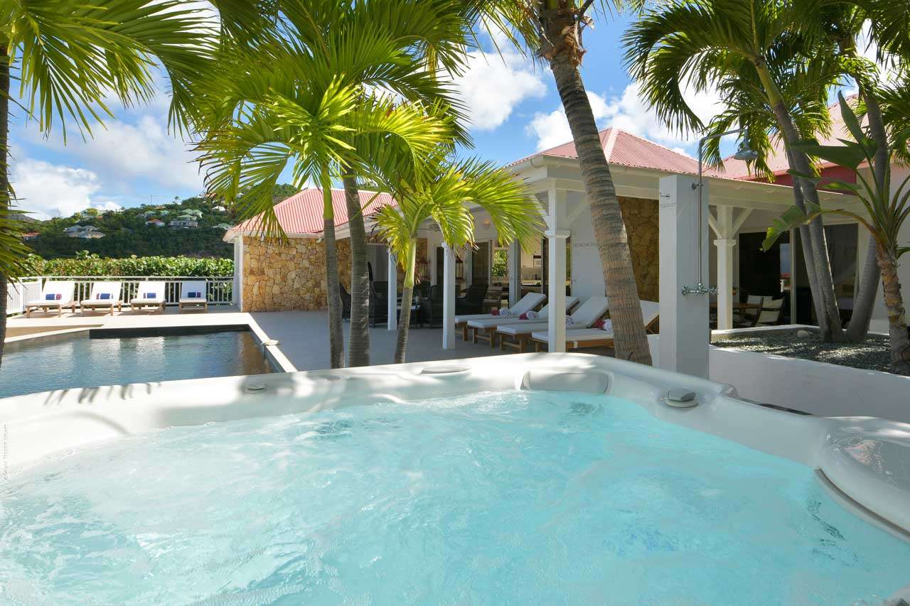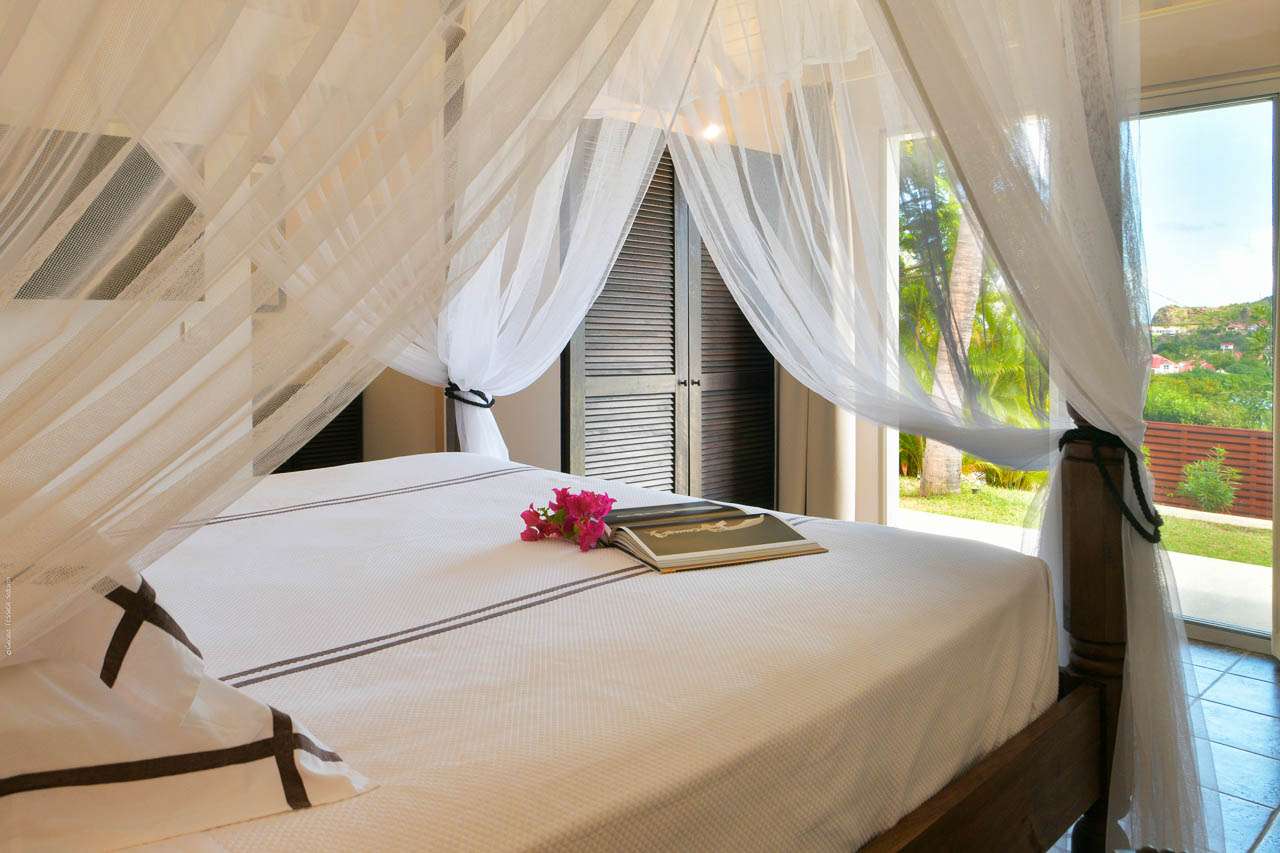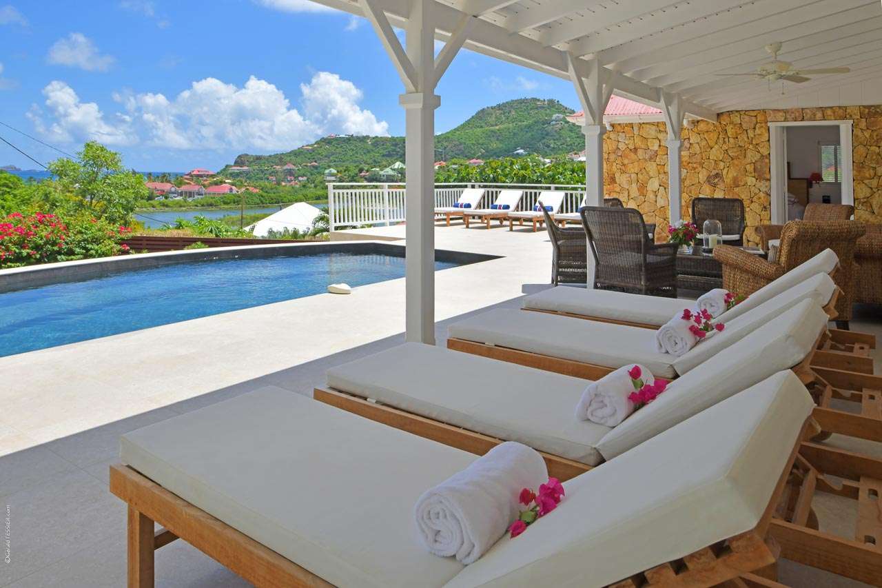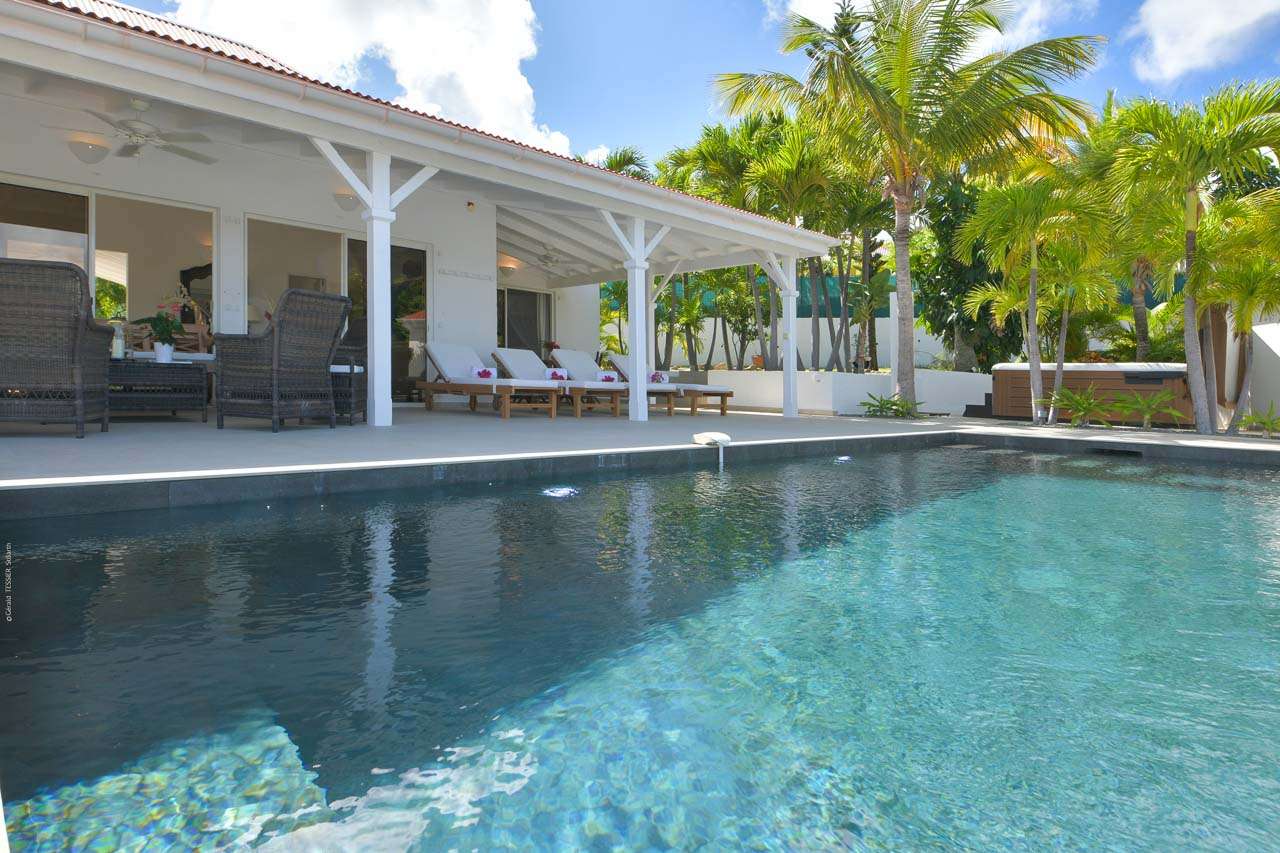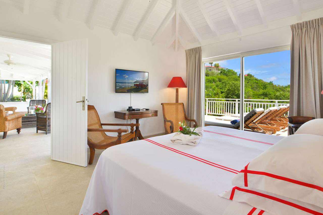 Welcome to Villa Kir Royal (villa code: WV KRL), a gorgeous 4-bedroom villa located in St. Jean within a short walk of the beach, restaurants, and shopping. Stylish and elegant, this island home is full of tropical charm, offering a relaxing getaway in St. Barts. The interiors of Villa Kir Royal are cool and bright, with white walls and vaulted ceilings above. Dark wooden furnishings create a pleasant island atmosphere, while the décor offers a touch of Oriental accents. Open and flowing, the whole home is filled with natural light and tropical breezes, coaxing you into the relaxed pace of life on the island. Located above the pond in St. Jean, Villa Kir Royal is a 2-minute drive from the beach, restaurants, and boutique shops. It also enjoys plenty of privacy, nestled in a quiet corner and surrounded by palm trees, with views over the verdant green towards the sparkling blues of the Caribbean Sea. You’ll immediately feel at home as soon as you step inside Villa Kir Royal. There’s a relaxed and homey atmosphere to this villa, distinguished by its comfortable furnishings and graceful island style. There’s a blissful sense of well-being and tranquility here offering some laidback living. The living room is furnished with a pair of plush sofas facing a wall of glass sliding doors that open to reveal an outdoor living area on the covered terrace. Vaulted ceilings above capture plenty of natural light, while the elegant antique furnishings provide a sense of timelessness, ideal for spending your days relaxing inside. The living room at Villa Kir Royal shares its space with a well-equipped kitchen. Charming and bright, you’ll easily be able to whip up delicious gourmet meals here. Our concierge even has a few tricks up its sleeve, from organizing a grocery delivery to arranging a visit from one of the island’s private chefs. Between the kitchen and the living room is a small indoor dining table with bench-style seating. There’s also an interior courtyard with a second large dining table, complete with a gas grill for island-style cookouts. The bedrooms inside Villa Kir Royal are just as serene as the rest of the home. Earthy accents of wood and rattan add a natural touch to each room. Spread across separate pavilions and the main house, the design is all about privacy between guests. In the main house is the master bedroom, while two bedrooms are in a separate pavilion to one side of the pool. The fourth room is on the other side of the pool. All rooms enjoy plush king-sized beds, promising a peaceful night’s rest after long days lounging around the pool or exploring the island’s beaches. Spending a day lounging in the outdoor living spaces of Villa Kir Royal is immensely rewarding. Beautiful stonework in the walls and a small yard with bougainvillea next to the deck help the entire space blend in superbly with its surroundings. There’s an outdoor lounge and another dining table underneath the covered terrace, letting you eat and drink in the warm island air. The swimming pool is tempting, surrounded by loungers and palm trees for idyllic sunbathing sessions or settling in with a good book in the shade. The views are gorgeous as well: from the rolling green hills to the red roofs of other villas, all the way to the Caribbean Sea in the distance. During the December holidays, the villa rents at the full occupancy rate regardless of how many bedrooms are used.Please fill out the form to begin your inquiry and we will connect you with a seasoned villa rental specialist.