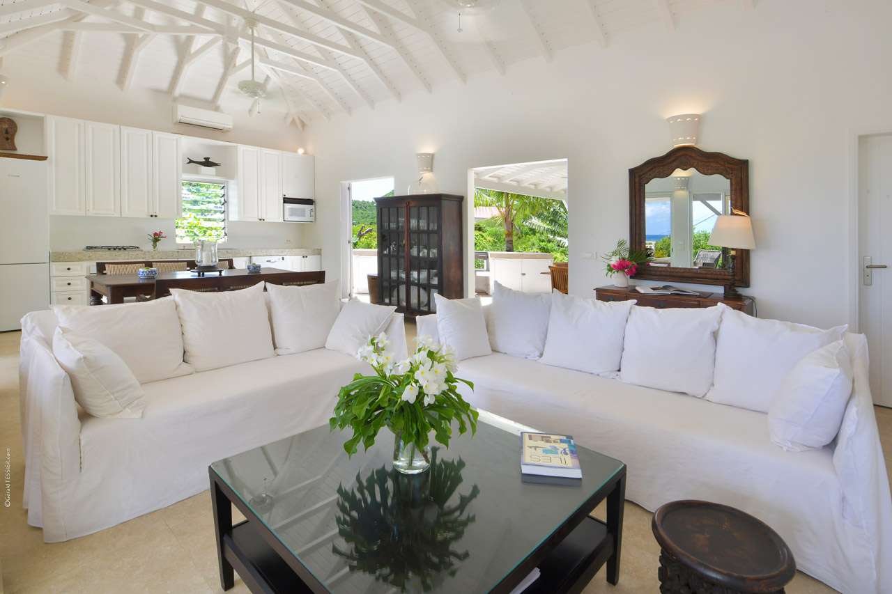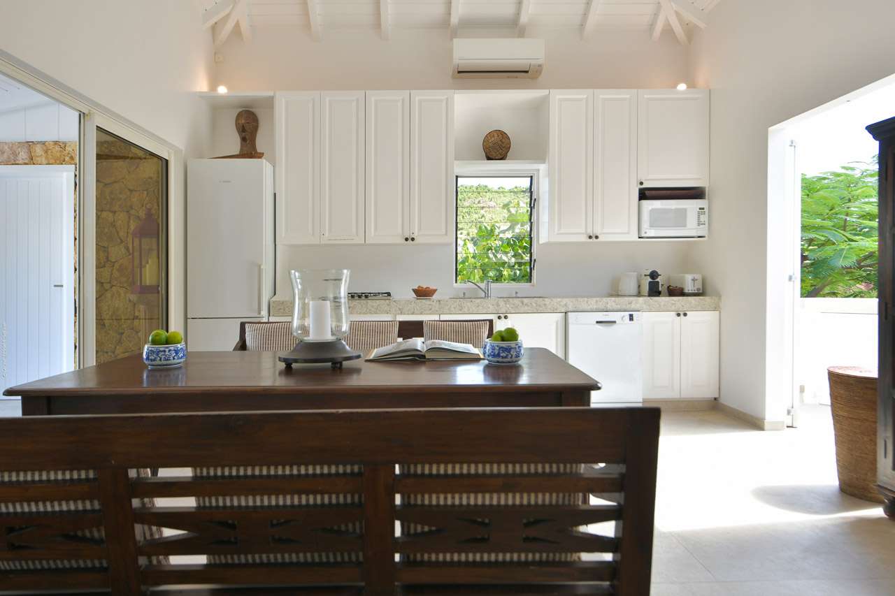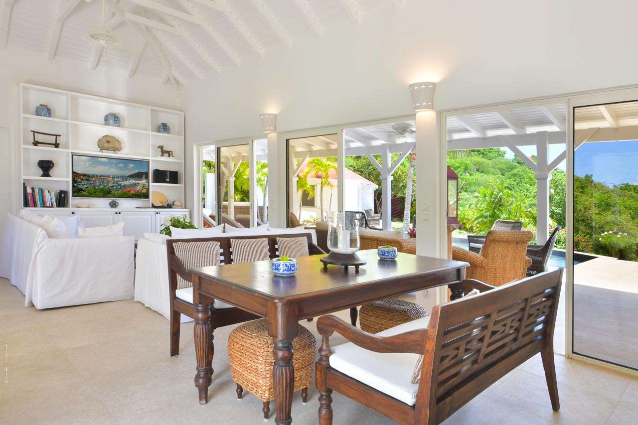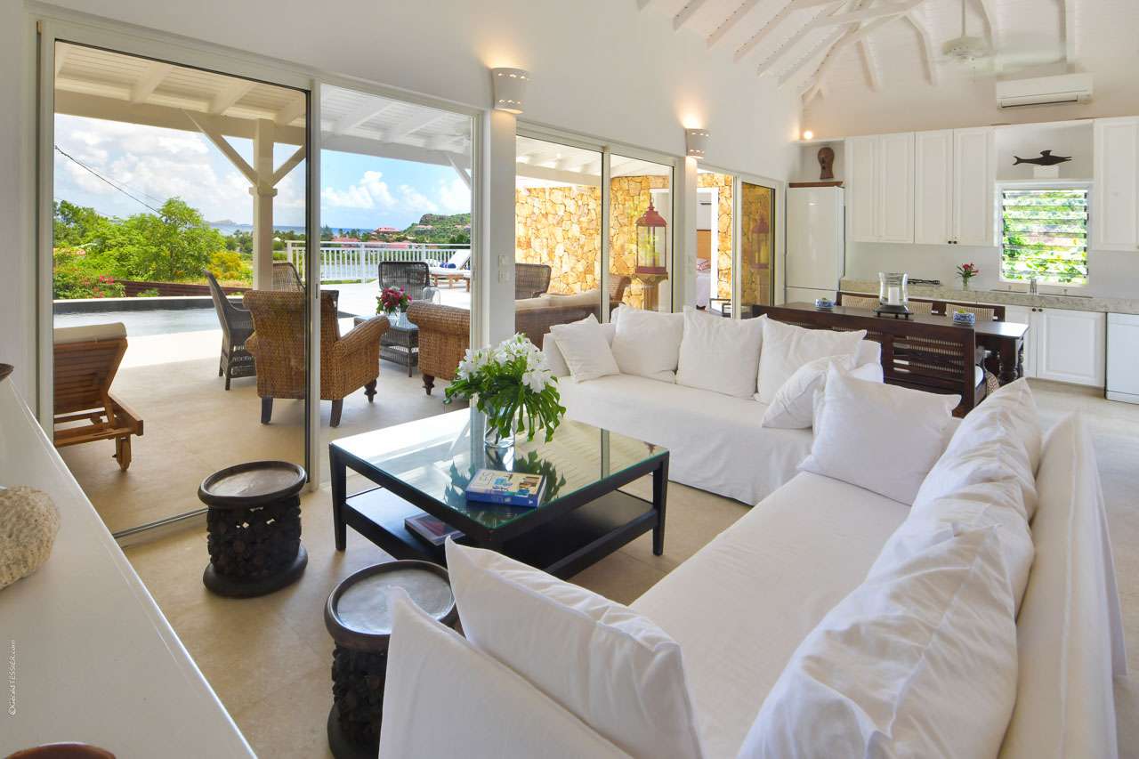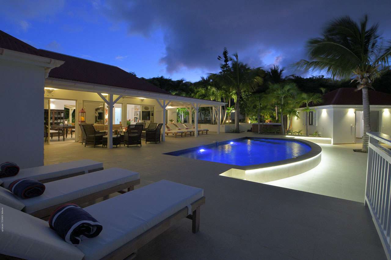Welcome to Villa Kir Royal (villa code: WV KRL), a gorgeous 4-bedroom villa located in St. Jean within a short walk of the beach, restaurants, and shopping. Stylish and elegant, this island home is full of tropical charm, offering a relaxing getaway in St. Barts. The interiors of Villa Kir Royal are cool and bright, with white walls and vaulted ceilings above. Dark wooden furnishings create a pleasant island atmosphere, while the décor offers a touch of Oriental accents. Open and flowing, the whole home is filled with natural light and tropical breezes, coaxing you into the relaxed pace of life on the island. Located above the pond in St. Jean, Villa Kir Royal is a 2-minute drive from the beach, restaurants, and boutique shops. It also enjoys plenty of privacy, nestled in a quiet corner and surrounded by palm trees, with views over the verdant green towards the sparkling blues of the Caribbean Sea. You’ll immediately feel at home as soon as you step inside Villa Kir Royal. There’s a relaxed and homey atmosphere to this villa, distinguished by its comfortable furnishings and graceful island style. There’s a blissful sense of well-being and tranquility here offering some laidback living. The living room is furnished with a pair of plush sofas facing a wall of glass sliding doors that open to reveal an outdoor living area on the covered terrace. Vaulted ceilings above capture plenty of natural light, while the elegant antique furnishings provide a sense of timelessness, ideal for spending your days relaxing inside. The living room at Villa Kir Royal shares its space with a well-equipped kitchen. Charming and bright, you’ll easily be able to whip up delicious gourmet meals here. Our concierge even has a few tricks up its sleeve, from organizing a grocery delivery to arranging a visit from one of the island’s private chefs. Between the kitchen and the living room is a small indoor dining table with bench-style seating. There’s also an interior courtyard with a second large dining table, complete with a gas grill for island-style cookouts. The bedrooms inside Villa Kir Royal are just as serene as the rest of the home. Earthy accents of wood and rattan add a natural touch to each room. Spread across separate pavilions and the main house, the design is all about privacy between guests. In the main house is the master bedroom, while two bedrooms are in a separate pavilion to one side of the pool. The fourth room is on the other side of the pool. All rooms enjoy plush king-sized beds, promising a peaceful night’s rest after long days lounging around the pool or exploring the island’s beaches. Spending a day lounging in the outdoor living spaces of Villa Kir Royal is immensely rewarding. Beautiful stonework in the walls and a small yard with bougainvillea next to the deck help the entire space blend in superbly with its surroundings. There’s an outdoor lounge and another dining table underneath the covered terrace, letting you eat and drink in the warm island air. The swimming pool is tempting, surrounded by loungers and palm trees for idyllic sunbathing sessions or settling in with a good book in the shade. The views are gorgeous as well: from the rolling green hills to the red roofs of other villas, all the way to the Caribbean Sea in the distance. During the December holidays, the villa rents at the full occupancy rate regardless of how many bedrooms are used.Please fill out the form to begin your inquiry and we will connect you with a seasoned villa rental specialist.
