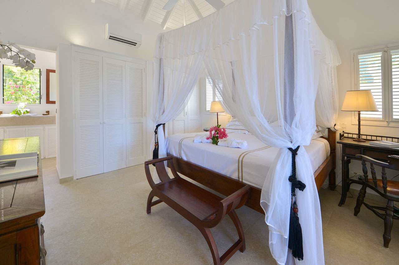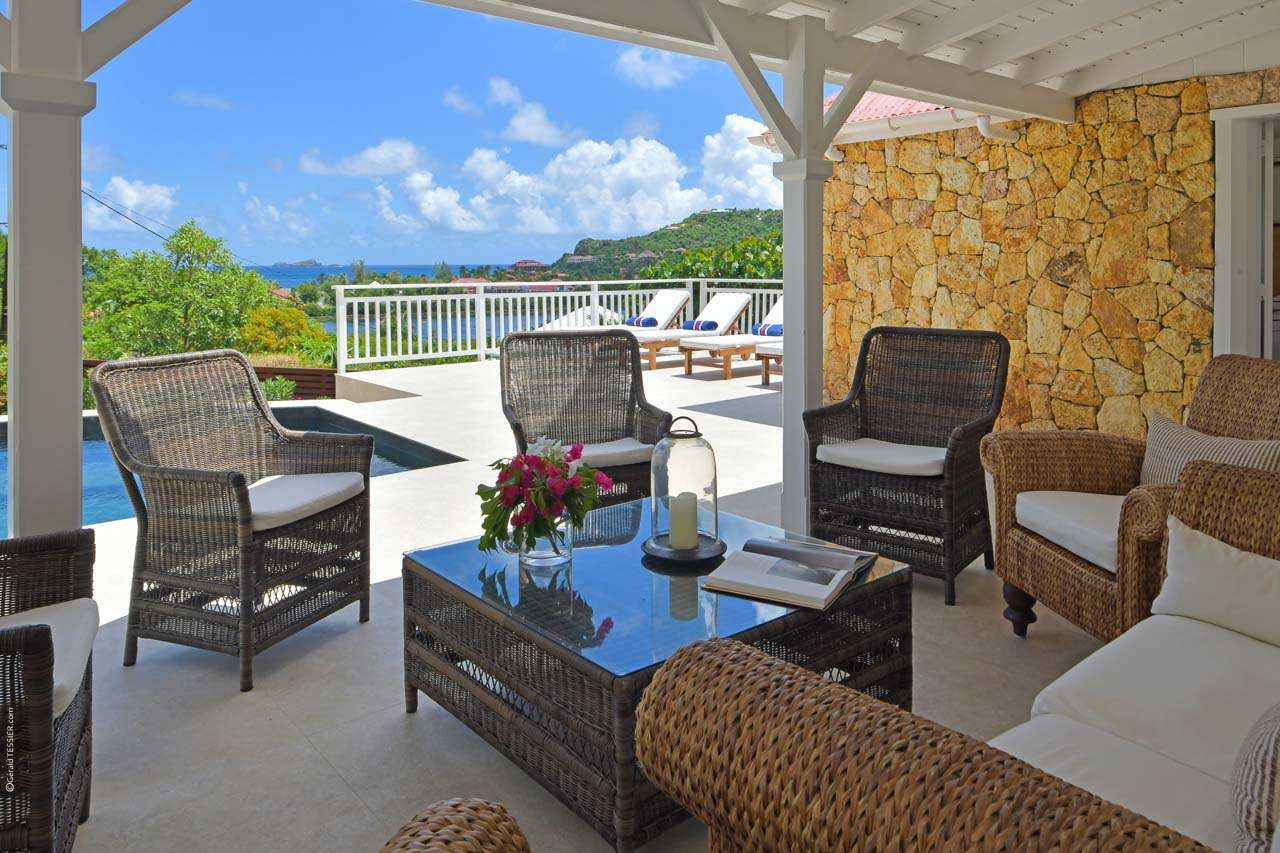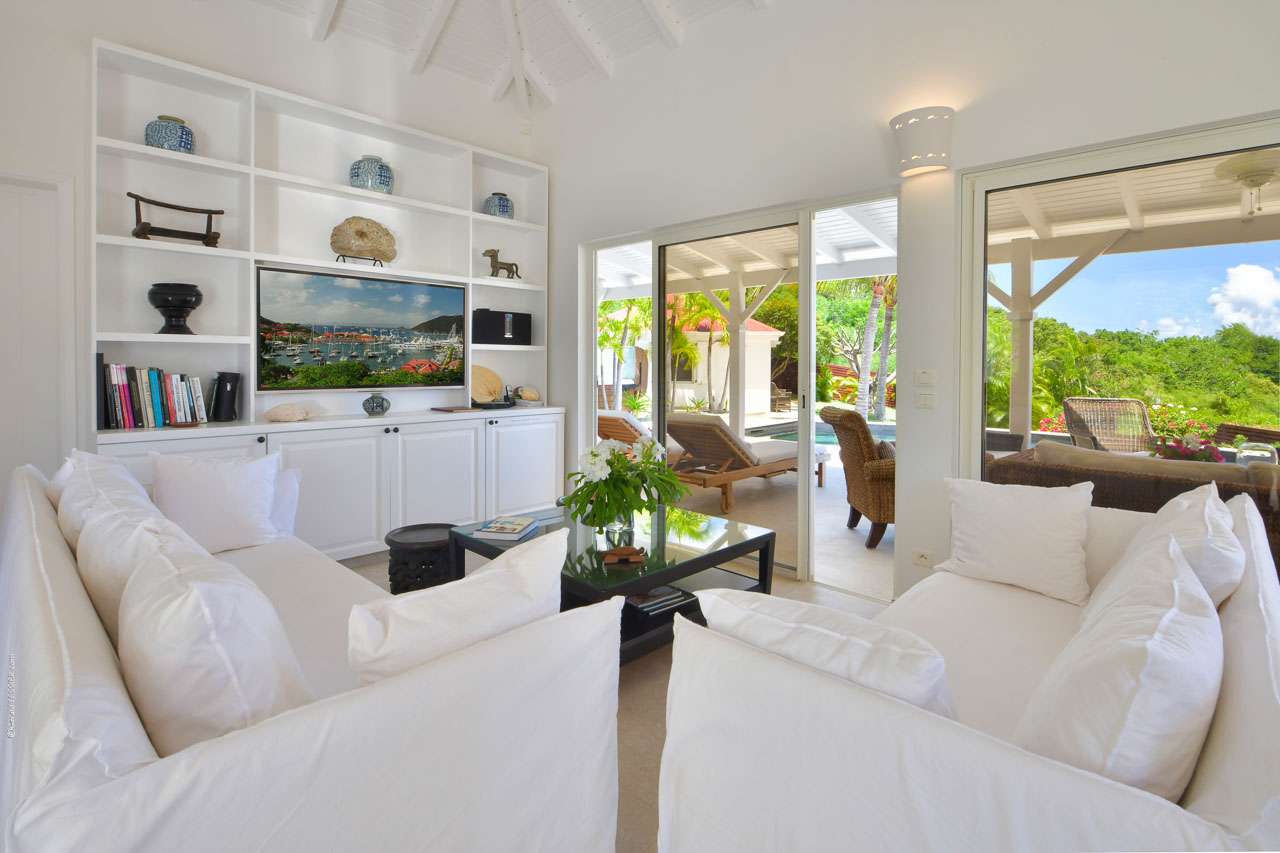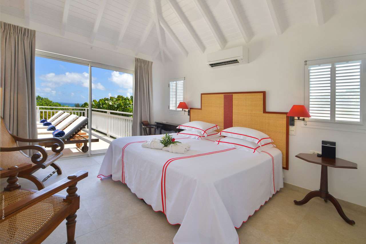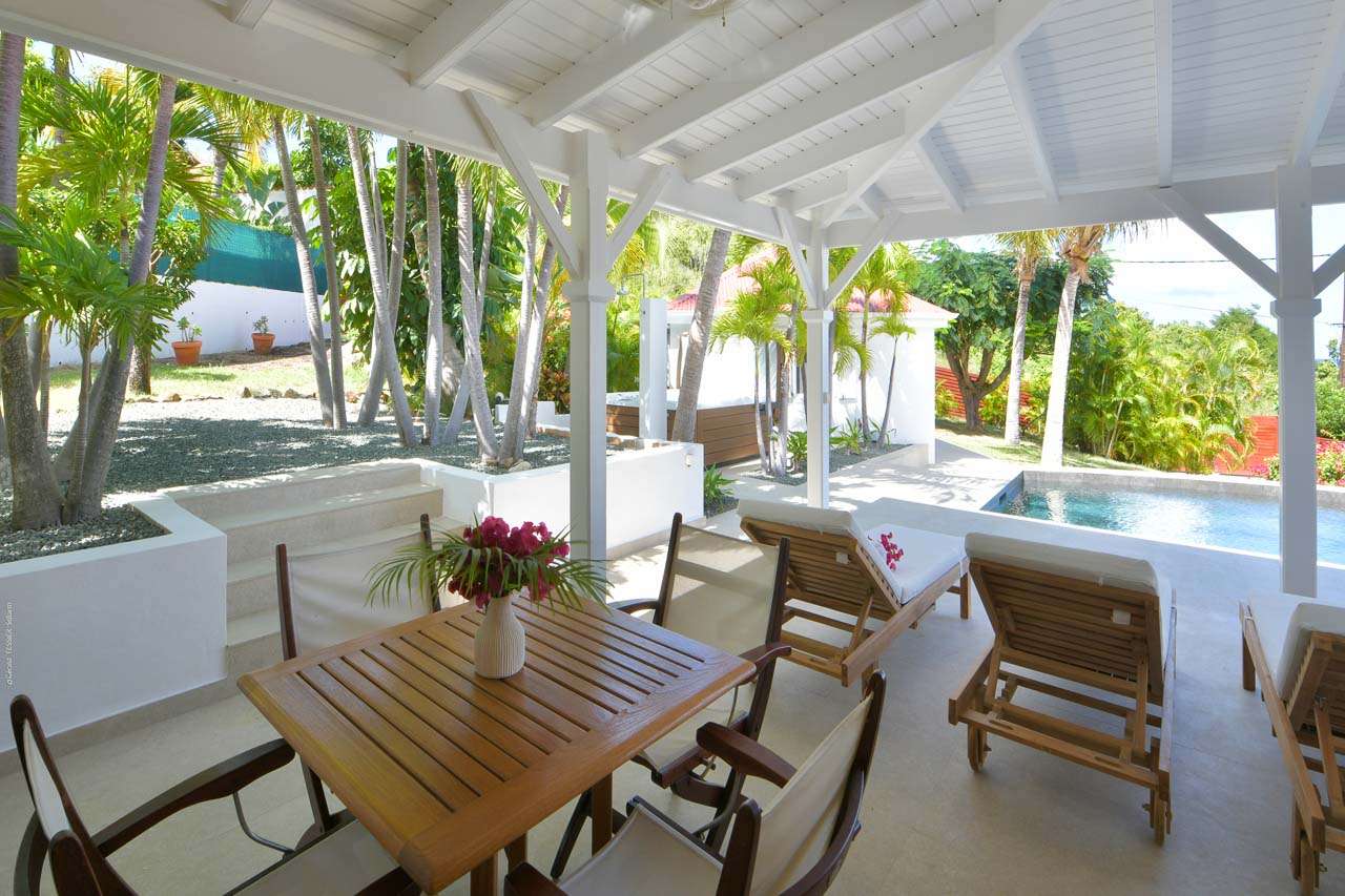 Welcome to Villa Kir Royal (villa code: WV KRL), a gorgeous 4-bedroom villa located in St. Jean within a short walk of the beach, restaurants, and shopping. Stylish and elegant, this island home is full of tropical charm, offering a relaxing getaway in St. Barts. The interiors of Villa Kir Royal are cool and bright, with white walls and vaulted ceilings above. Dark wooden furnishings create a pleasant island atmosphere, while the décor offers a touch of Oriental accents. Open and flowing, the whole home is filled with natural light and tropical breezes, coaxing you into the relaxed pace of life on the island. Located above the pond in St. Jean, Villa Kir Royal is a 2-minute drive from the beach, restaurants, and boutique shops. It also enjoys plenty of privacy, nestled in a quiet corner and surrounded by palm trees, with views over the verdant green towards the sparkling blues of the Caribbean Sea. You’ll immediately feel at home as soon as you step inside Villa Kir Royal. There’s a relaxed and homey atmosphere to this villa, distinguished by its comfortable furnishings and graceful island style. There’s a blissful sense of well-being and tranquility here offering some laidback living. The living room is furnished with a pair of plush sofas facing a wall of glass sliding doors that open to reveal an outdoor living area on the covered terrace. Vaulted ceilings above capture plenty of natural light, while the elegant antique furnishings provide a sense of timelessness, ideal for spending your days relaxing inside. The living room at Villa Kir Royal shares its space with a well-equipped kitchen. Charming and bright, you’ll easily be able to whip up delicious gourmet meals here. Our concierge even has a few tricks up its sleeve, from organizing a grocery delivery to arranging a visit from one of the island’s private chefs. Between the kitchen and the living room is a small indoor dining table with bench-style seating. There’s also an interior courtyard with a second large dining table, complete with a gas grill for island-style cookouts. The bedrooms inside Villa Kir Royal are just as serene as the rest of the home. Earthy accents of wood and rattan add a natural touch to each room. Spread across separate pavilions and the main house, the design is all about privacy between guests. In the main house is the master bedroom, while two bedrooms are in a separate pavilion to one side of the pool. The fourth room is on the other side of the pool. All rooms enjoy plush king-sized beds, promising a peaceful night’s rest after long days lounging around the pool or exploring the island’s beaches. Spending a day lounging in the outdoor living spaces of Villa Kir Royal is immensely rewarding. Beautiful stonework in the walls and a small yard with bougainvillea next to the deck help the entire space blend in superbly with its surroundings. There’s an outdoor lounge and another dining table underneath the covered terrace, letting you eat and drink in the warm island air. The swimming pool is tempting, surrounded by loungers and palm trees for idyllic sunbathing sessions or settling in with a good book in the shade. The views are gorgeous as well: from the rolling green hills to the red roofs of other villas, all the way to the Caribbean Sea in the distance. During the December holidays, the villa rents at the full occupancy rate regardless of how many bedrooms are used.Please fill out the form to begin your inquiry and we will connect you with a seasoned villa rental specialist.