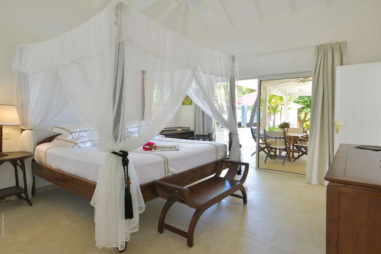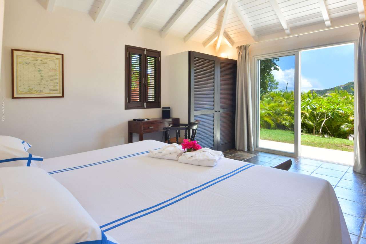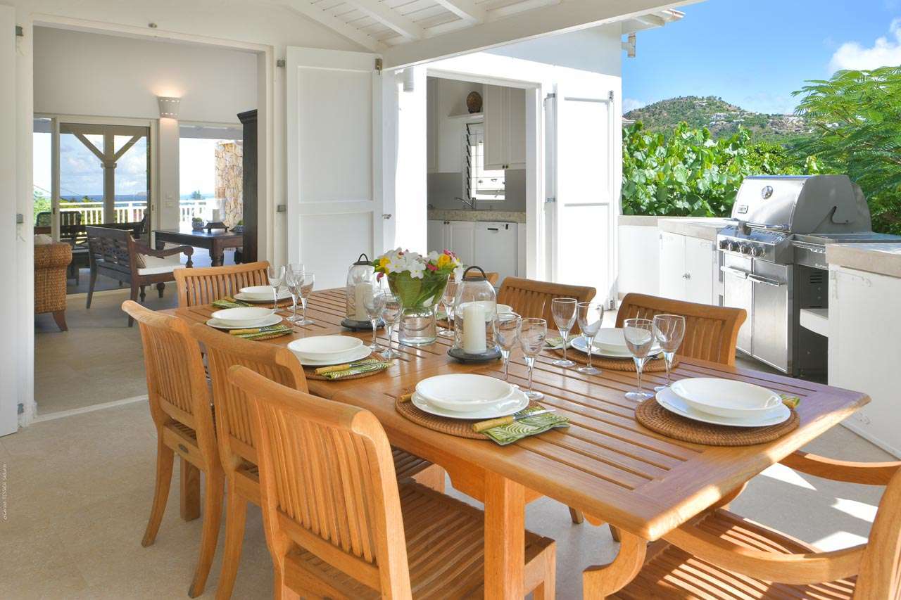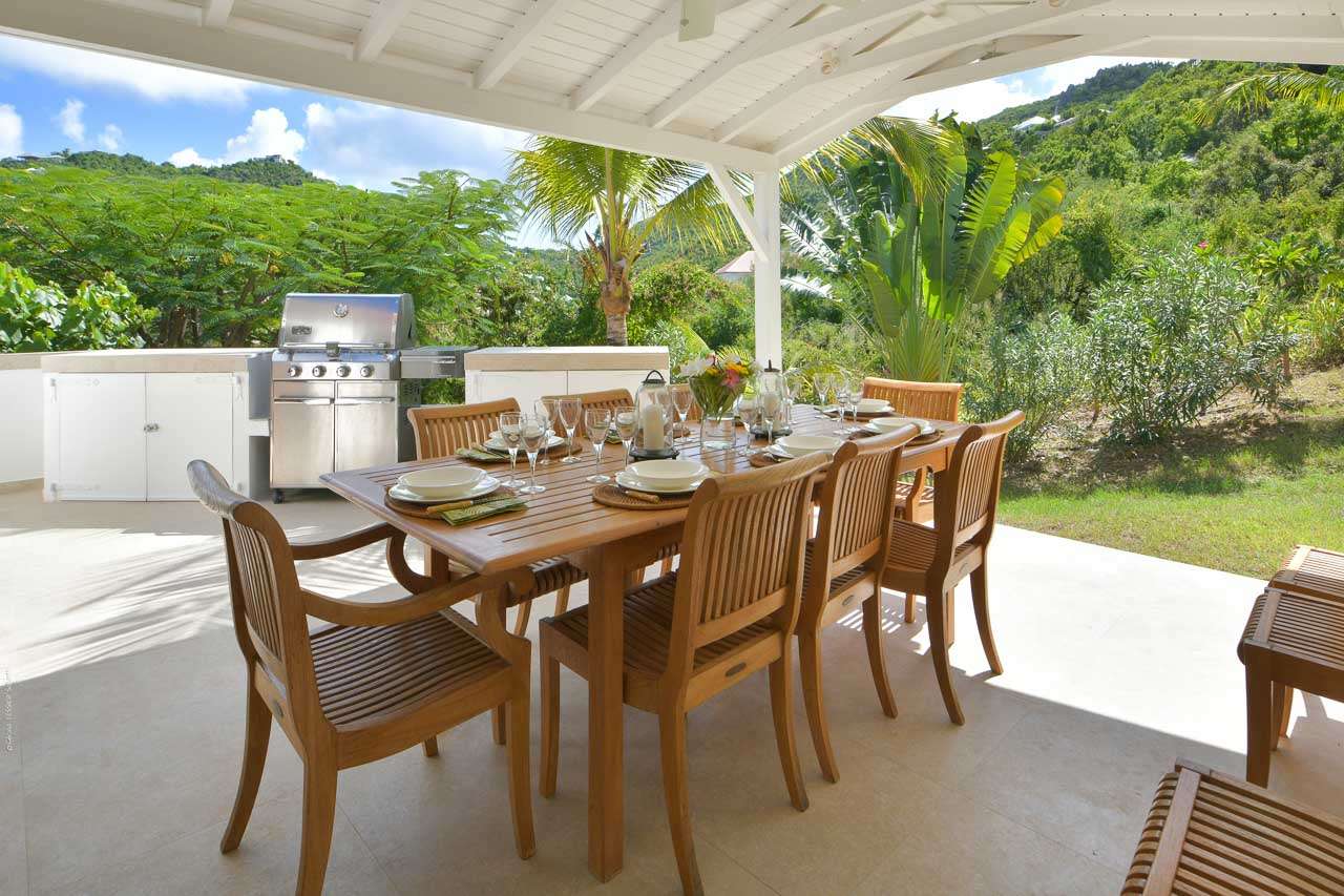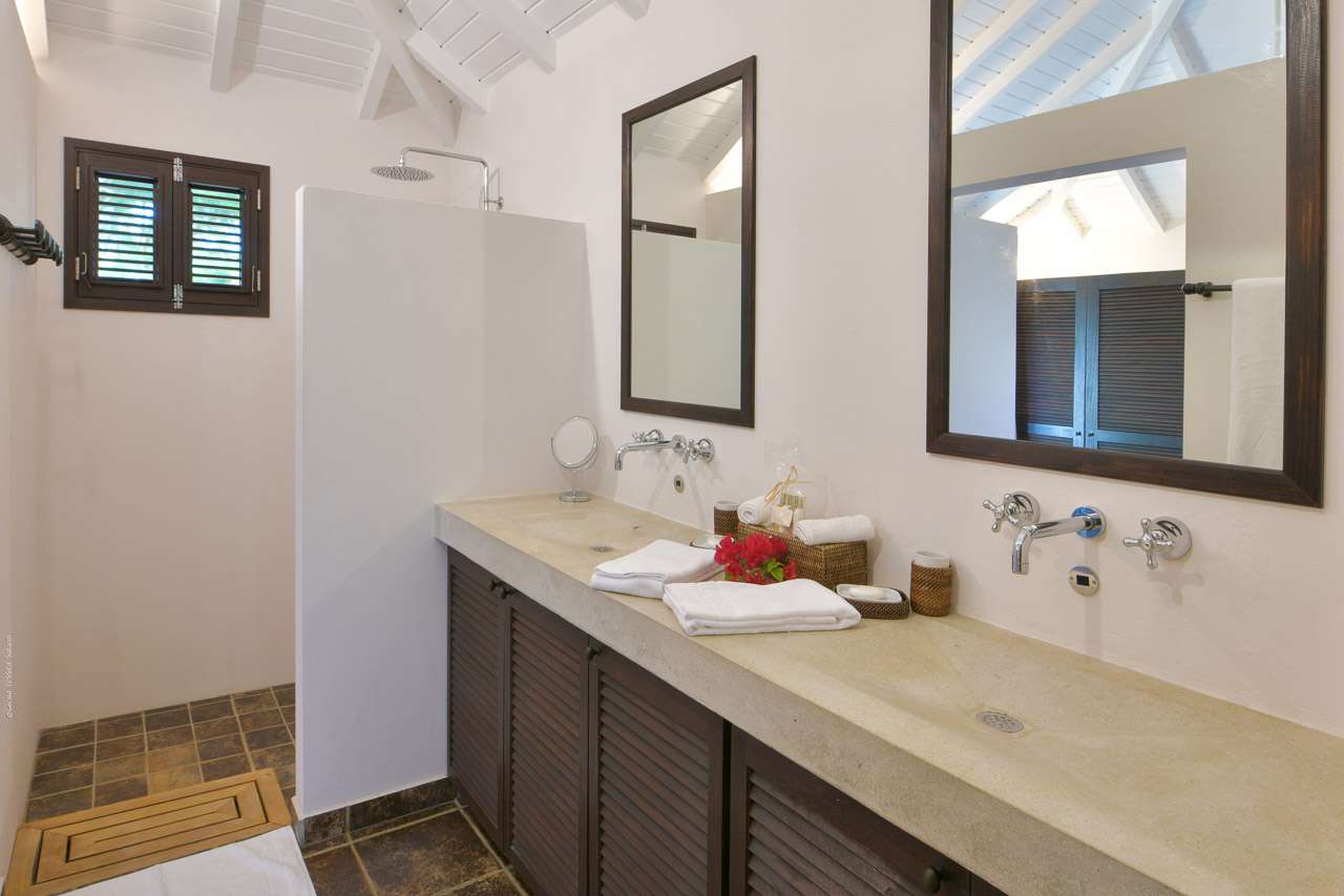 Welcome to Villa Kir Royal (villa code: WV KRL), a gorgeous 4-bedroom villa located in St. Jean within a short walk of the beach, restaurants, and shopping. Stylish and elegant, this island home is full of tropical charm, offering a relaxing getaway in St. Barts. The interiors of Villa Kir Royal are cool and bright, with white walls and vaulted ceilings above. Dark wooden furnishings create a pleasant island atmosphere, while the décor offers a touch of Oriental accents. Open and flowing, the whole home is filled with natural light and tropical breezes, coaxing you into the relaxed pace of life on the island. Located above the pond in St. Jean, Villa Kir Royal is a 2-minute drive from the beach, restaurants, and boutique shops. It also enjoys plenty of privacy, nestled in a quiet corner and surrounded by palm trees, with views over the verdant green towards the sparkling blues of the Caribbean Sea. You’ll immediately feel at home as soon as you step inside Villa Kir Royal. There’s a relaxed and homey atmosphere to this villa, distinguished by its comfortable furnishings and graceful island style. There’s a blissful sense of well-being and tranquility here offering some laidback living. The living room is furnished with a pair of plush sofas facing a wall of glass sliding doors that open to reveal an outdoor living area on the covered terrace. Vaulted ceilings above capture plenty of natural light, while the elegant antique furnishings provide a sense of timelessness, ideal for spending your days relaxing inside. The living room at Villa Kir Royal shares its space with a well-equipped kitchen. Charming and bright, you’ll easily be able to whip up delicious gourmet meals here. Our concierge even has a few tricks up its sleeve, from organizing a grocery delivery to arranging a visit from one of the island’s private chefs. Between the kitchen and the living room is a small indoor dining table with bench-style seating. There’s also an interior courtyard with a second large dining table, complete with a gas grill for island-style cookouts. The bedrooms inside Villa Kir Royal are just as serene as the rest of the home. Earthy accents of wood and rattan add a natural touch to each room. Spread across separate pavilions and the main house, the design is all about privacy between guests. In the main house is the master bedroom, while two bedrooms are in a separate pavilion to one side of the pool. The fourth room is on the other side of the pool. All rooms enjoy plush king-sized beds, promising a peaceful night’s rest after long days lounging around the pool or exploring the island’s beaches. Spending a day lounging in the outdoor living spaces of Villa Kir Royal is immensely rewarding. Beautiful stonework in the walls and a small yard with bougainvillea next to the deck help the entire space blend in superbly with its surroundings. There’s an outdoor lounge and another dining table underneath the covered terrace, letting you eat and drink in the warm island air. The swimming pool is tempting, surrounded by loungers and palm trees for idyllic sunbathing sessions or settling in with a good book in the shade. The views are gorgeous as well: from the rolling green hills to the red roofs of other villas, all the way to the Caribbean Sea in the distance. During the December holidays, the villa rents at the full occupancy rate regardless of how many bedrooms are used.Please fill out the form to begin your inquiry and we will connect you with a seasoned villa rental specialist.