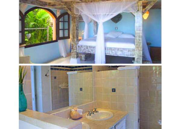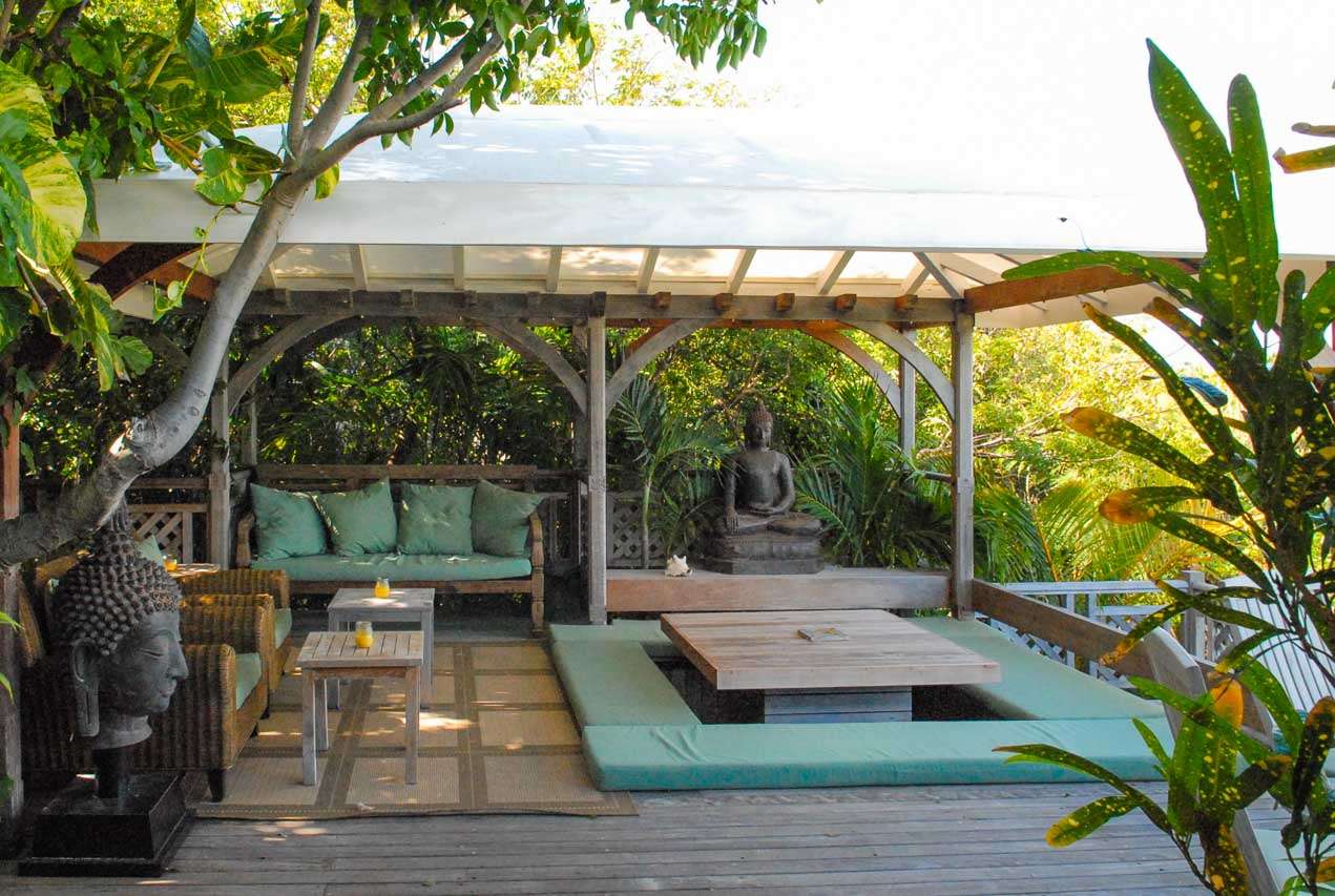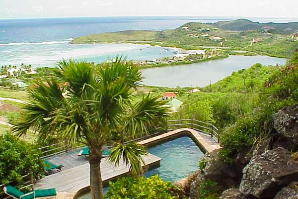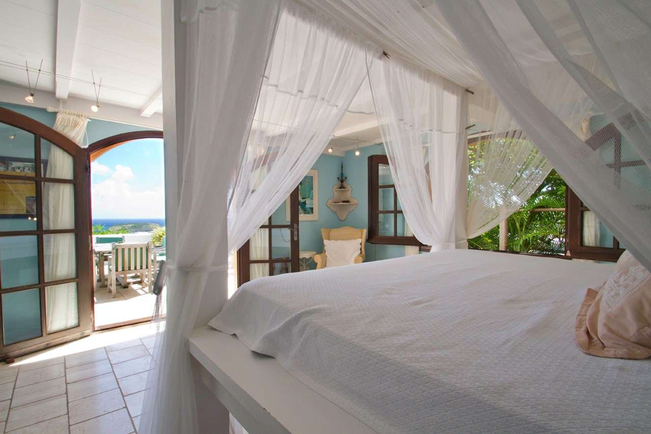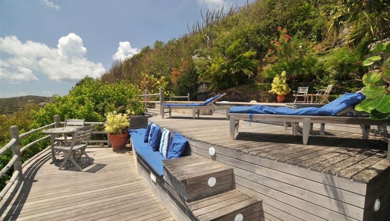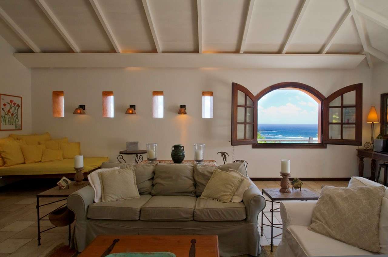 Castaway to Villa Kyody (villa code: WV KDY), a 2-bedroom villa located in Marigot within minutes of several beaches and restaurants. Nestled in the hillside above Grand Cul-de-Sac Bay, this villa has lovely views of the Caribbean and the offshore island of La Tortue. The interiors feature arched doors and windows, wooden accents, and beautiful stonework. Elegant island furnishings and local artwork help give the home the atmosphere of a South American tropical hideaway. Secluded amongst the lush foliage, Villa Kyody offers peerless privacy in one of St. Barts’ more tranquil neighborhoods. Beaches and restaurants at Grand Cul-de-Sac Bay are just a 10-minute walk away. As soon as you enter Villa Kyody you’re greeted with the spacious living room. Plush sofas and elegant wooden furnishings make it a great place to relax. Through the windows, you can glimpse the glimmering Caribbean and undulating hills surrounding the bay. Doors open towards the terrace and pool deck, letting you wash the entire space with natural light and cooling sea breezes. If you’re after something a bit cozier, Villa Kyody also features a lovely reading room upstairs. A bookshelf has a large variety of novels to read, right next to a soft daybed ideal for getting lost in a story. Connected to the living room is Villa Kyody’s well-equipped galley kitchen. The cabinets clad in tropical wood and views of the lush foliage from the window will inspire you to experiment with the local flavors. To make things even easier, our concierge can organize grocery pre-stocking or delivery, catered meals, or arrange private chef service for a special occasion. When it’s time to dine, a separate dining room is next to the living room. A rounded wooden table has seating for up to 8 guests, making it a fabulous spot for an elegant dinner party. Open-air dining is also available at Villa Kyody. Next to the dining room is a charming cobblestone patio, with an oriental-inspired low-lying table for dining. Next to the living room is another outdoor dining table, this one with space for 6 guests overlooking the ocean. The master bedroom is located on the main floor and accessed via a hallway off the living room. This comfortable room features a king-sized bed with mosquito netting and a spacious ensuite bathroom. Ascending upstairs leads you to the second bedroom. This space also has a king-sized bed and ensuite bathroom, as well as stunning views over the shimmering Caribbean. The outdoor spaces at Villa Kyody wrap around the length of the property. From everywhere, you can admire the emerald hills sloping gently down to meet the turquoise water at Grand Cul-de-Sac. A wooden and stone deck surrounds the unique, hand-cut slate pool. The water retains the warmth of the morning sun throughout the day, making it a great spot to enjoy a swim. Loungers are ideal for soaking up the island rays. If the open water is more your style, then the beaches at both Marigot Bay and Grand Cul-de-Sac are a 10-minute walk down the hill. As the day comes to a close, a covered lounge area is the best seat in the house to enjoy a cocktail as you watch the sunset over the hills. During the Thanksgiving and December holidays, the villa rents at the full occupancy rate regardless of how many bedrooms are used.Please fill out the form to begin your inquiry and we will connect you with a seasoned villa rental specialist.