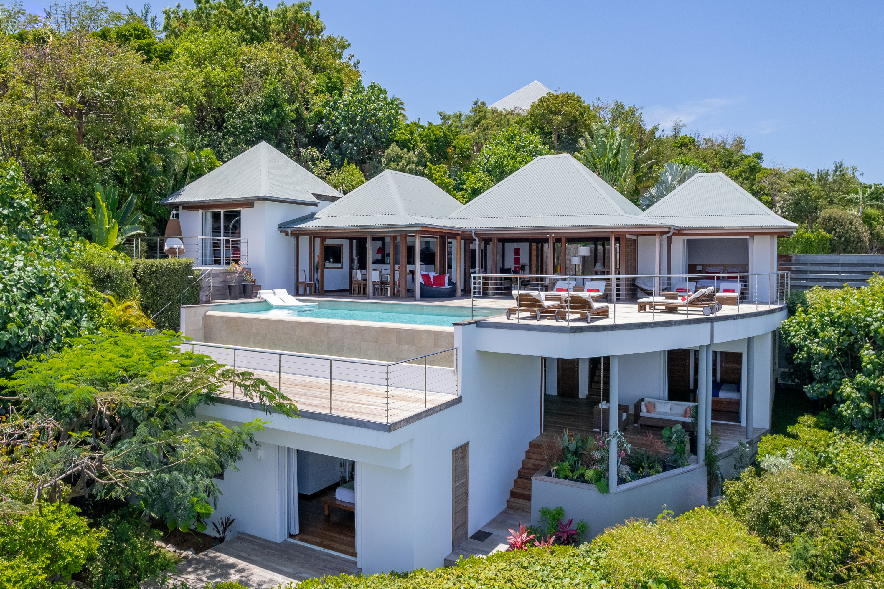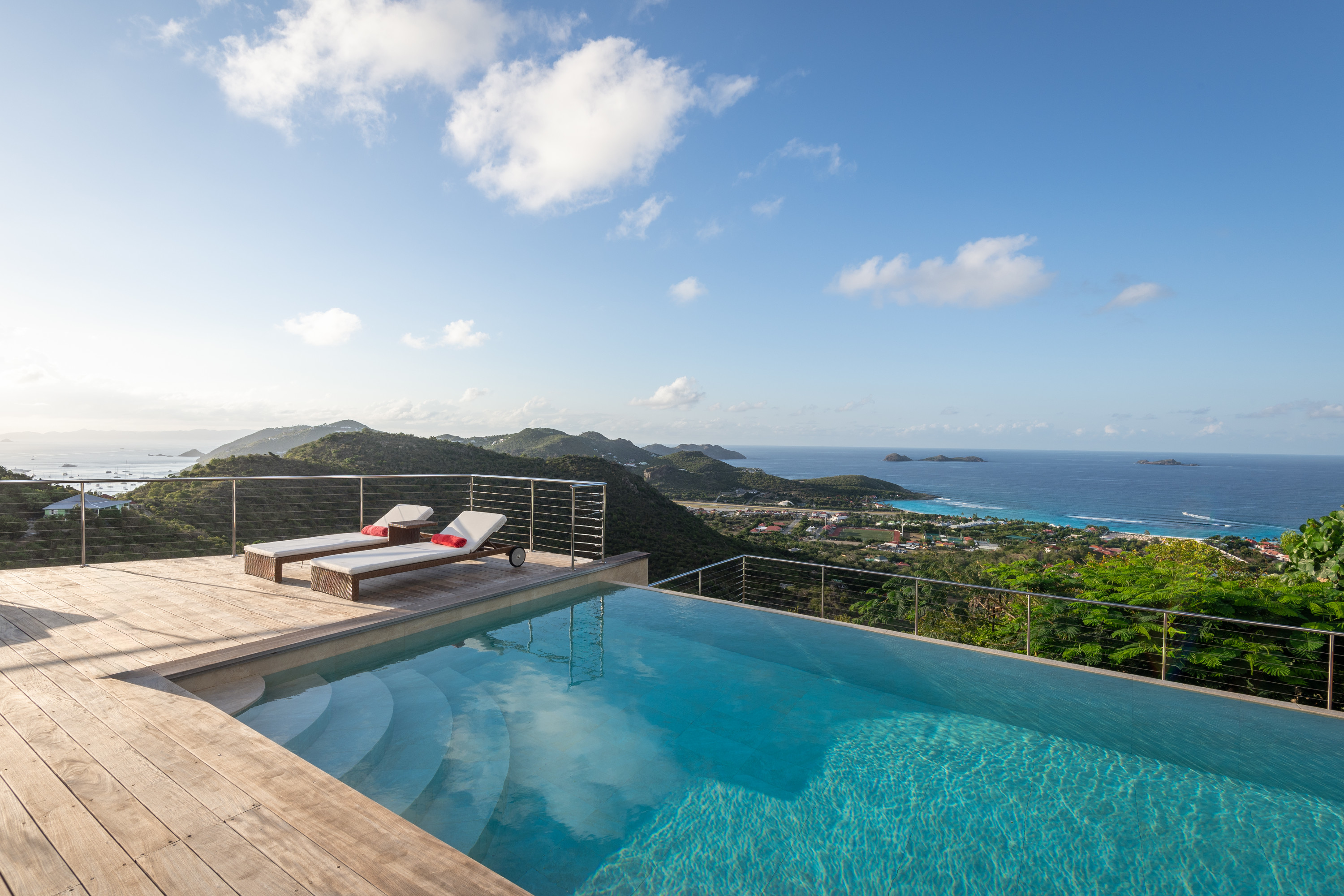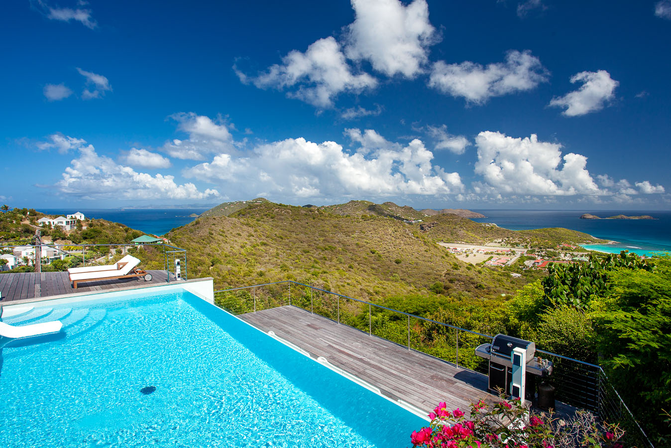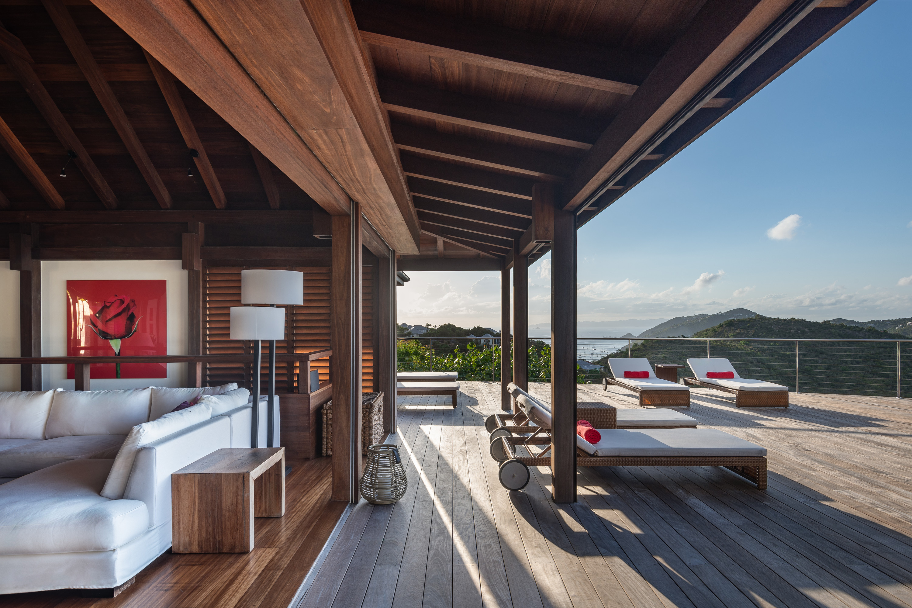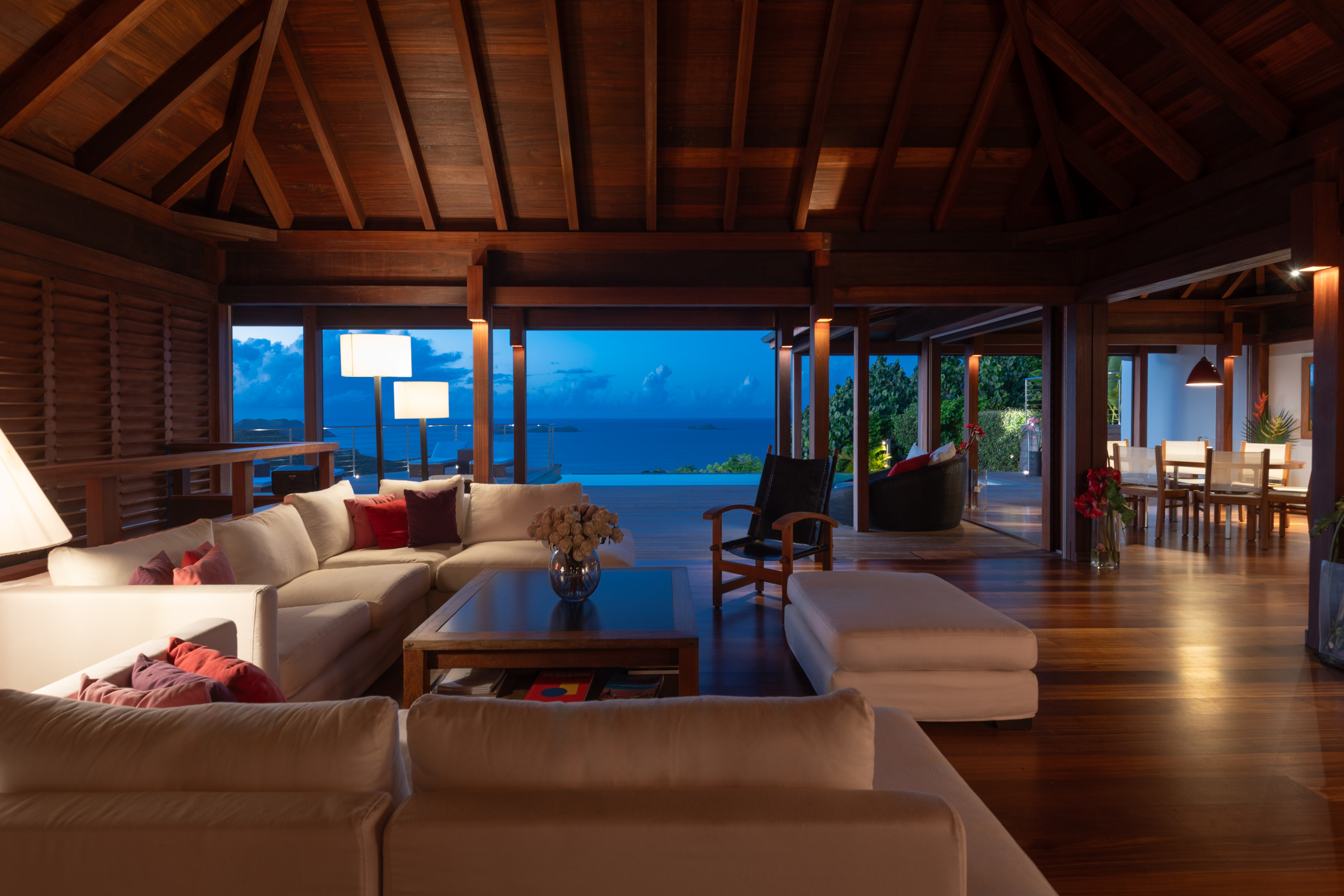 Villa Kyreve, (villa code: WV KYR) is a 4-bedroom villa located in Lurin within minutes of several beaches and shopping. This villa enjoys spectacular views of the landscape and ocean. The décor features bamboo stalks, artwork, and exotic wood. The spacious, open living room is comfortably furnished and connects to the well-equipped kitchen, which opens to the pool and view. The large master bedroom is just a few steps up from the kitchen and has a large dressing area and an ensuite bathroom with a shower. The second bedroom (with an exterior shower) is on the other side of the villa, while the other 2 bedrooms are located on the lower level down a flight of stairs. Three bedrooms have king-size platform beds, while 1 bedroom offers twin beds or a king-size bed. The large infinity pool overlooks the panoramic view. The house has a cinema room which requires a $5,000 deposit. During the December holidays, the villa rents at the full occupancy rate regardless of how many bedrooms are used.Please fill out the form to begin your inquiry and we will connect you with a seasoned villa rental specialist.