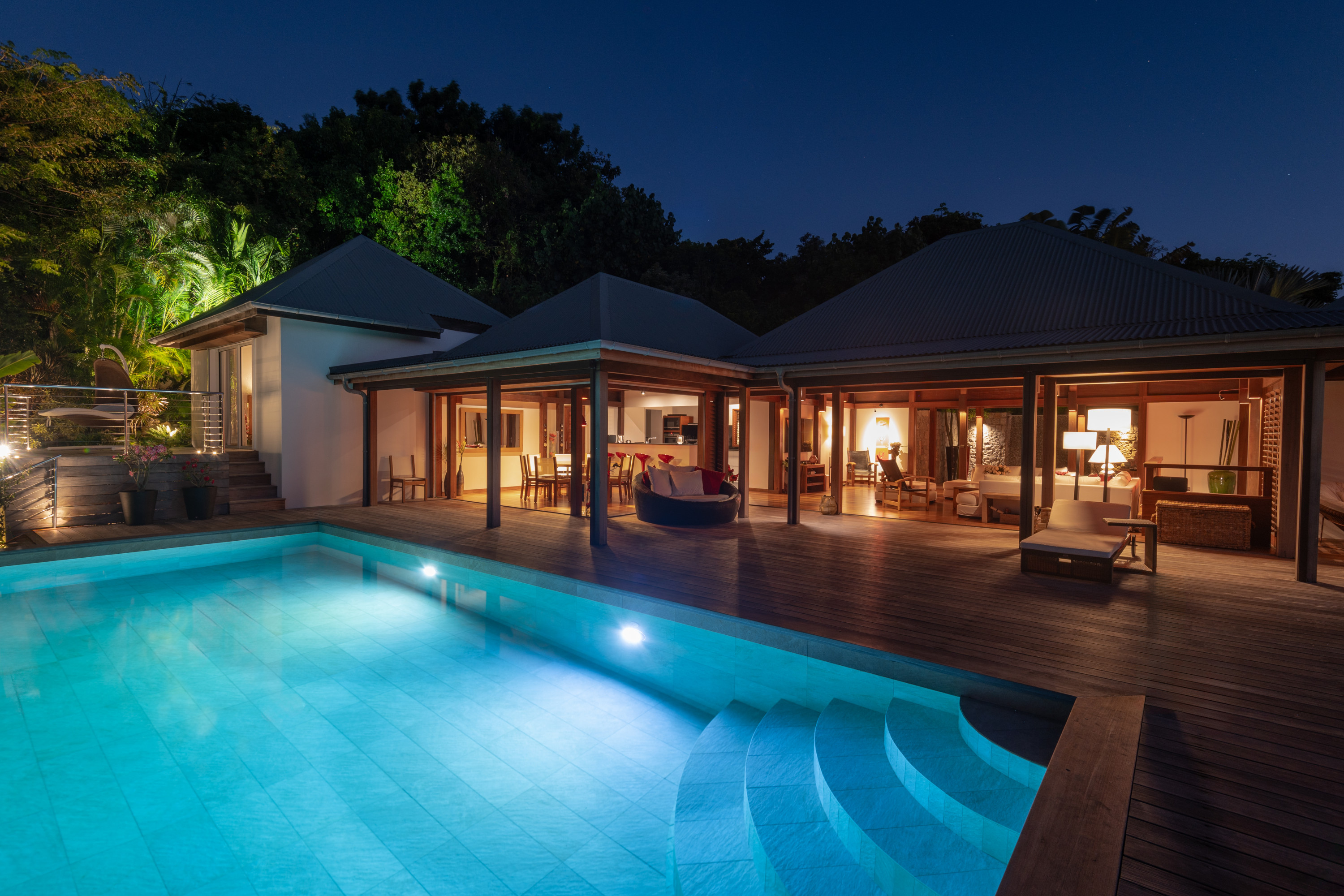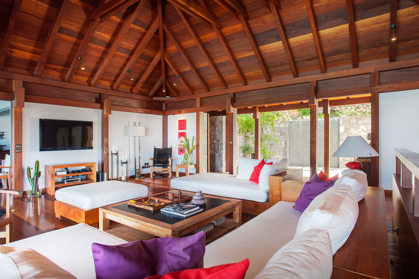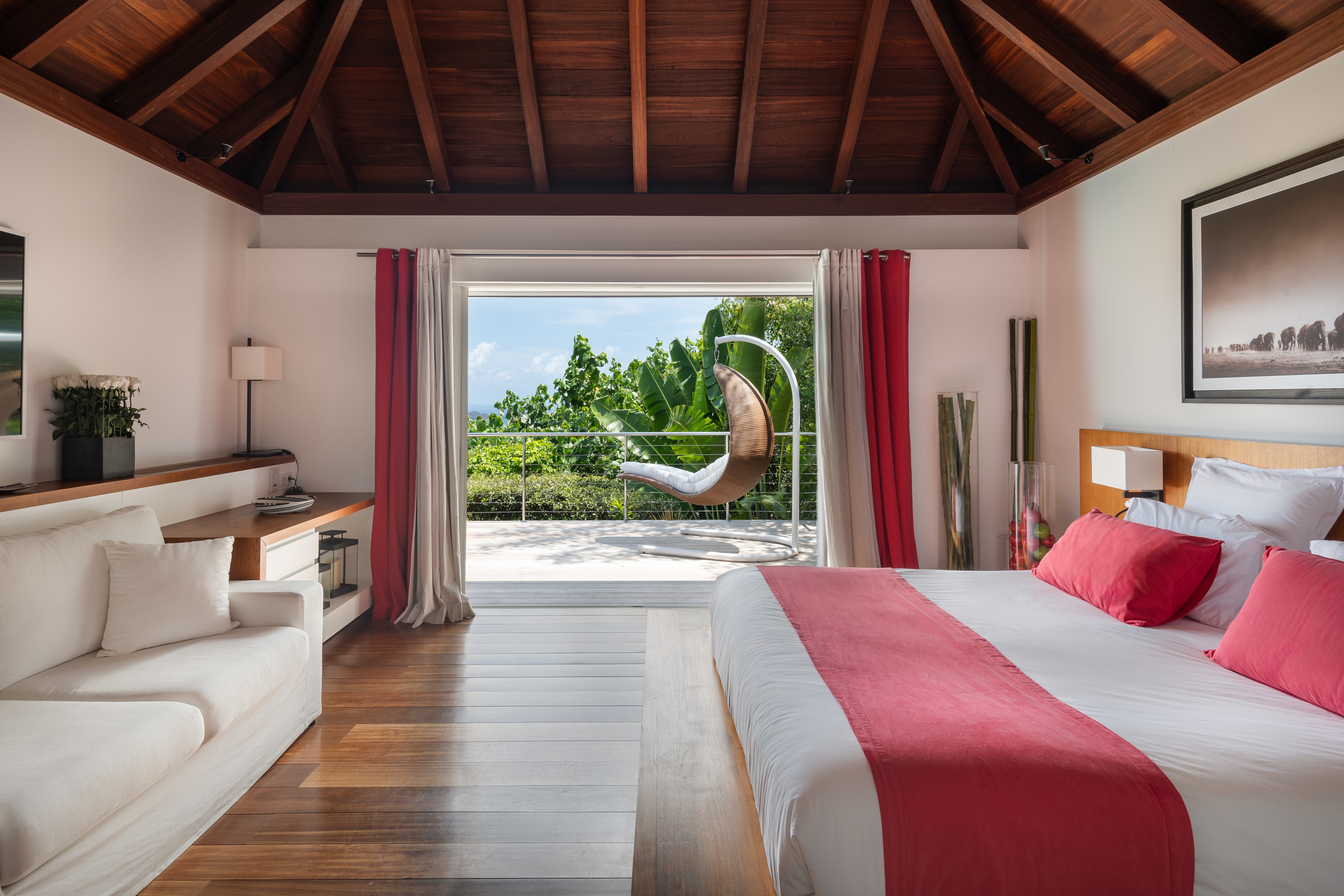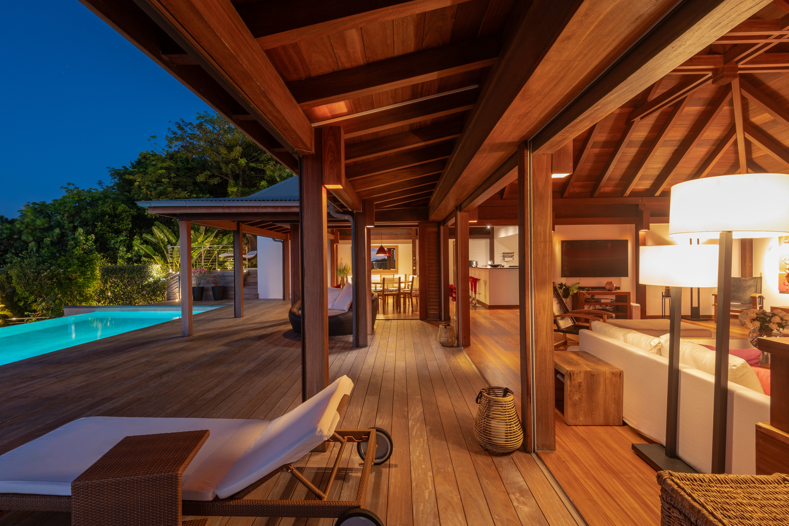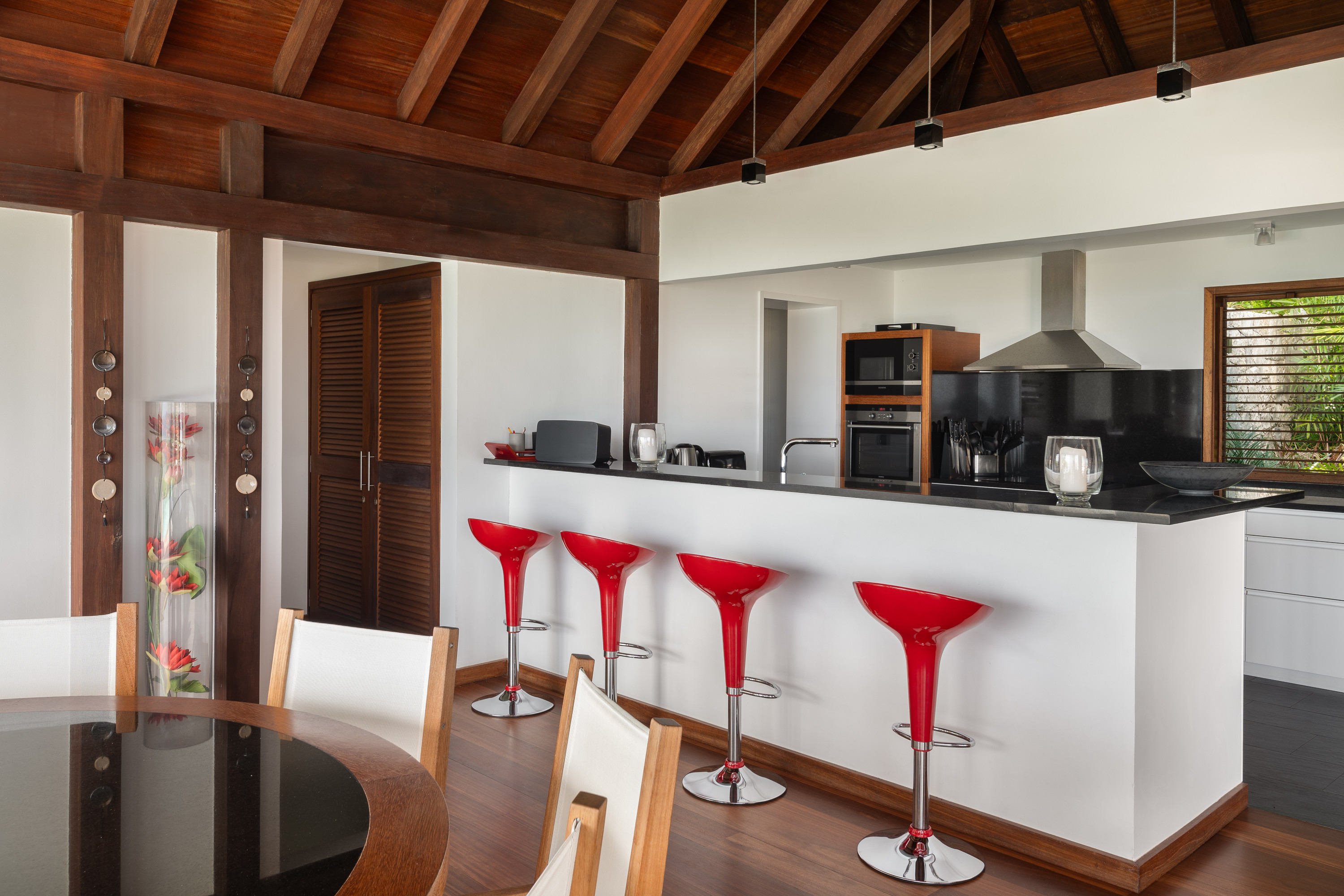 Villa Kyreve, (villa code: WV KYR) is a 4-bedroom villa located in Lurin within minutes of several beaches and shopping. This villa enjoys spectacular views of the landscape and ocean. The décor features bamboo stalks, artwork, and exotic wood. The spacious, open living room is comfortably furnished and connects to the well-equipped kitchen, which opens to the pool and view. The large master bedroom is just a few steps up from the kitchen and has a large dressing area and an ensuite bathroom with a shower. The second bedroom (with an exterior shower) is on the other side of the villa, while the other 2 bedrooms are located on the lower level down a flight of stairs. Three bedrooms have king-size platform beds, while 1 bedroom offers twin beds or a king-size bed. The large infinity pool overlooks the panoramic view. The house has a cinema room which requires a $5,000 deposit. During the December holidays, the villa rents at the full occupancy rate regardless of how many bedrooms are used.Please fill out the form to begin your inquiry and we will connect you with a seasoned villa rental specialist.