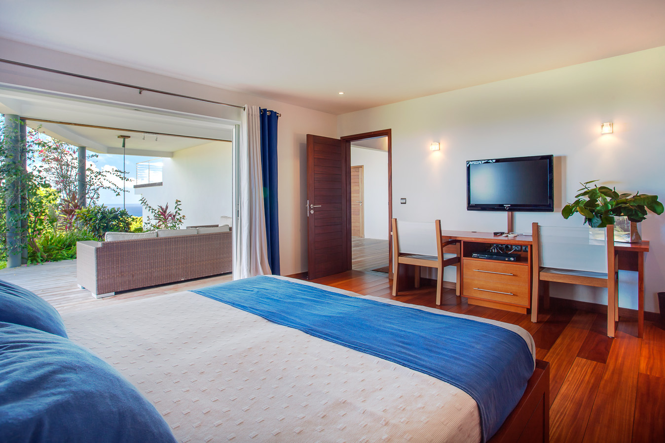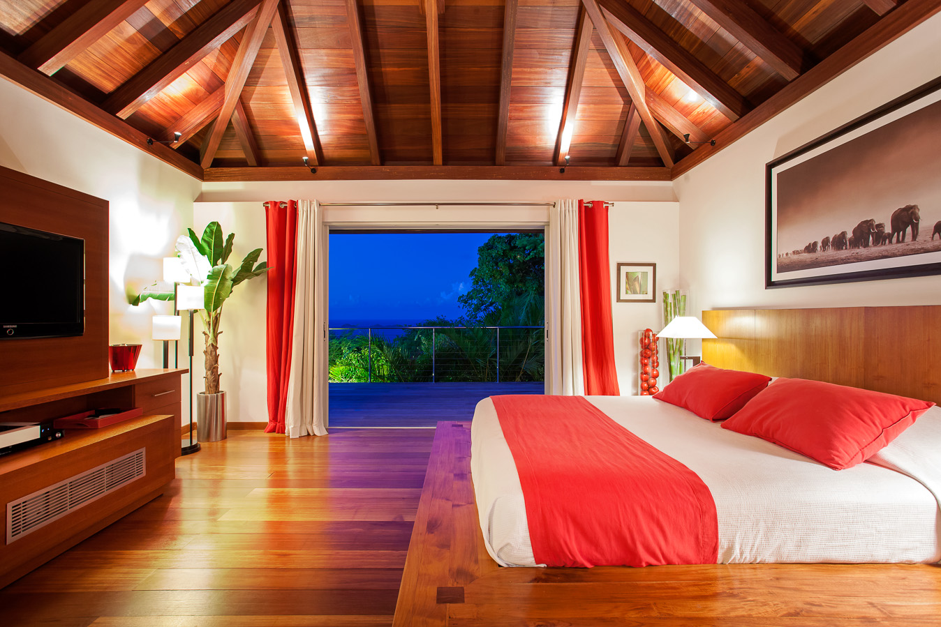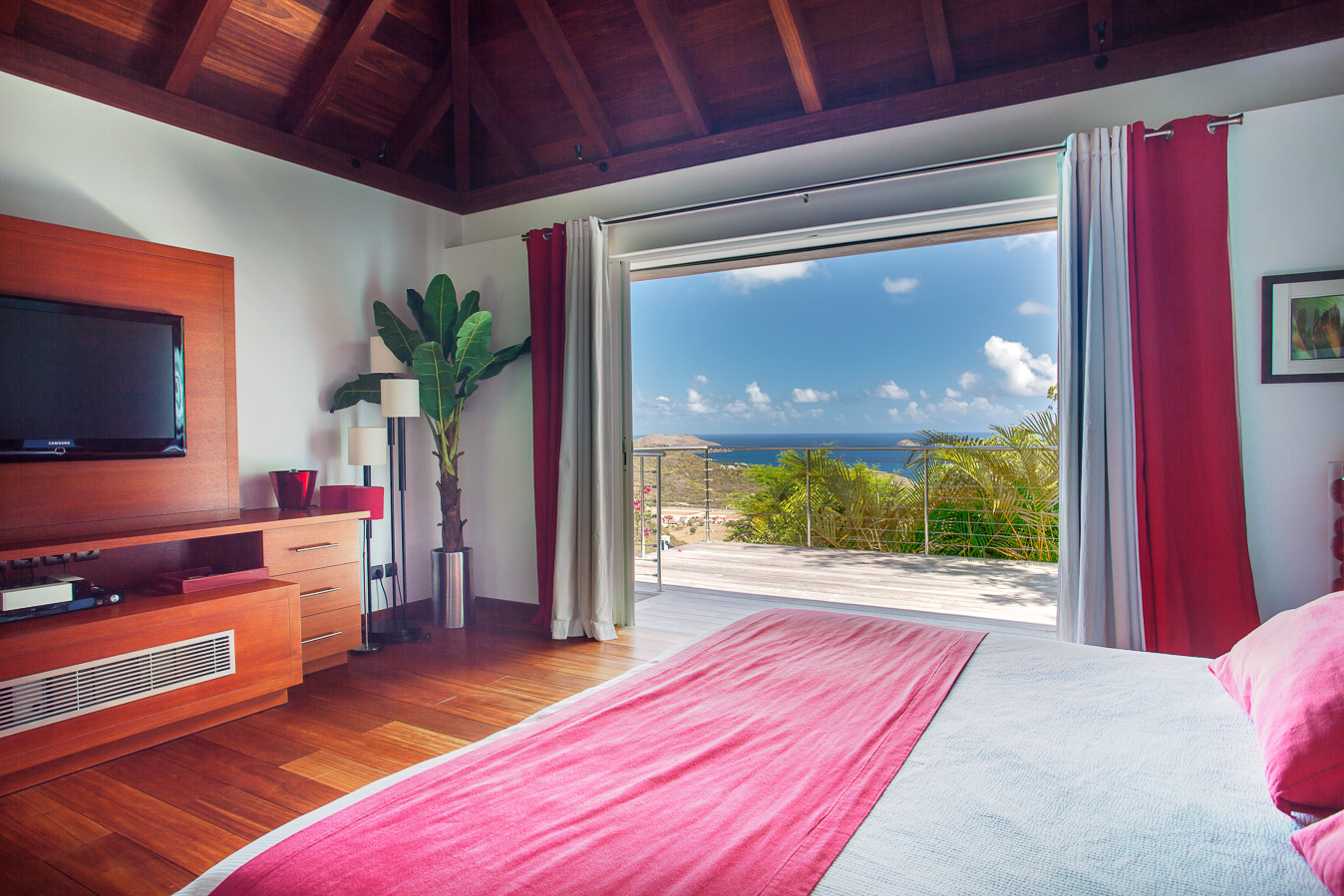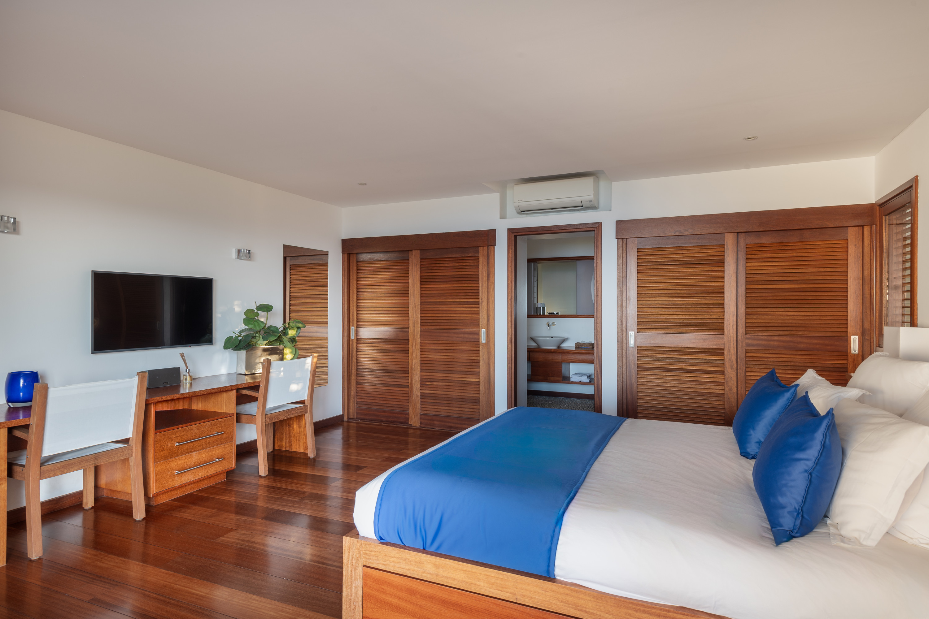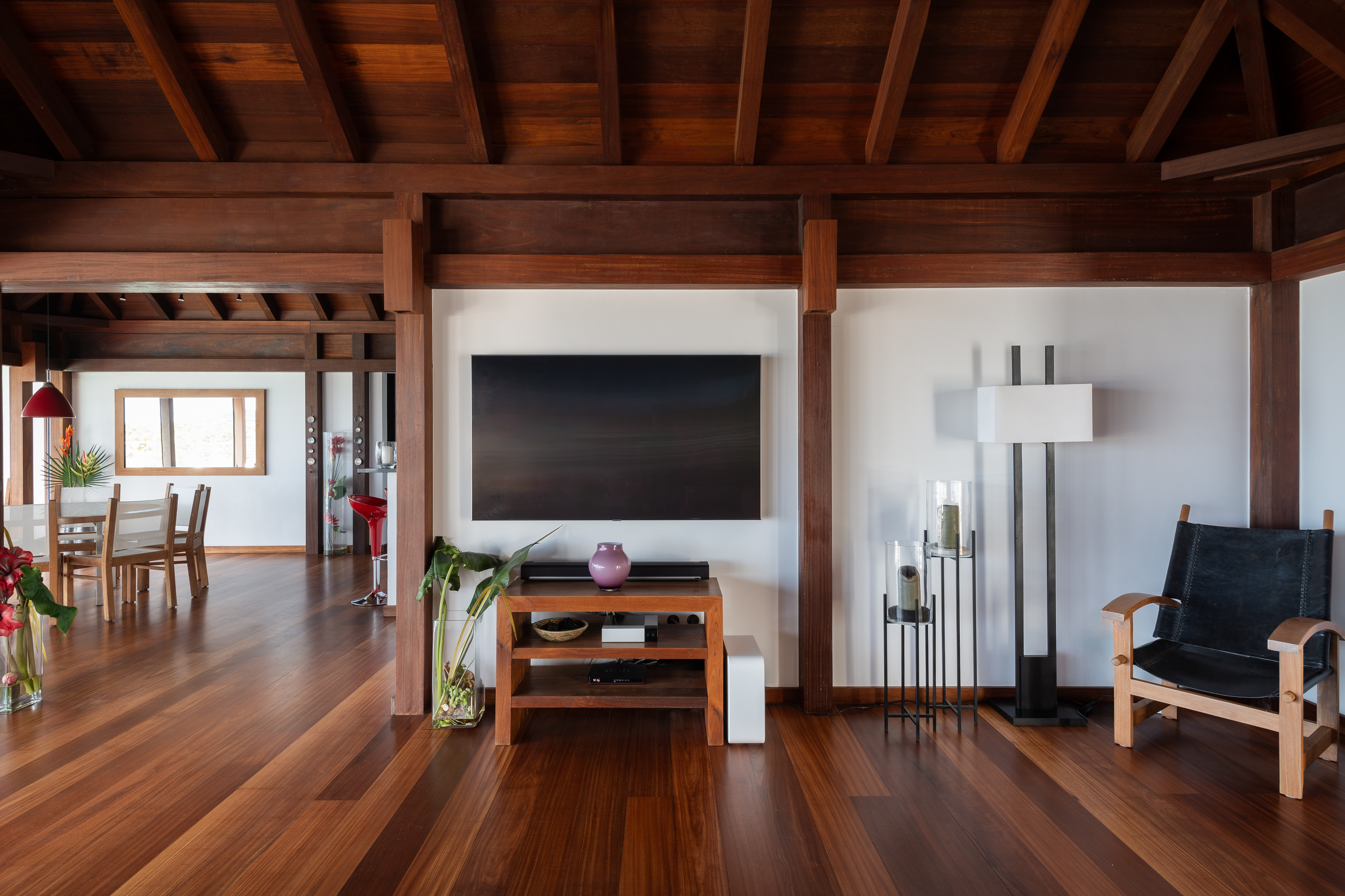 Villa Kyreve, (villa code: WV KYR) is a 4-bedroom villa located in Lurin within minutes of several beaches and shopping. This villa enjoys spectacular views of the landscape and ocean. The décor features bamboo stalks, artwork, and exotic wood. The spacious, open living room is comfortably furnished and connects to the well-equipped kitchen, which opens to the pool and view. The large master bedroom is just a few steps up from the kitchen and has a large dressing area and an ensuite bathroom with a shower. The second bedroom (with an exterior shower) is on the other side of the villa, while the other 2 bedrooms are located on the lower level down a flight of stairs. Three bedrooms have king-size platform beds, while 1 bedroom offers twin beds or a king-size bed. The large infinity pool overlooks the panoramic view. The house has a cinema room which requires a $5,000 deposit. During the December holidays, the villa rents at the full occupancy rate regardless of how many bedrooms are used.Please fill out the form to begin your inquiry and we will connect you with a seasoned villa rental specialist.