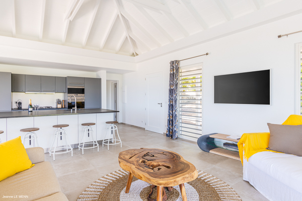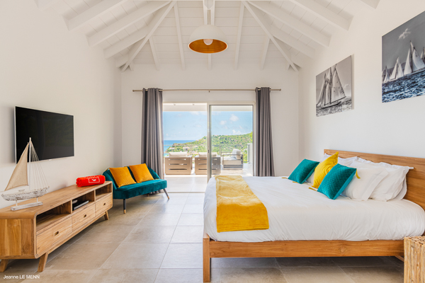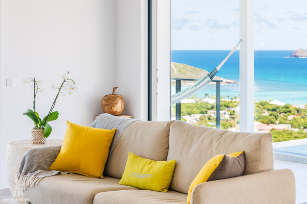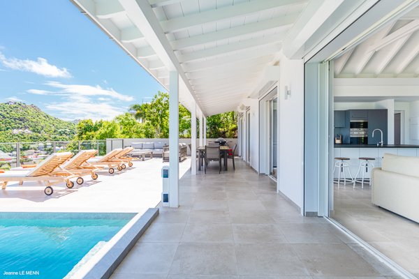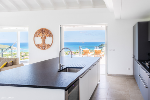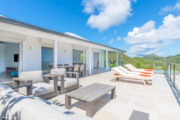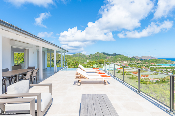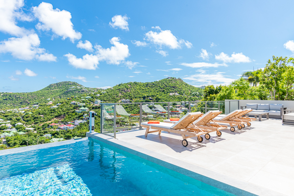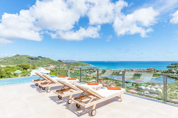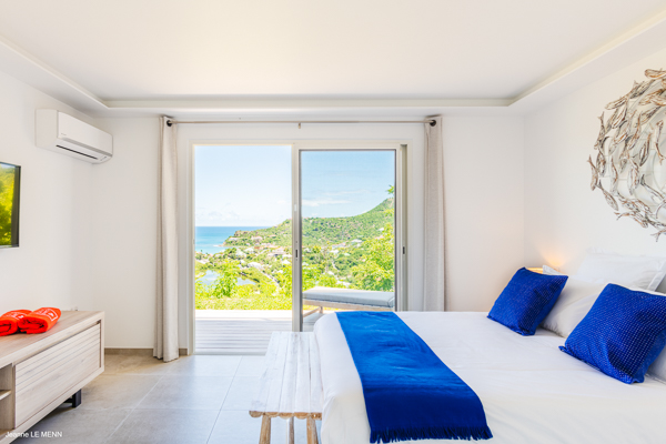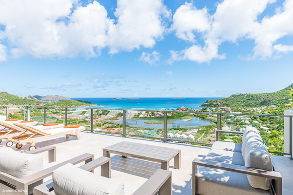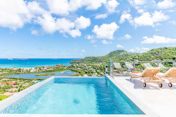 Villa L’Oiseau Bleu, (villa code: WV VOB) is a newly-built, 3-bedroom villa high in the hills of St. Jean, offering panoramic views of the bay and the ocean beyond. Villa L’Oiseau Bleu is situated above the renovated pond, just minutes from the beach, shops, and restaurants, but peacefully high above all the hustle and bustle of St Jean. The contemporary villa has a bright and open main room, with a large island separating the fully-equipped kitchen and living room. The large sliders can be fully opened to let in the cooling breezes, and bring the outside, in. The spacious terrace with the infinity pool tucked in the corner, has lounging and seating both in the sun or underneath the wraparound overhang in the shade, with stunning bird’s eye views. The master bedroom is situated just off the living room and offers a U.S. king-size bed and ensuite bathroom with a large shower. The other two bedrooms are accessed from the inside, through a staircase just outside the master bedroom. One has a king-size bed which is convertible into 2 twins and the other has a queen-size bed. There is a small, private terrace outside these rooms. All bedrooms have ocean views, air-conditioning, his and her closets, and a smart TV with Netflix. Villa L’Oiseau Bleu is a perfect villa for a family with children but can also suit couples vacationing together. During the December holidays, the villa rents at full occupancy rates regardless of how many bedrooms are used. * Note - A four-wheel drive is highly recommended.Please fill out the form to begin your inquiry and we will connect you with a seasoned villa rental specialist.