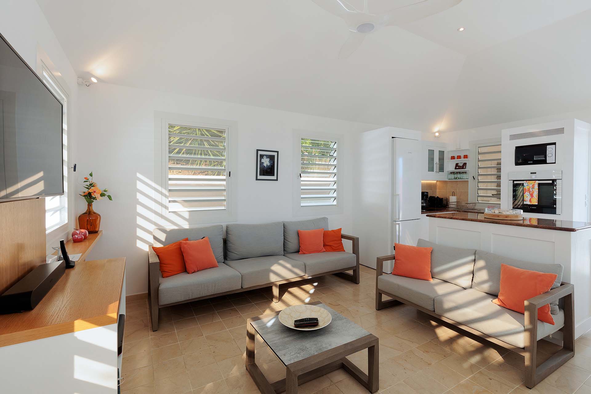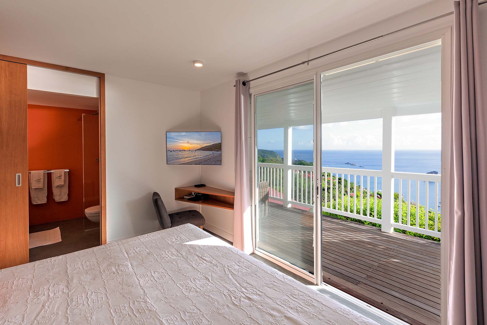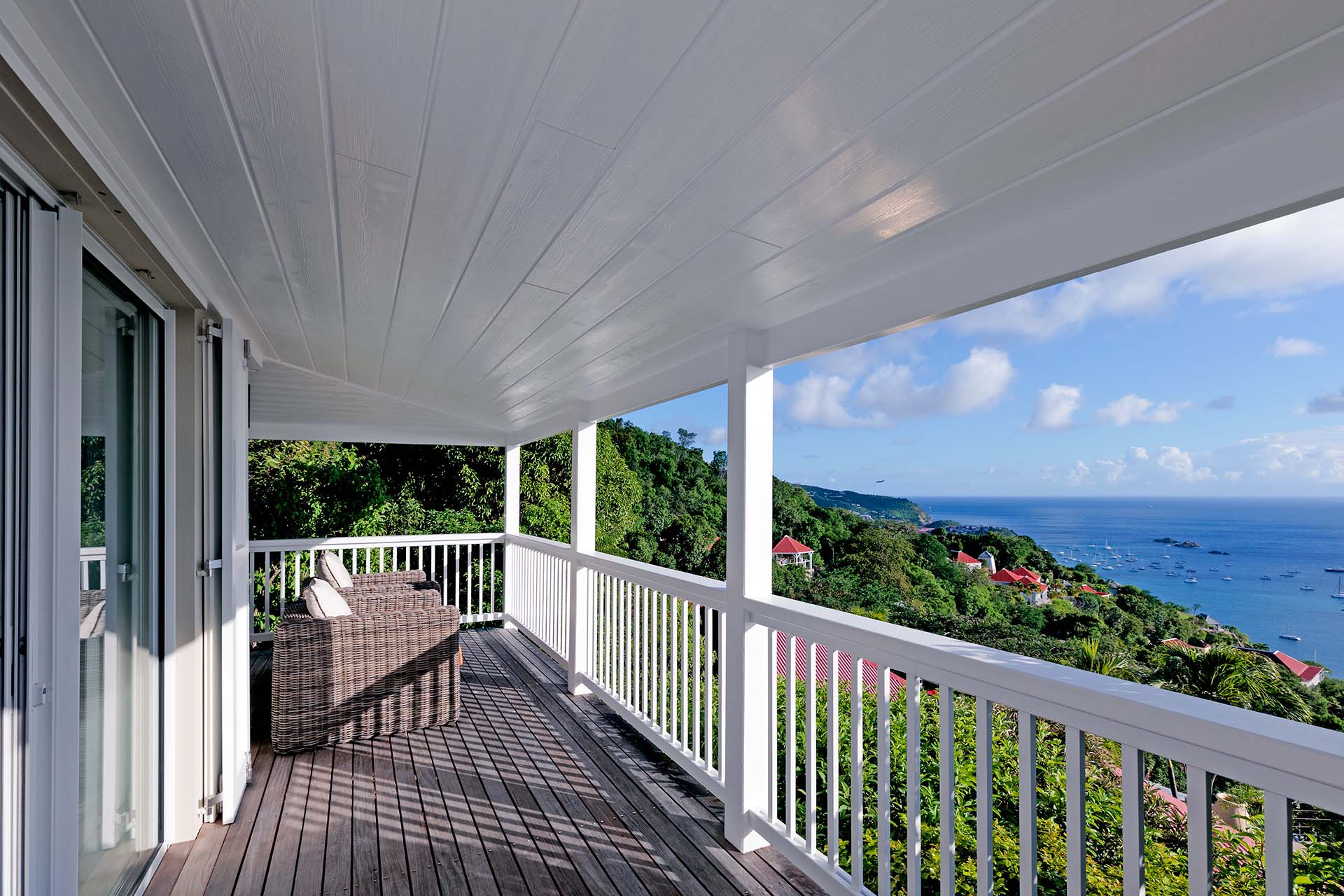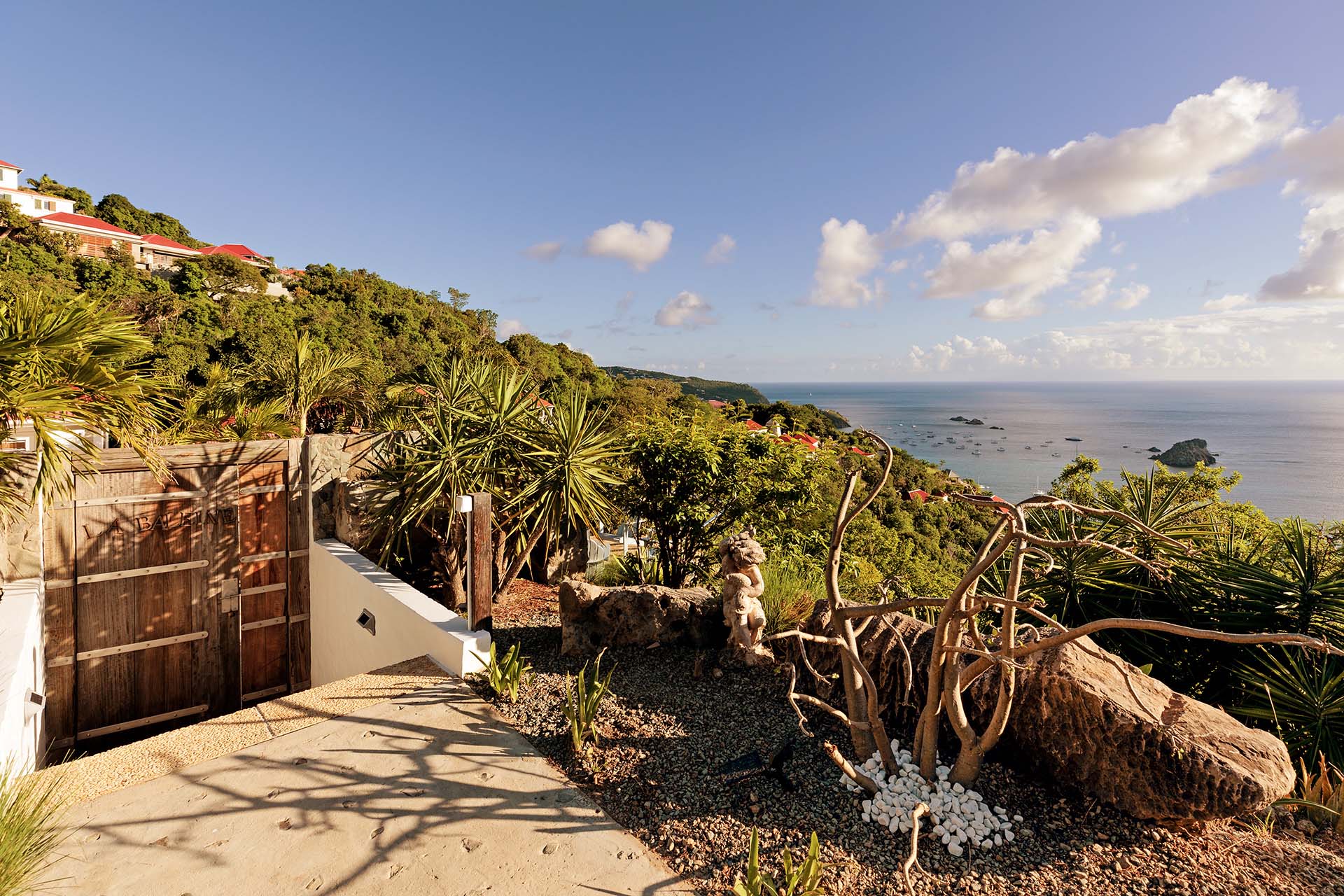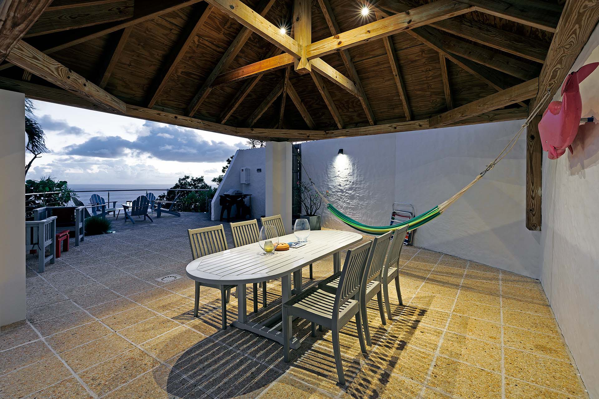 Welcome to Villa La Baleine (villa code: WV BAL), a charming 3-bedroom villa in Colombier, St. Barts. Located high in the hills, this island home enjoys breathtaking views of the ocean and nearby islands, all within minutes of the beach and shopping. There’s a distinct West Indies aesthetic to Villa La Baleine, with the design employing a variety of colors throughout the furnishings and décor. The layout too embraces the simplicity of island living, with several airy bungalows helping to blur the line between inside and out. Relaxed, quiet, and laid-back, this is an ideal choice for your island getaway. With a wonderful location in the hills of Colombier, Villa La Baleine is well connected to everything you might need for a luxurious Caribbean vacation. Flamands Beach is only a short drive away, as are the shops and restaurants of the capital Gustavia. Simple, bright, and airy, the living spaces inside Villa La Baleine make it easy to shrug off the rushes of modern life. Well-kept and with superb attention to detail, expect all the creature comforts you’d want from a luxurious St. Barts villa. A main great room combines the living room with the kitchen. The former is furnished with comfortable sofas and armchairs, inviting spots to sink in and unwind with a morning coffee or after a day exploring the island. Behind the living room is Villa La Baleine’s well-equipped kitchen. It has everything you might need for preparing meals, making it easy to whip up everything from quick snacks to gourmet feasts. Our concierge is also on hand to help – why not ask us to arrange a grocery delivery, or perhaps an evening with a private chef? The dining table is outside underneath a gazebo, letting you soak up the warm evening air and island breezes with your meal. The 3 bedrooms at Villa La Baleine are elegantly outfitted, spread across the main home and two separate bungalows to ensure privacy between guests. The bedroom bungalows are both accessed from the outdoor terrace. One has a king-sized bed with access to a hallway bathroom, the other has a king-sized bed with a private ensuite. Ascending upstairs above the main house reveals the master bedroom, where a four-poster king-sized bed promises a wonderful night’s sleep. This space also has a luxurious ensuite, a mini-fridge, and ocean views. Spending your time outside at Villa La Baleine is incredibly rewarding. A wooden terrace surrounds the villa’s plunge pool, with loungers for sunbathing and lush tropical plants bordering the edge. Nearby, the dining gazebo also features a gas grill, ideal for island-style cookouts. Two hammocks strung up here are also tempting spots to relax. An upper-level terrace features a sitting area, an idyllic spot for sunset cocktails in the evening. With outstanding views over the Caribbean and the offshore islands, this area will become an instant favorite for gathering in the late afternoon as the golden glow unfolds across the sky. During the Thanksgiving and December holidays, the villa rents at the full occupancy rate regardless of how many bedrooms are used.Please fill out the form to begin your inquiry and we will connect you with a seasoned villa rental specialist.