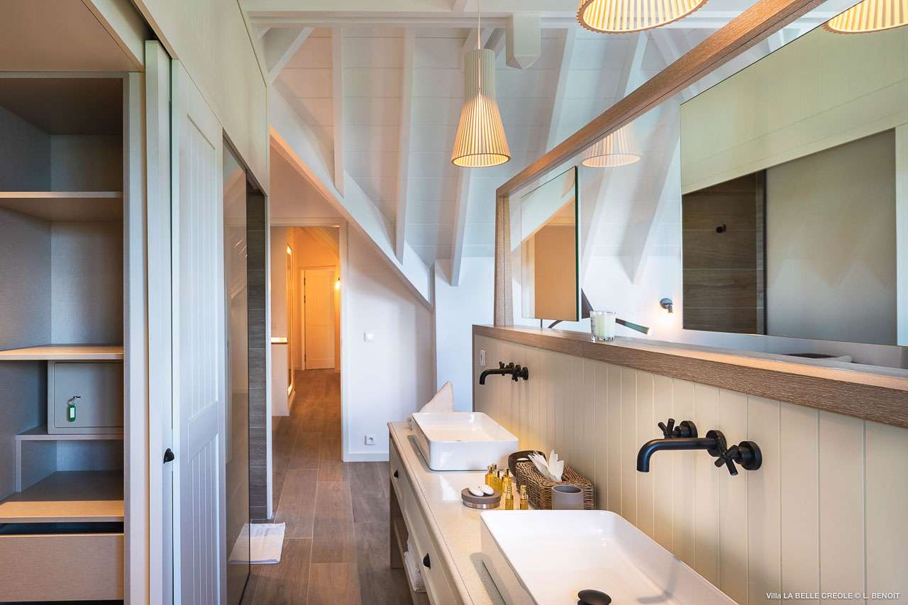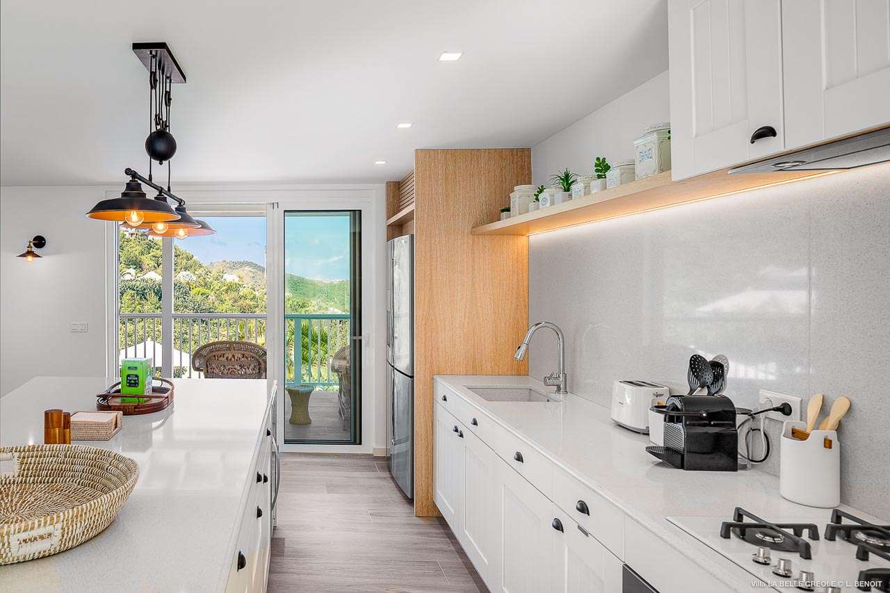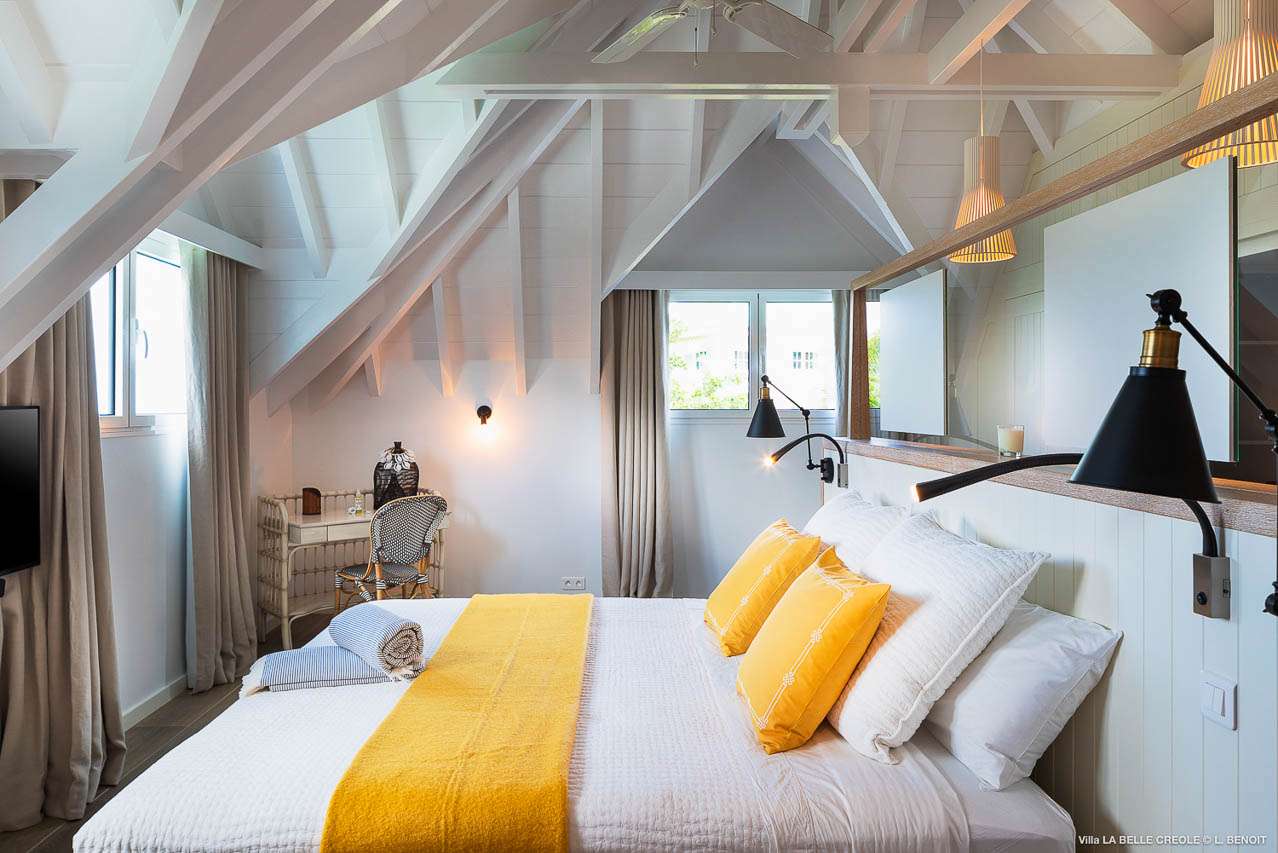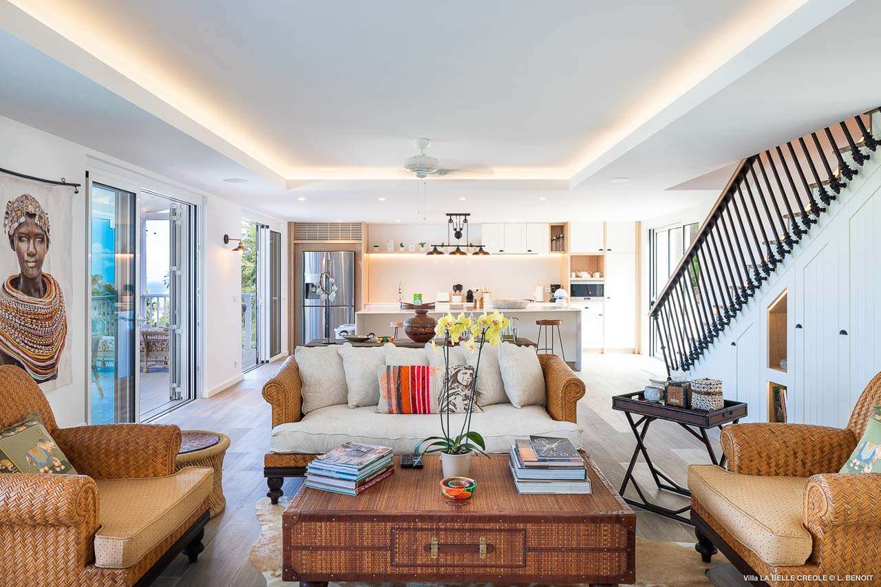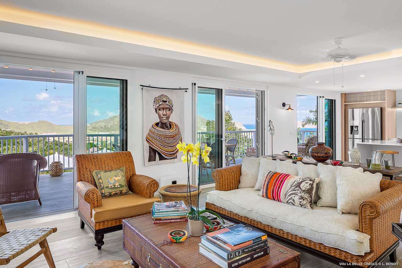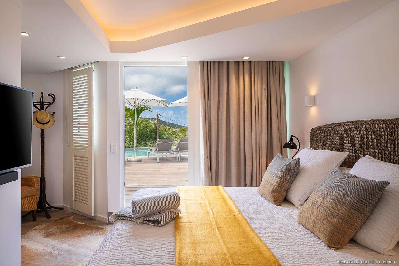 Villa La Belle Creole, (villa code: WV LBC) is a newly-built, 7 + 1-bedroom villa above the beach area of St. Jean with gorgeous ocean and sunset views. This well-known villa was destroyed by Hurricane Irma and rebuilt from the ground level up. The house has kept its colonial style but now offers modern amenities and comfort. From the outside, the house nearly looks identical but the real change is on the inside. Only the 3-car garage remained, but the three guest rooms on the pool level were completely rebuilt to support the new villa. A new driveway leads to the main level with a small parking area and a new master suite is situated in a bungalow at the end of the pool. The main room is still on the middle level, with a large contemporary and fully-equipped kitchen that has an island that separates the kitchen from the spacious living room. While the space feels contemporary, some of the West Indies furniture was preserved to maintain the colonial vibe of the original Belle Creole. A Sonos sound system can provide music and a large TV with Netflix and U.S. satellite is perfect for watching a movie or a game with the entire family or group. The covered terrace out in front of the main room dominates the property and the area and offers cooling breezes and gorgeous views. Just off the living room is the first master bedroom, which has a king-sized bed, dressing room, and a bright, ensuite bathroom with a shower. The second master bedroom is at the top of the stairs that leads from the living room to the top level. This large, cozy room has several windows that offer great views, a king-sized bed, a large his-and-hers dressing room, and an open bathroom with a shower. On the far end of the hallway is a guest room with a king-sized bed that connects to a small room with a twin bed and is ideal for children (a crib is at the house and an additional bed can be rented). The bathroom with shower is just across the hallway. The third master bedroom is a newly-built bungalow facing the pool and views and has a king-sized bed, dressing room, and ensuite bathroom with a shower. Three guest rooms face the pool side by side. Two of the rooms are slightly smaller than the third, but each has a king-sized bed, his-and-hers closets, and an ensuite bathroom with a shower. Villa La Belle Creole is a perfect villa for a large family, or couples vacationing together.Please fill out the form to begin your inquiry and we will connect you with a seasoned villa rental specialist.