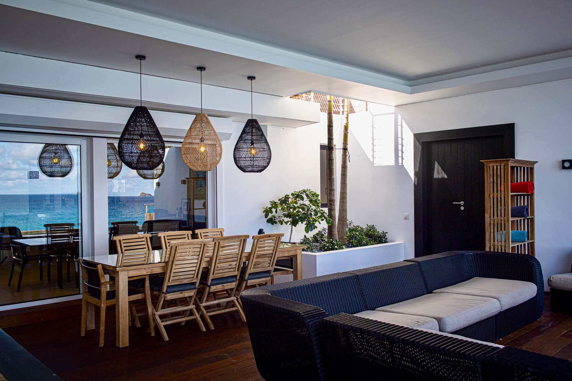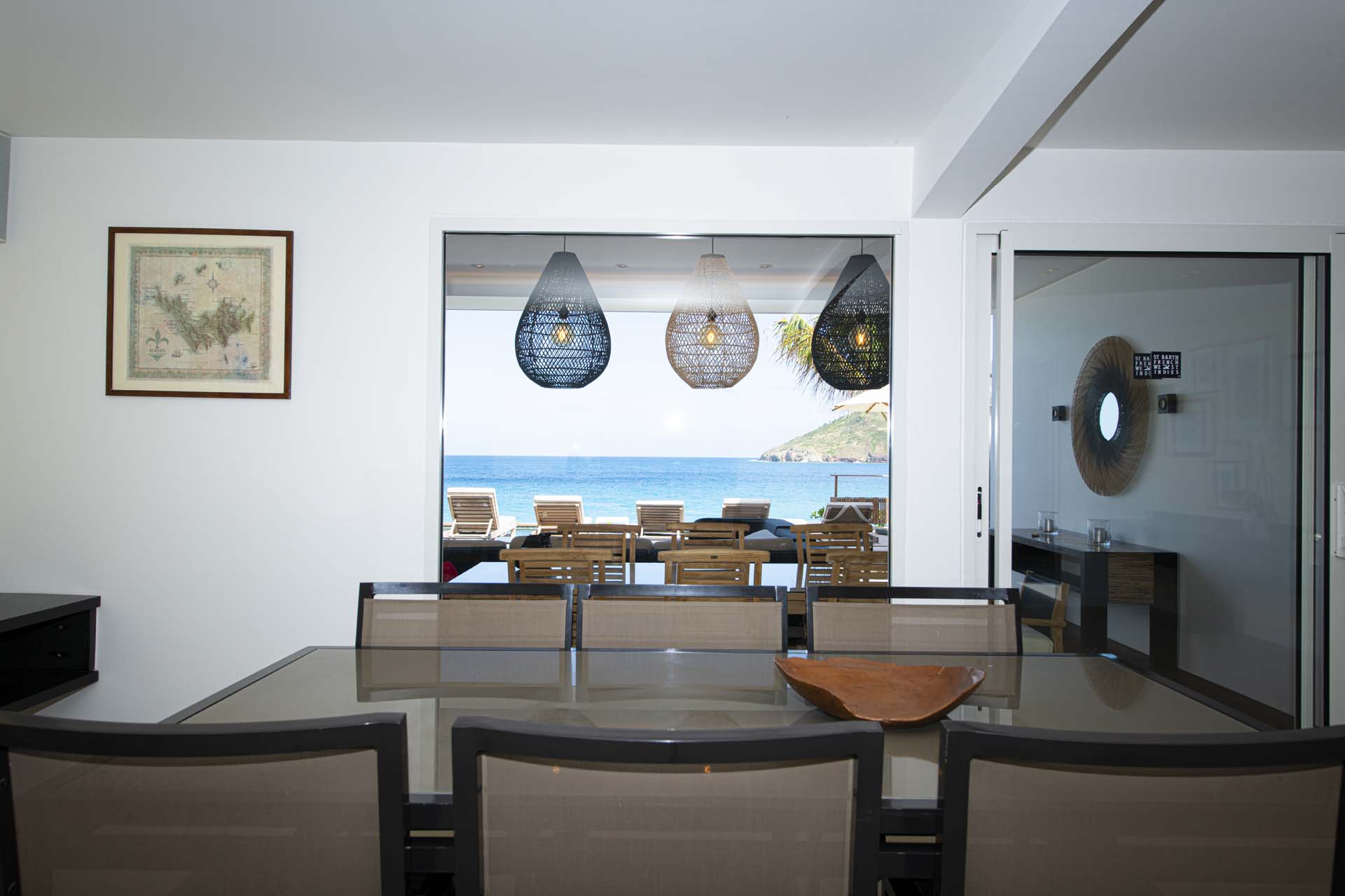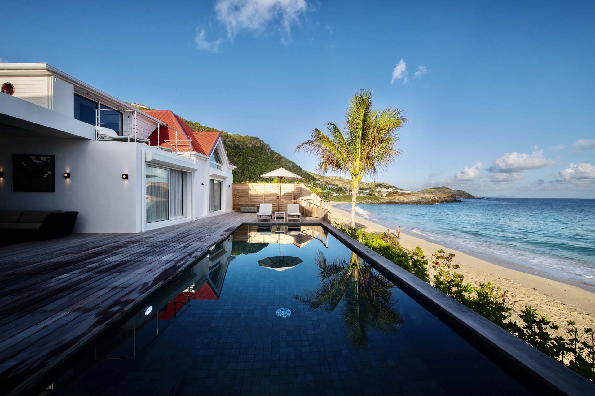 Castaway to Villa La Maison de la Mer (villa code: WV LMM), a stunning 6+1-bedroom beachfront villa in Flamands, St. Barts. Positioned within steps of the silky sands, this villa enjoys wonderful ocean views and is within a 10-minute drive of both St. Jean and Gustavia. Villa La Maison de la Mer was created when three old St. Barts houses were regrouped together, creating one of the most unique layouts for a vacation home on the island. Fully updated and renovated, expect stylish and luxurious interiors, elegant décor, and spaces that are seemingly lifted straight from the pages of an interior design magazine. Enjoying an enviable position on the shores of Flamands Beach, Villa La Maison de la Mer is well located for a luxurious beachfront getaway. It’s a short walk to the famous Cheval Blanc Hotel with its restaurants and spa, while just around the corner is the popular local restaurant “La Langouste”. The unique layout of Villa La Maison de la Mer makes this contemporary home one to remember. While there’s not exactly a formal living room, the open-plan design makes it so that the spaces are ideal for gathering. Inside and out, sleek finishes and sweeping views over Flamands Bay are impressive. The kitchen at Villa La Maison de la Mer doubles as the main indoor gathering space, opening on several sides to further social areas. The high-end appliances make it easy to whip up gourmet meals – otherwise, why not contact our concierge to arrange a visit from one of the island’s world-class chefs? Mouthwatering Caribbean cuisine is best enjoyed in the open air, and luckily, an outdoor dining table obliges. There’s also a smaller indoor table next to the kitchen, an idyllic spot for a morning coffee and fresh pastries before ducking out to the beach. There’s a total of 6 bedrooms at Villa La Maison de la Mer, with an optional seventh that’s more suited to teenagers or live-in staff. There are four master suites, each with a different layout, although all with gorgeous ocean views. Two are on the main level, both with spacious ensuite bathrooms. The other two are on the upper level directly above. Both have ensuite bathrooms as well, while private terraces with loungers overlook the ocean below. Two guest rooms are located off a hallway behind the kitchen. Each comes with an ensuite bathroom and looks into an inner courtyard. The seventh bedroom is above the entrance. All the bedrooms come with a King-sized bed. Life in the Caribbean is meant to be lived outside, and it’s here where Villa La Maison de la Mer shines. Sun-dappled terraces, sweeping ocean views, and plenty of privacy make it a pleasure to lounge away a day here. The large, covered terrace features a beautiful outdoor lounge, overlooking the villa’s heated swimming pool. An additional sun deck on the upper level provides even more opportunities to sunbathe and relax, taking in the shimmering water. Within seconds, you could be wading into the crystalline water, or enjoying a sunset stroll along the sand. * Please note: The unique situation of this villa means that it does not allow for large rental cars like Jeeps and SUVs.Please fill out the form to begin your inquiry and we will connect you with a seasoned villa rental specialist.