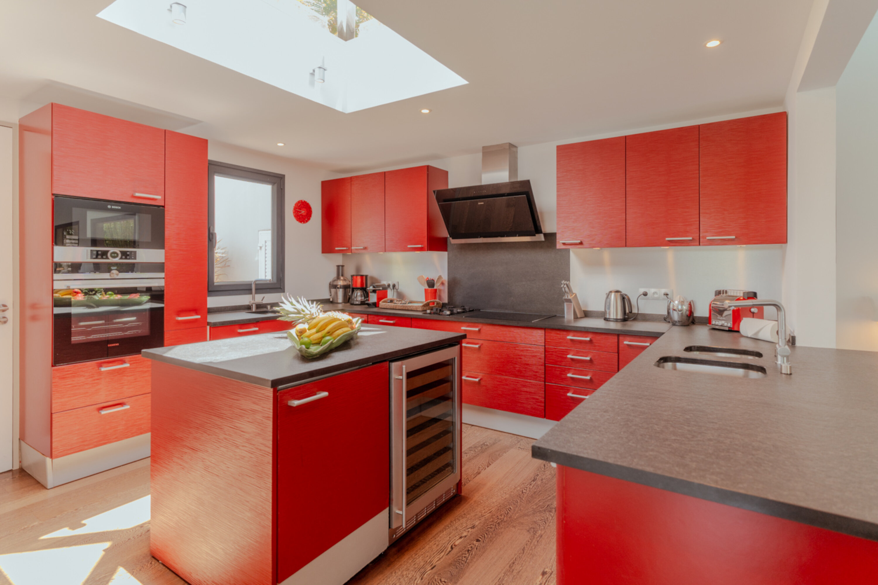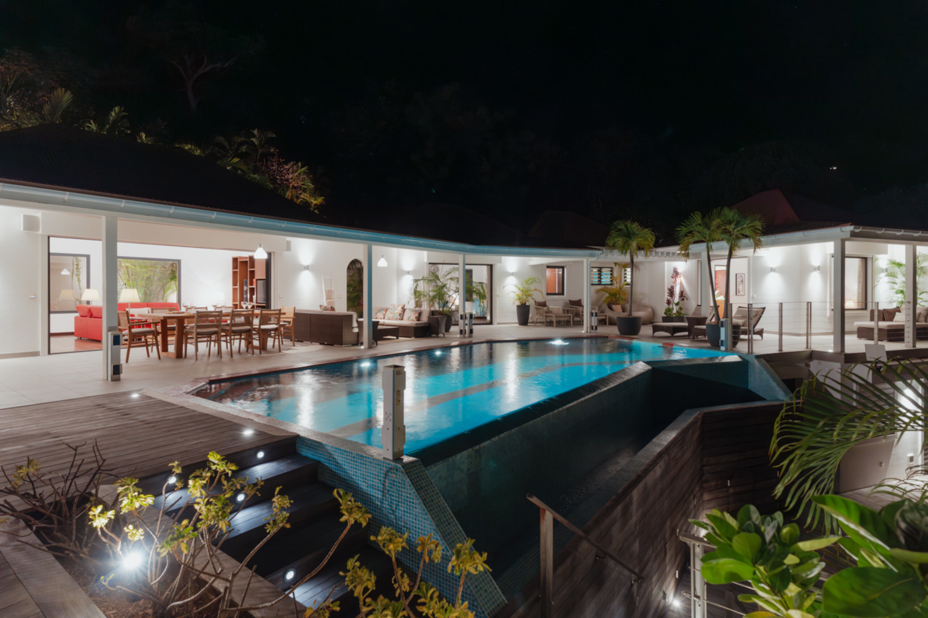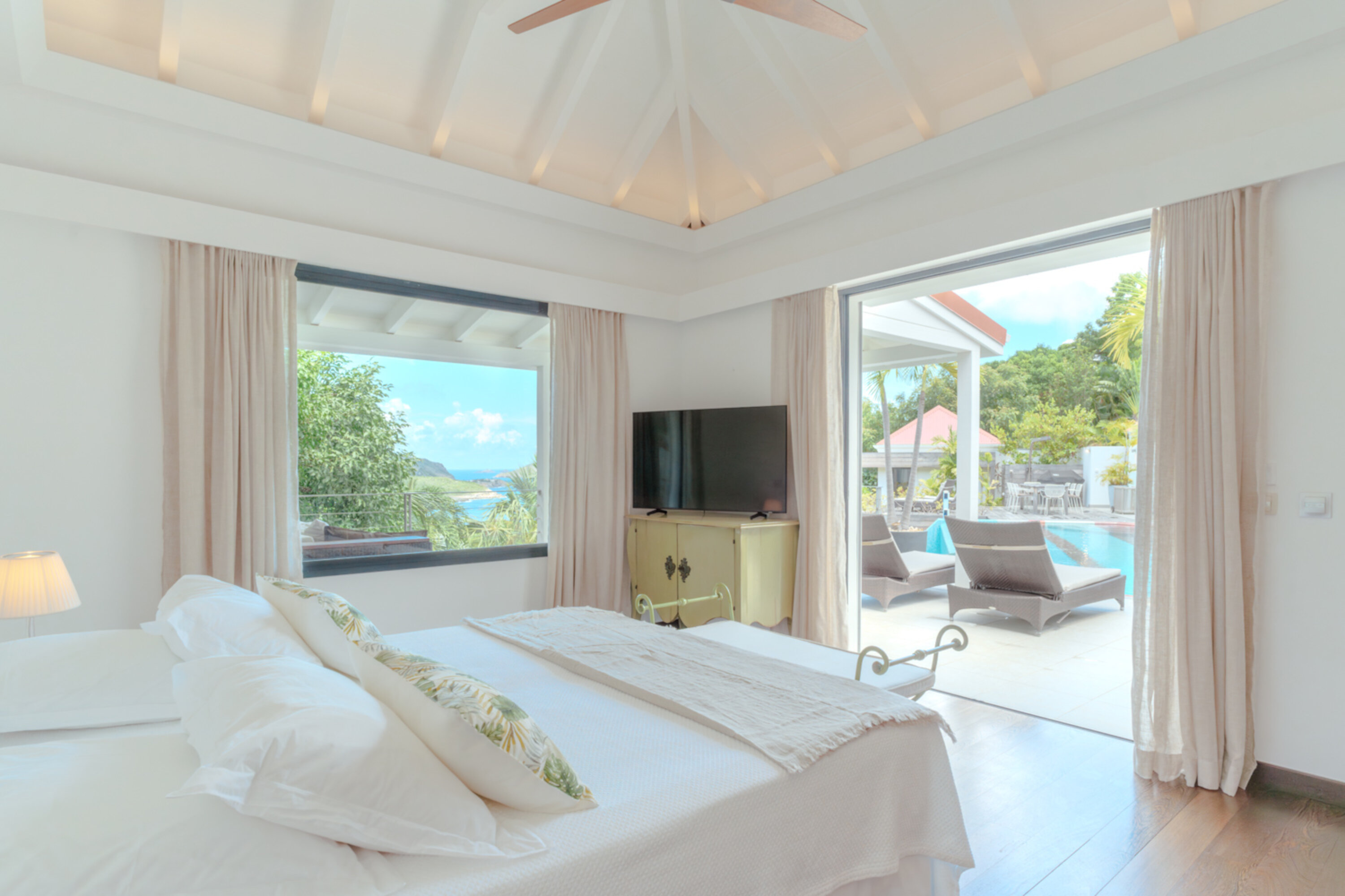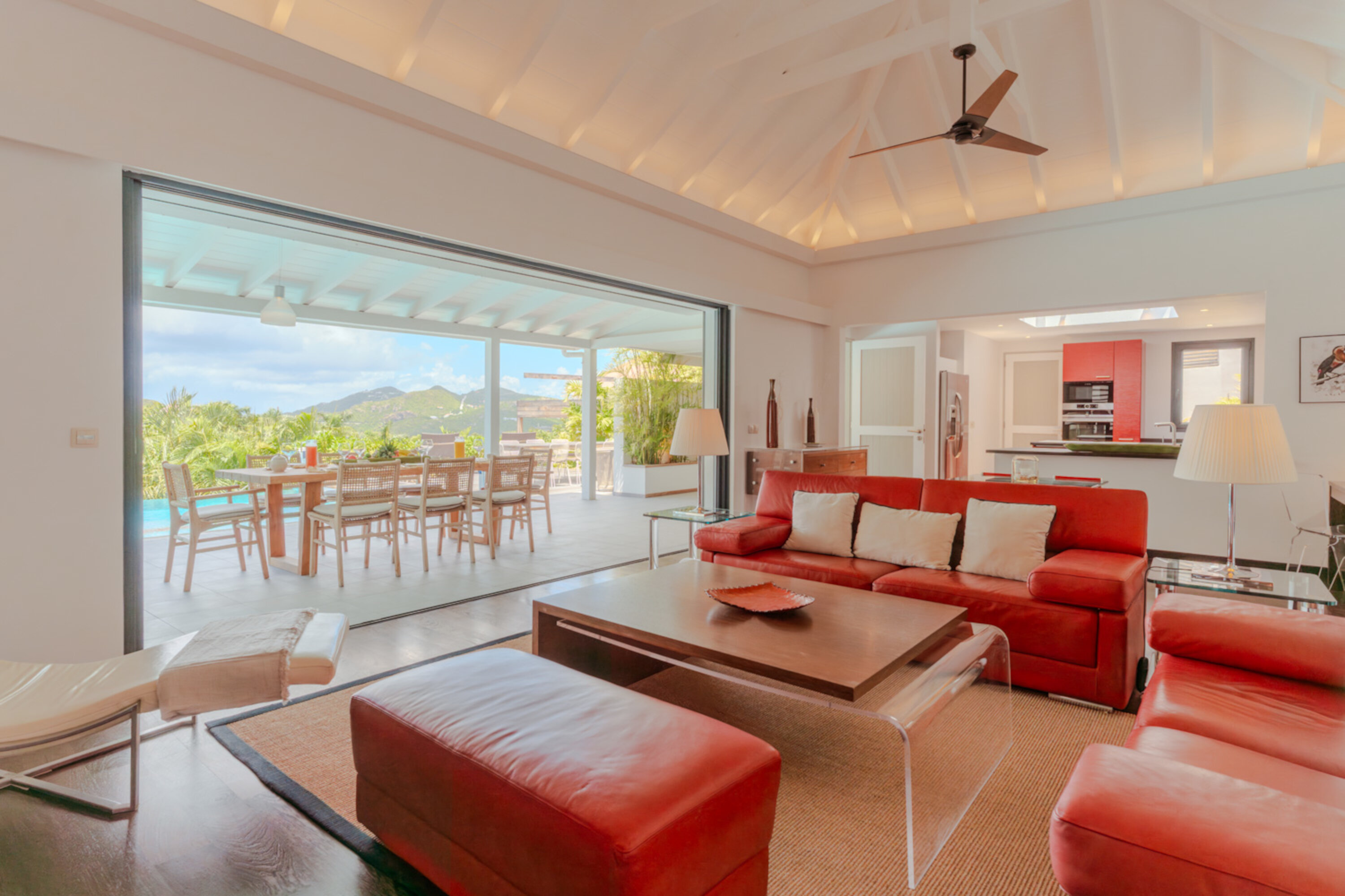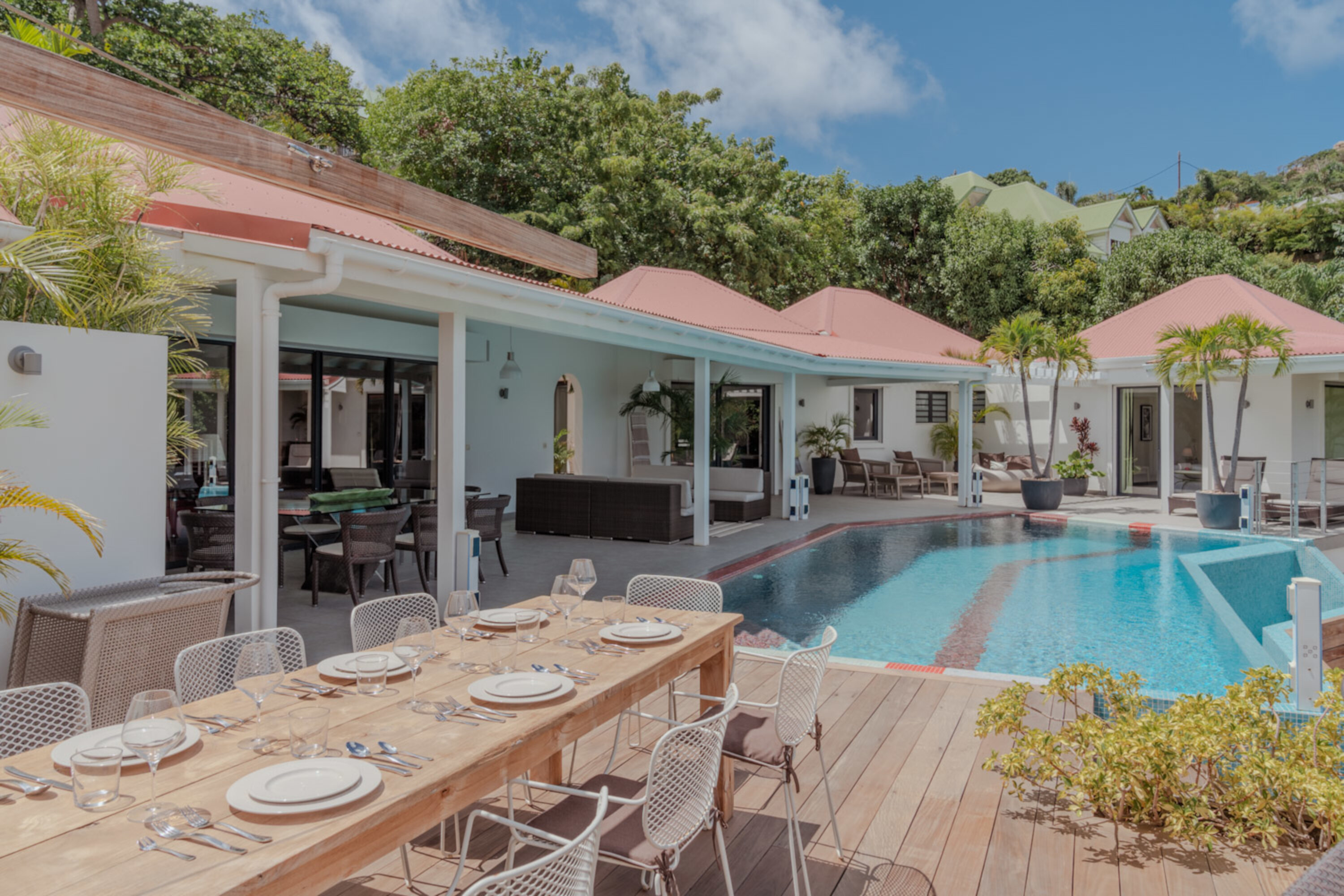 Villa La Maison Rouge, (villa code: WV LMR) is a 3-bedroom villa perched on a hillside in St. Jean and offers a splendid view over the azure waters of the bay and surrounding hills. Its modern design is complemented by vibrant tropical decorations. The open layout features a bright gourmet kitchen, a convenient breakfast bar, a cozy dining area, and a comfortable living room. A spacious covered terrace by a heated pool and Jacuzzi providing an excellent spot for dining, sunbathing, and enjoying beautiful views. Each of the bedrooms is furnished with king-sized beds and ensuite bathrooms. The master suite on the main level even boasts both indoor and outdoor showers along with a private terrace. The second bedroom is located in a separate pavilion on the same level, while the third bedroom, with its private terrace, is on a lower level. Villa Maison Rouge is an ideal choice for those who adore St. Jean, as the beach, shops, and restaurants are just a short distance away.Please fill out the form to begin your inquiry and we will connect you with a seasoned villa rental specialist.