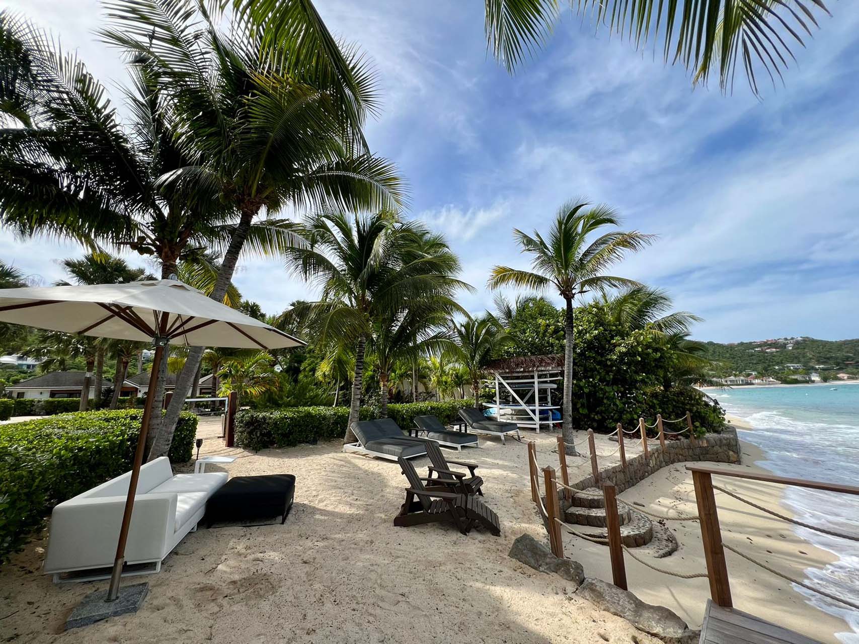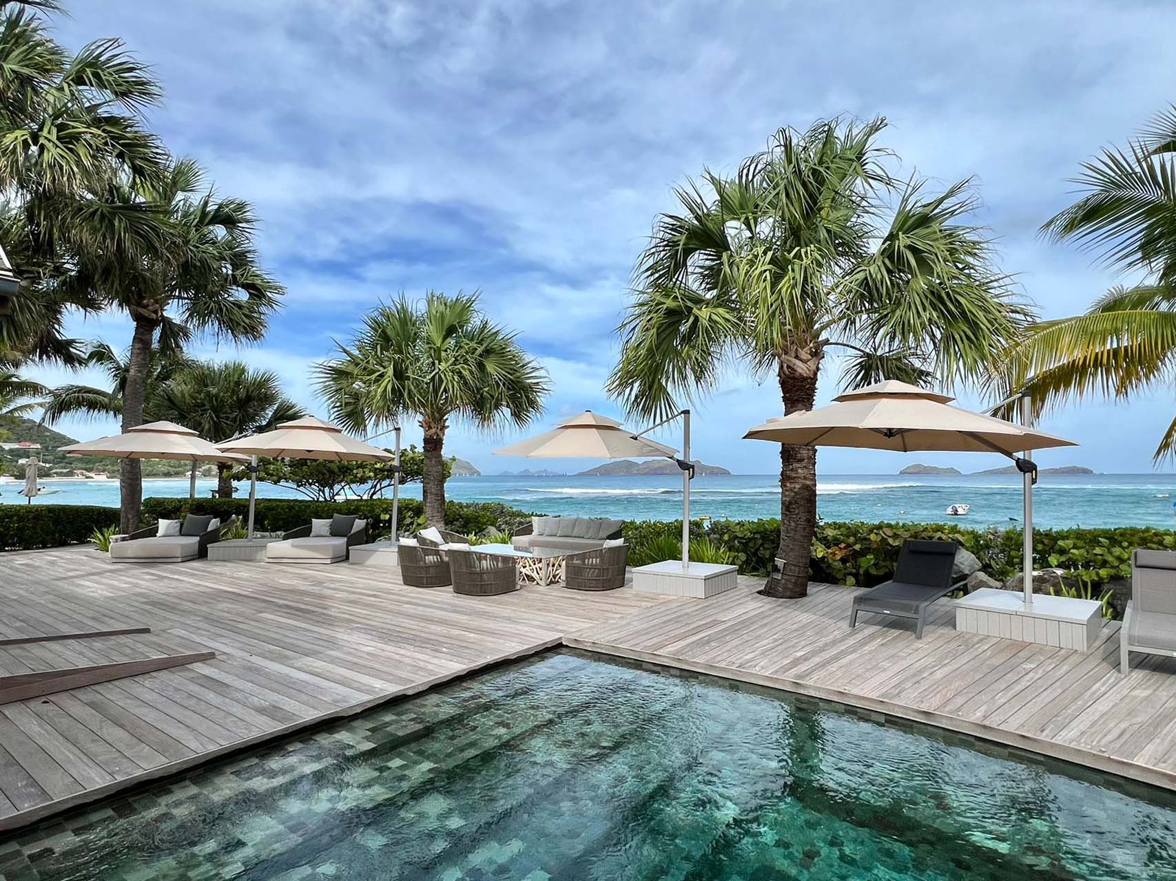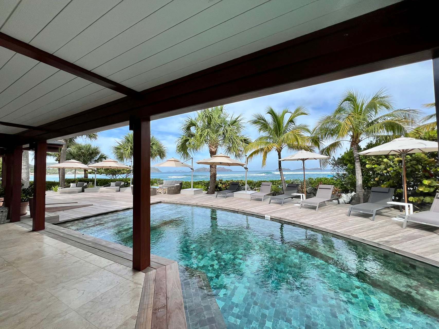 Welcome to Villa La Plage (villa code: WV VLP), a stunning 7-bedroom villa located within steps of Lorient Beach on St. Barts. Minutes from shopping and restaurants, and with breathtaking views of the beach, tropical getaways don’t get much better than this. The pleasing design of La Plage is all about classic Caribbean style. The interiors are relaxing and chic, with luxurious furnishings and an Oriental-inspired décor. Flowing from one space to another, the villa makes the most of its beachfront location. Everywhere you look, a framed view of the shimmering Caribbean brings the beauty of St. Barts inside. Located at the eastern end of Lorient Beach, this is one of the most extraordinary beachfront villas in St. Barts. From outside, you can admire Lorient Bay and the offshore islands Île Toc Vers, Île Frégate, and Île Bonhomme. Restaurants and shops at St. Jean are just 5 minutes away by car. At the heart of Villa La Plage is its spacious great room, furnished with several inviting sofas. Sliding doors open on either side to the inner courtyard and the outdoor terrace, washing the space with the cool ocean breeze. The large living room encourages you to unwind in style. Thoughtful touches like a Buddha statue or colorful prints add plenty of character to the room, but it’s those views that you’ll keep coming back to. From here, looking over the terrace reveals views of the water framed by palm trees – a true Caribbean dream. The modern kitchen at La Plage Villa offers the latest appliances to prepare gourmet meals. Our concierge can even organize grocery pre-stocking or delivery, catered meals, or arrange private chef service for a special occasion. Whisking your plate outside reveals the outdoor dining table underneath the shaded terrace. From here, you can enjoy a meal with the sound of the nearby waves washing against the shore, and stunning views of the shimmering turquoise waters. There are 5 bedrooms in the main house at Villa La Plage, scattered around the central courtyard. Each room has a plush king-sized bed, spacious ensuite, and a private furnished terrace. Hardwood details contrast with colors of beige, white, and grey, enhancing the contemporary island vibe. The other two bedrooms are in an independent guest house with queen beds, a kitchen, and a comfy living room, perfect for staff or teenagers. A central courtyard is a relaxing place to while away a day. On the beach-facing side of La Plage Villa is another fantastic terrace area. Under the eaves of the home is an outdoor lounge area, a shady spot ideal for reading a book or settling in to admire the island sunset color of the sky. The inviting swimming pool is a refreshing spot to cool off during the day. Lining the water are loungers, sun chairs, and parasols, offering plenty of options to relax underneath swaying palms. At night, the ambient lighting in the water will be sure to tempt you in for a late-night dip. If the open ocean is calling, a sandy path delivers you onto the stunning Lorient Beach in seconds. The crystalline waters here are great for everything, from swimming and snorkeling to surfing when the swell is up. For further explorations of St. Barts, the beaches at St-Jean and Marigot are a 5-minute drive in either direction. During the December holidays, the villa rents at the full occupancy rate regardless of how many bedrooms are used. *Please note: The hot tub is currently out of service.Please fill out the form to begin your inquiry and we will connect you with a seasoned villa rental specialist.