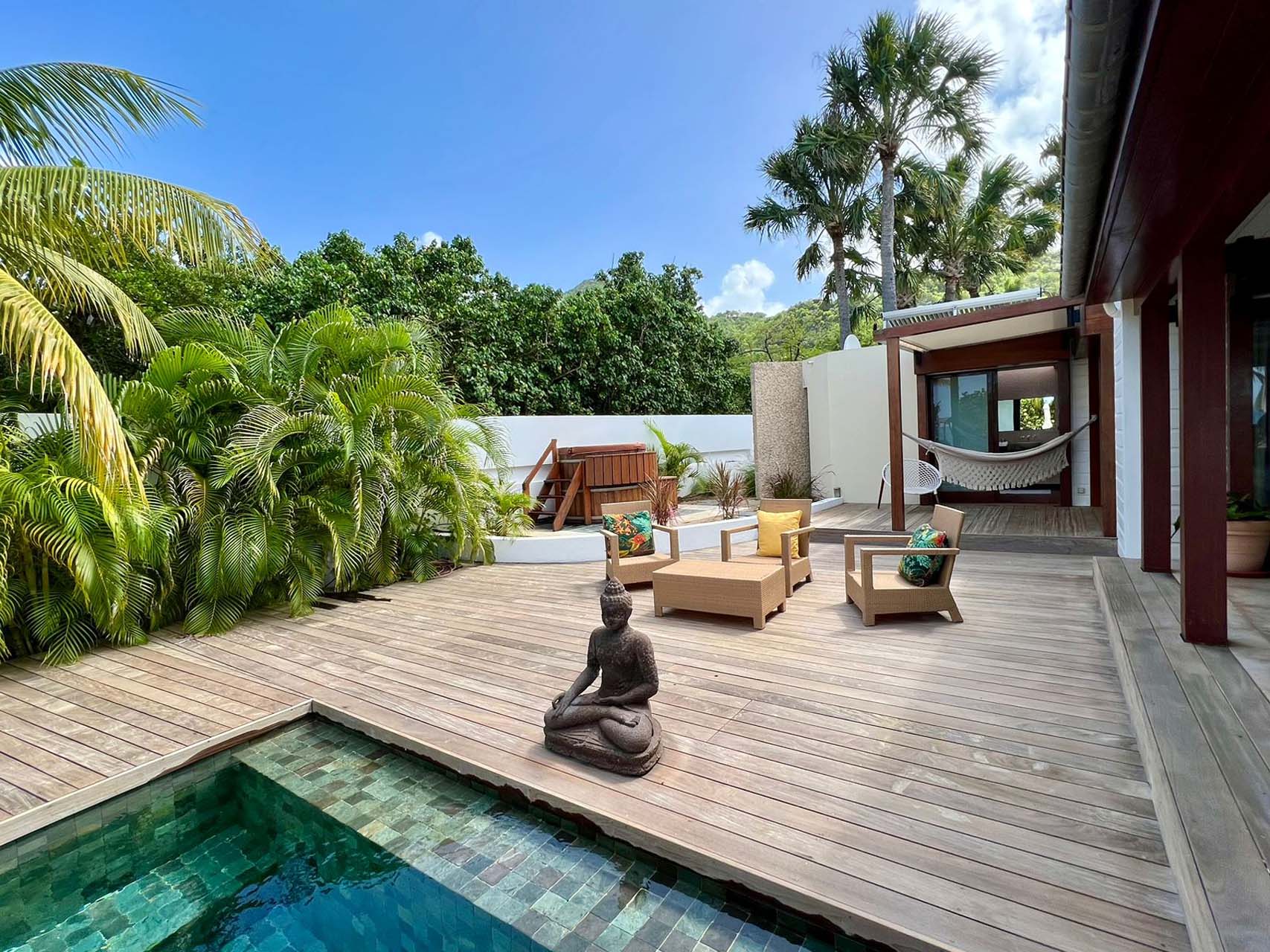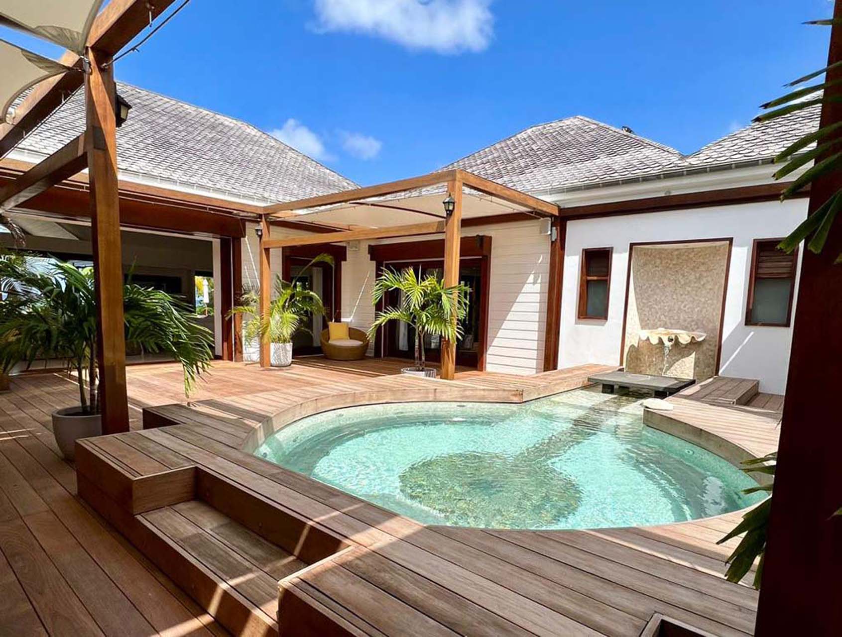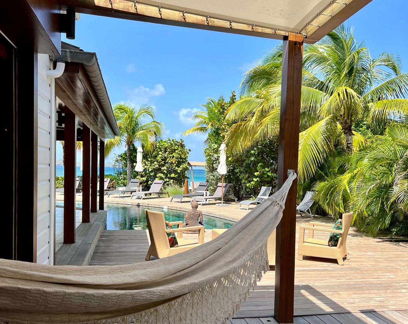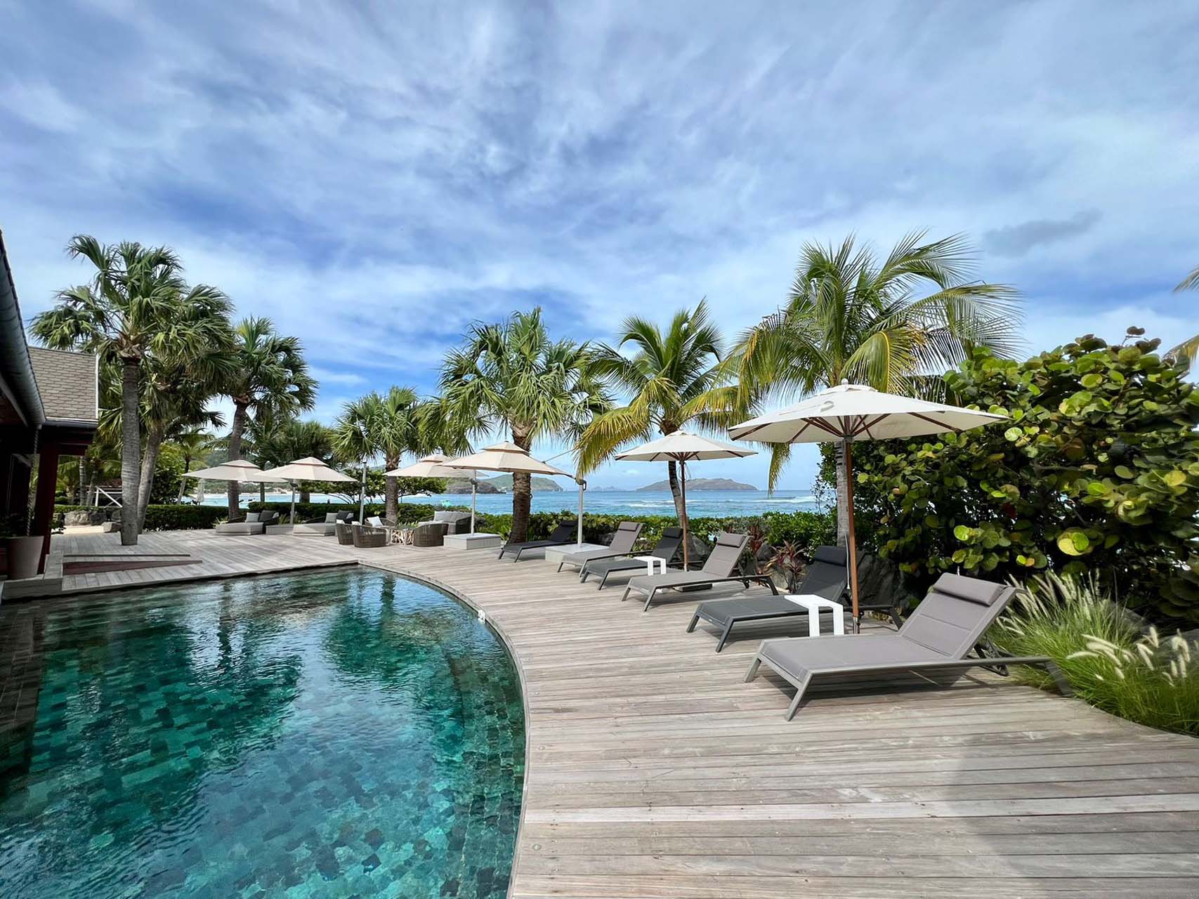 Welcome to Villa La Plage (villa code: WV VLP), a stunning 7-bedroom villa located within steps of Lorient Beach on St. Barts. Minutes from shopping and restaurants, and with breathtaking views of the beach, tropical getaways don’t get much better than this. The pleasing design of La Plage is all about classic Caribbean style. The interiors are relaxing and chic, with luxurious furnishings and an Oriental-inspired décor. Flowing from one space to another, the villa makes the most of its beachfront location. Everywhere you look, a framed view of the shimmering Caribbean brings the beauty of St. Barts inside. Located at the eastern end of Lorient Beach, this is one of the most extraordinary beachfront villas in St. Barts. From outside, you can admire Lorient Bay and the offshore islands Île Toc Vers, Île Frégate, and Île Bonhomme. Restaurants and shops at St. Jean are just 5 minutes away by car. At the heart of Villa La Plage is its spacious great room, furnished with several inviting sofas. Sliding doors open on either side to the inner courtyard and the outdoor terrace, washing the space with the cool ocean breeze. The large living room encourages you to unwind in style. Thoughtful touches like a Buddha statue or colorful prints add plenty of character to the room, but it’s those views that you’ll keep coming back to. From here, looking over the terrace reveals views of the water framed by palm trees – a true Caribbean dream. The modern kitchen at La Plage Villa offers the latest appliances to prepare gourmet meals. Our concierge can even organize grocery pre-stocking or delivery, catered meals, or arrange private chef service for a special occasion. Whisking your plate outside reveals the outdoor dining table underneath the shaded terrace. From here, you can enjoy a meal with the sound of the nearby waves washing against the shore, and stunning views of the shimmering turquoise waters. There are 5 bedrooms in the main house at Villa La Plage, scattered around the central courtyard. Each room has a plush king-sized bed, spacious ensuite, and a private furnished terrace. Hardwood details contrast with colors of beige, white, and grey, enhancing the contemporary island vibe. The other two bedrooms are in an independent guest house with queen beds, a kitchen, and a comfy living room, perfect for staff or teenagers. A central courtyard is a relaxing place to while away a day. On the beach-facing side of La Plage Villa is another fantastic terrace area. Under the eaves of the home is an outdoor lounge area, a shady spot ideal for reading a book or settling in to admire the island sunset color of the sky. The inviting swimming pool is a refreshing spot to cool off during the day. Lining the water are loungers, sun chairs, and parasols, offering plenty of options to relax underneath swaying palms. At night, the ambient lighting in the water will be sure to tempt you in for a late-night dip. If the open ocean is calling, a sandy path delivers you onto the stunning Lorient Beach in seconds. The crystalline waters here are great for everything, from swimming and snorkeling to surfing when the swell is up. For further explorations of St. Barts, the beaches at St-Jean and Marigot are a 5-minute drive in either direction. During the December holidays, the villa rents at the full occupancy rate regardless of how many bedrooms are used. *Please note: The hot tub is currently out of service.Please fill out the form to begin your inquiry and we will connect you with a seasoned villa rental specialist.