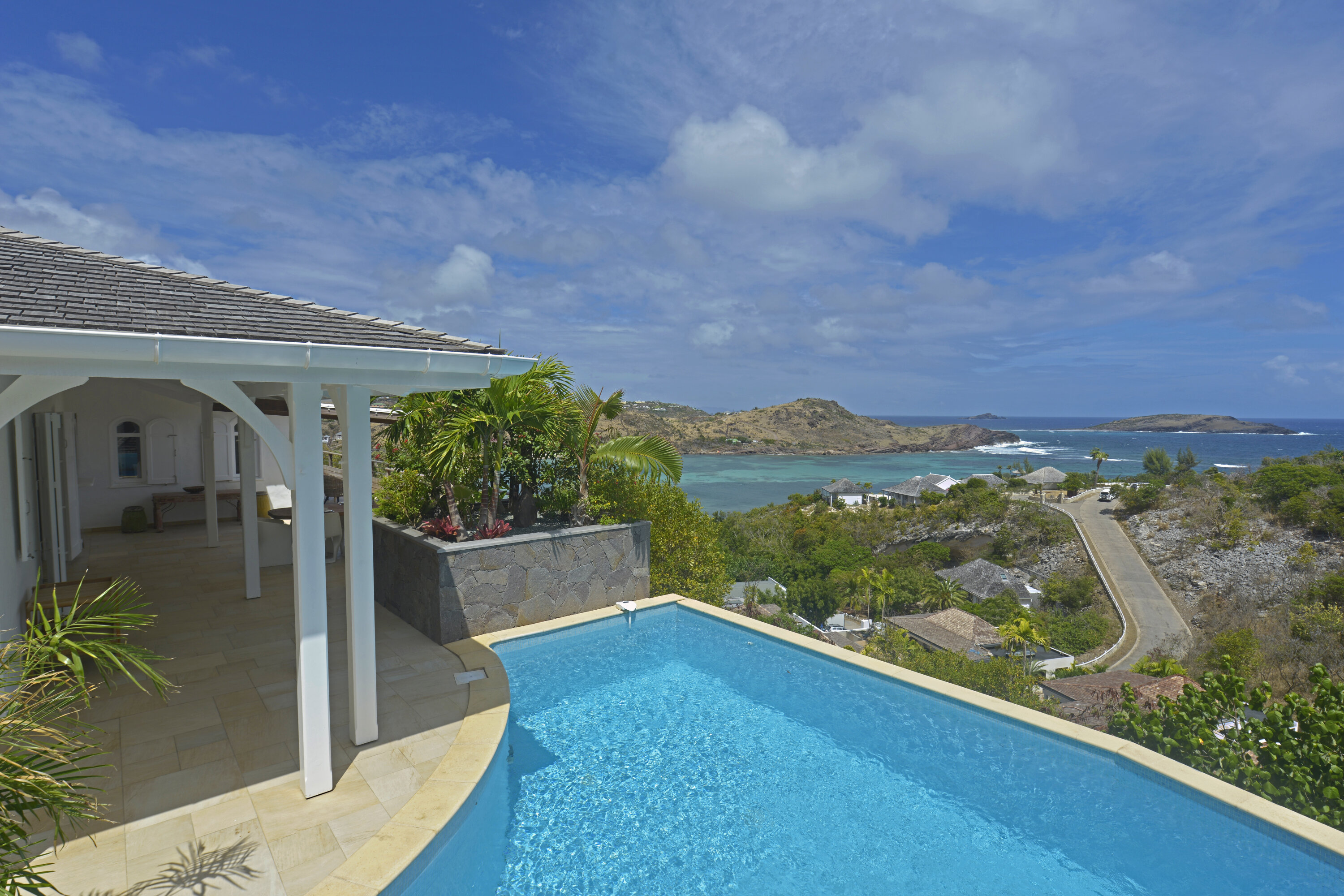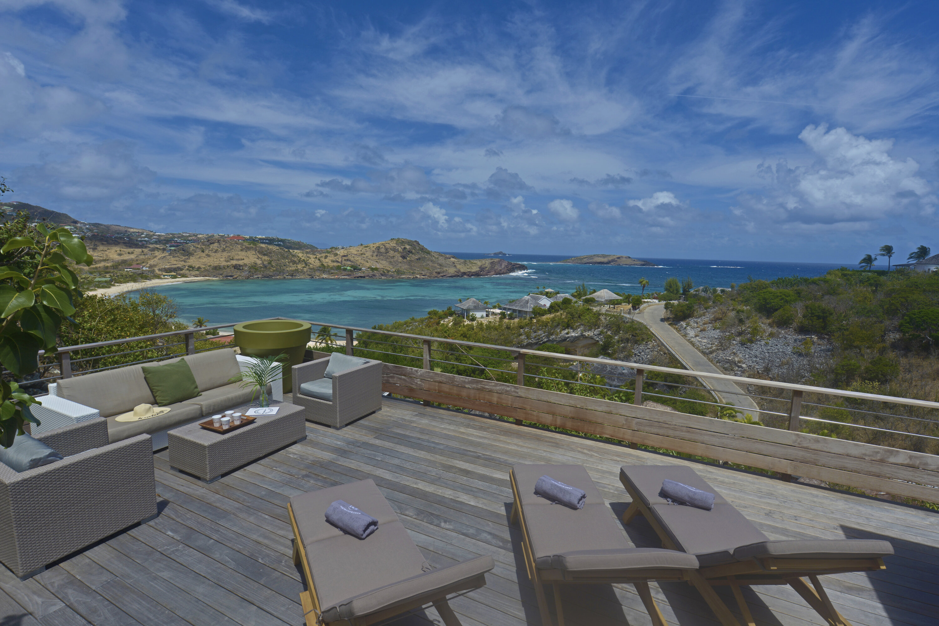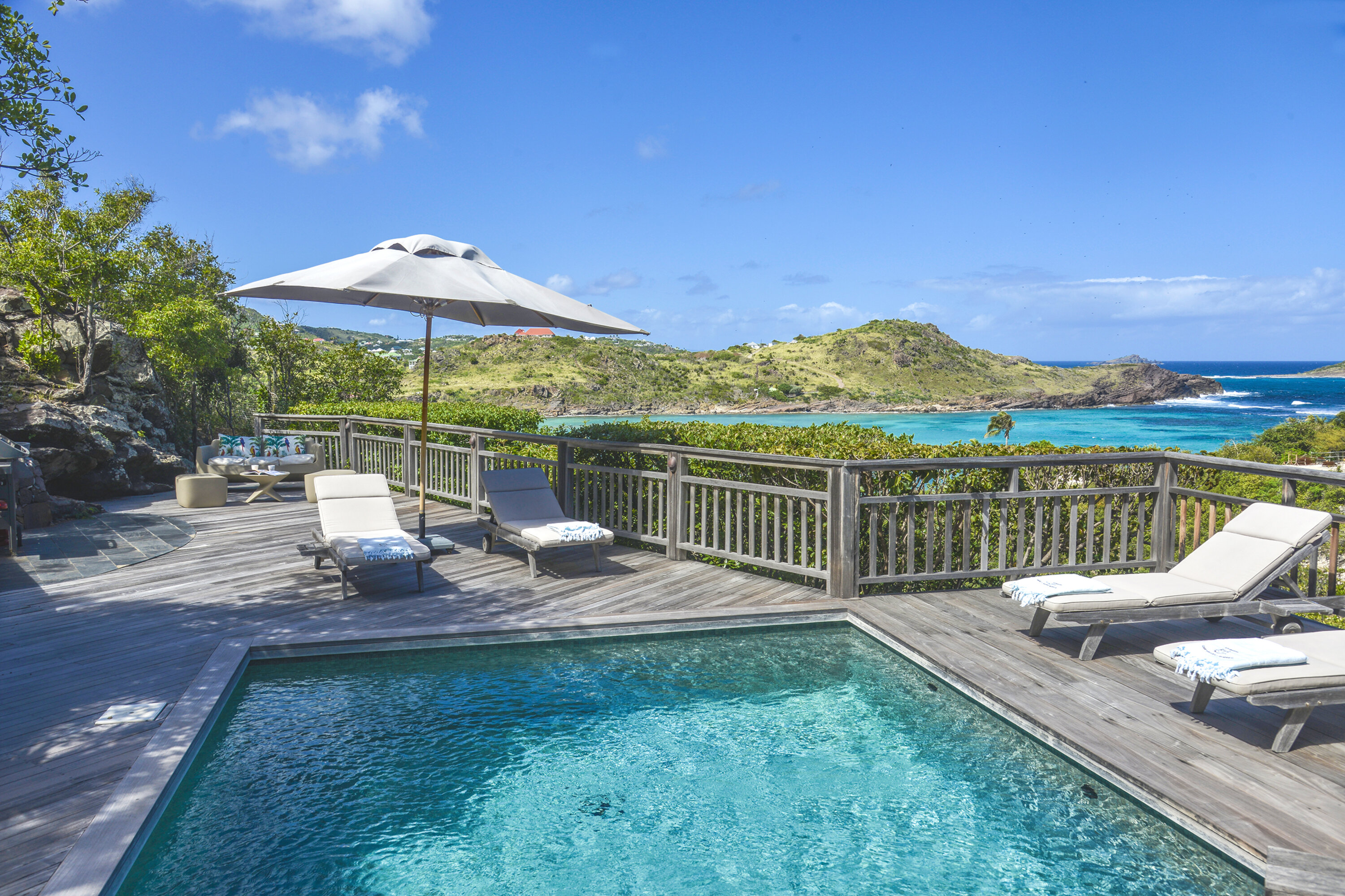 Welcome to Villa Lagon Jaune Estate (villa code: WV AJL), which comprises two villas, Lagon Jaune and Petit Lagon, to form a 6-bedroom villa. Secluded, quiet, and stylish, located in Petit Cul de Sac, these island homes are steps from the beach and a short drive from shops and restaurants. The spacious and bright interiors of Villa Lagon Jaune are shady and cool, with doors opening on several sides to let in the ocean breeze. Wooden furnishings, an exotic island décor, and a minimalist style create a soothing, peaceful place to chill out in one of St. Barts’s most secluded corners. Villa Lagon Jaune Estate is all about breezy days spent relaxing, with plenty of space to spread out and find your own corner to unwind. The central living space enjoys a comfortable sofa in the center of the room facing out towards the terrace, making for an idyllic spot to kick back and enjoy the island breezes. The sound of the water nearby reaches the villa as well, offering a peaceful background track to chilled-out days spent inside and on the terrace. Behind the living room is the kitchen, a contemporary design with black marble workspaces, honey-colored cabinetry, and stunning views of the sea. The dining table is outside on the covered terrace, encouraging you to take in the spectacular island views with your meal. Villa Petite Lagon has a small galley-style kitchen. There’s a total of 4 bedrooms inside Villa Lagon Jaune, generous spaces with a distinct island style. Three of the bedrooms are on the main level, each featuring a king-sized bed that can be configured into a pair of twins, and ensuite bathrooms. The fourth room is located separate from the main house, featuring a kitchenette, ensuite bathroom, and private terrace. This mini-suite is the ideal spot for teenagers or a live-in nanny. Both of Villa Petit Lagon's bedrooms can be arranged with a king-size bed or 2 twin beds, and each have an ensuite bathroom and access to a private terrace. Days spent outside at Villa Lagon Jaune Estate make you feel as if you’re the only ones on the island. The views from the terrace take in Petit Cul de Sac, a quiet and relaxed corner of St. Barts. There’s plenty of seating in the sun and shade facing the ocean. A beautiful pool is a tempting spot to cool off, receiving sun for most of the day. The nearby beach at Petit Cul de Sac is also a fantastic swimming spot, where you can pack a picnic and spend the day on the sand. Guests receive access to Form Fitness sports center and breakfast pastries are delivered daily except Sunday. During the December holidays, the villa rents at the full occupancy rate regardless of how many bedrooms are used. * Note – The villas are close to each other but are not connected.Please fill out the form to begin your inquiry and we will connect you with a seasoned villa rental specialist.