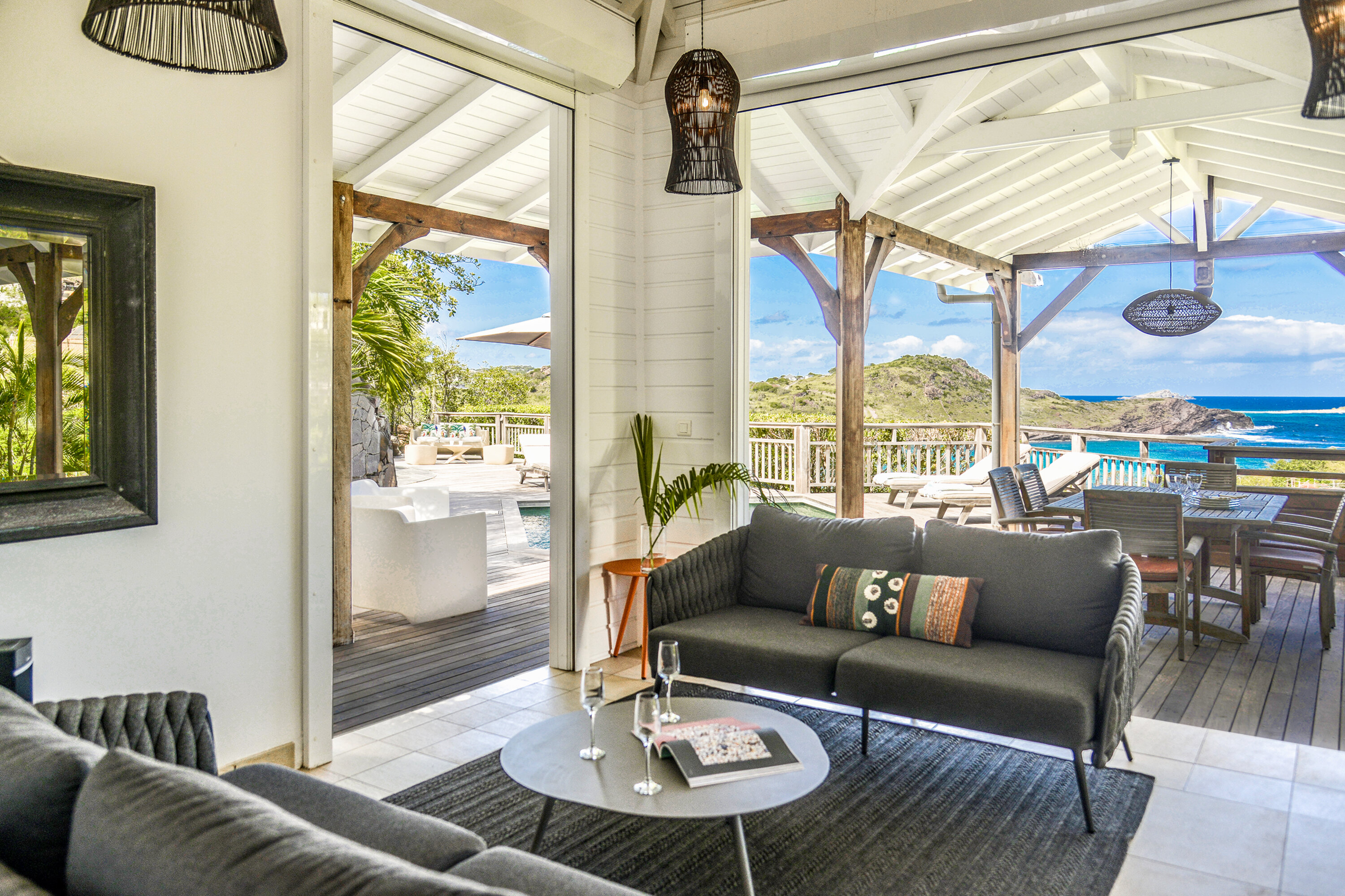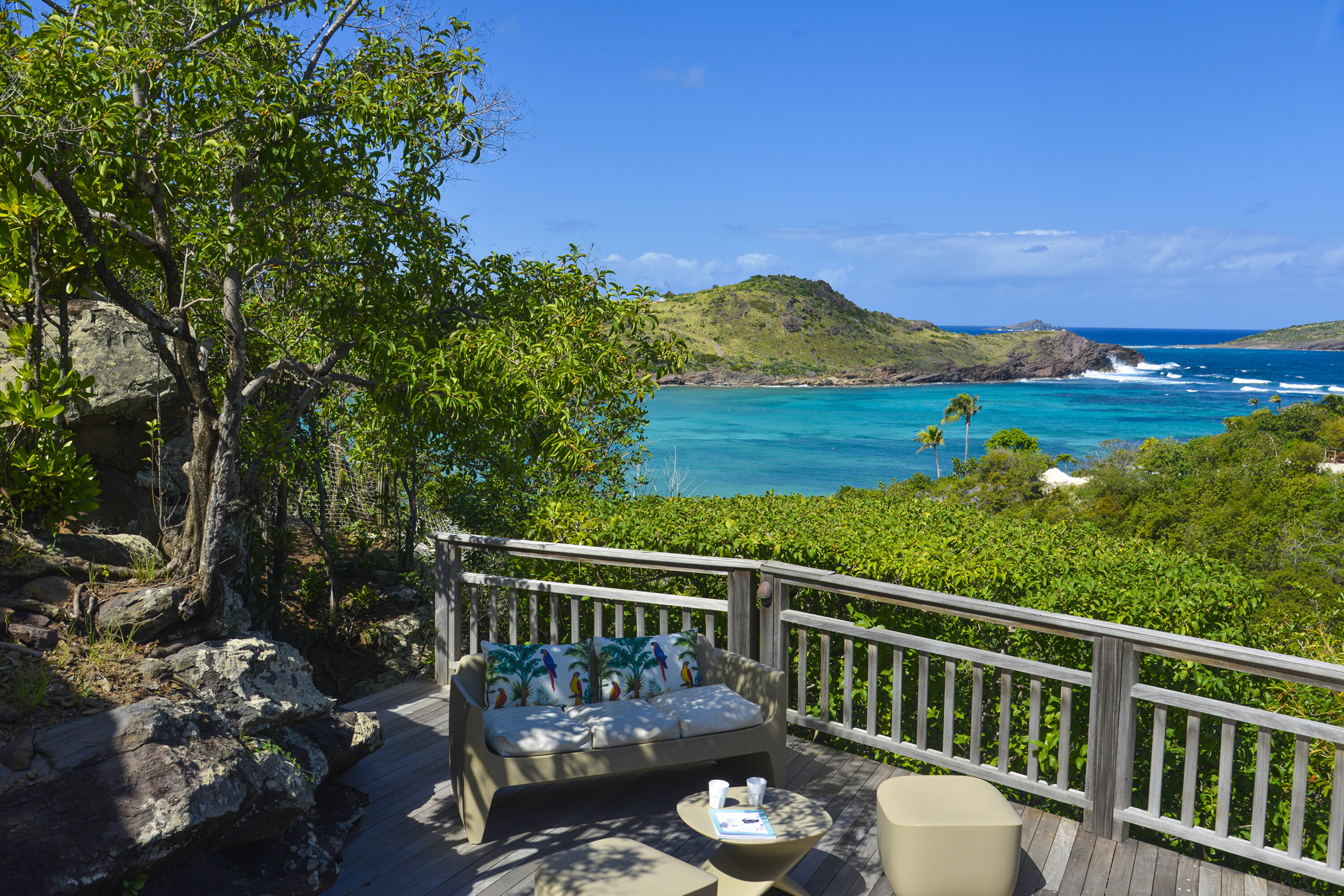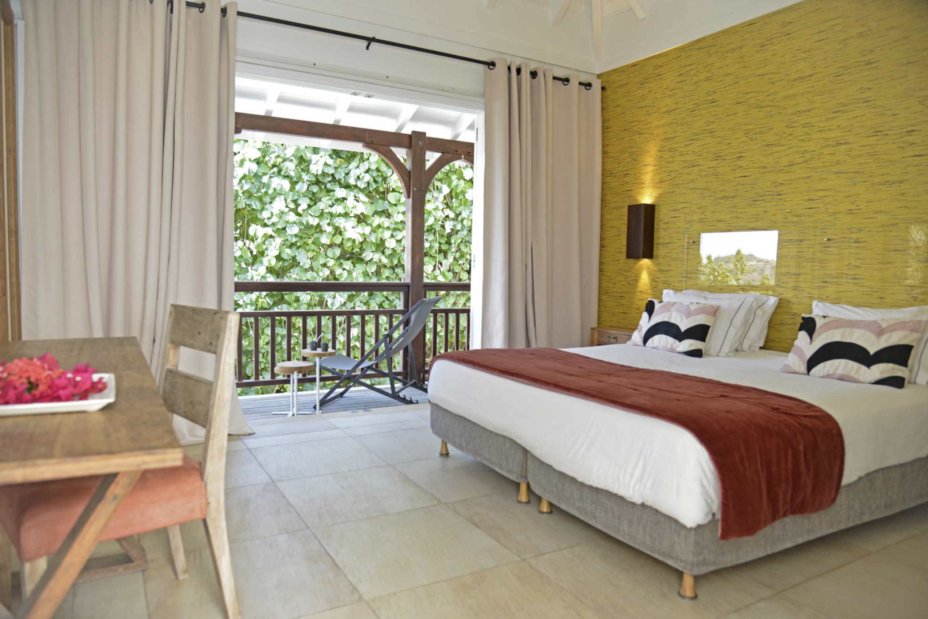 Welcome to Villa Lagon Jaune Estate (villa code: WV AJL), which comprises two villas, Lagon Jaune and Petit Lagon, to form a 6-bedroom villa. Secluded, quiet, and stylish, located in Petit Cul de Sac, these island homes are steps from the beach and a short drive from shops and restaurants. The spacious and bright interiors of Villa Lagon Jaune are shady and cool, with doors opening on several sides to let in the ocean breeze. Wooden furnishings, an exotic island décor, and a minimalist style create a soothing, peaceful place to chill out in one of St. Barts’s most secluded corners. Villa Lagon Jaune Estate is all about breezy days spent relaxing, with plenty of space to spread out and find your own corner to unwind. The central living space enjoys a comfortable sofa in the center of the room facing out towards the terrace, making for an idyllic spot to kick back and enjoy the island breezes. The sound of the water nearby reaches the villa as well, offering a peaceful background track to chilled-out days spent inside and on the terrace. Behind the living room is the kitchen, a contemporary design with black marble workspaces, honey-colored cabinetry, and stunning views of the sea. The dining table is outside on the covered terrace, encouraging you to take in the spectacular island views with your meal. Villa Petite Lagon has a small galley-style kitchen. There’s a total of 4 bedrooms inside Villa Lagon Jaune, generous spaces with a distinct island style. Three of the bedrooms are on the main level, each featuring a king-sized bed that can be configured into a pair of twins, and ensuite bathrooms. The fourth room is located separate from the main house, featuring a kitchenette, ensuite bathroom, and private terrace. This mini-suite is the ideal spot for teenagers or a live-in nanny. Both of Villa Petit Lagon's bedrooms can be arranged with a king-size bed or 2 twin beds, and each have an ensuite bathroom and access to a private terrace. Days spent outside at Villa Lagon Jaune Estate make you feel as if you’re the only ones on the island. The views from the terrace take in Petit Cul de Sac, a quiet and relaxed corner of St. Barts. There’s plenty of seating in the sun and shade facing the ocean. A beautiful pool is a tempting spot to cool off, receiving sun for most of the day. The nearby beach at Petit Cul de Sac is also a fantastic swimming spot, where you can pack a picnic and spend the day on the sand. Guests receive access to Form Fitness sports center and breakfast pastries are delivered daily except Sunday. During the December holidays, the villa rents at the full occupancy rate regardless of how many bedrooms are used. * Note – The villas are close to each other but are not connected.Please fill out the form to begin your inquiry and we will connect you with a seasoned villa rental specialist.
