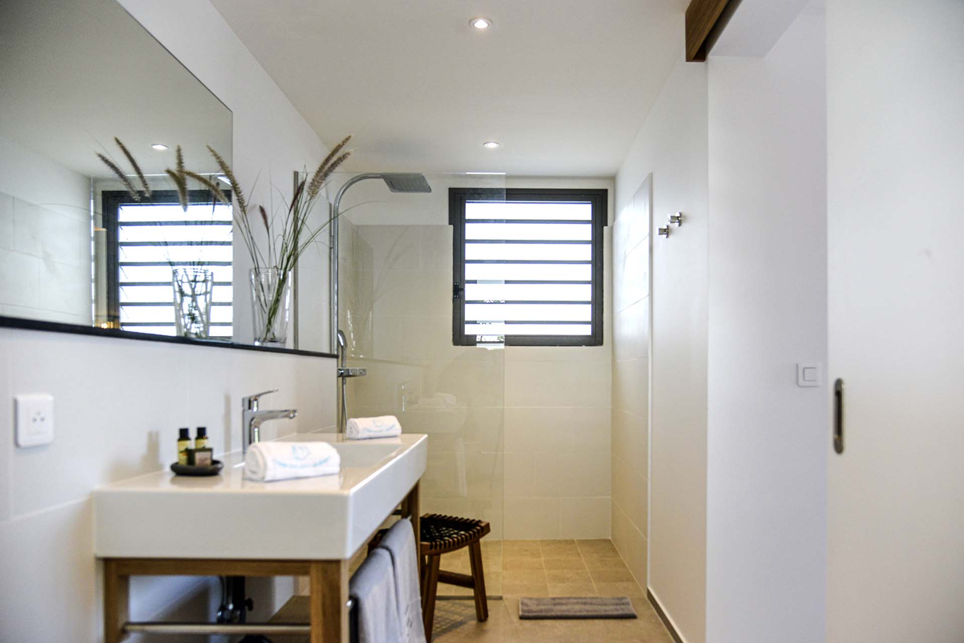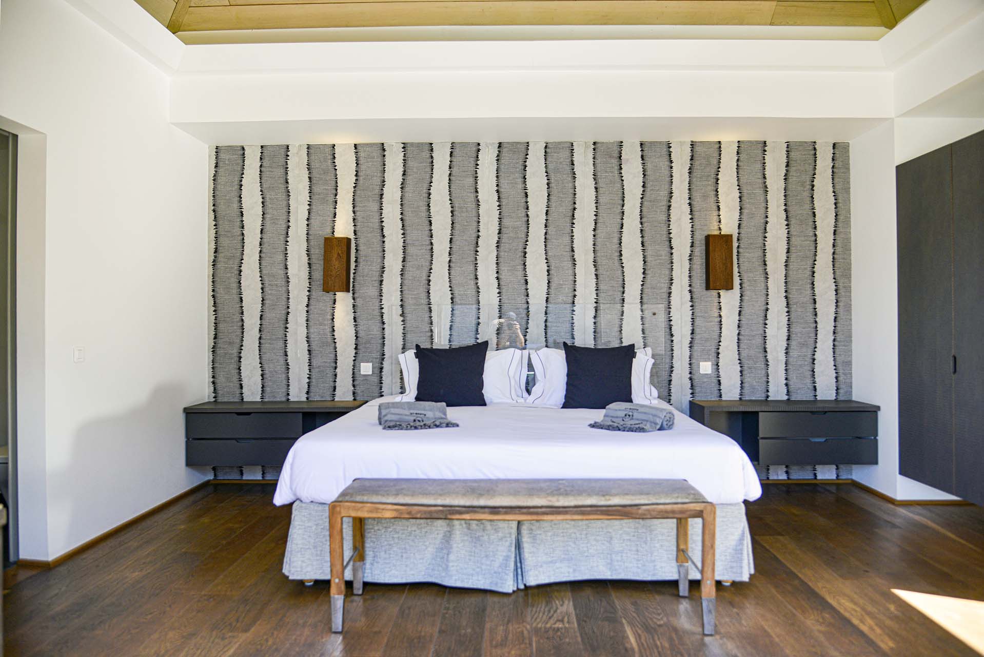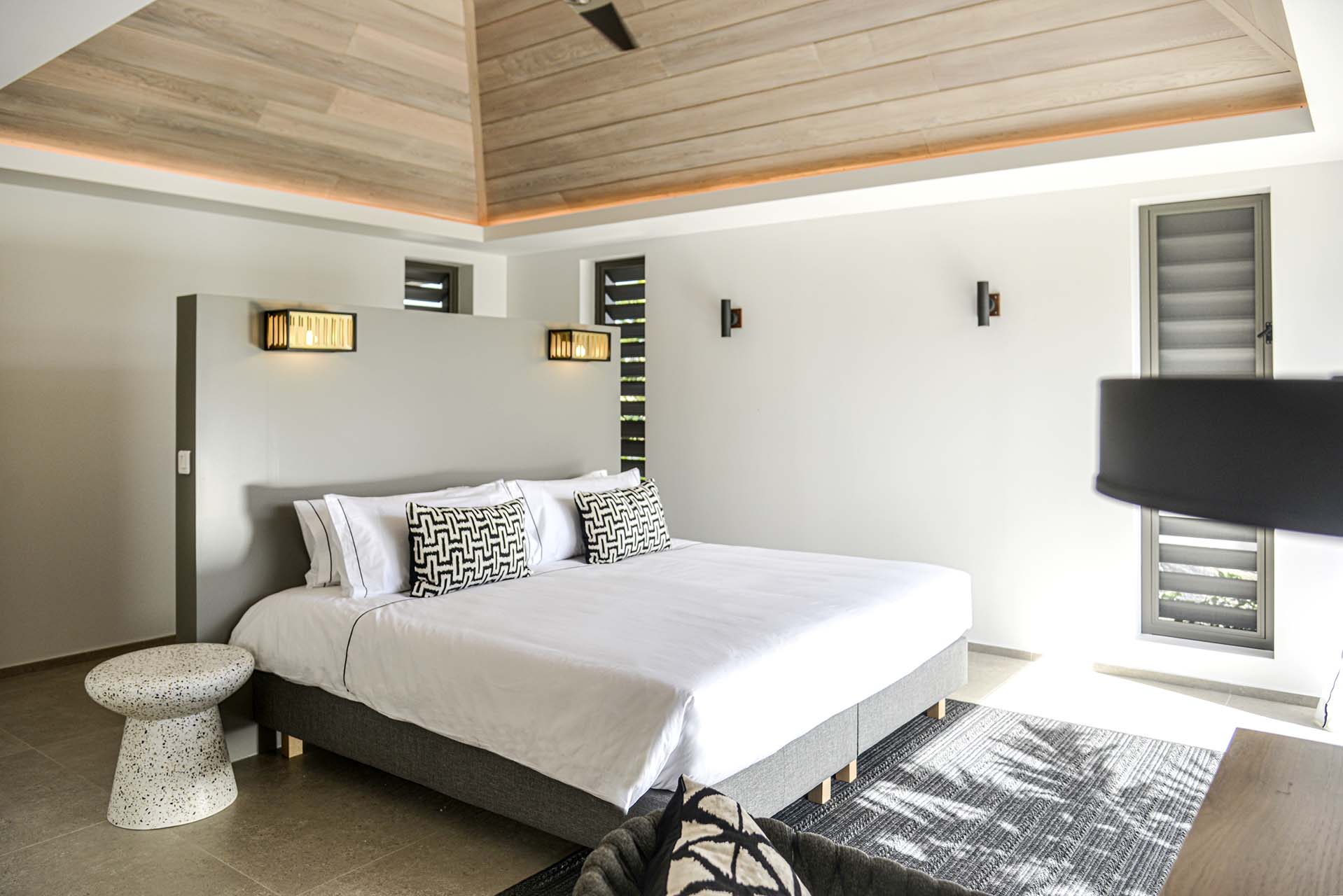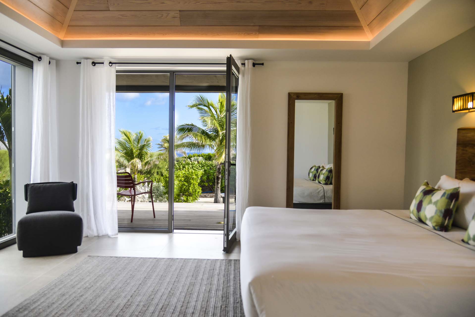 There are 7 bedrooms inside Villa Lagon Vert, spread across the home to provide privacy between guests. Expect plush bedding, soft linens, and a tranquil and modern atmosphere in each room.