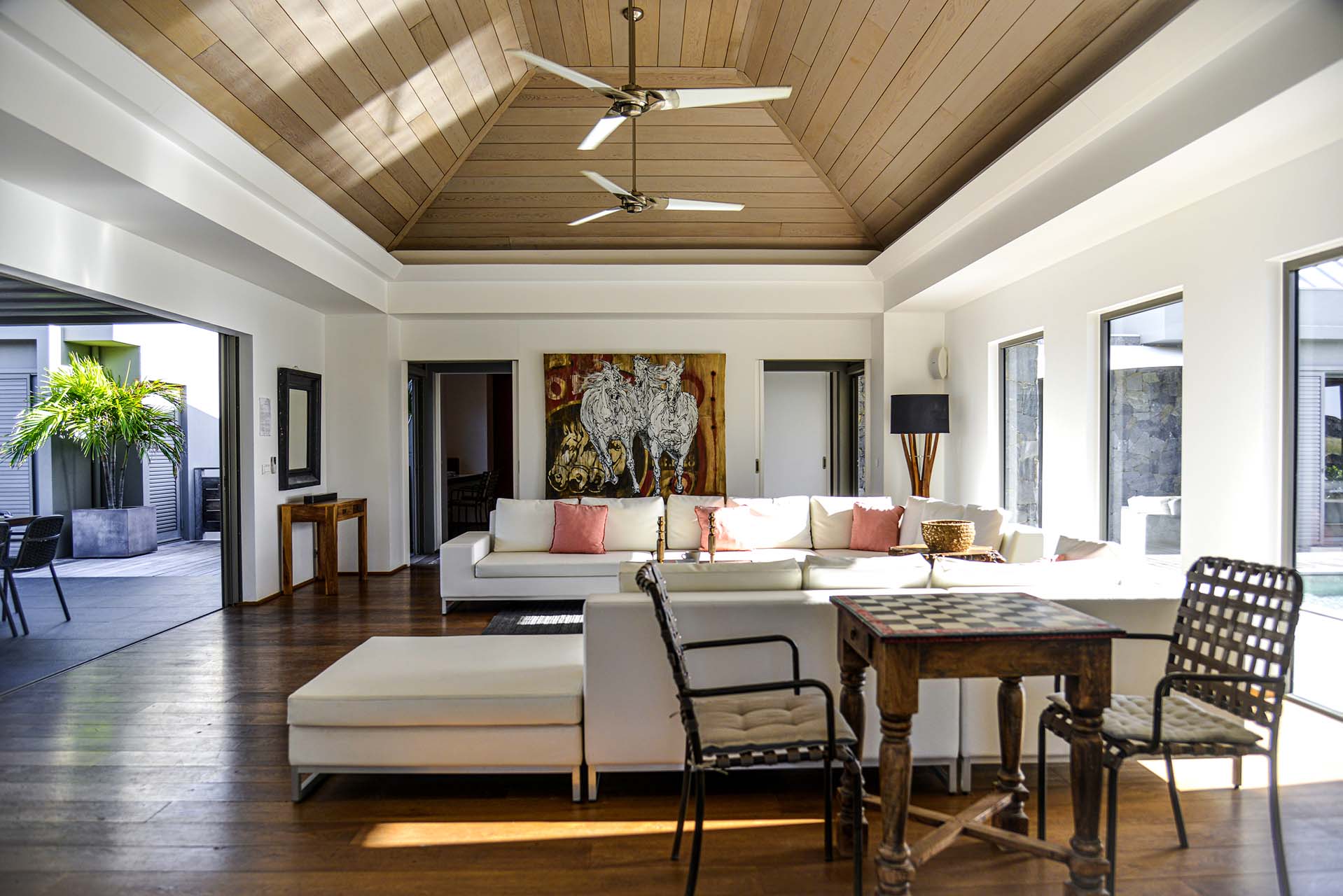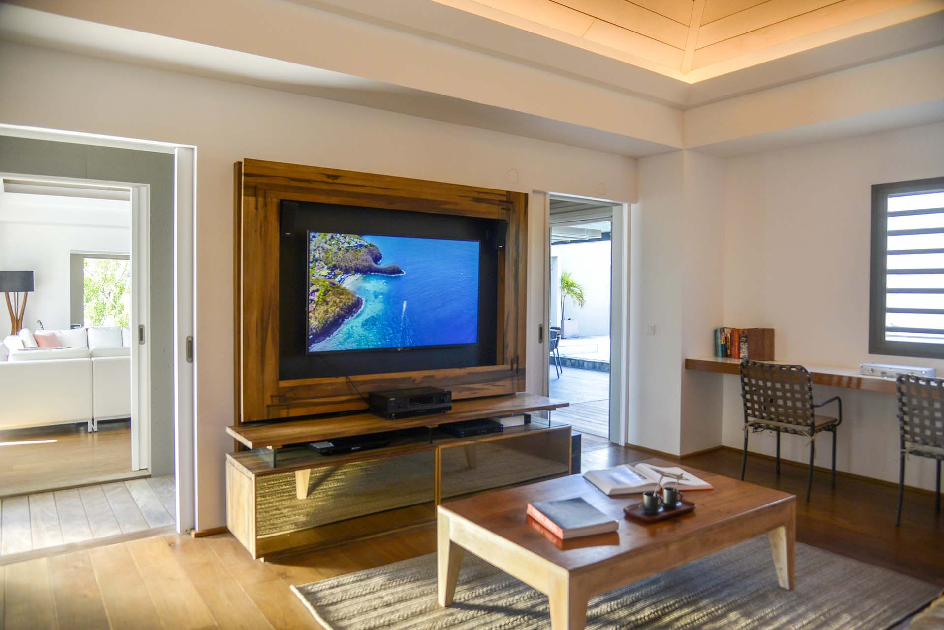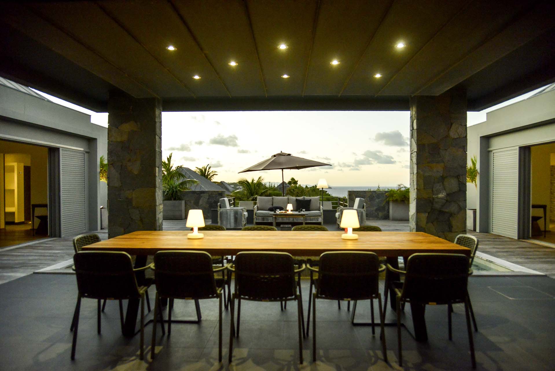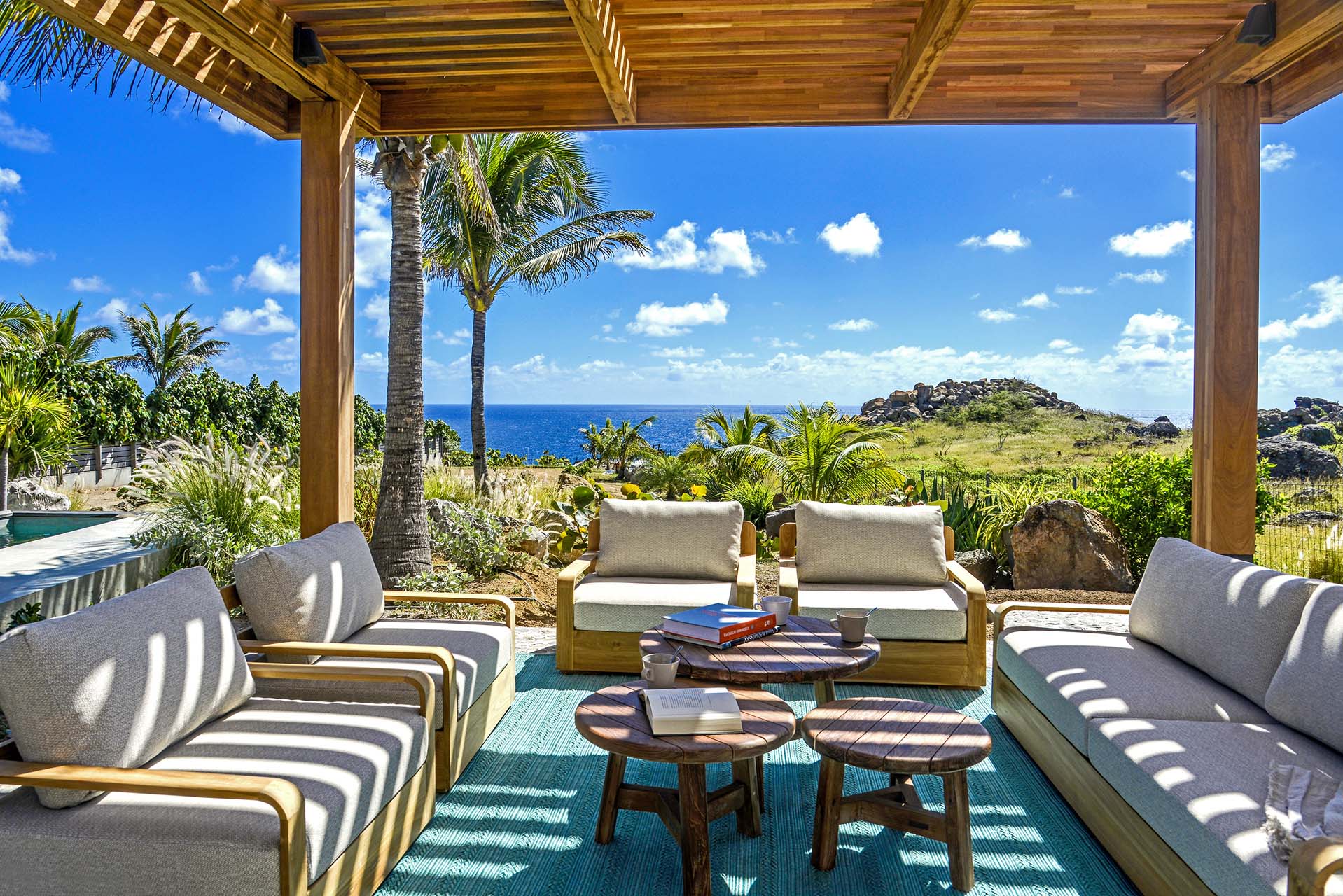 The layout of Villa Lagon Vert is one of the most unique features of the villa. Spread across several pavilions and connected by several outdoor areas, there are ocean views at either end of the home, two swimming pools, and gorgeous settings to gather with your friends and family.