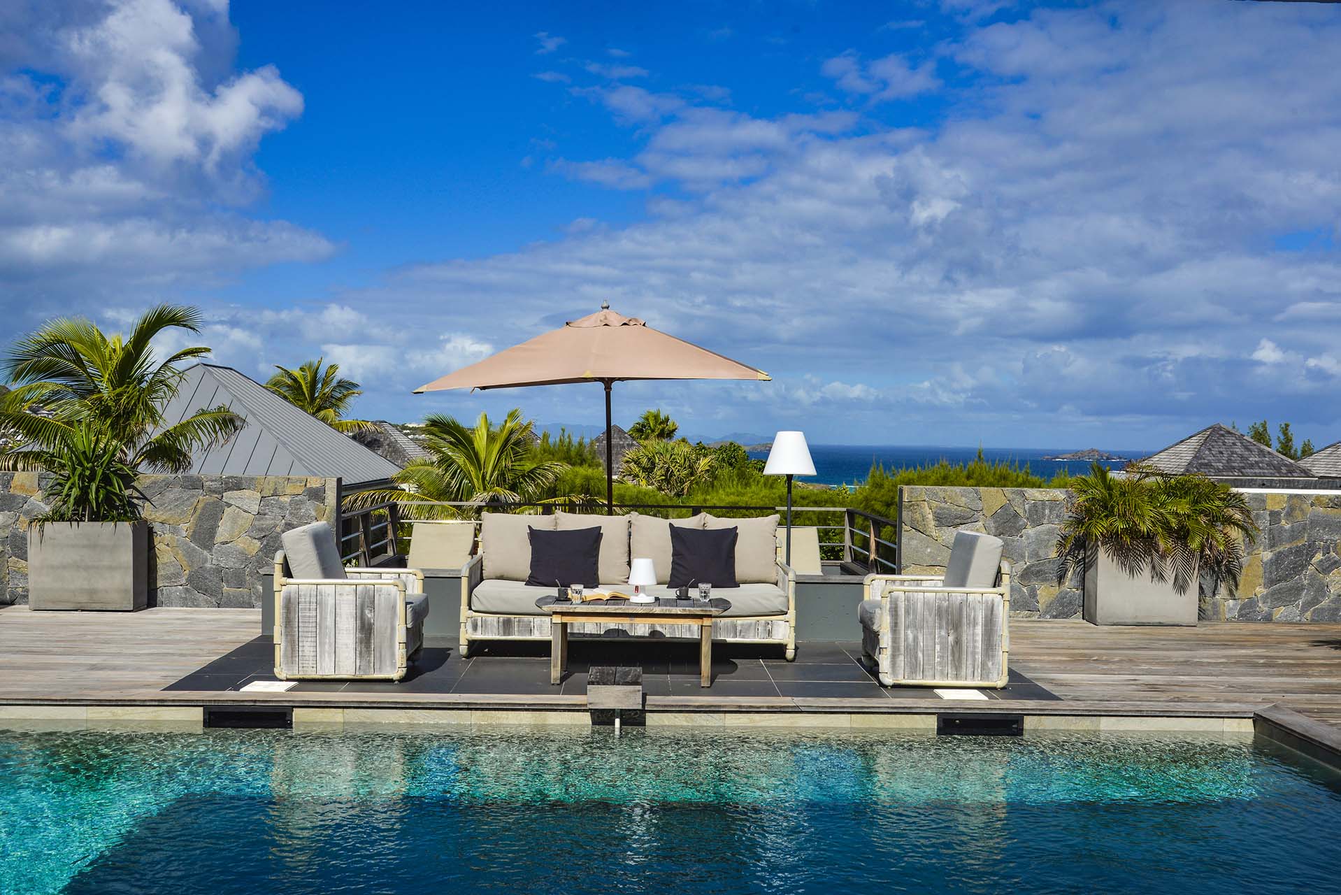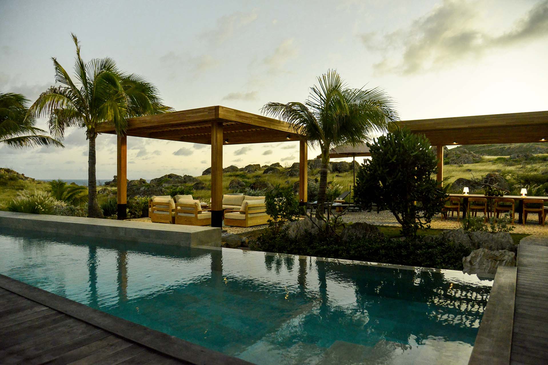 At the other end of Villa Lagon Vert is an even larger swimming pool, another fine spot to spend a day lounging around in the water. The infinity-edge melts into the horizon, and from here, the ocean views are even more terrific.