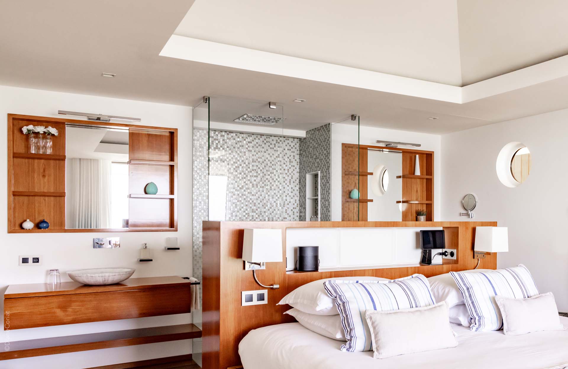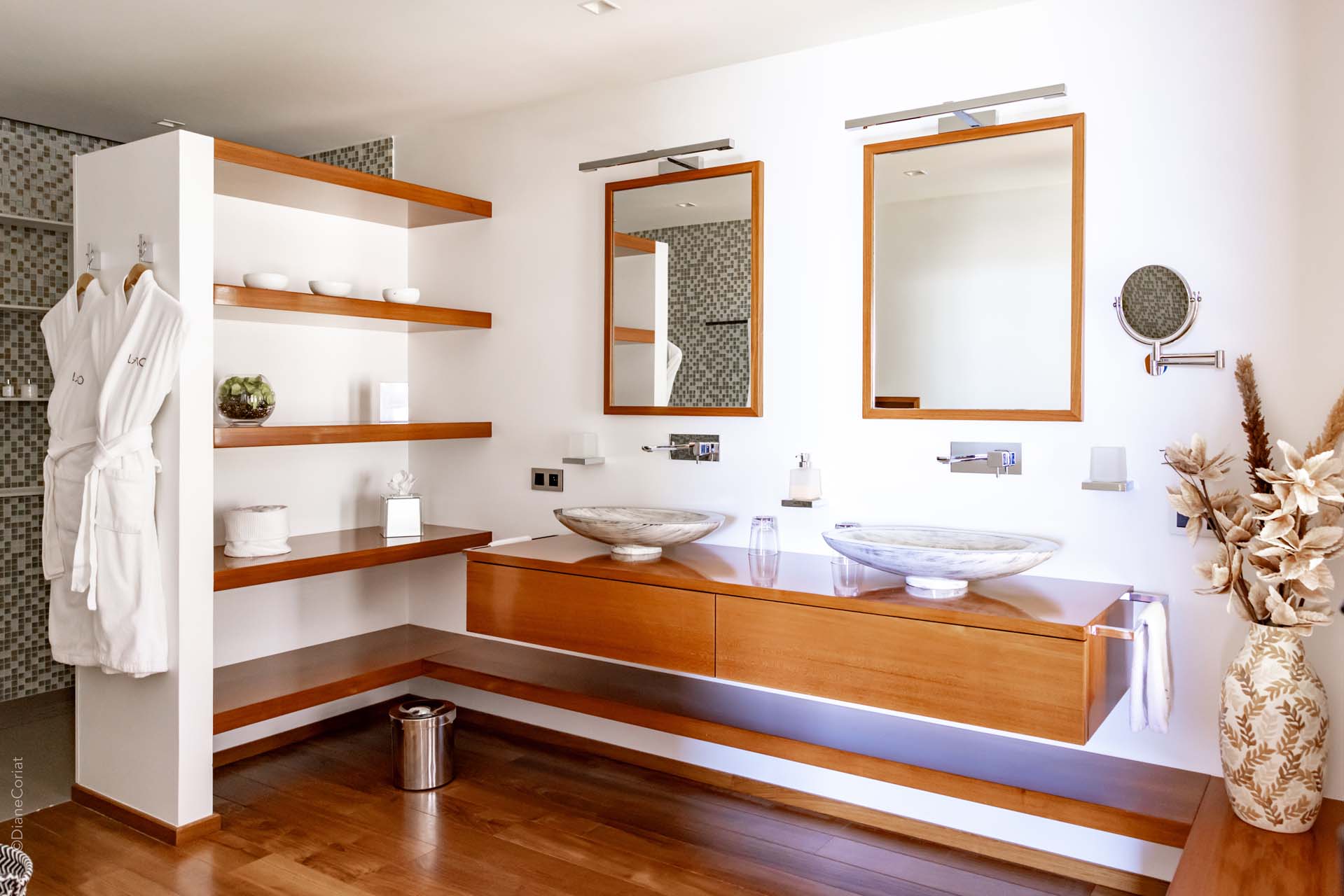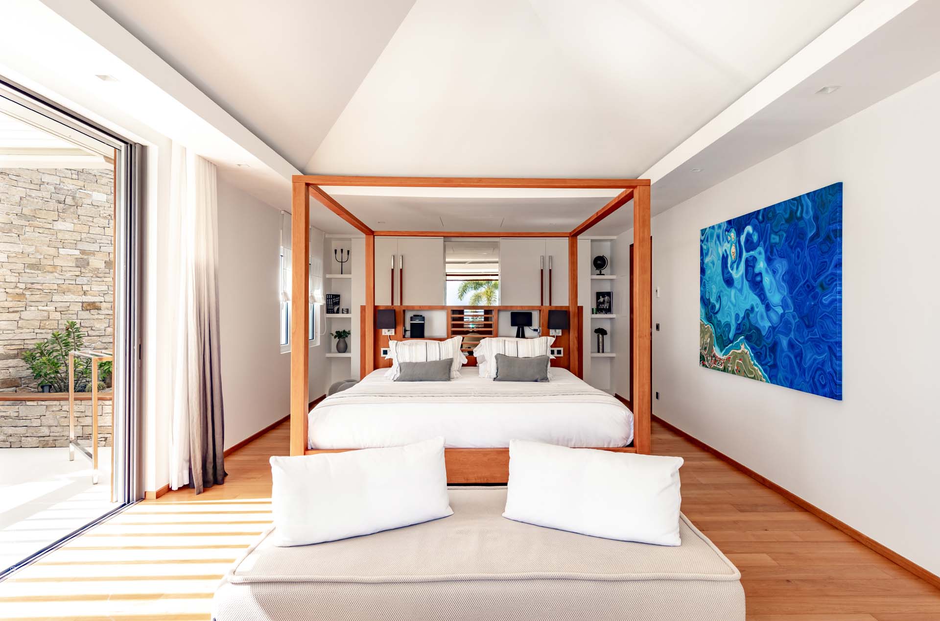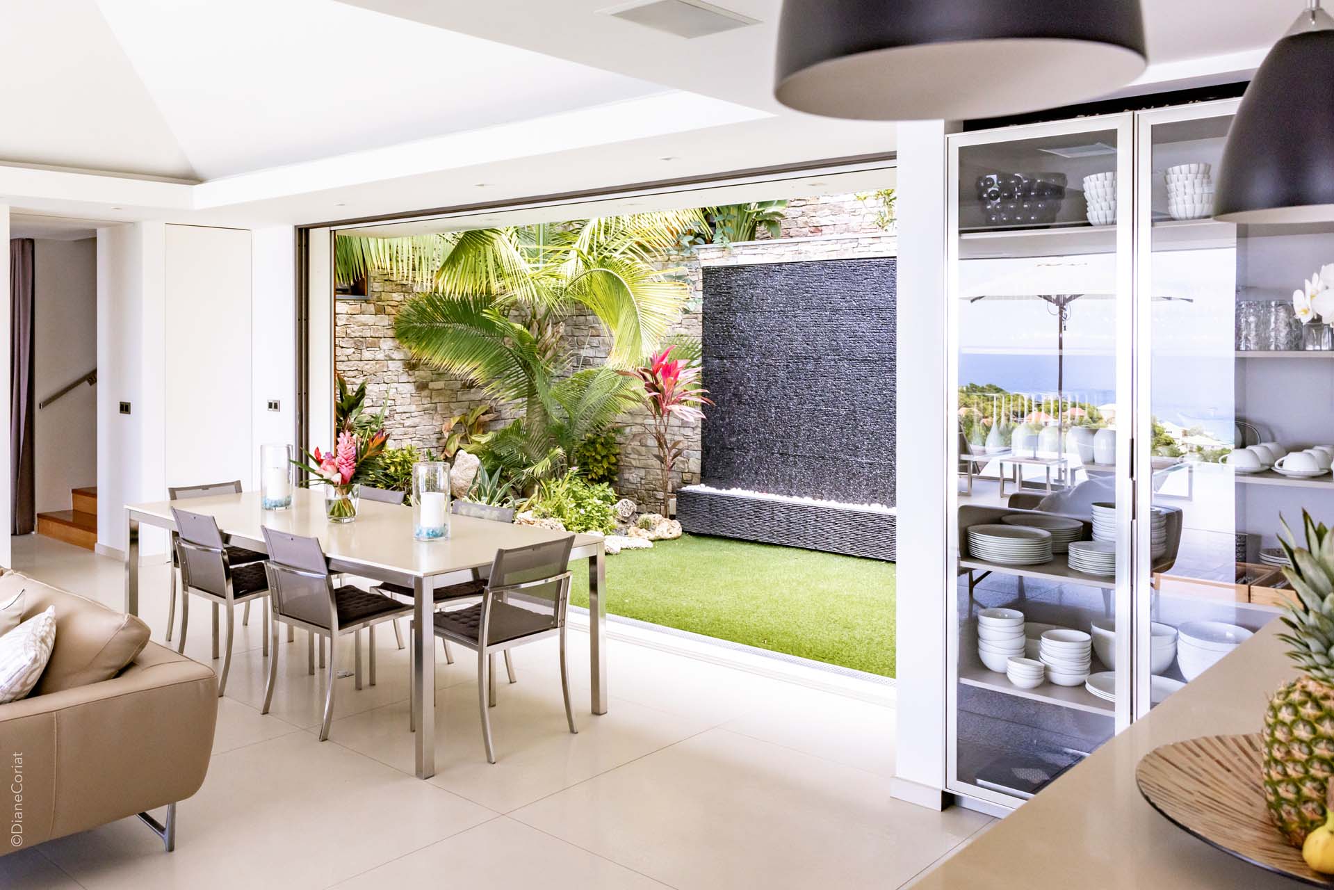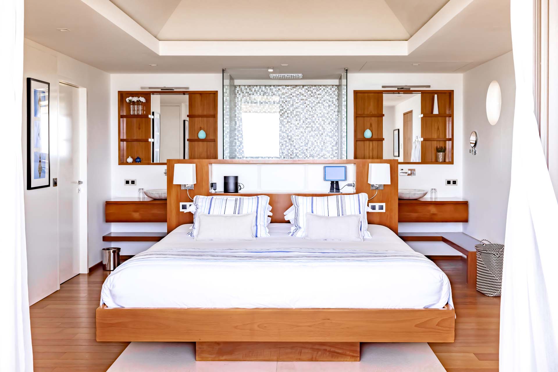 Welcome to Villa Lao (villa code: WV LAO), a contemporary 3-bedroom villa in Corossol, St. Barts. Nestled high in the hills, this villa enjoys stunning sunset views within a 5-minute drive from the beach, shopping, and restaurants. Chic island luxury awaits inside Villa Lao, a spacious home that immerses you in the St. Barts lifestyle. Space, natural light, and high-end design come together, with all the creature comforts as well: soft linens, plush mattresses, and luxurious furnishings. Woven textures and hardwood floors bring warmth into the villa – you’ll feel right at home here. With a fabulous location in the hills of Corossol, Villa Lao in St. Barts enjoys splendid panoramic views toward the western horizon, with incredible sunsets each evening, a spectacle you won’t want to miss. It’s a 5-minute drive into the capital Gustavia and also Corossol Beach, an unspoiled and quiet stretch of sand. The memorable living spaces at Villa Lao are open and flowing, with a large great room opening on several sides to the outdoor terraces. Inside you’ll find the large living room, dining room, and a professional-level kitchen. From the living room, the sofas face out towards the view, framed by the wall-to-wall sliding doors. Yachts bob up and down in the sparkling sea, with the headlands shrouded in lush trees. It’s an idyllic setting to kick back with a glass of champagne, toasting to your island vacation with family and friends. For something cozier, Villa Lao also has a separate TV room for movie nights inside. A breakfast bar separates the living room from the kitchen. Sleek and modern, this is an elegant and high-end space to prepare meals during your stay. Our concierge can even arrange to have groceries delivered before you arrive, including champagne, wine, and beer in the fridge. Private chefs are also available on the island. The breakfast bar is an ideal spot for a morning coffee and some fresh eggs before staking out a spot on the terrace for a day of sunbathing. Behind the living room is the formal dining table, next to another wall-to-wall sliding door that opens to a small inner courtyard. There are 3 bedrooms inside Villa Lao, relaxed spaces where guests can unwind in privacy. Each bedroom has a private terrace with a Jacuzzi, making this a great choice for several couples traveling together. One bedroom is upstairs, with alluring ocean views through its windows. The second bedroom is behind the living room, while the third is on the lower level with a separate private entrance. An extensive terrace with a large, heated infinity pool stretches out in front of the living room. This is the real highlight of a stay at Villa Lao; the immersive views of the island are incredible, taking in the beguiling coastline and the Caribbean Sea. A cozy gazebo at the far end of the terrace provides a shaded sitting area for watching sunsets. Cocktail hours here are splendid, with the sinking sun casting hues of pink, red, and gold across the sky. A small garden with a waterfall is located on the other side of the terrace. For days at the beach, it’s a short drive to the quiet and pristine Corossol Beach. This undeveloped area of St. Barts has retained its authentic feel, giving you a true taste of life in paradise. During the Thanksgiving and December holidays, the villa rents at full occupancy rates regardless of how many bedrooms are used.Please fill out the form to begin your inquiry and we will connect you with a seasoned villa rental specialist.