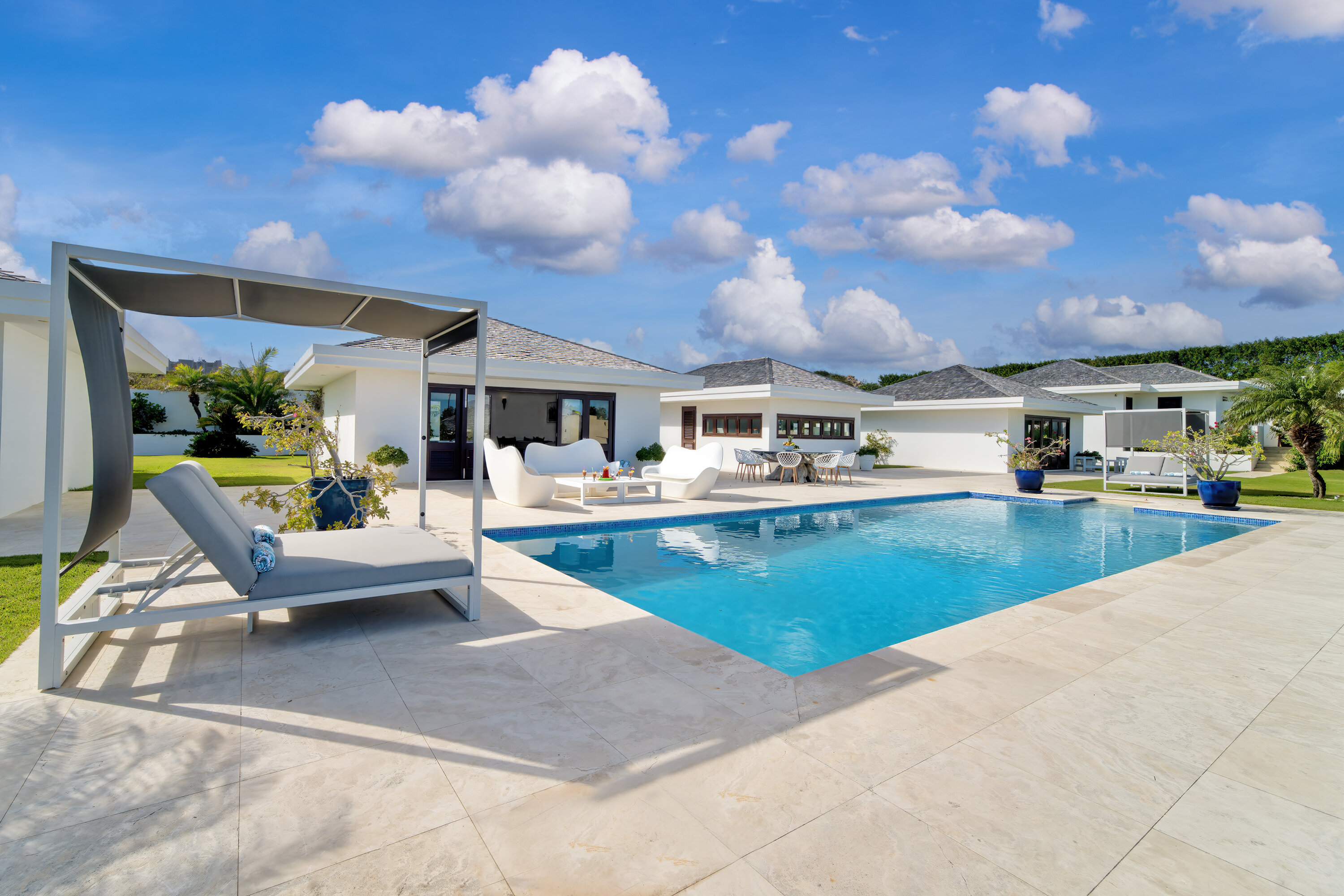 Seven bedrooms are on the pool level with king-sized beds and one bedroom with a queen. Each bedroom has an ensuite bathroom, with two of them featuring stunning natural freeform stone tubs. All of them are linked by attractively landscaped walkways. There are 2 suites in Petit Le Bleu which has its own pool.