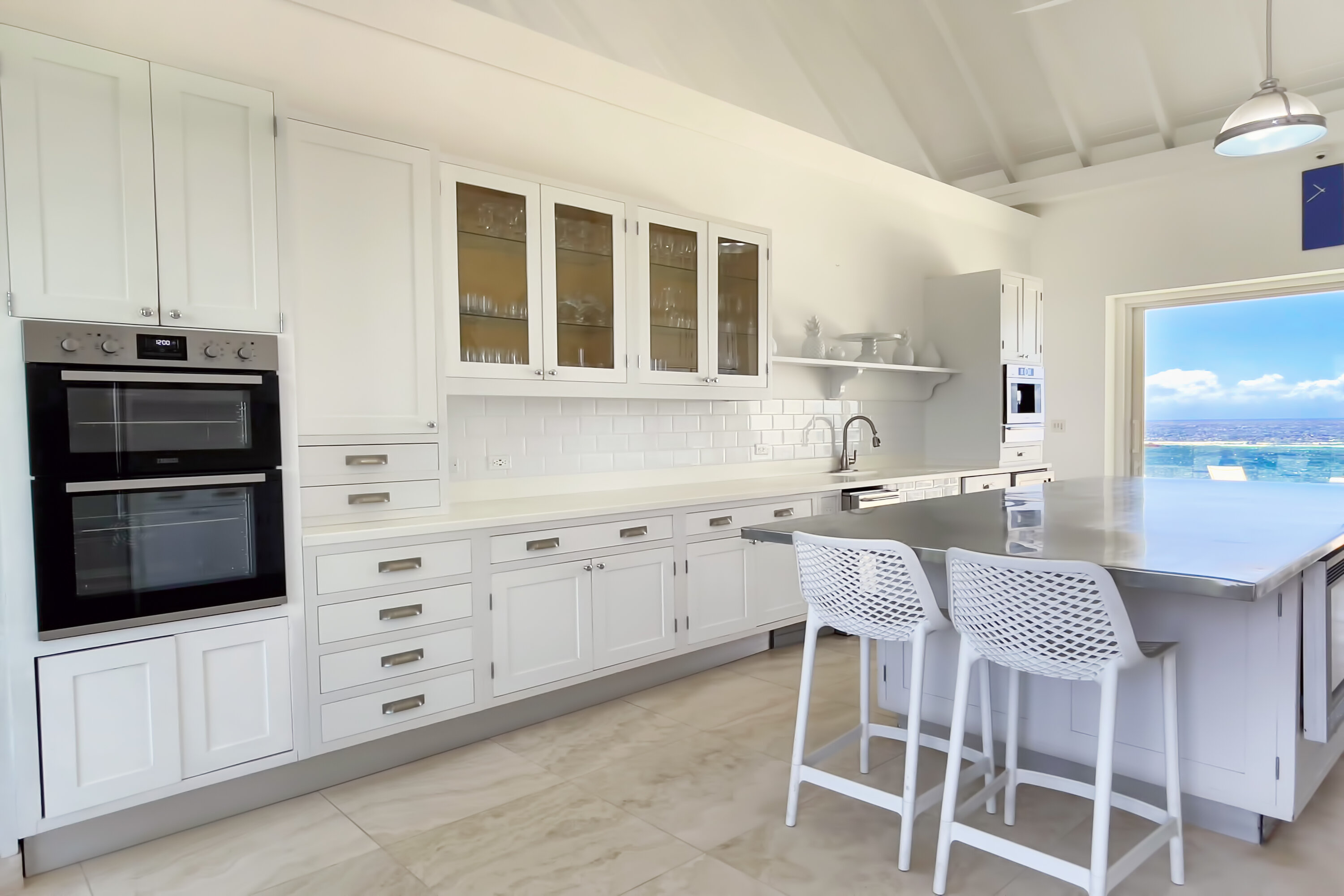 The well-equipped kitchen in the main house at Villa Le Bleu opens to the pool deck. You’ll have everything you need to prepare gourmet meals during your stay, however the house comes with your own private chef, so you may decide to have someone else prepare all the meals for a change!