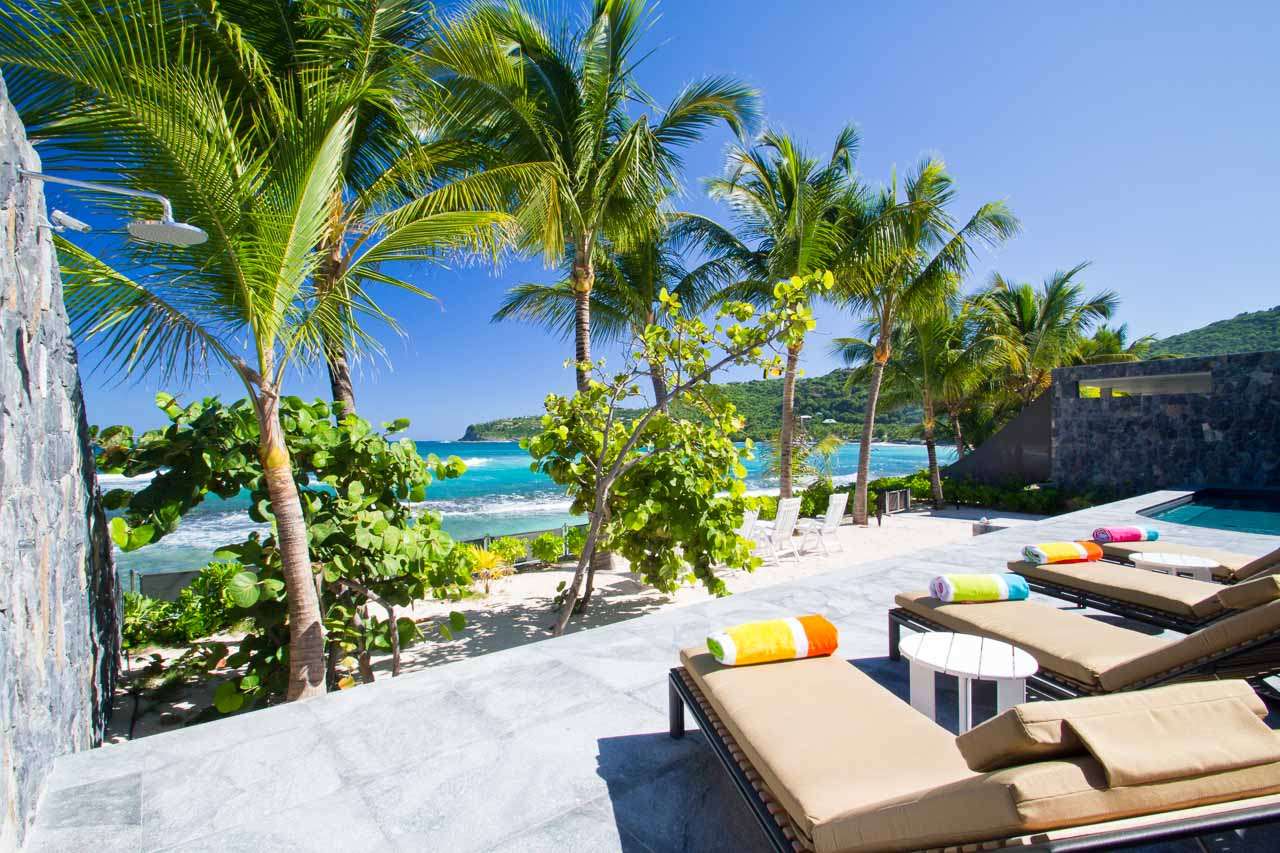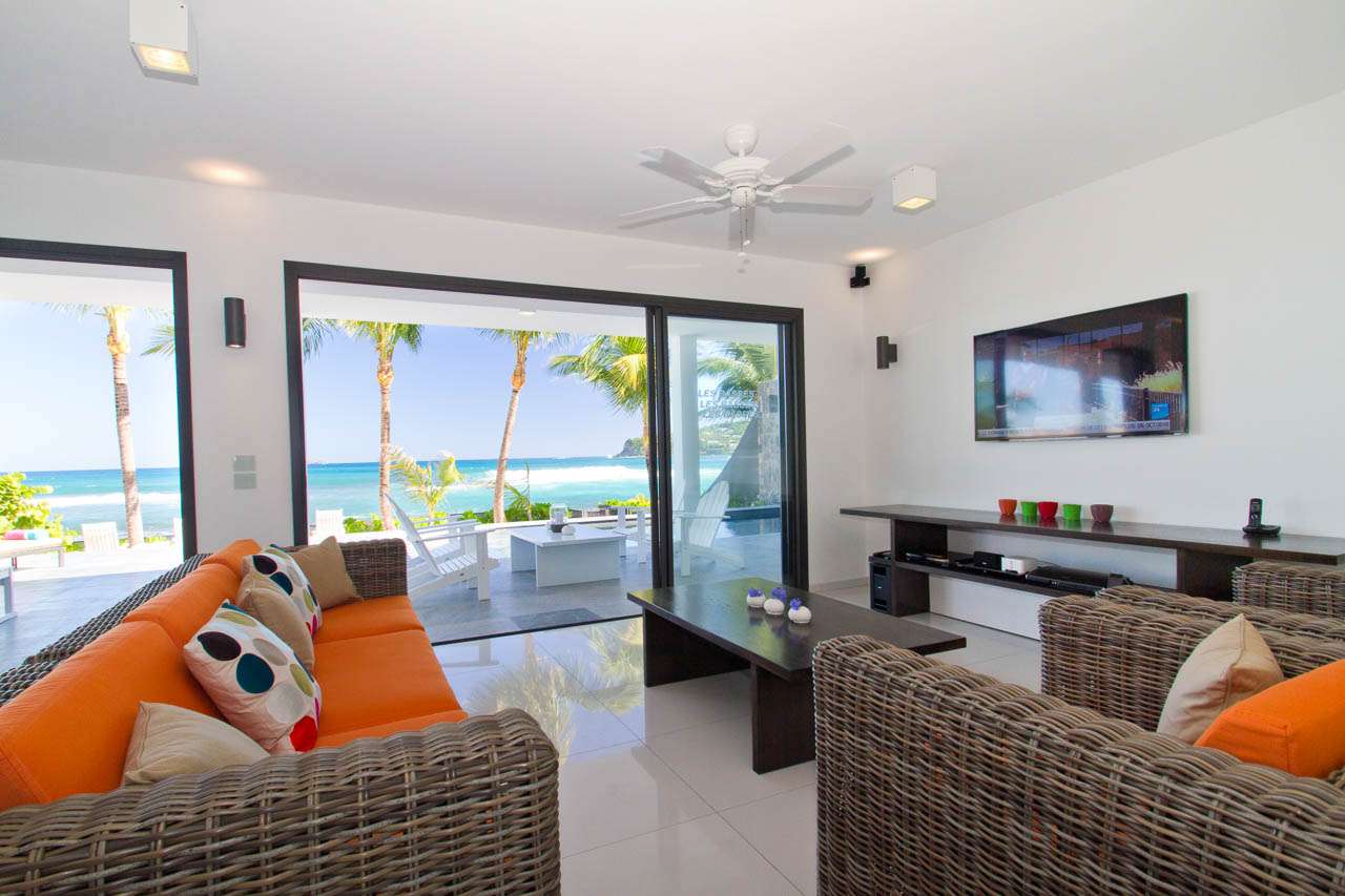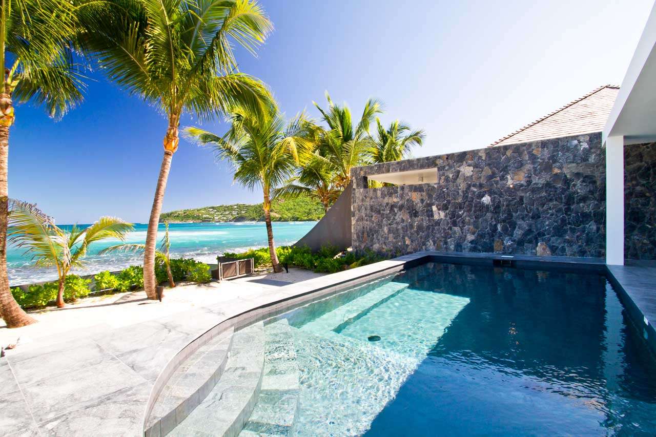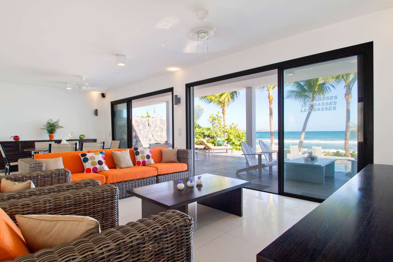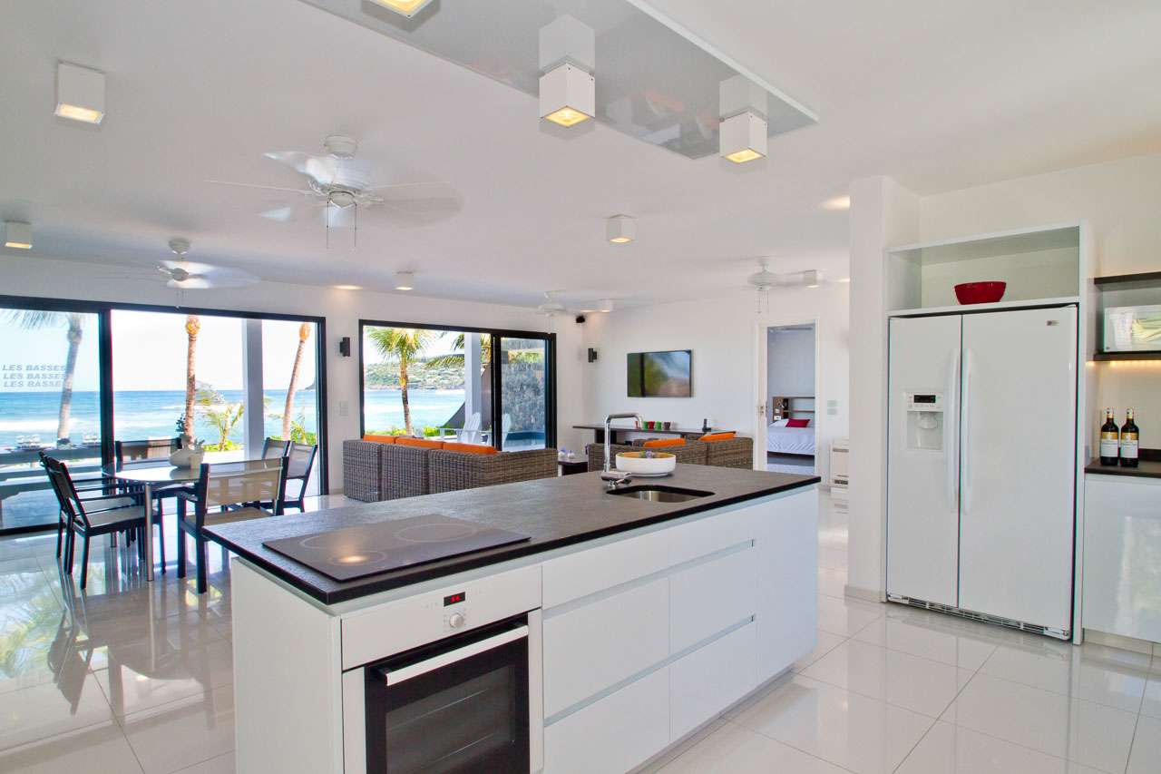 Castaway to Villa Les Basses (villa code: WV BAS), a contemporary 2-bedroom villa within steps of Lorient Beach on St. Barts. This stunning beachfront villa offers incredible ocean views. Picture yourself wandering down to the quiet beach each morning, diving into the crystalline waters. Afterward, why not duck across the street to pick up some fresh pastries and coffee from the bakery? The days are yours to lounge at the beach, relax by the pool, and experience the natural beauty and glamorous lifestyle of St. Barts. Island getaways don’t come much better than this. Ideally located at Lorient Beach, the town of St. Jean is just 5 minutes away by car. From the villa, you can admire the islands of Île Toc Vers, Île Frégate, and Île Bonhomme. A spacious and airy great room is at the heart of Villa Les Basses, home to the living room, dining table, and kitchen. Sliding doors open to the outdoor terrace and beach, revealing stunning views and inviting in the gentle ocean breeze. A comfortable and modern living room features rattan sofas facing toward a wall-mounted TV, ideal for unwinding. For those who need to get some work done, a small office with a desk and chair is connected to the back of the great room. Next to the living room is Les Basses Villa’s modern kitchen. Gleaming in white with black marble countertops, it’s a sleek and stylish place to cook gourmet meals. Our concierge can even organize grocery pre-stocking or delivery, catered meals, or arrange private chef service for a special occasion. The dining table in the great room has space for up to 6 guests, a magnificent setting for festive dinners. For those who prefer to dine alfresco, there’s another table on the covered terrace outside. From here, you can hear the sound of the ocean and the island breeze rustling through the palms. The 2 bedrooms at Les Basses Villa are on either side of the great room, ensuring peace, quiet, and privacy for guests. The two rooms are completely identical, featuring a plush king-sized bed, dressing room, and an ensuite bathroom with double vanity and a spacious shower. Life in the Caribbean is best spent outdoors at Villa Les Basses. Next to the outdoor dining table is a lounge area, an ideal spot for a sunset cocktail hour. From here, the fading afternoon casts golden light across the sea, islands, and sky. The inviting swimming pool will no doubt tempt you in for a dip. There’s a shallow end and a deep one, letting you either submerge yourself completely or lie about soaking up the sun from the cool water. When it’s time to dry off, loungers scattered across the terrace offer more attractive places to sunbathe. Below the pool deck, a gate leads to a private beach area where guests can sunbathe on a lounge or enjoy lunch with ocean views. From here, you can admire the surfers offshore catching the waves all day. At the shore, a swimming area has been created in the ocean. More beaches are easily accessible from Villa Les Basses. A 5-minute drive to the west brings you to the sand at St. Jean, one of the prettiest beaches on the island, and also home to shops and restaurants. For something more low-key, Marigot Bay Beach is 5-minutes to the east, a quiet spot backed by a tranquil coconut grove. During the Thanksgiving and December holidays, the villa rents at the full occupancy rate regardless of how many bedrooms are used.Please fill out the form to begin your inquiry and we will connect you with a seasoned villa rental specialist.