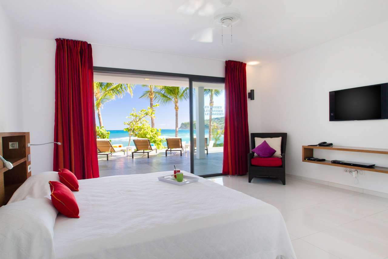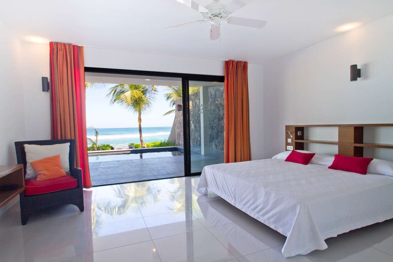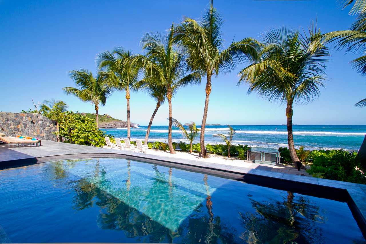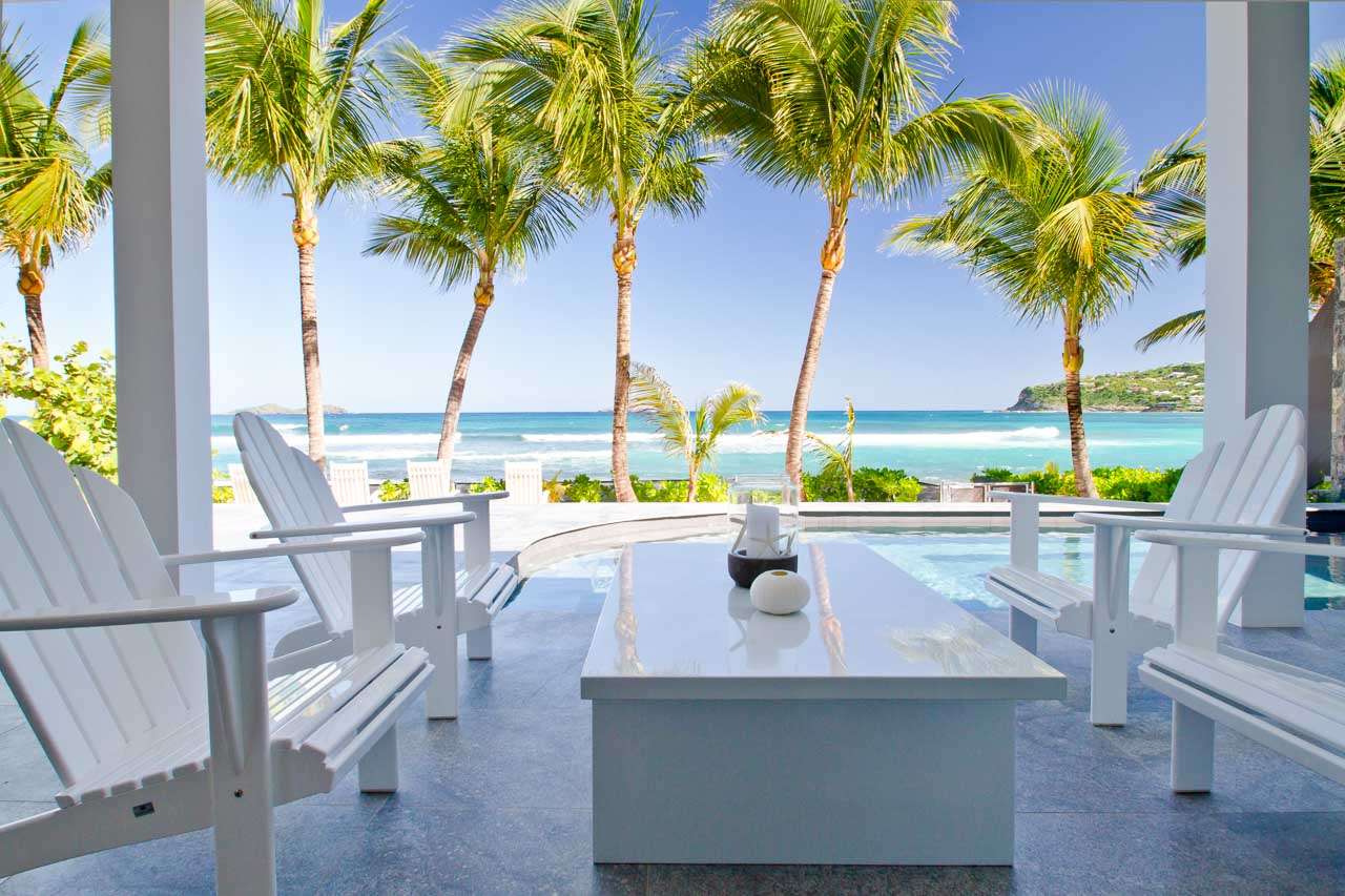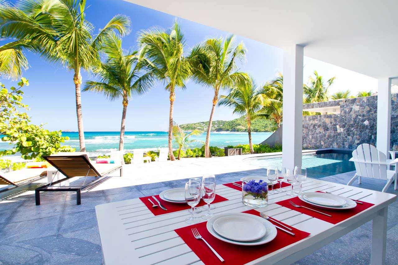 Castaway to Villa Les Basses (villa code: WV BAS), a contemporary 2-bedroom villa within steps of Lorient Beach on St. Barts. This stunning beachfront villa offers incredible ocean views. Picture yourself wandering down to the quiet beach each morning, diving into the crystalline waters. Afterward, why not duck across the street to pick up some fresh pastries and coffee from the bakery? The days are yours to lounge at the beach, relax by the pool, and experience the natural beauty and glamorous lifestyle of St. Barts. Island getaways don’t come much better than this. Ideally located at Lorient Beach, the town of St. Jean is just 5 minutes away by car. From the villa, you can admire the islands of Île Toc Vers, Île Frégate, and Île Bonhomme. A spacious and airy great room is at the heart of Villa Les Basses, home to the living room, dining table, and kitchen. Sliding doors open to the outdoor terrace and beach, revealing stunning views and inviting in the gentle ocean breeze. A comfortable and modern living room features rattan sofas facing toward a wall-mounted TV, ideal for unwinding. For those who need to get some work done, a small office with a desk and chair is connected to the back of the great room. Next to the living room is Les Basses Villa’s modern kitchen. Gleaming in white with black marble countertops, it’s a sleek and stylish place to cook gourmet meals. Our concierge can even organize grocery pre-stocking or delivery, catered meals, or arrange private chef service for a special occasion. The dining table in the great room has space for up to 6 guests, a magnificent setting for festive dinners. For those who prefer to dine alfresco, there’s another table on the covered terrace outside. From here, you can hear the sound of the ocean and the island breeze rustling through the palms. The 2 bedrooms at Les Basses Villa are on either side of the great room, ensuring peace, quiet, and privacy for guests. The two rooms are completely identical, featuring a plush king-sized bed, dressing room, and an ensuite bathroom with double vanity and a spacious shower. Life in the Caribbean is best spent outdoors at Villa Les Basses. Next to the outdoor dining table is a lounge area, an ideal spot for a sunset cocktail hour. From here, the fading afternoon casts golden light across the sea, islands, and sky. The inviting swimming pool will no doubt tempt you in for a dip. There’s a shallow end and a deep one, letting you either submerge yourself completely or lie about soaking up the sun from the cool water. When it’s time to dry off, loungers scattered across the terrace offer more attractive places to sunbathe. Below the pool deck, a gate leads to a private beach area where guests can sunbathe on a lounge or enjoy lunch with ocean views. From here, you can admire the surfers offshore catching the waves all day. At the shore, a swimming area has been created in the ocean. More beaches are easily accessible from Villa Les Basses. A 5-minute drive to the west brings you to the sand at St. Jean, one of the prettiest beaches on the island, and also home to shops and restaurants. For something more low-key, Marigot Bay Beach is 5-minutes to the east, a quiet spot backed by a tranquil coconut grove. During the Thanksgiving and December holidays, the villa rents at the full occupancy rate regardless of how many bedrooms are used.Please fill out the form to begin your inquiry and we will connect you with a seasoned villa rental specialist.