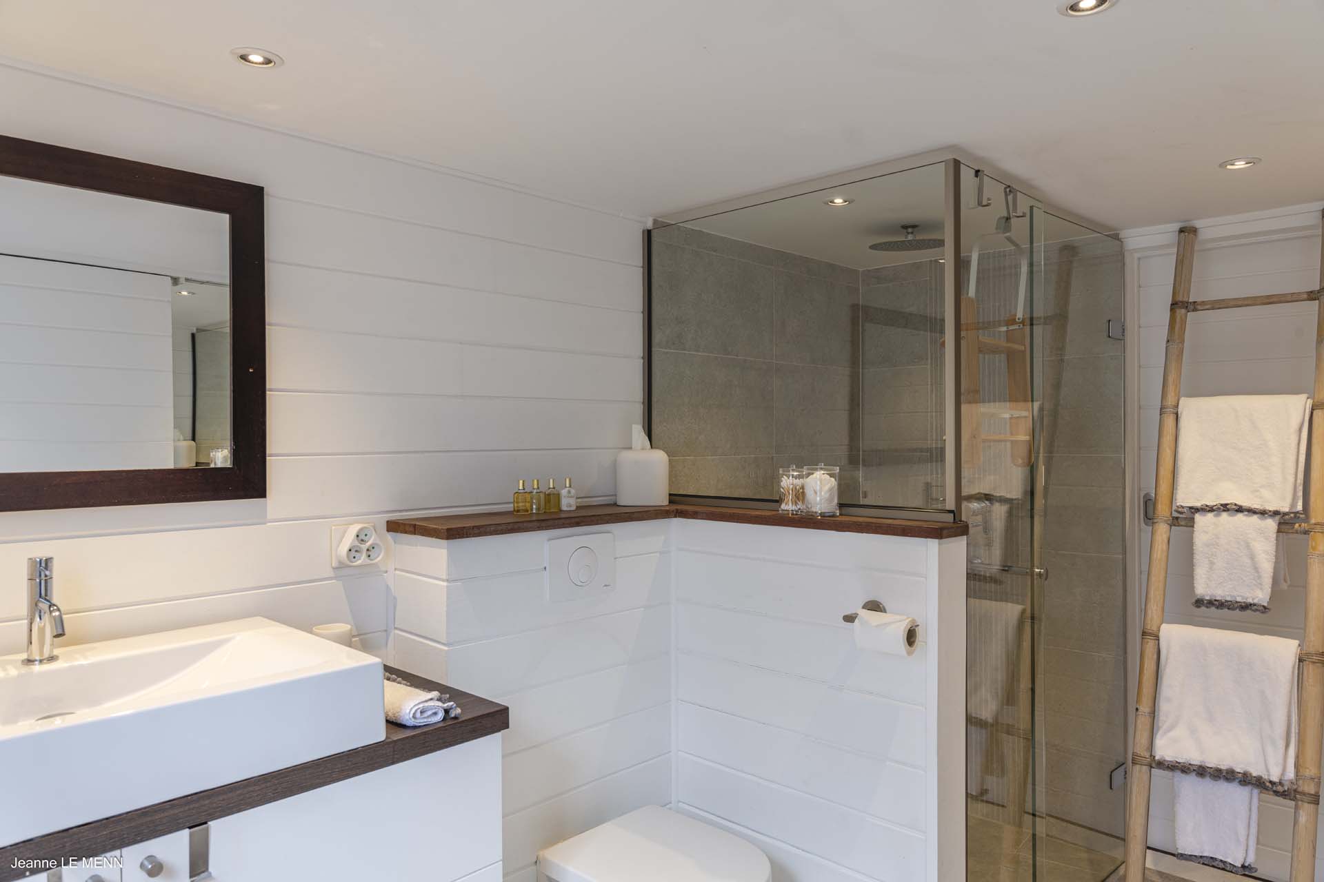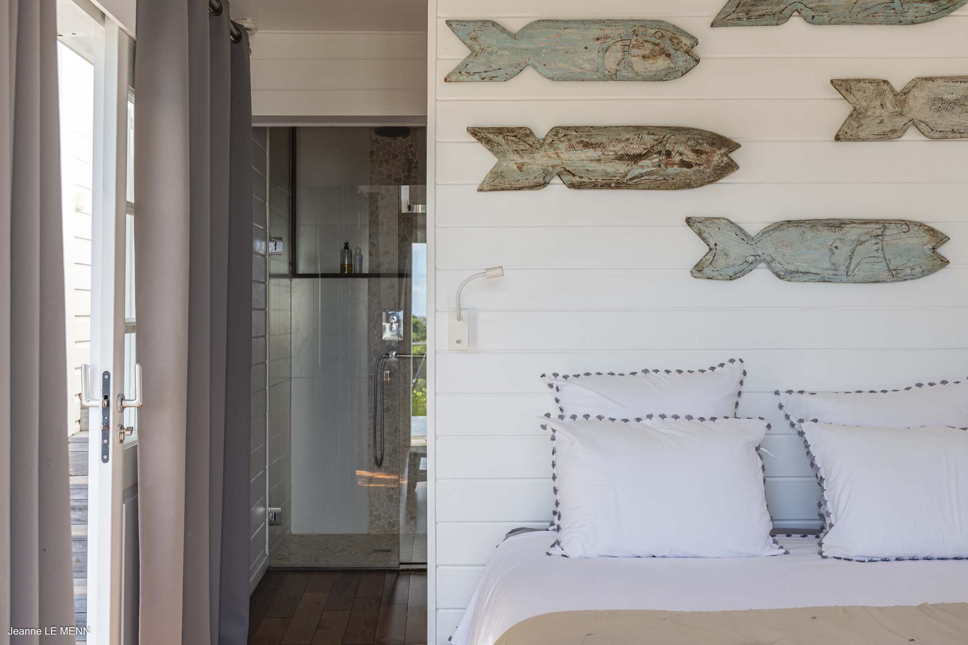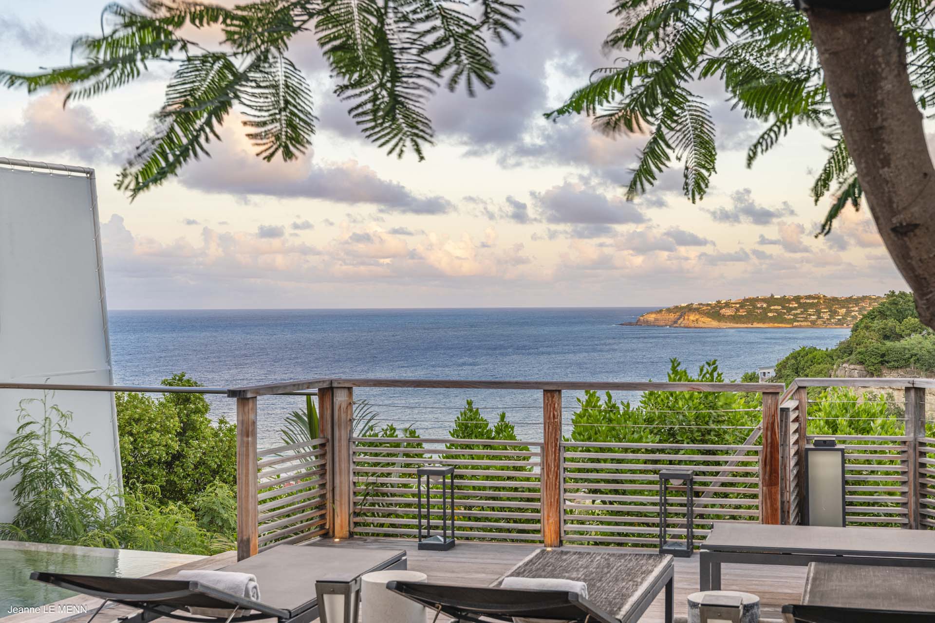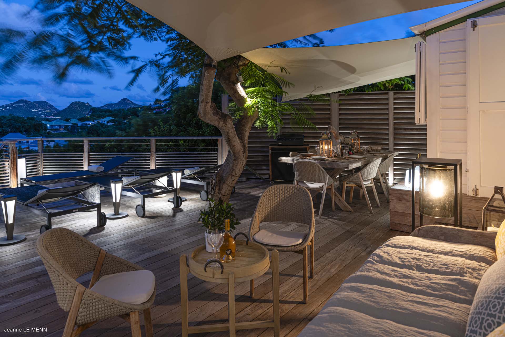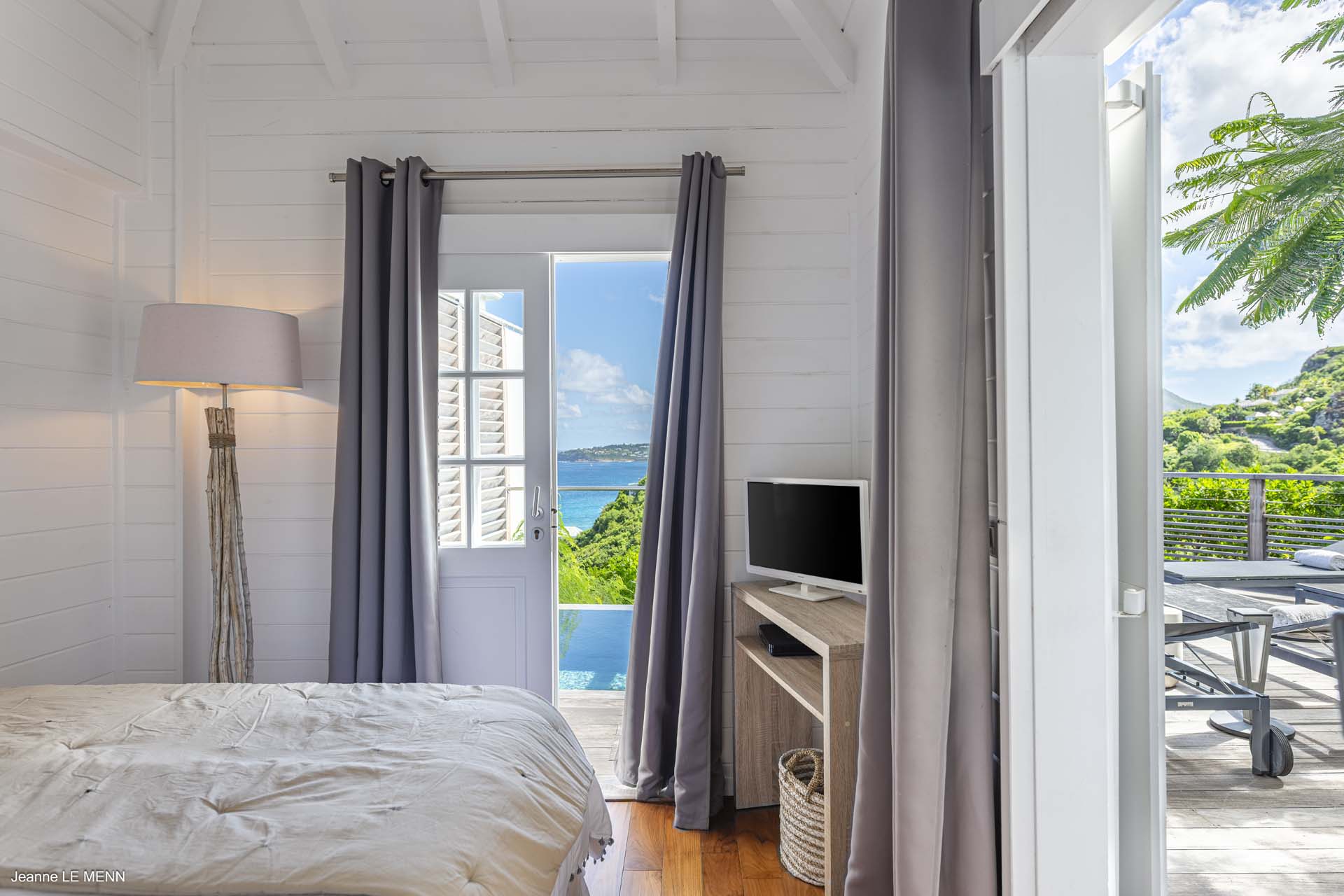 Welcome to Villa Les Cabanes (villa code: WV CAB), a charming 3-bedroom villa located in Anse De Cayes, St. Barts. This classic island cottage offers spectacular ocean views and cozy living spaces within a 5-minute drive of the beach, shops, and restaurants. Inside, the design of Villa Les Cabanes offers a clever layout that makes wonderful use of the space. There are soft, luxurious furnishings for relaxing and a chic island décor, enhanced by stunning details from reclaimed wood and striking black and white pictures on the wall. There’s a definite exotic feel to the home; a wonderful and welcoming retreat for your Caribbean getaway. With a wonderful location in the hills above Anse de Cayes, Villa Les Cabanes also enjoys incredible views across the north coast of St. Barts. From the shimmering Caribbean to the verdant green hills, the vistas are likely to coax you out to explore the island. And when you do, there are several wonderful beaches and restaurants within an easy drive. Made up of several different cottages, Villa Les Cabanes enjoys a breezy and bright atmosphere, coaxing you outside at every turn. Inside, the bright yet cozy spaces enjoy high ceilings and a laid-back island design. In one cottage, the living room offers cushioned white sofas for relaxing – a great spot to enjoy a morning coffee, read a book, or simply chill out after a morning at the beach. For low-key evenings, there’s also a TV here for movie nights. Nearby is Villa Les Cabanes’ well-equipped kitchen with a breakfast bar. It’s a charming space, with windows framing the crystalline waters of the Caribbean in the distance. Our concierge is also on hand to help – we could stock the villa with groceries before your arrival, or even arrange a private chef for a special evening. The dining table is outside on the terrace, offering a lovely alfresco setting for meals with family and friends. As the afternoon fades, the light is magical, with a rose-gold glow descending across the gorgeous landscape making for an excellent pairing to a gourmet dinner. The 3 bedrooms at Villa Les Cabanes are quiet, relaxed, and comfortable, ideal for some private downtime. Located behind the living room is a small guest bedroom, with a king-size bed. A separate cottage on the terrace is home to the second bedroom, featuring a plush queen-sized bed. Outside, a set of stairs lead to another cottage with the master bedroom. This space has a queen-sized bed, a private terrace, and a small office space in case you need to get some work done. Each bedroom comes with a luxurious ensuite bathroom with a shower. A wooden deck with loungers and a Flamboyant tree frames the heated, compact swimming pool. It’s a tempting spot to lounge away a day, soaking up the island sun as the ocean breeze washes up from the beach below. There are loungers for sunbathing, and wooden fences that provide plenty of privacy. When the open ocean calls, it’s only a 5-minute drive to Anse de Cayes, where a picturesque sweep of golden sand and turquoise water invites you in to swim and snorkel. During the Thanksgiving and December holidays, the villa rents at full occupancy rates regardless of how many bedrooms are used.Please fill out the form to begin your inquiry and we will connect you with a seasoned villa rental specialist.