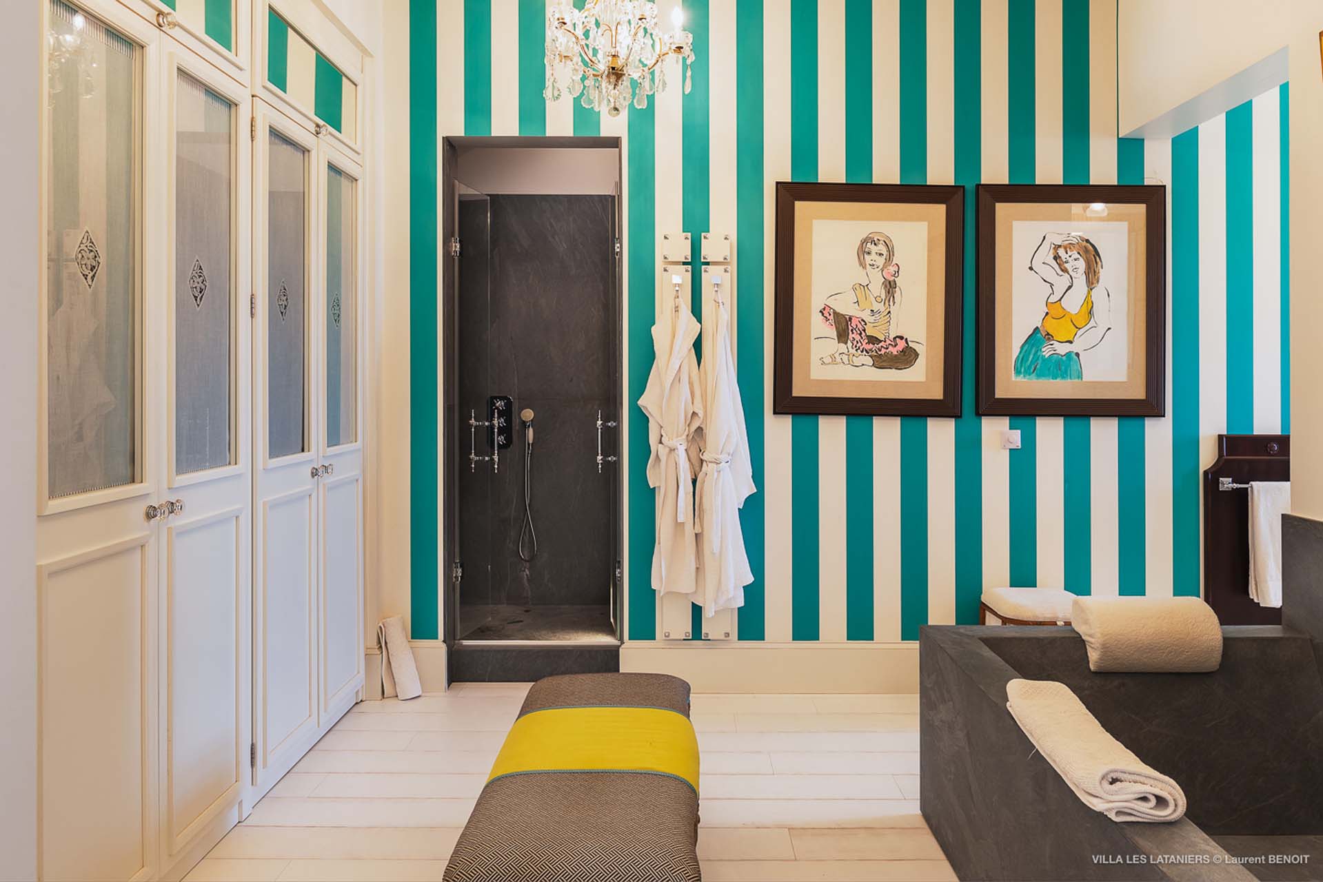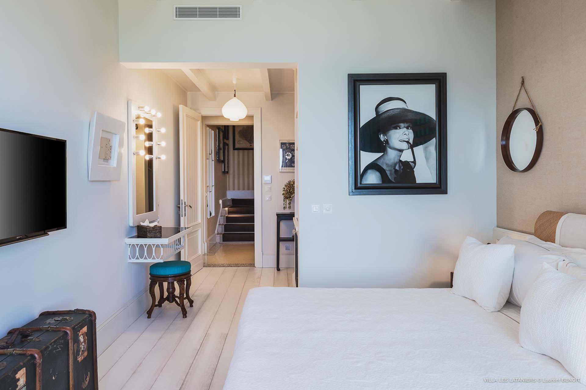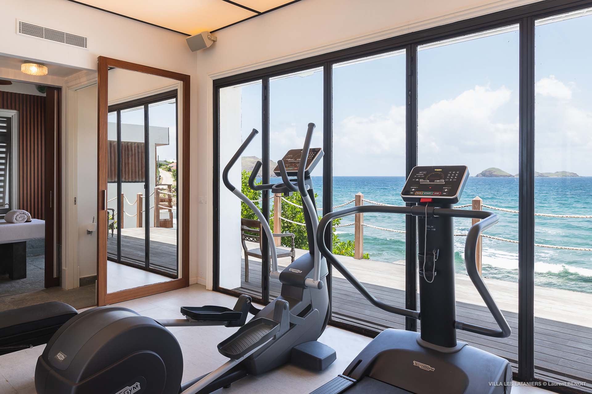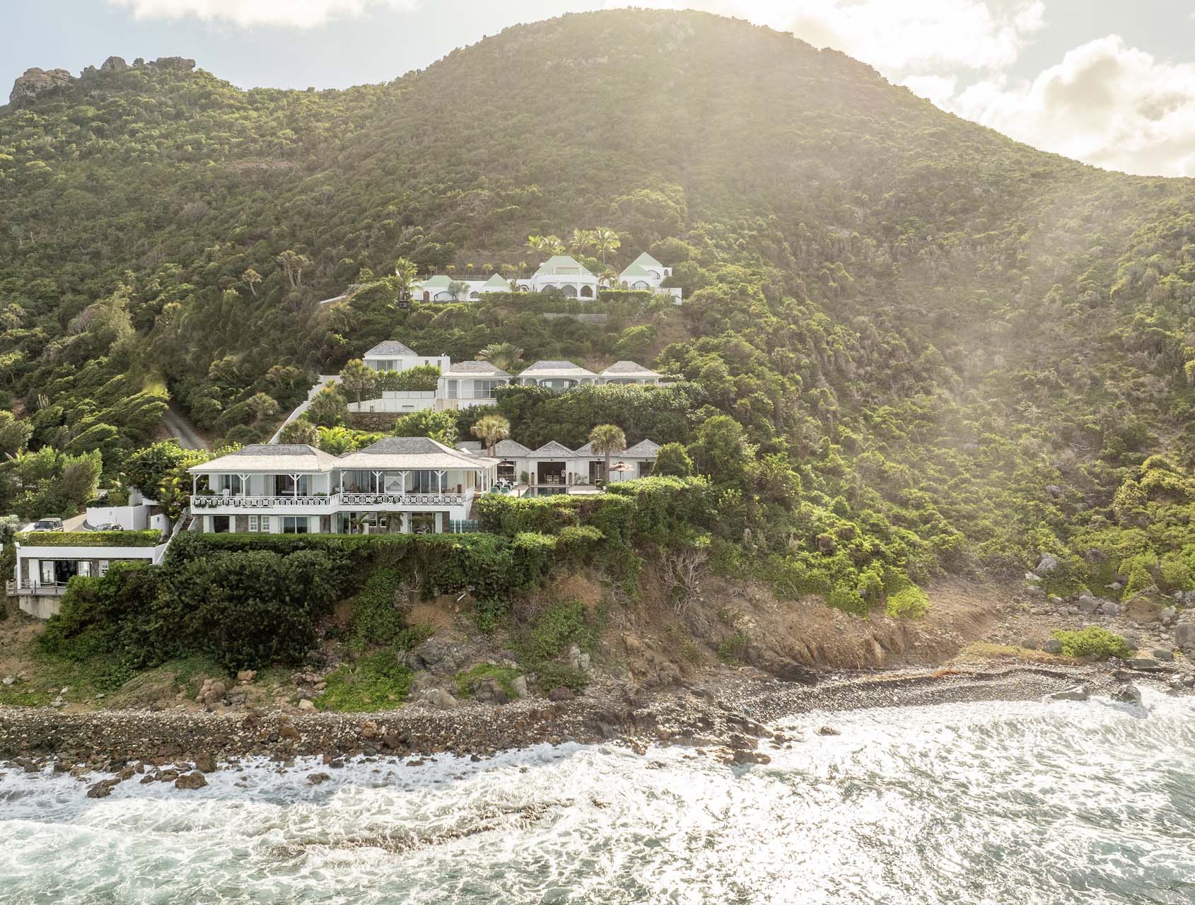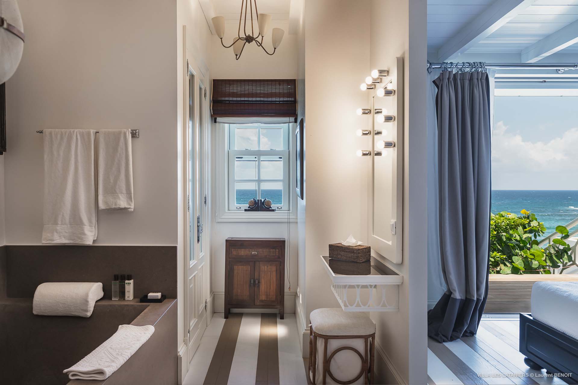 Villa Les Lataniers, (villa code: WV LAT) is a 6+1-bedroom villa located in Anse des Lezards. Perched just above the Anse des Lezards Bay, this large colonial-style estate enjoys panoramic views of the bay and hillsides. The interior features original artwork and memorabilia from around the world. Situated just off the pool is the dining room, which can be fully opened on both sides to tropical breezes. The dining room opens to the well-equipped, modern kitchen with a wood pizza oven. This room can also be closed off and air-conditioned. A covered passage leads to the fully air-conditioned main room, which has a sitting area, TV area, and dining area with seating for up to 8 guests. Located next to the living room is the air-conditioned master bedroom, which has a king-size bed, an en suite bathroom with a shower and oversized bathtub, and a private terrace with ample seating and a large hot tub facing the ocean view. Situated behind the pool house is a second bedroom, which has a European king-size bed, a dressing area, a large granite bathtub with ocean views, and both an indoor and outdoor shower. The remaining 4 bedrooms and a small staff room are located downstairs. Three bedrooms have European king-size beds, exterior access, and ensuite bathrooms, each with a tub and shower. The sixth bedroom has twin beds, a sofa bed, and an ensuite bathroom with a tub and shower, while the staff bedroom has a single twin-size bed, an ensuite bathroom with a shower, exterior access, and a small TV room with a sleep sofa. Each bedroom has screens. A deck with a small bar and loungers frame the heated infinity pool, which has an alarm. Located nearby is a pool house with a shower. The large covered deck features ample seating and a daybed (perfect for lounging). During the Thanksgiving and December holidays, the villa rents at full occupancy rates regardless of how many bedrooms are used.Please fill out the form to begin your inquiry and we will connect you with a seasoned villa rental specialist.