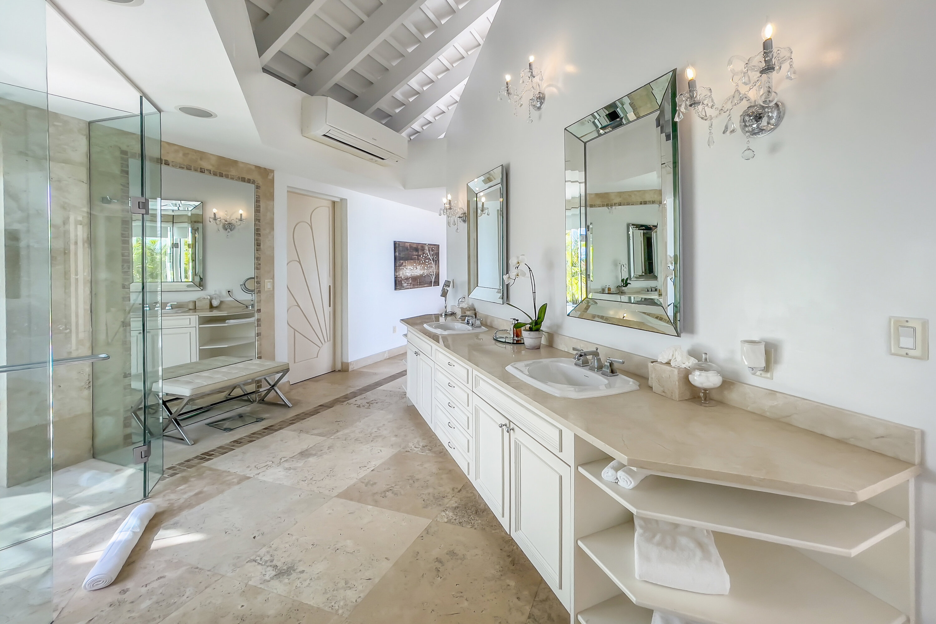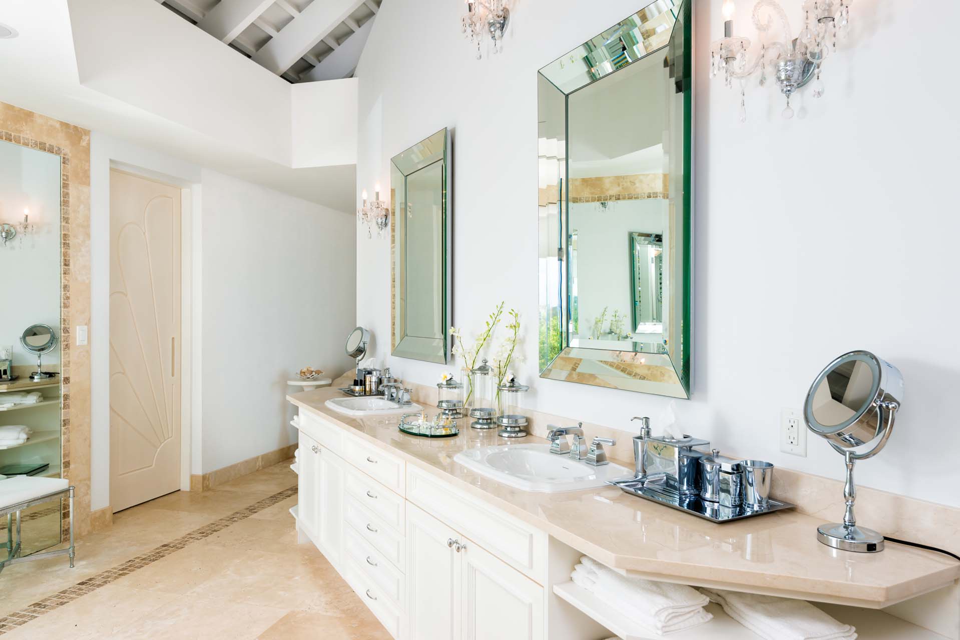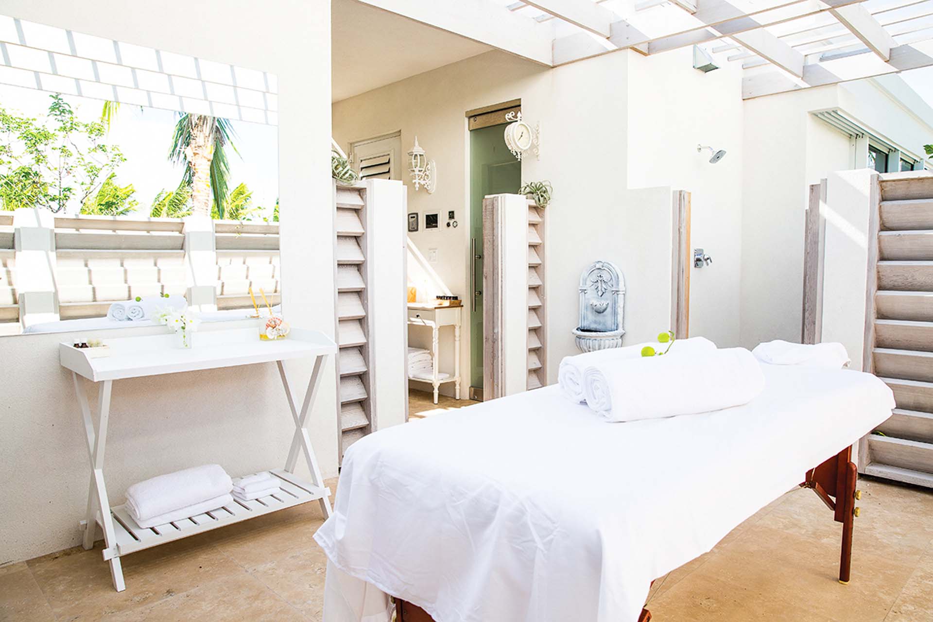 As part of the Pearls of Long Bay Estate, Lidija’s House shares resort-style amenities with its sister villas, Pearl East and Pearl West. Guests can take advantage of a professional 1,100-square-foot fitness center, a private tennis court, or opt for a rejuvenating massage either in the open-air spa or in the privacy of their own suite.