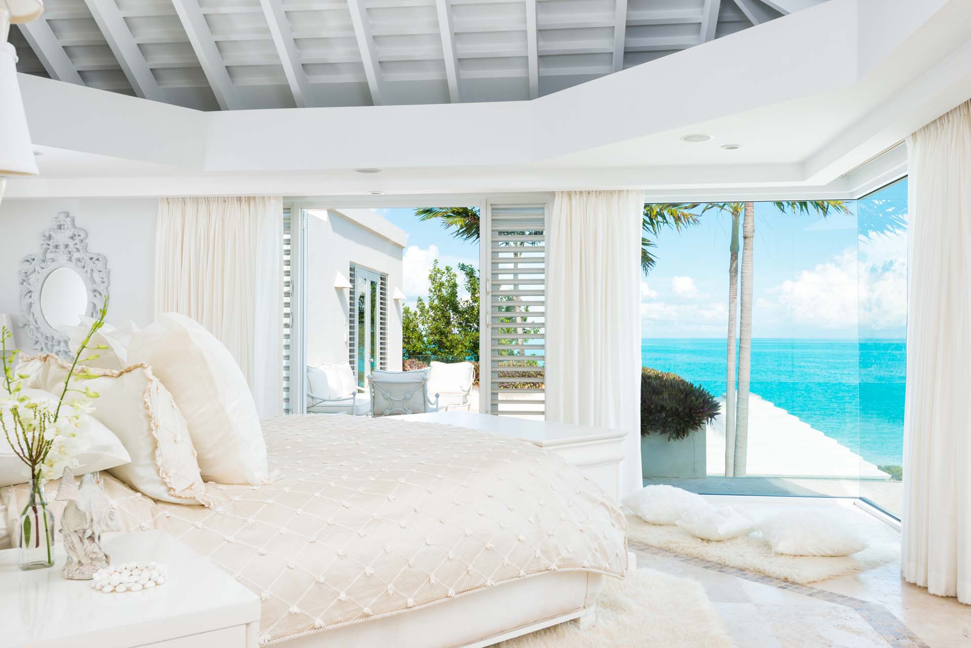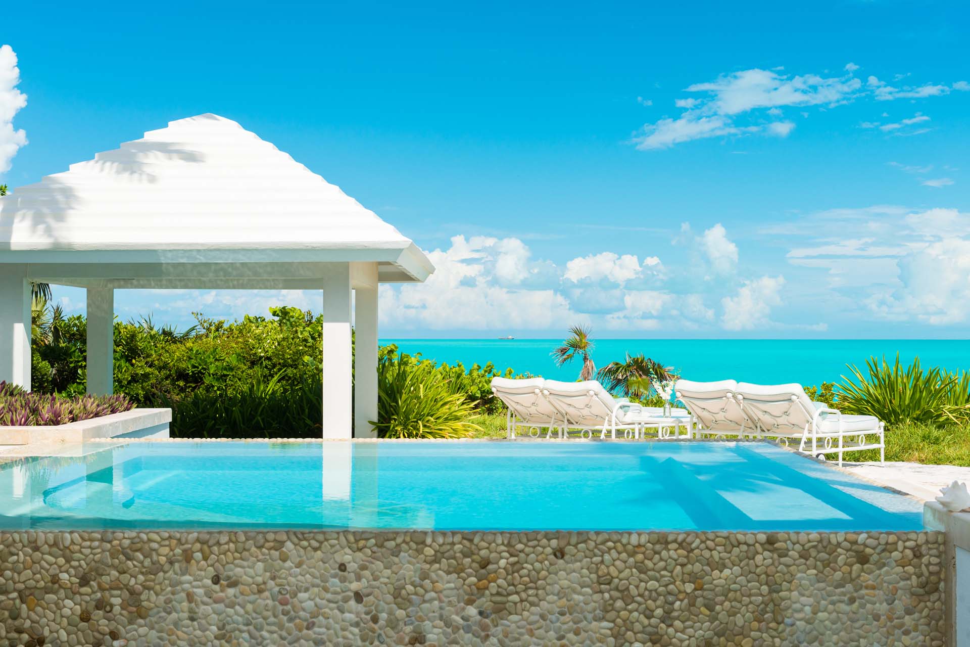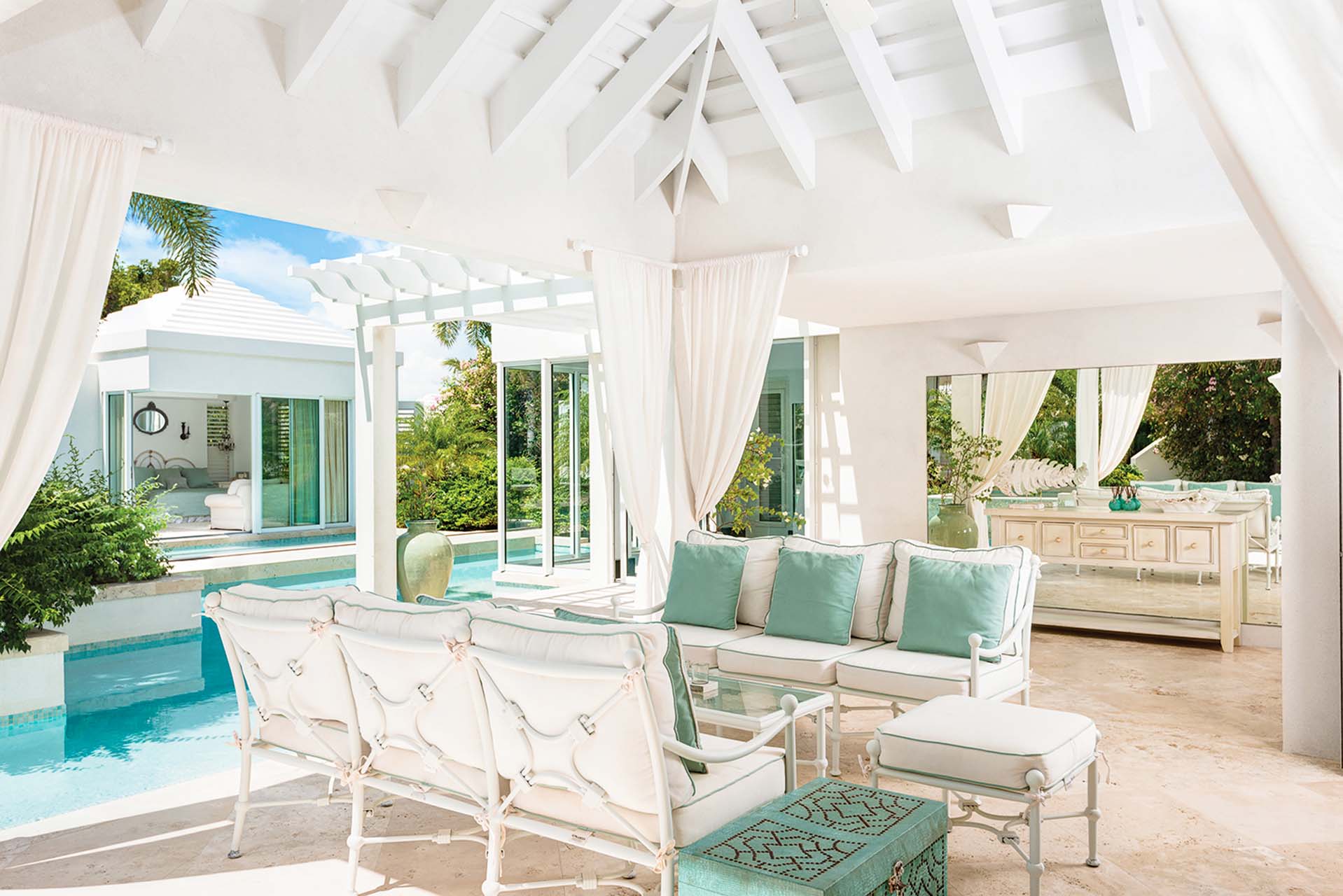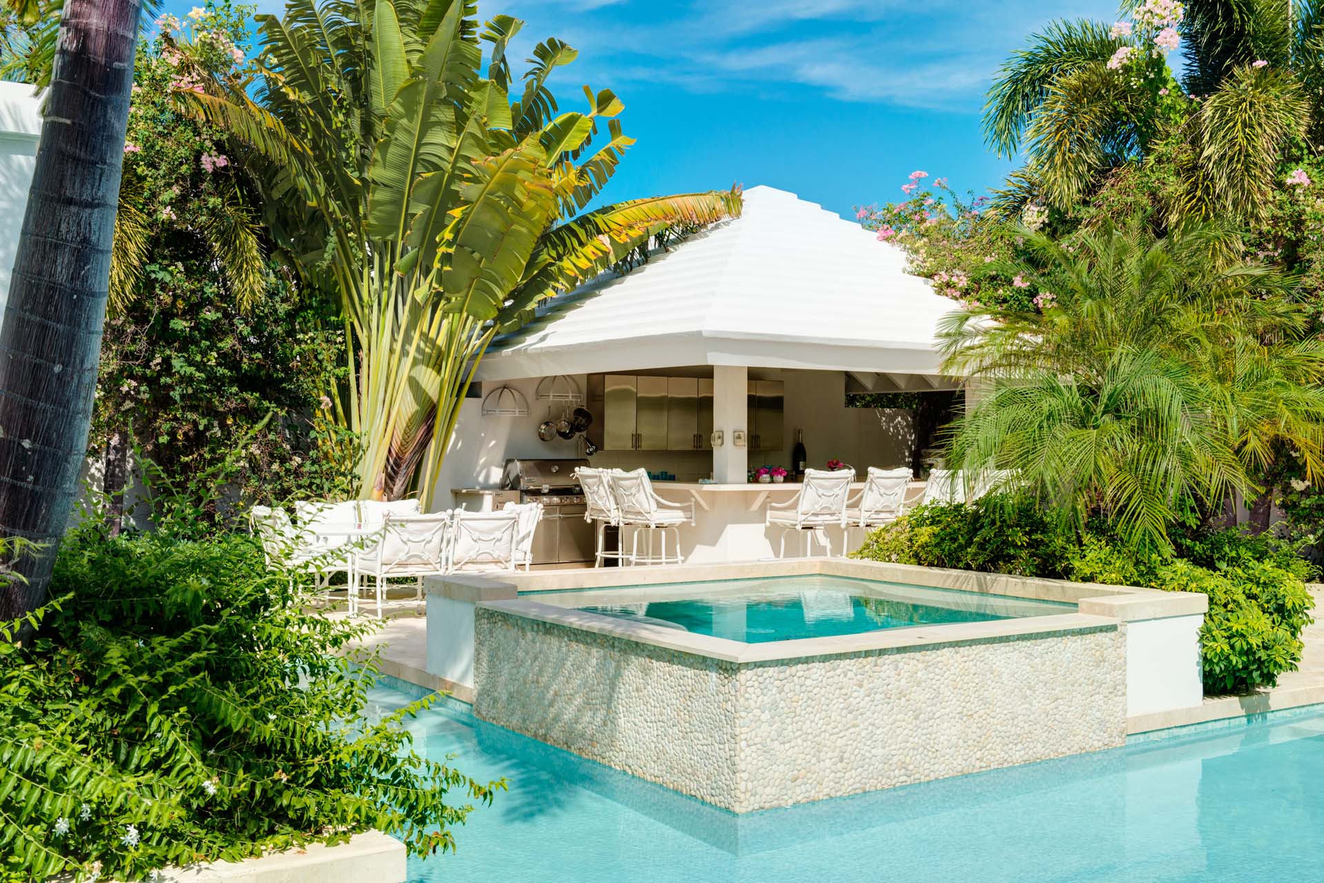 Surrounded by lush, landscaped gardens, Lidija House in Turks and Caicos offers a secluded experience for guests. Inside, it features a refined and elegant Caribbean style, with white-washed walls and barefoot island luxuries. Offering seamless connections between indoor and outdoor living areas, everything about this property encourages breezy and relaxed island living.